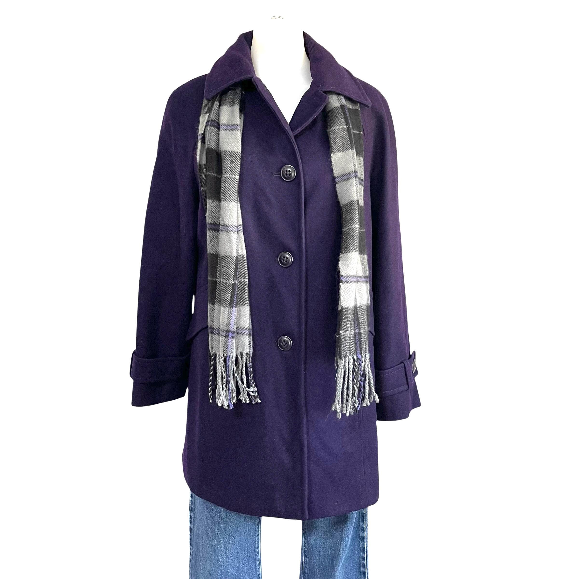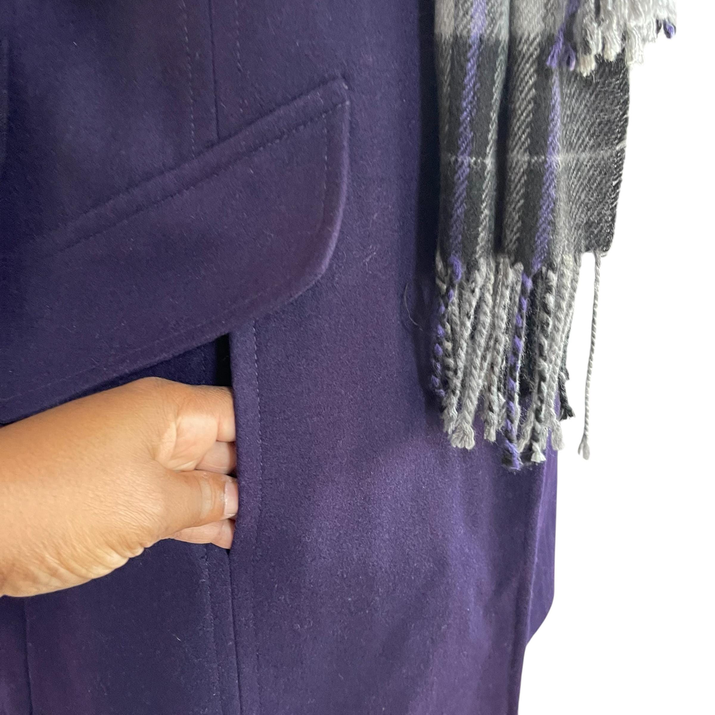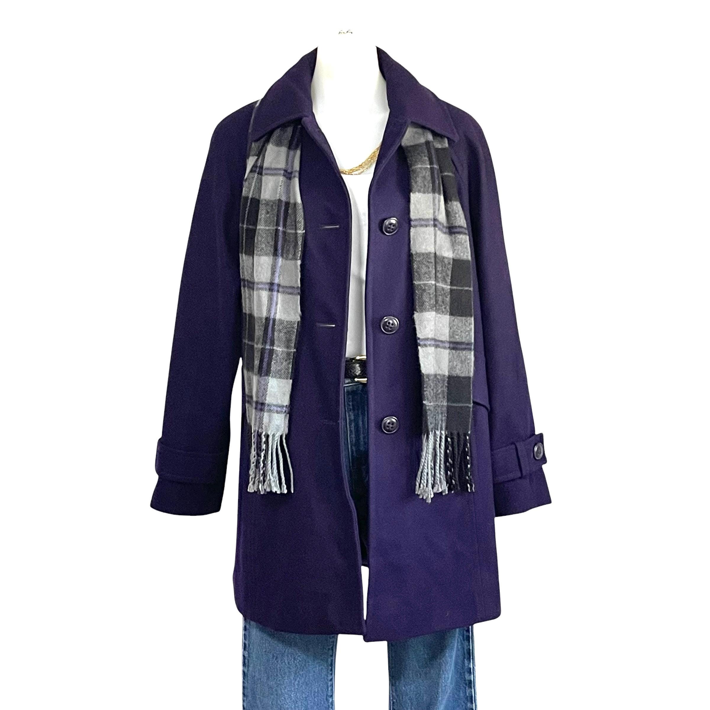 Vintage Mystic Dark Purple Wool Midi Coat with Scarf.