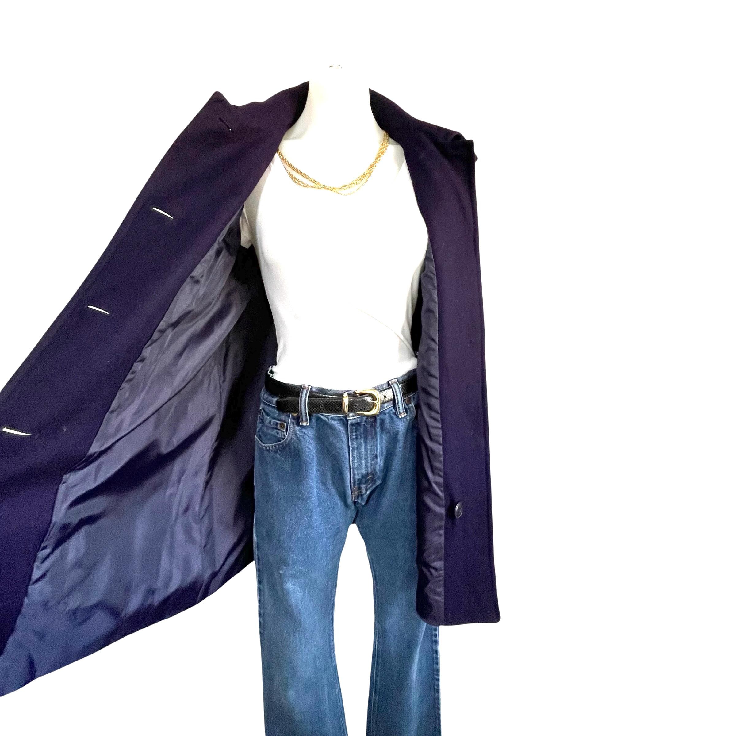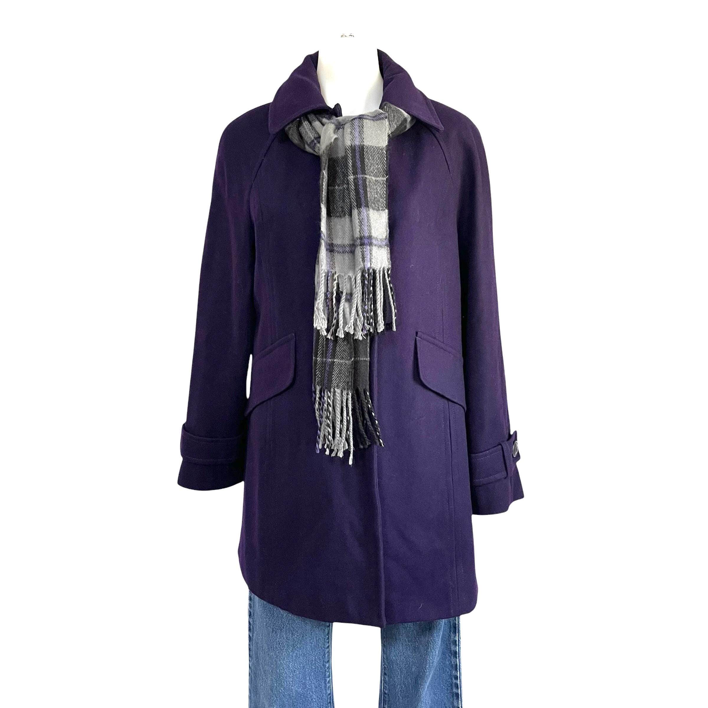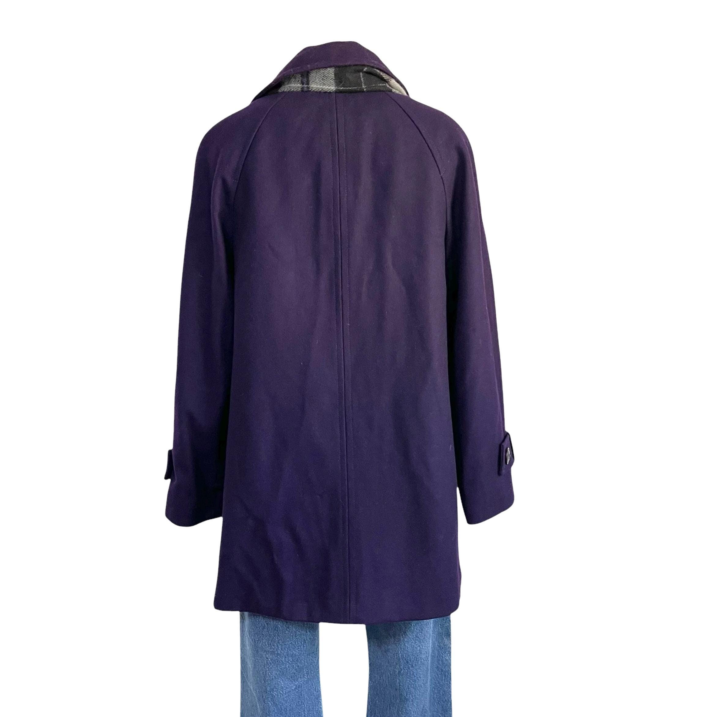 Vintage Mystic Dark Purple Wool Midi Coat with Scarf.
