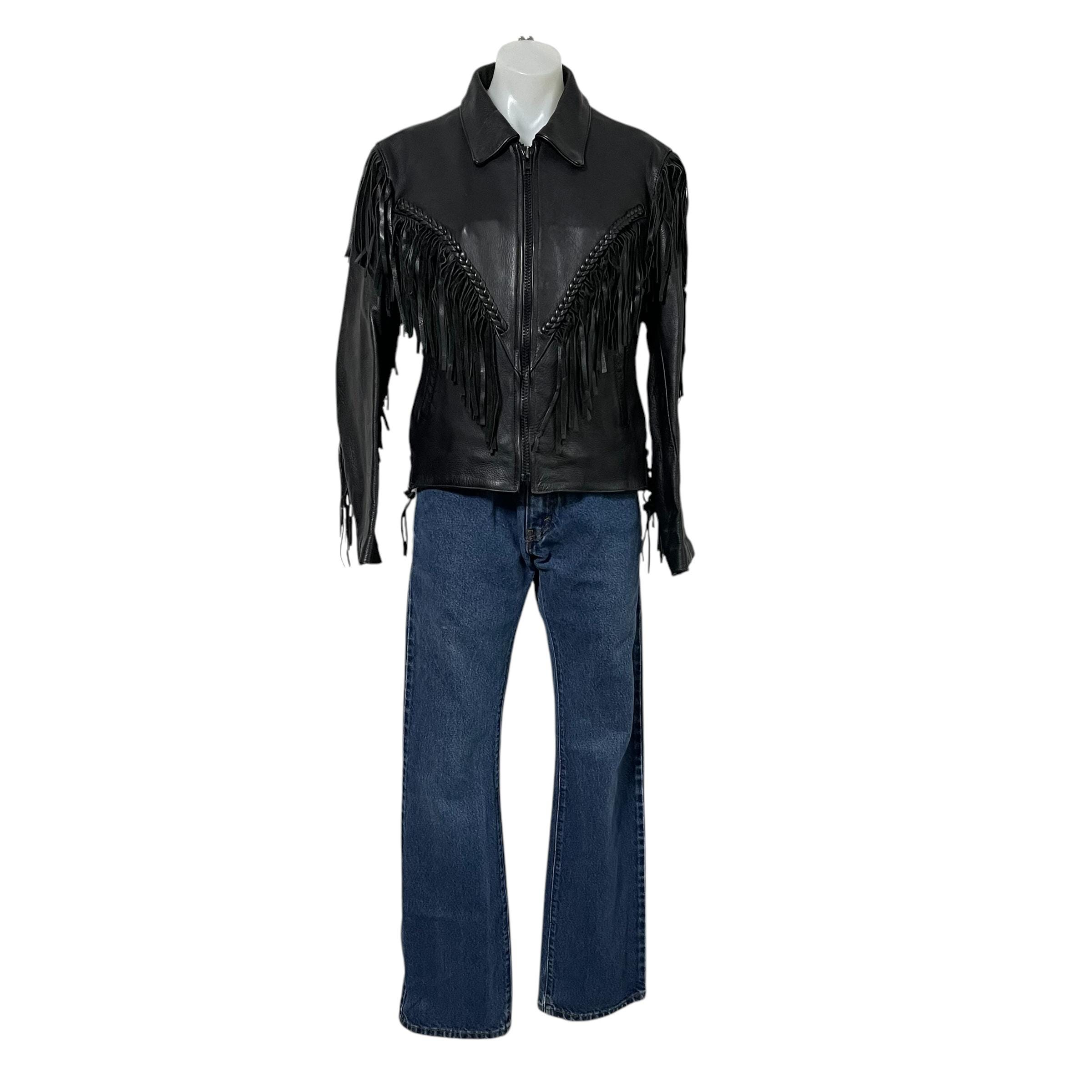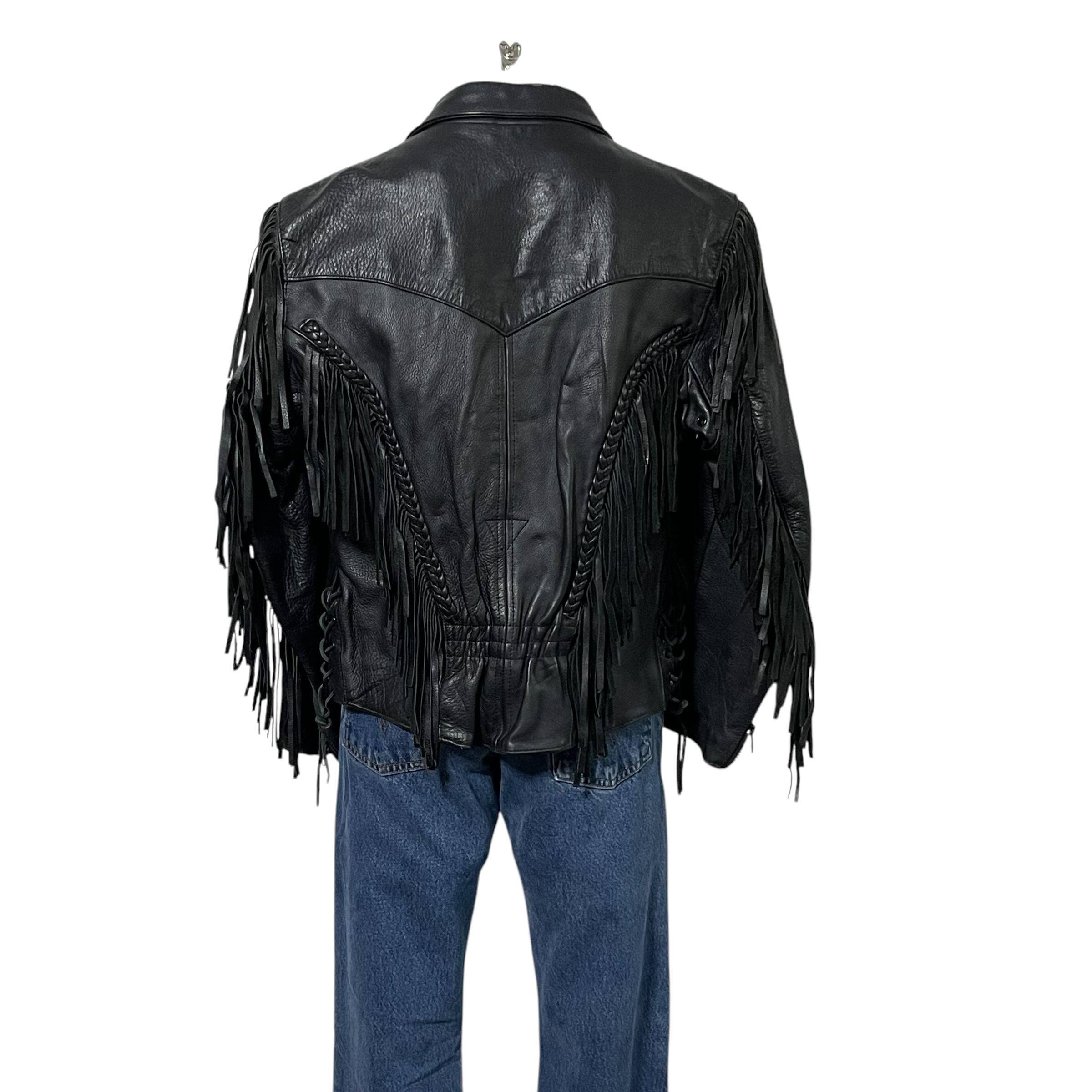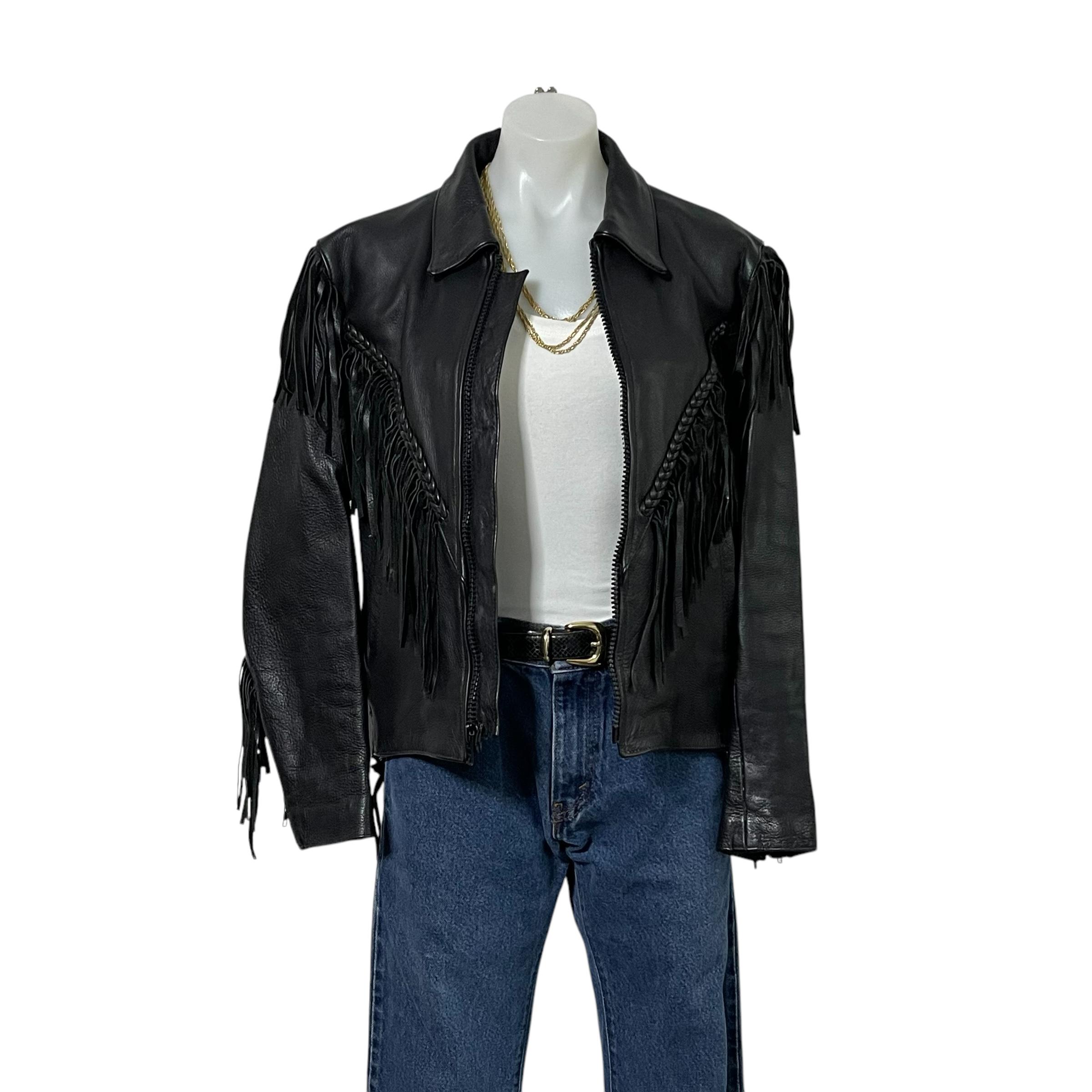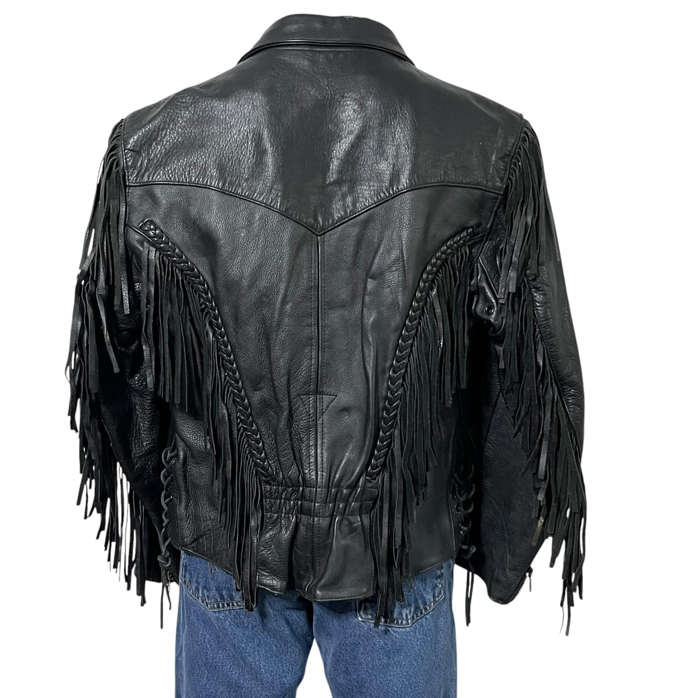 Vintage Moto Black Leather Fringe Jacket.