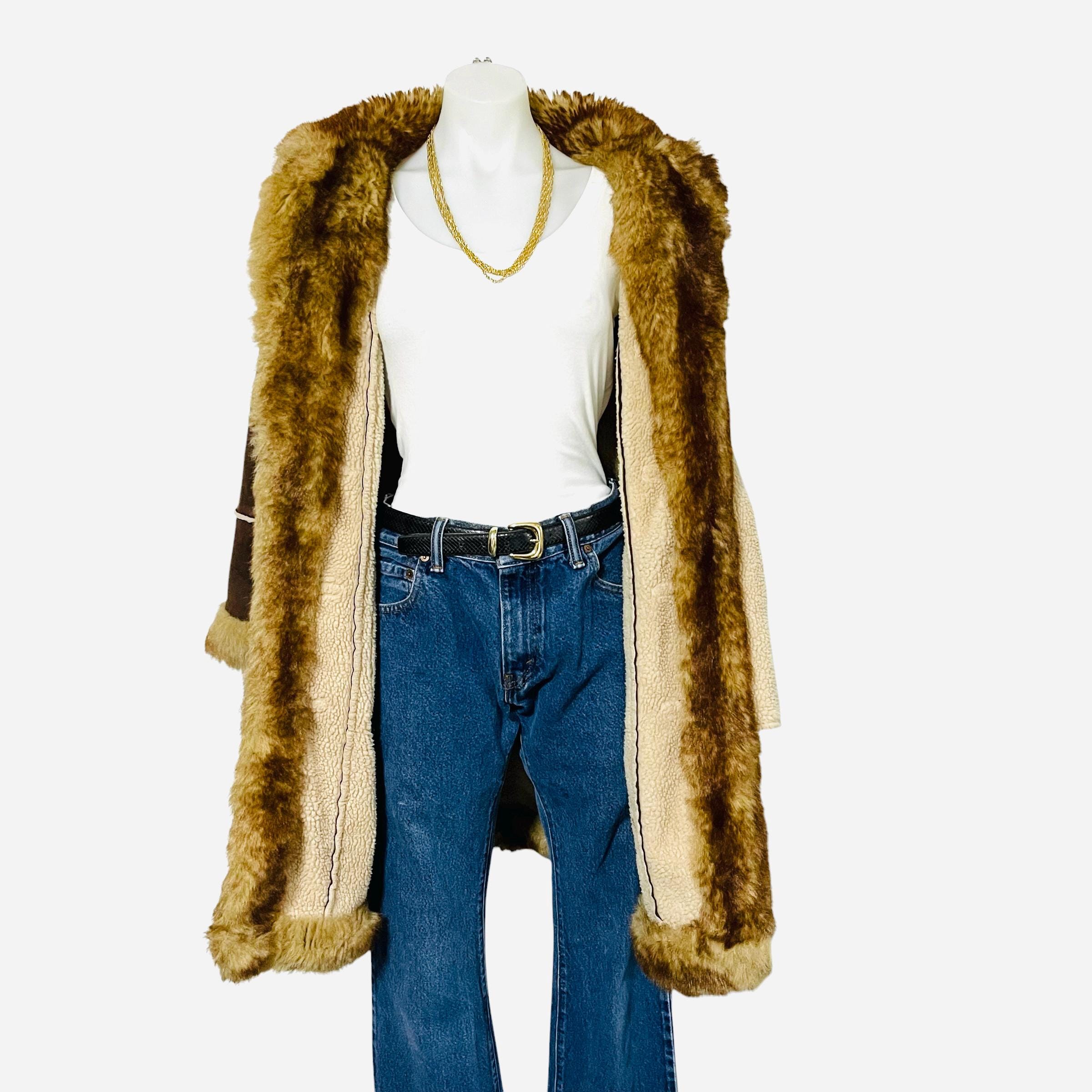 Vintage Baby Phat Princess Coat. Penny Lane Style Fur Jacket. Retro 60s 70s Brown Suede Fur Collar Jacket Coat. Penny Lane Suede Fur Coat. L