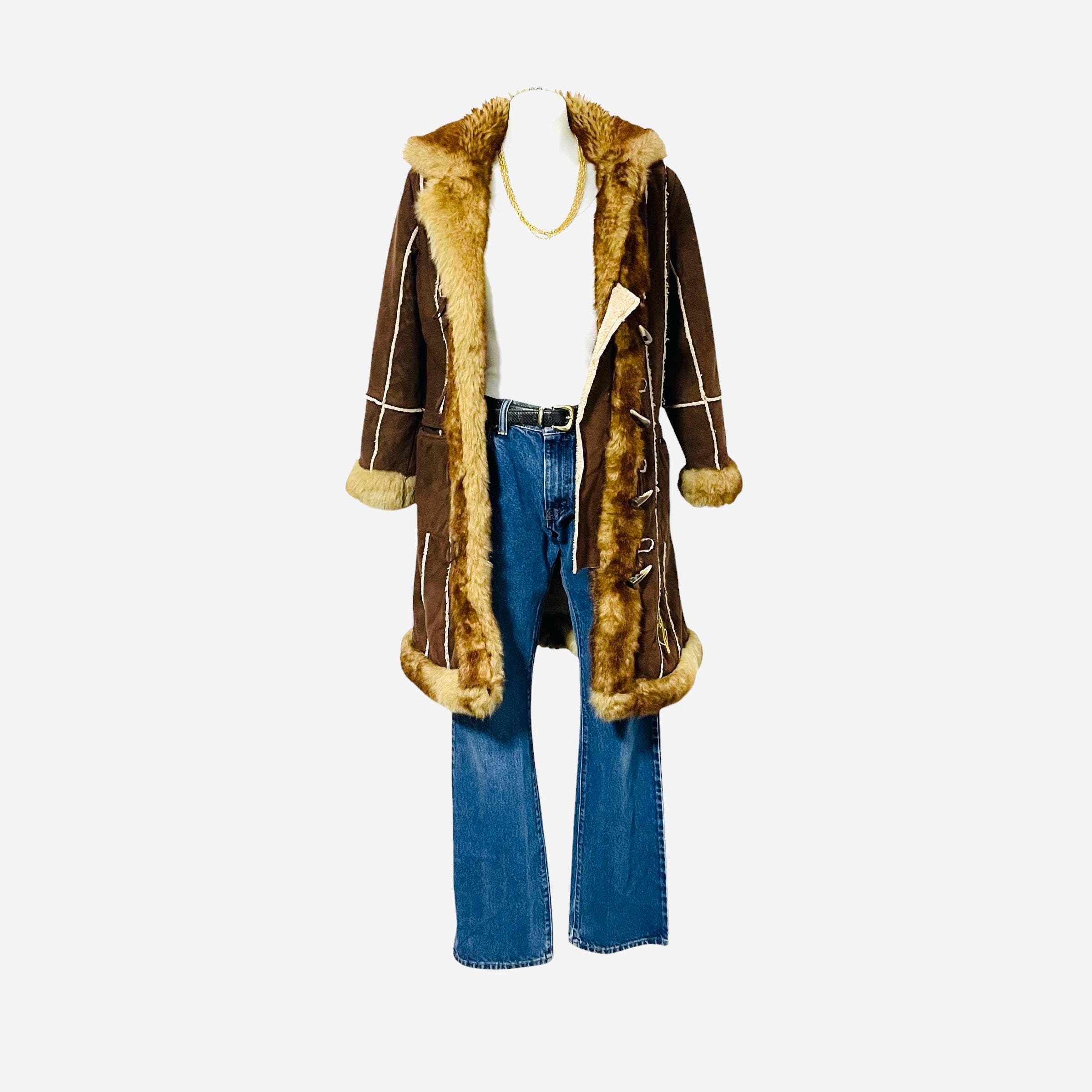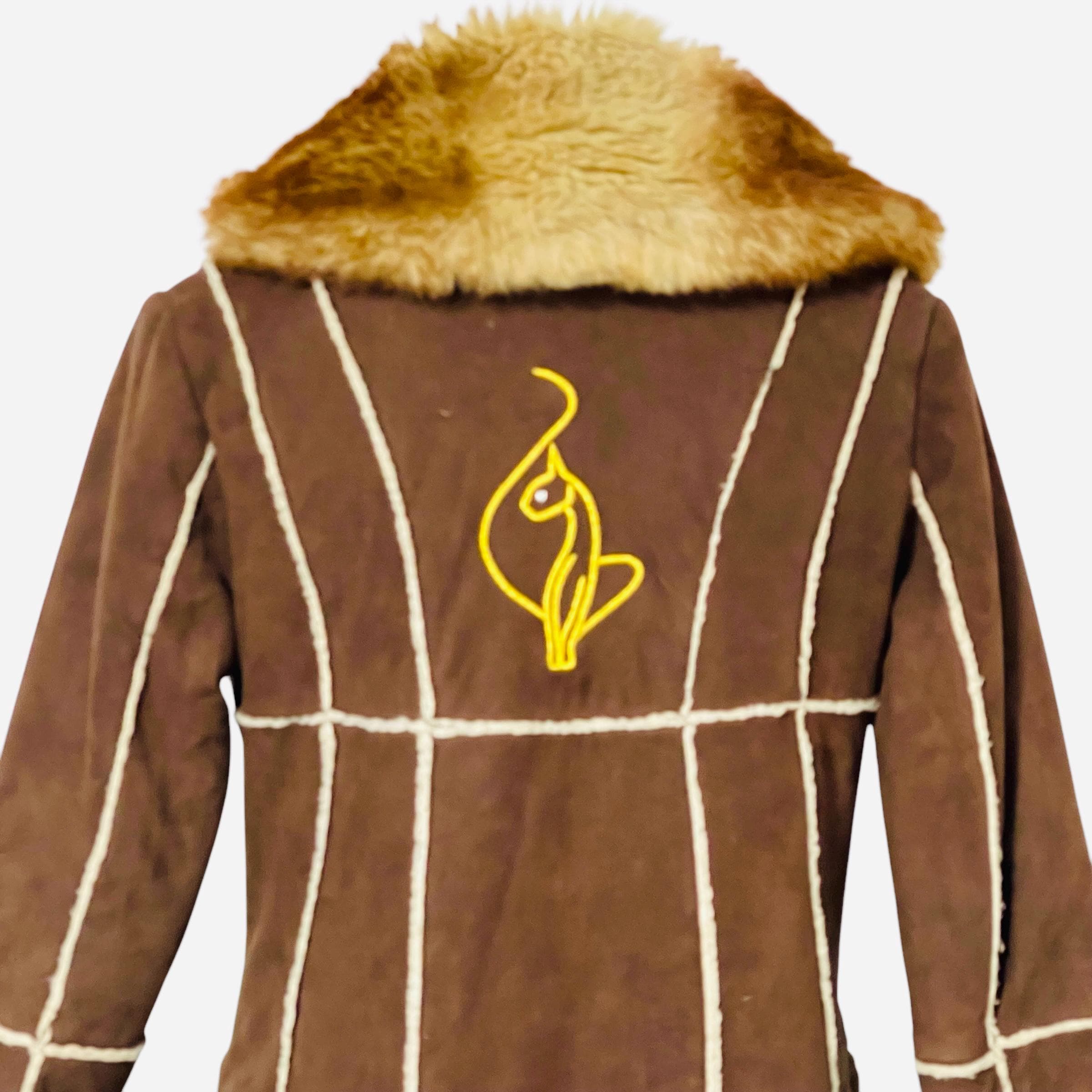 Retro 60s 70s Brown Suede Fur Collar Jacket Coat.