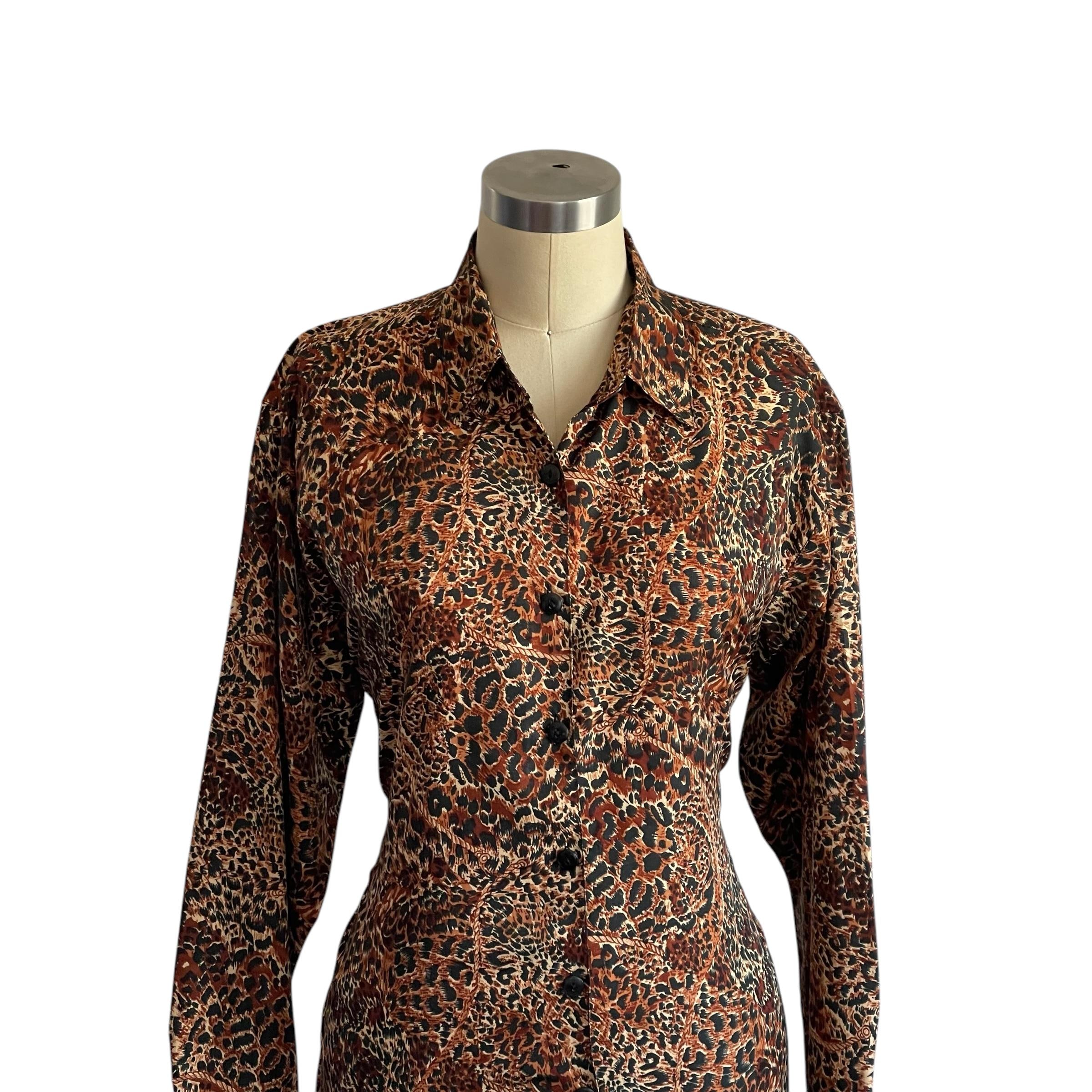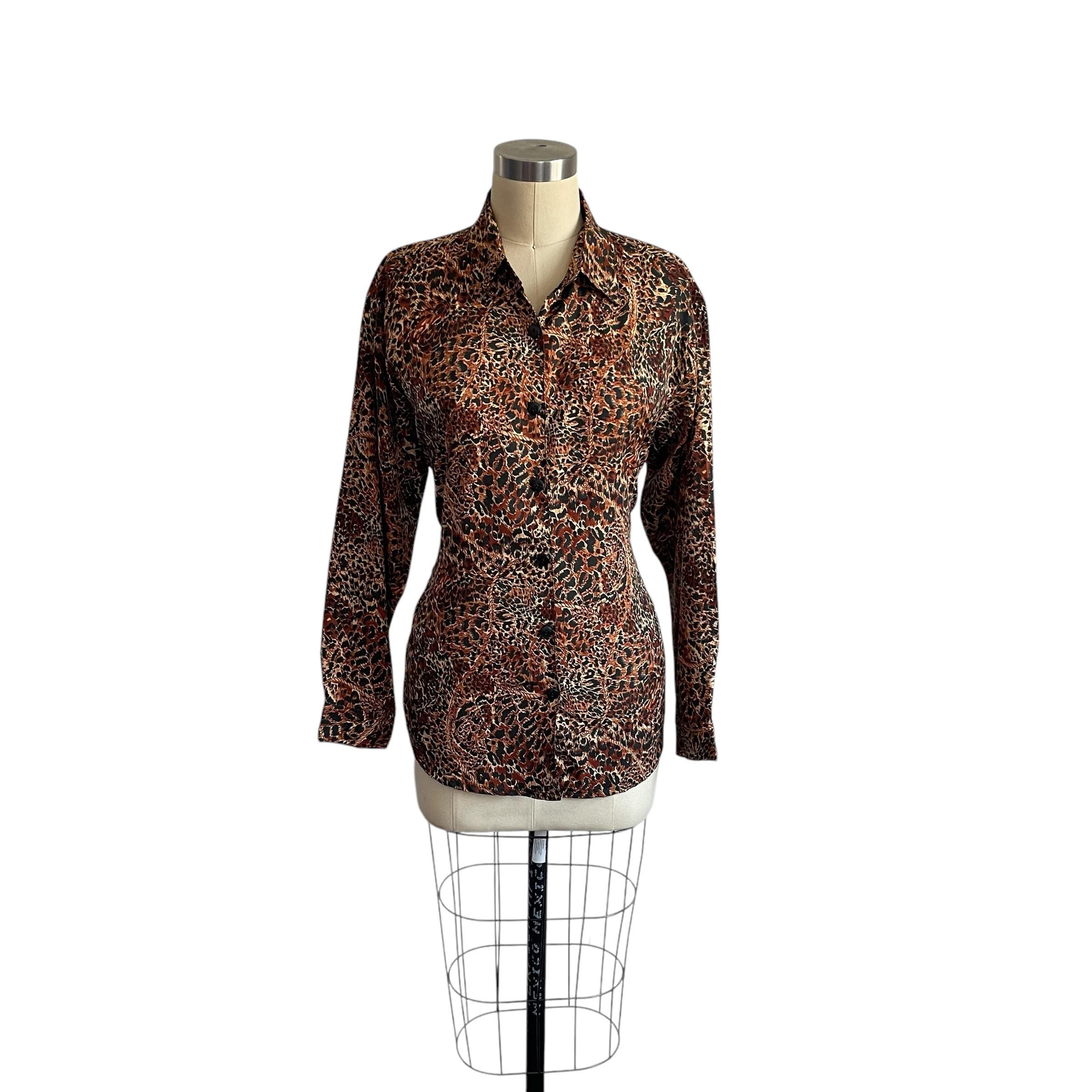 Dark Animal Print Button-Up Blouse.