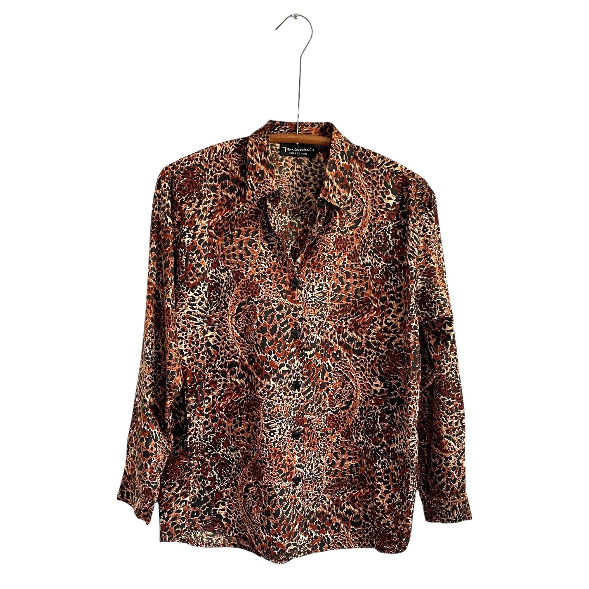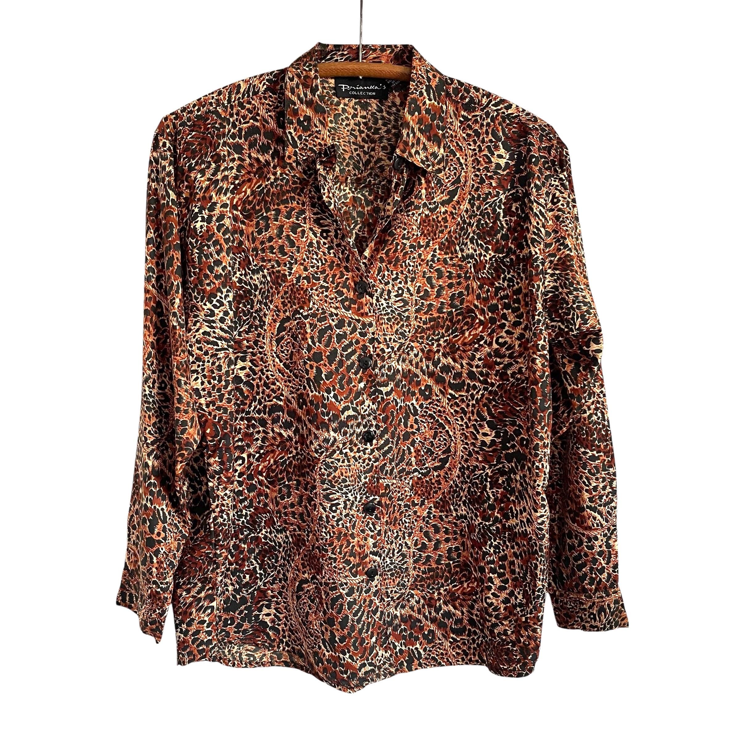 Vintage Prianixa's Collection Multicolor Leopard Print Button-Up Shirt.