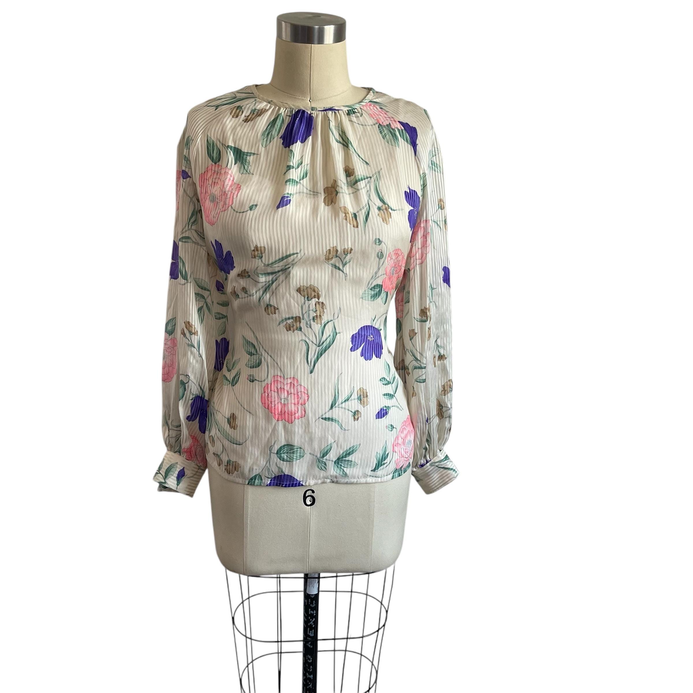 Vintage Umi Collections Multicolor Floral Pleated Blouse.