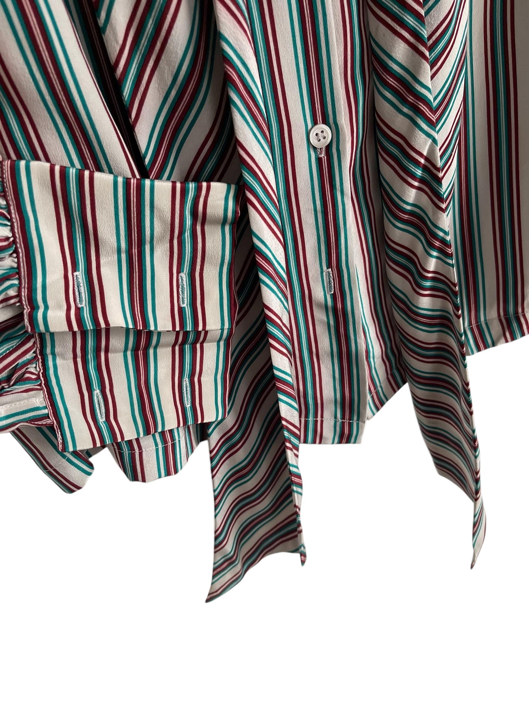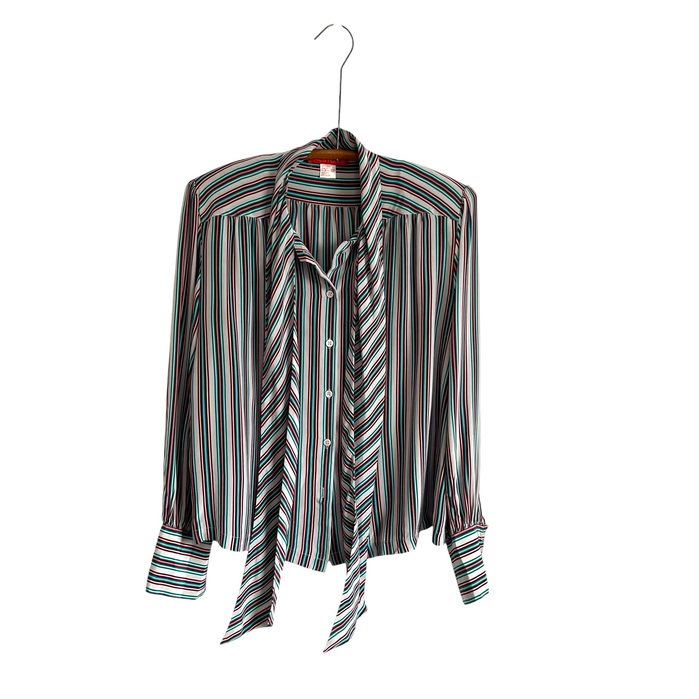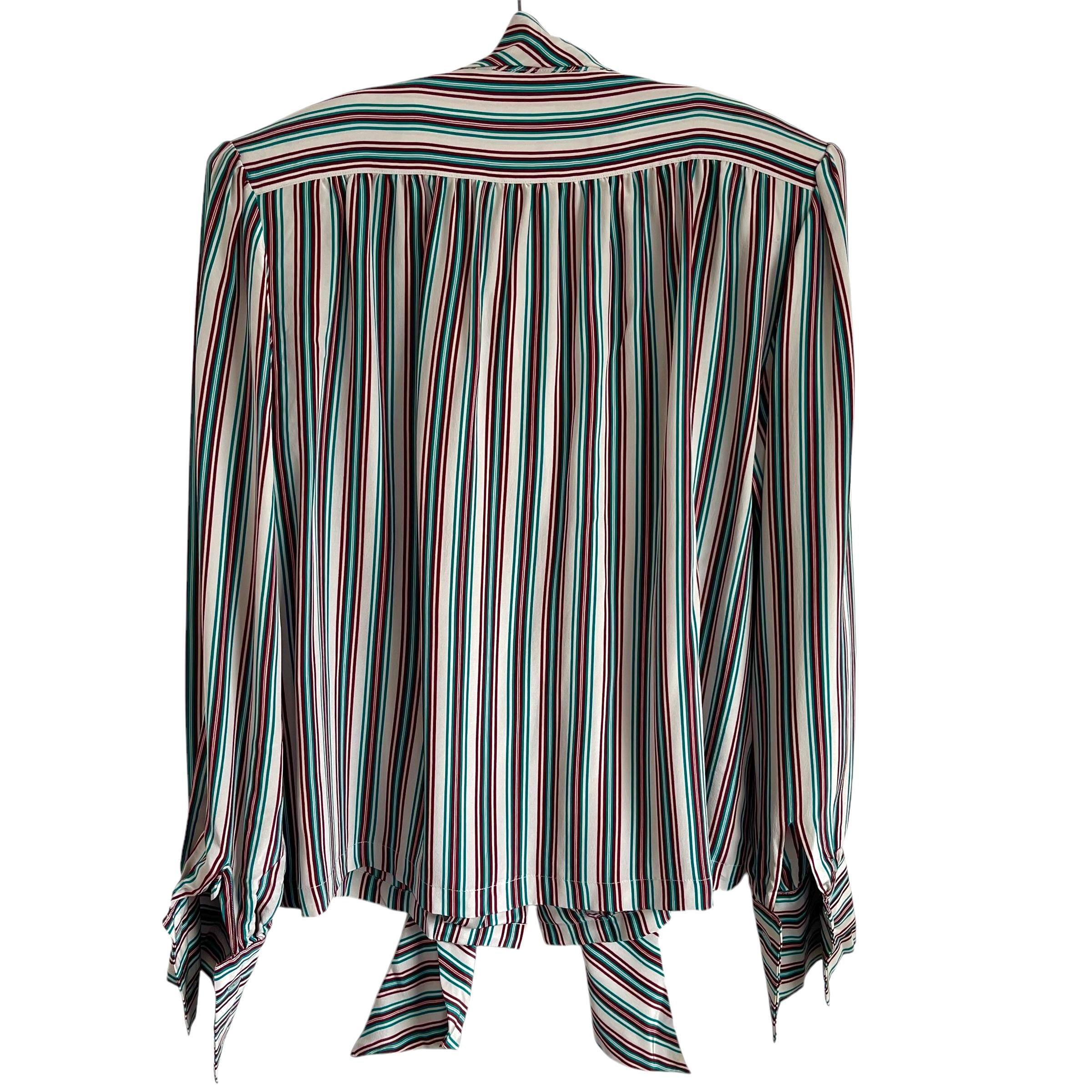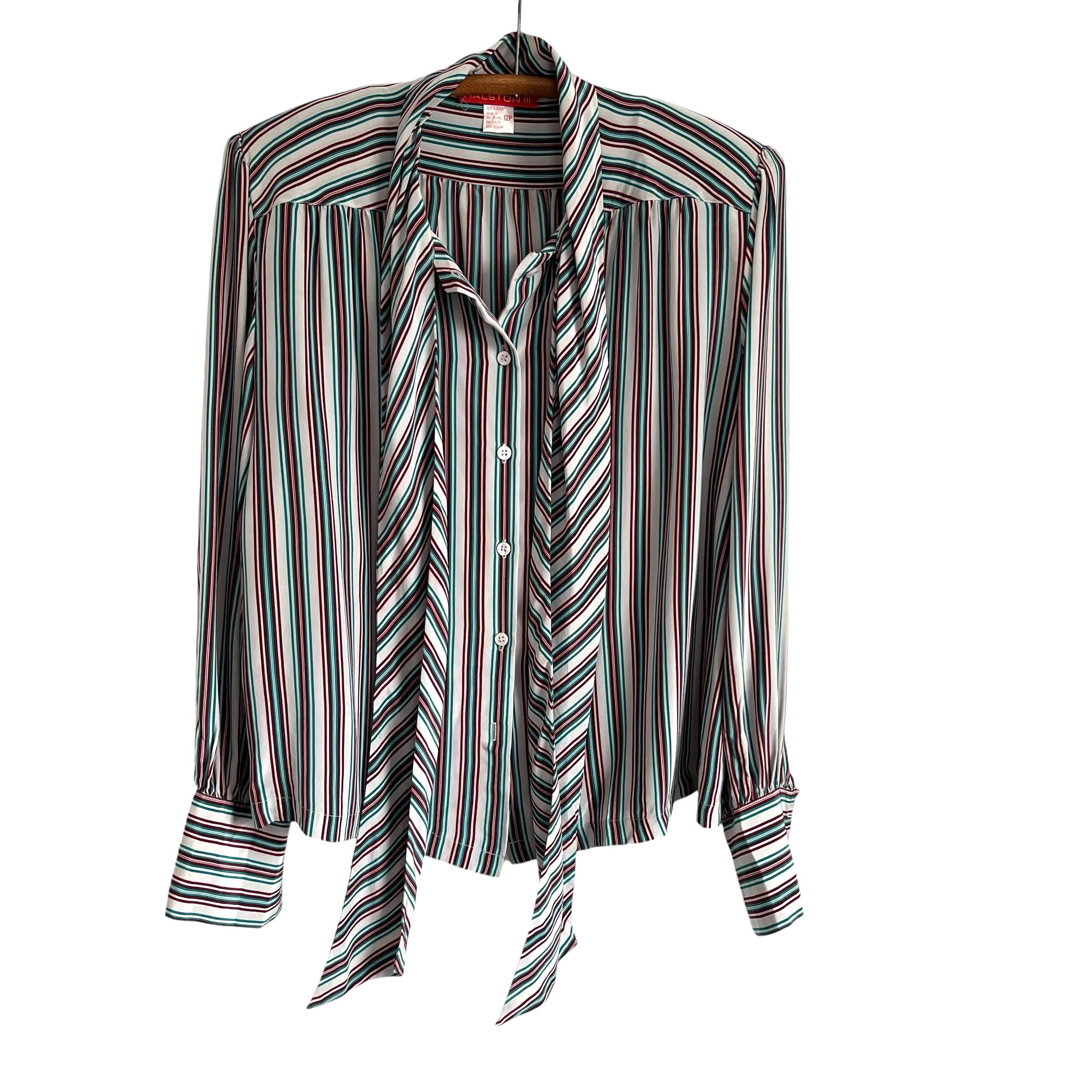 Vintage Halston III Multicolor Striped Tie-Front Button-Up Blouse.