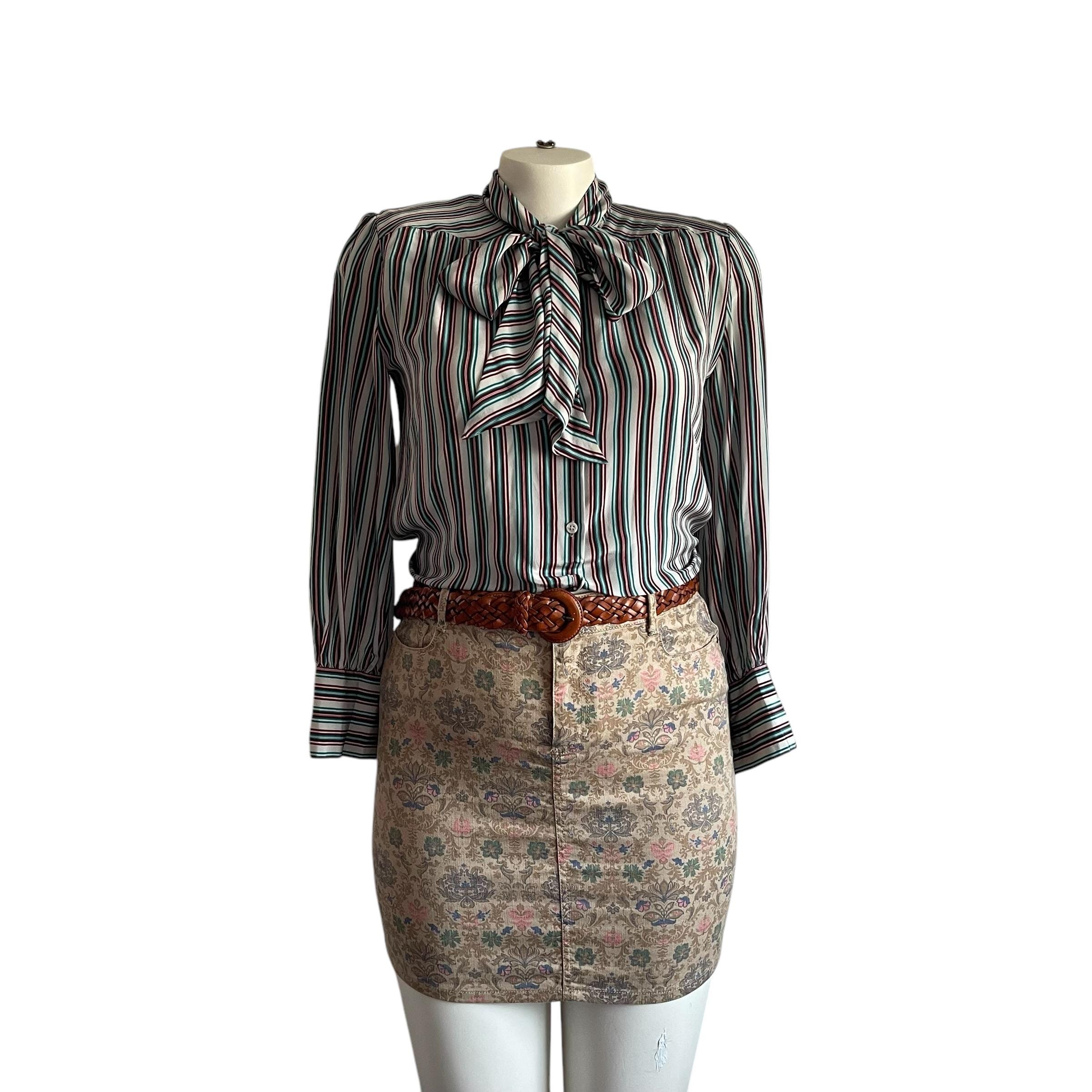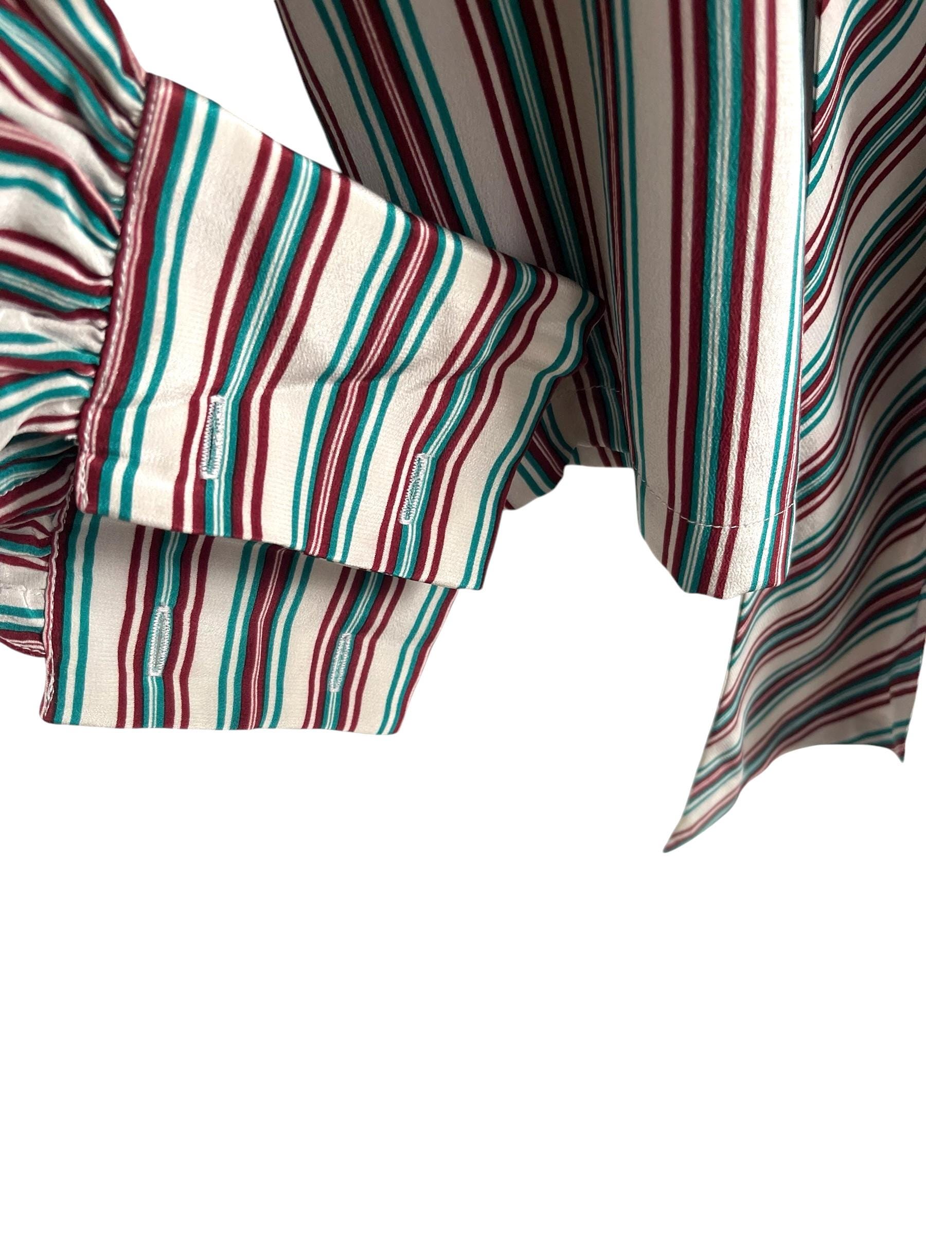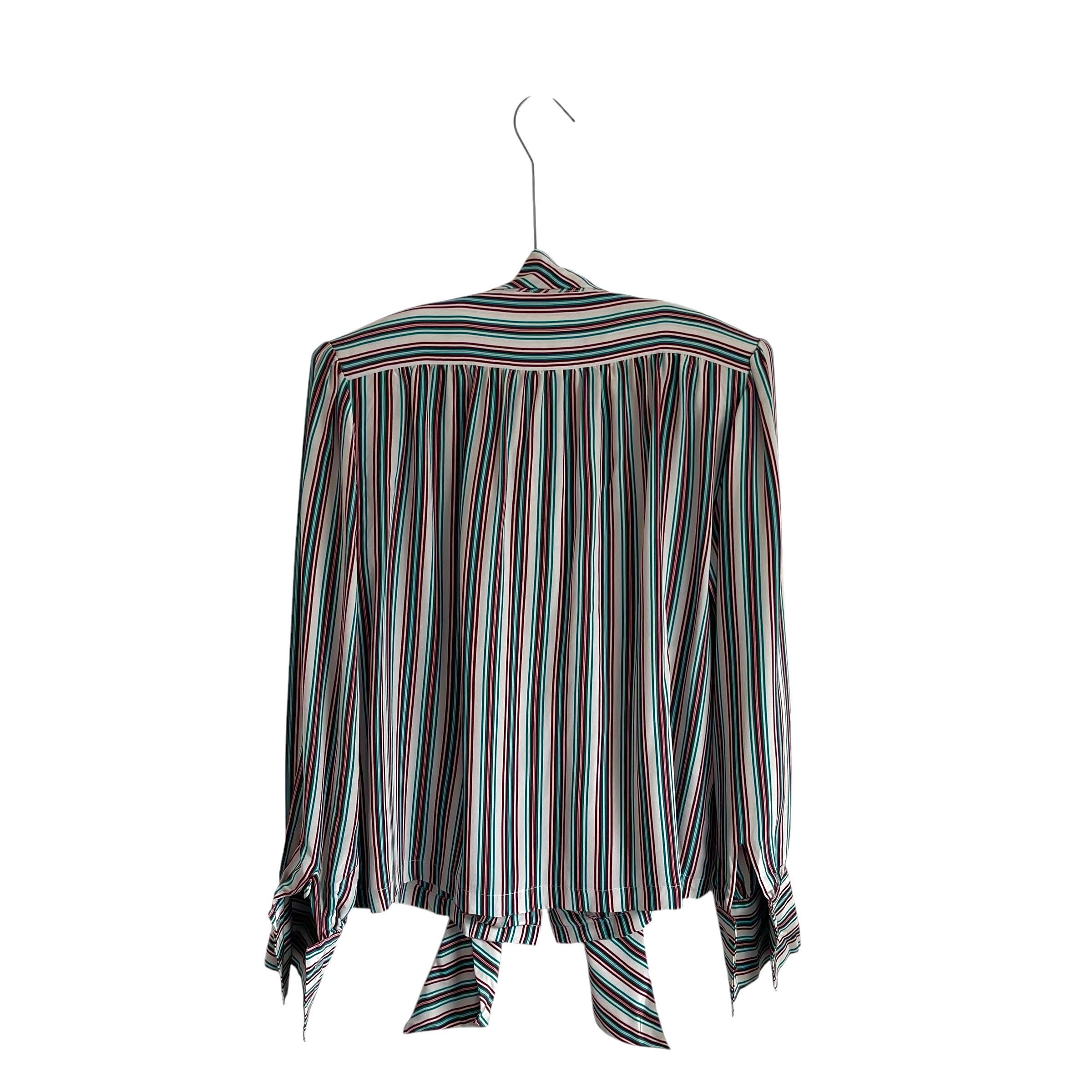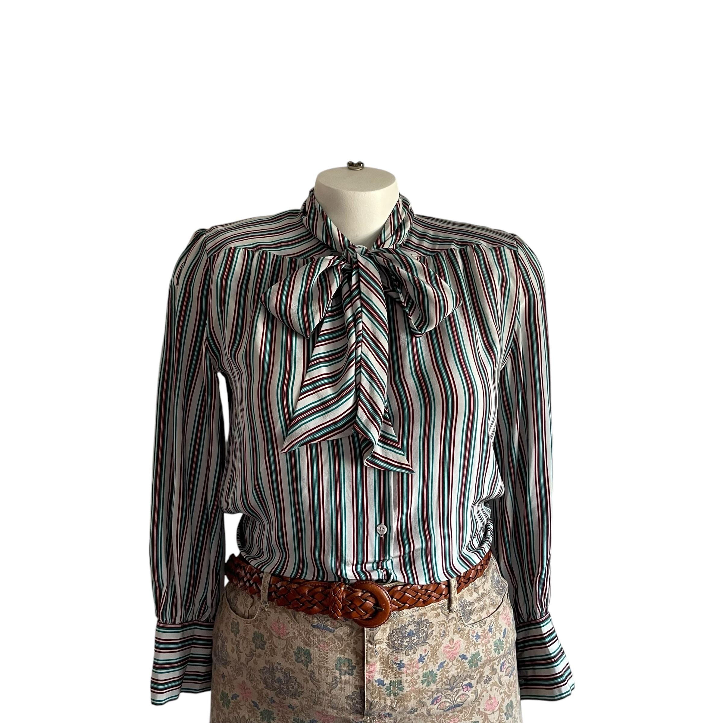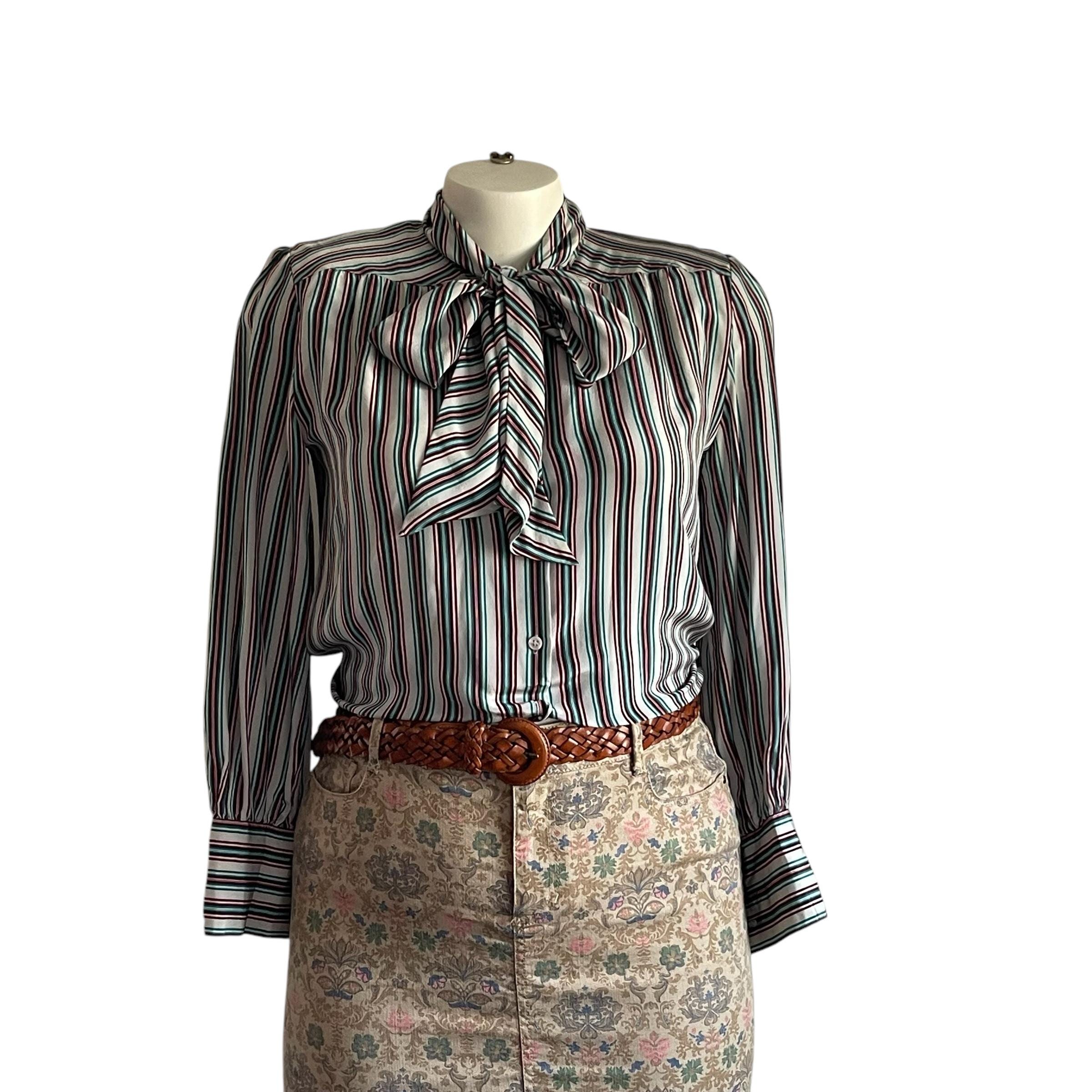 Vintage Halston III Multicolor Striped Tie-Front Button-Up Blouse.