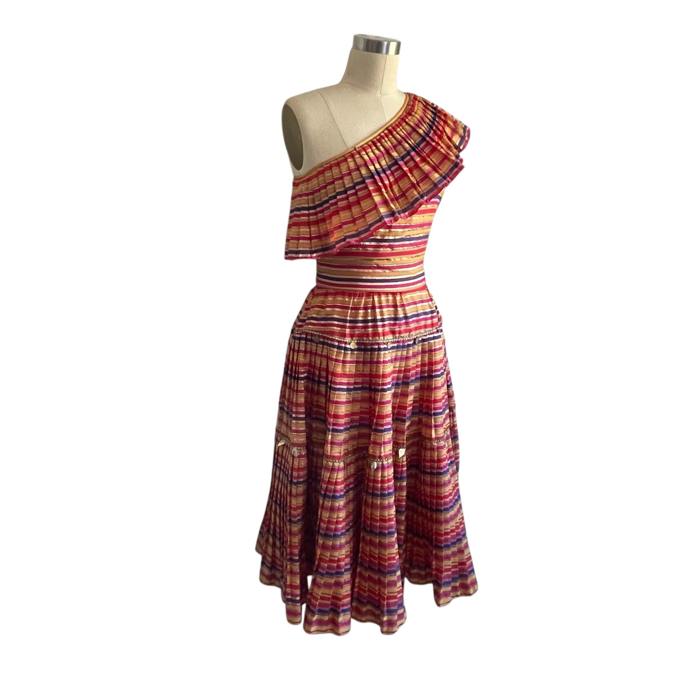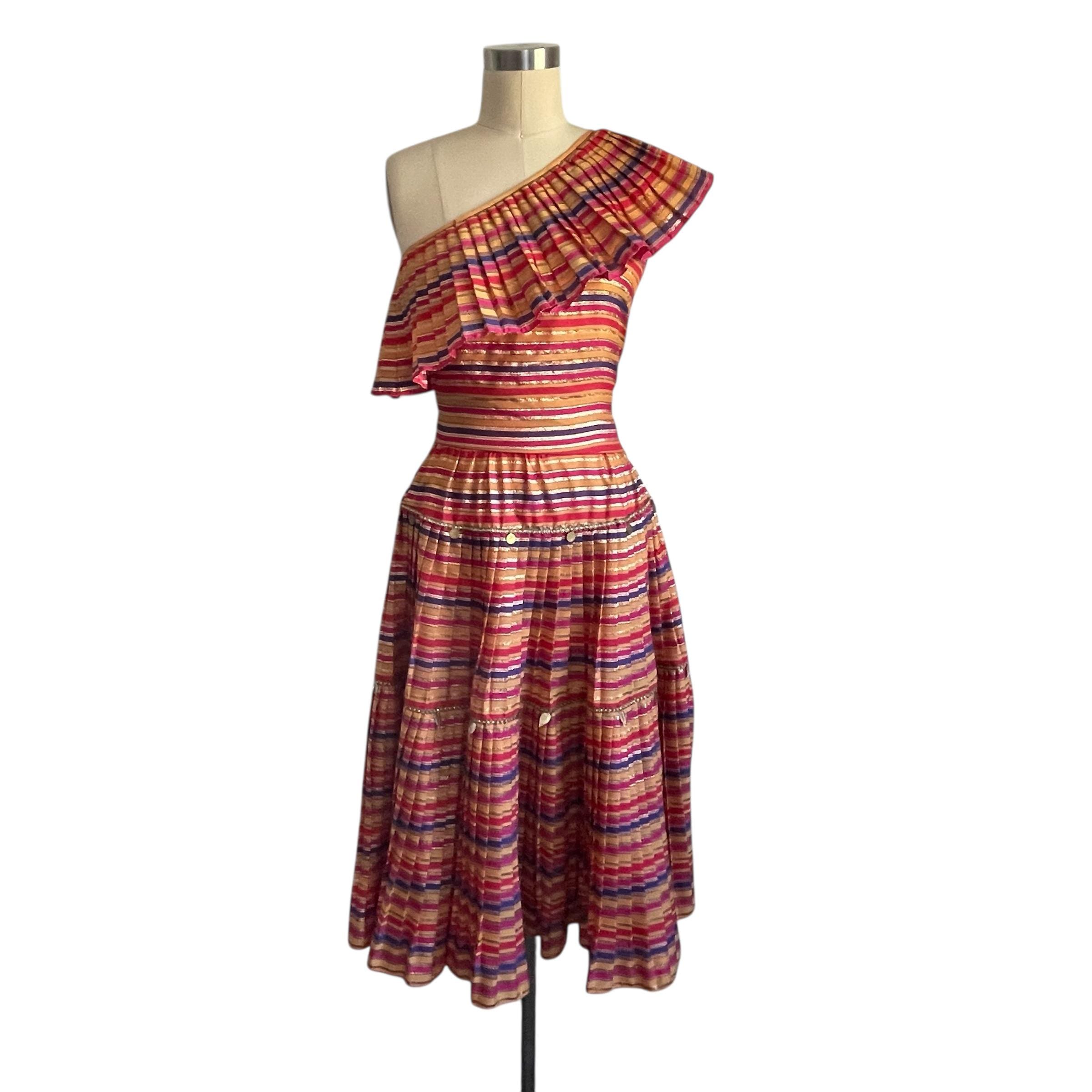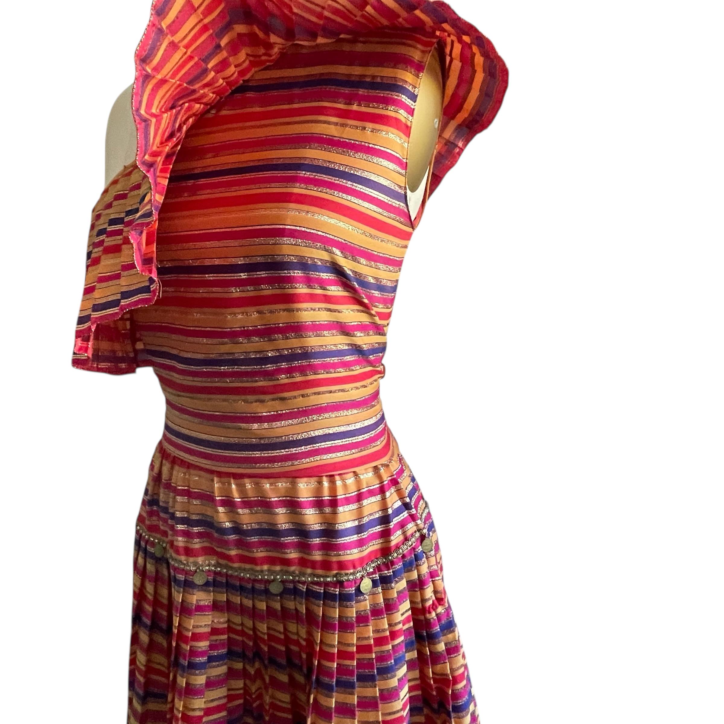 Vintage Gian Doll Arezzo Multicolor Striped Top and Skirt Set.