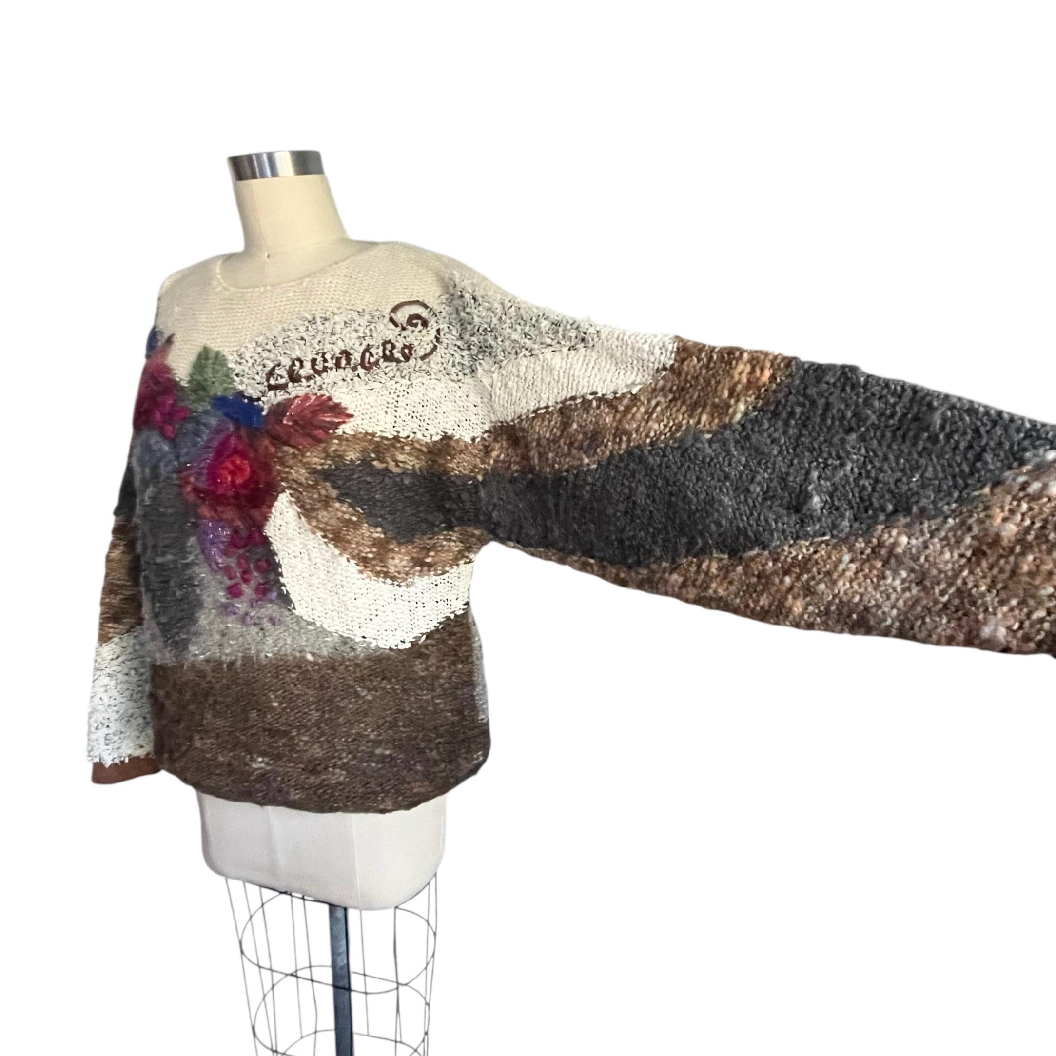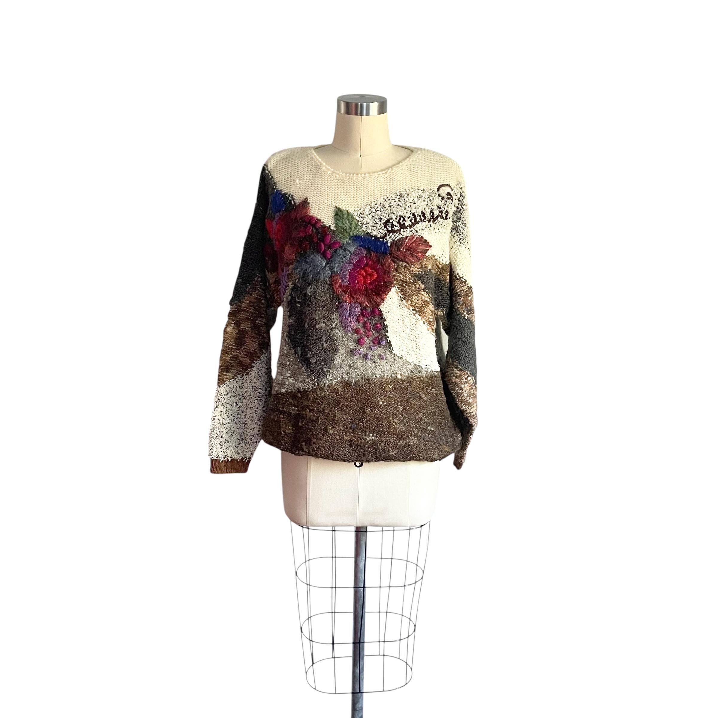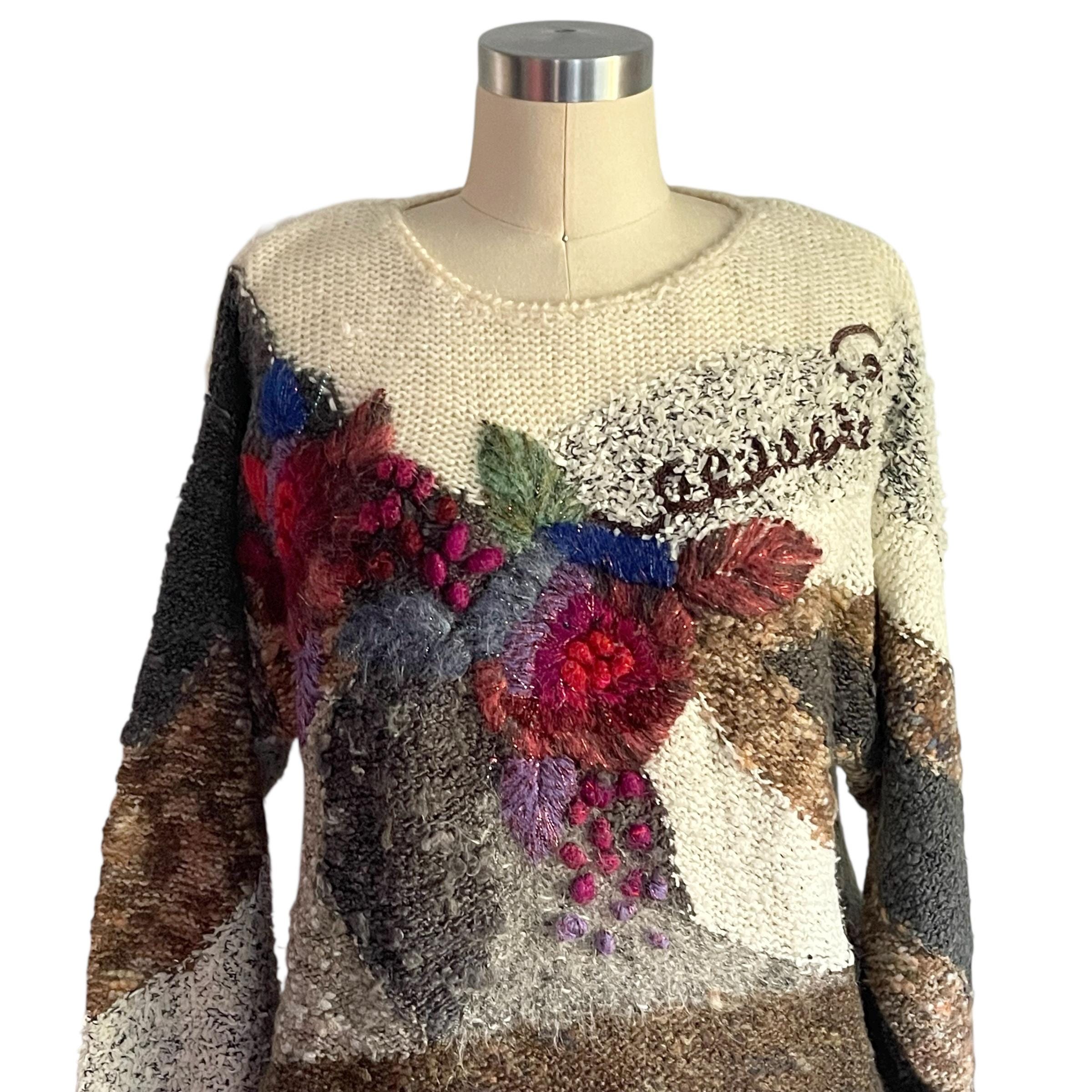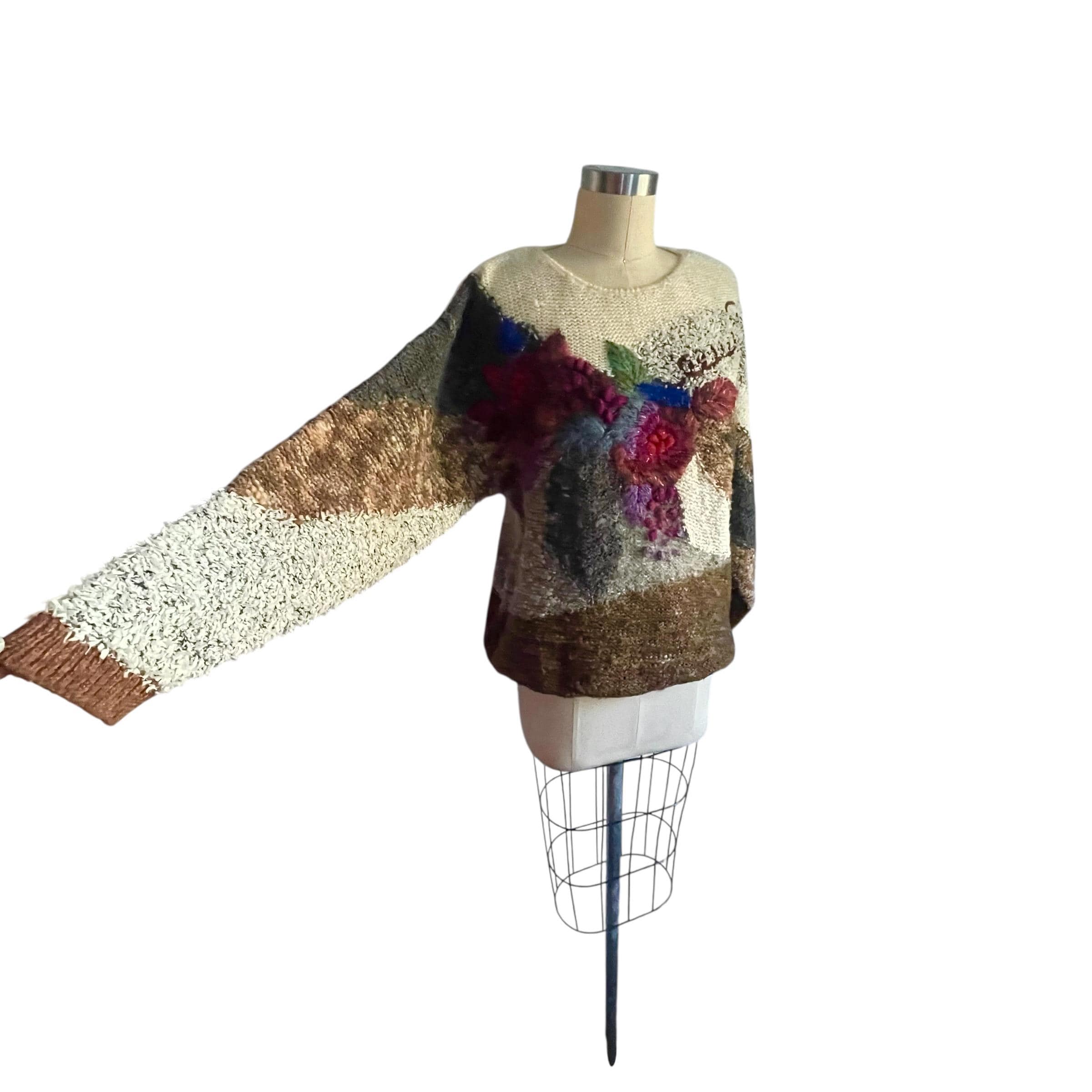 Vintage Mariea Kim Crochet Floral Earth Sweater.