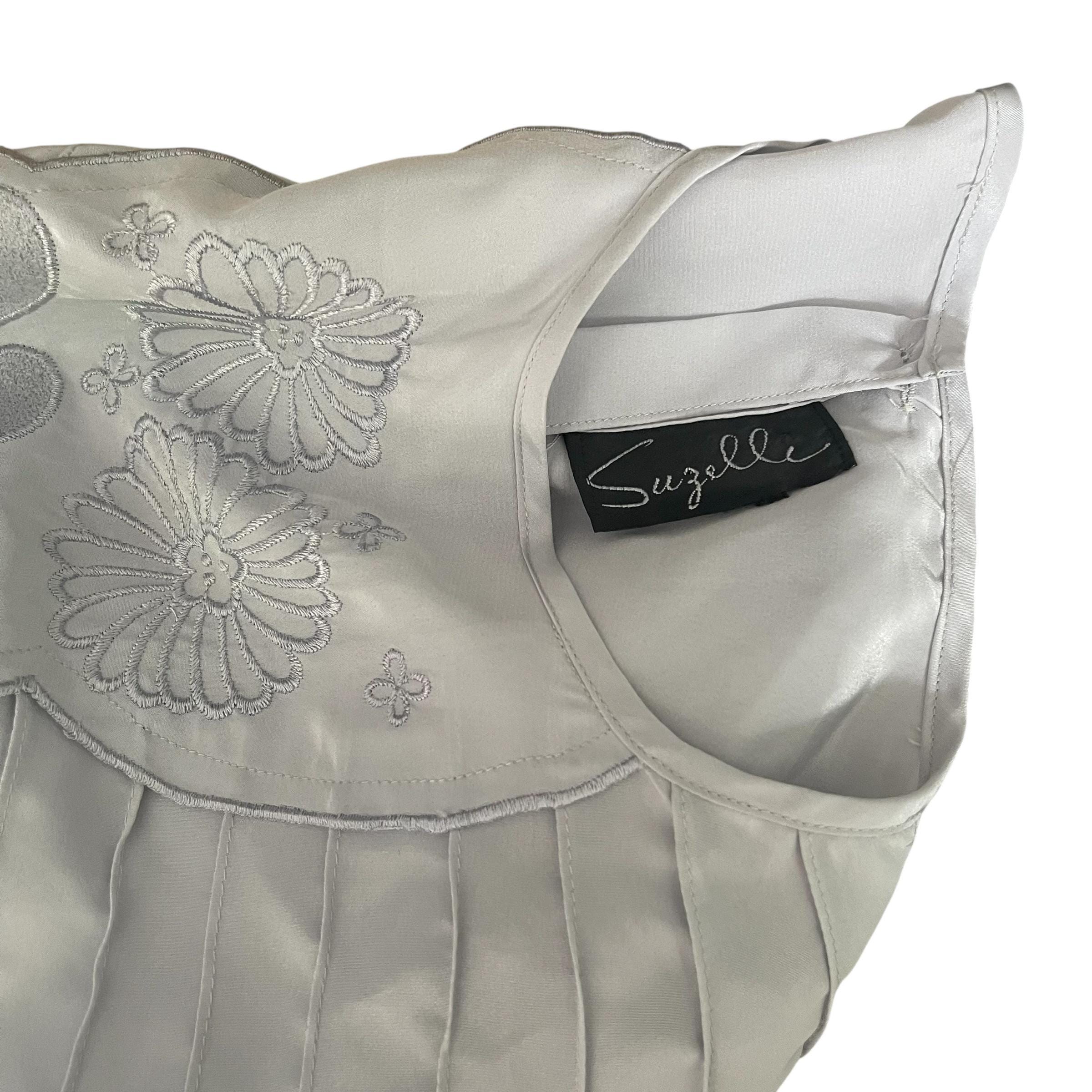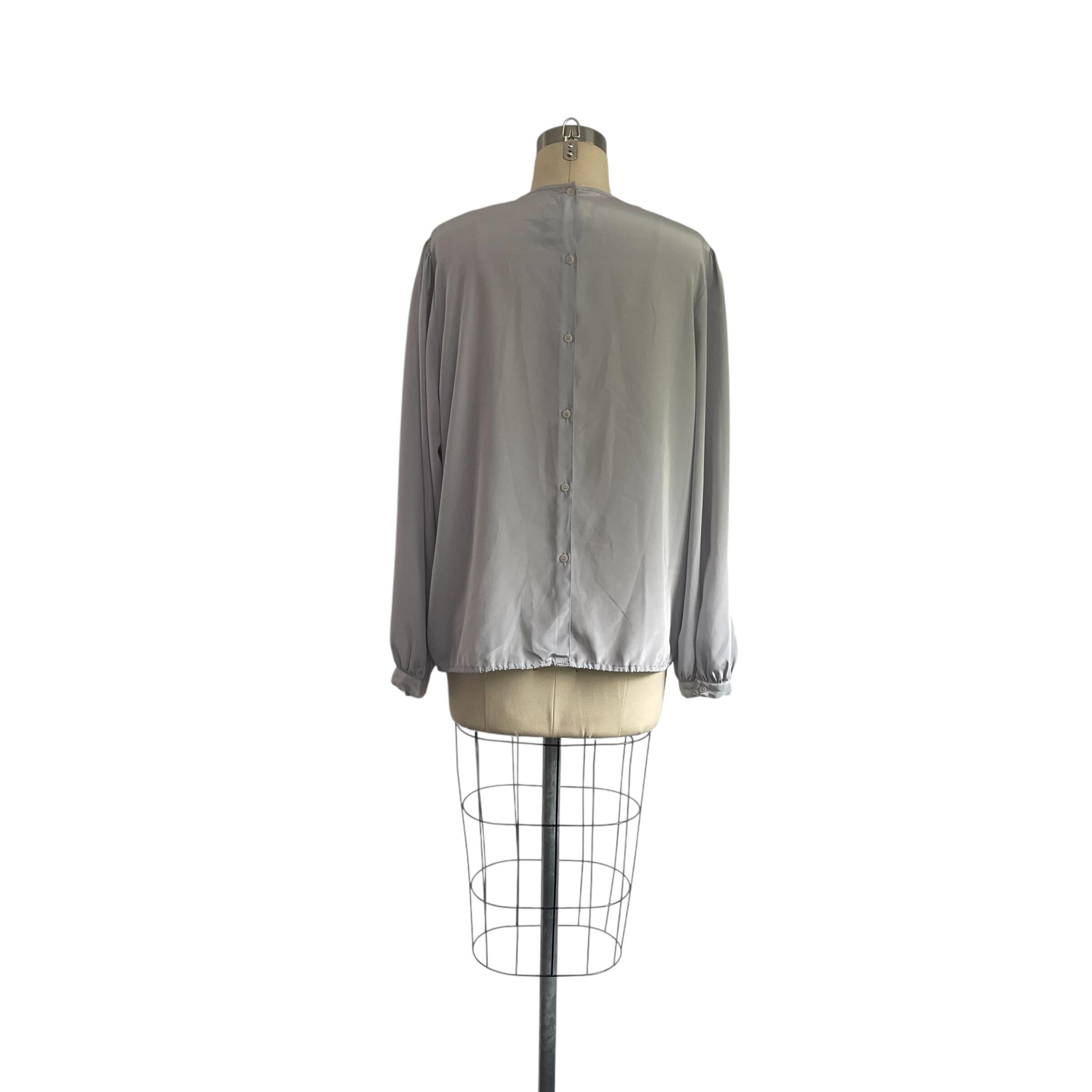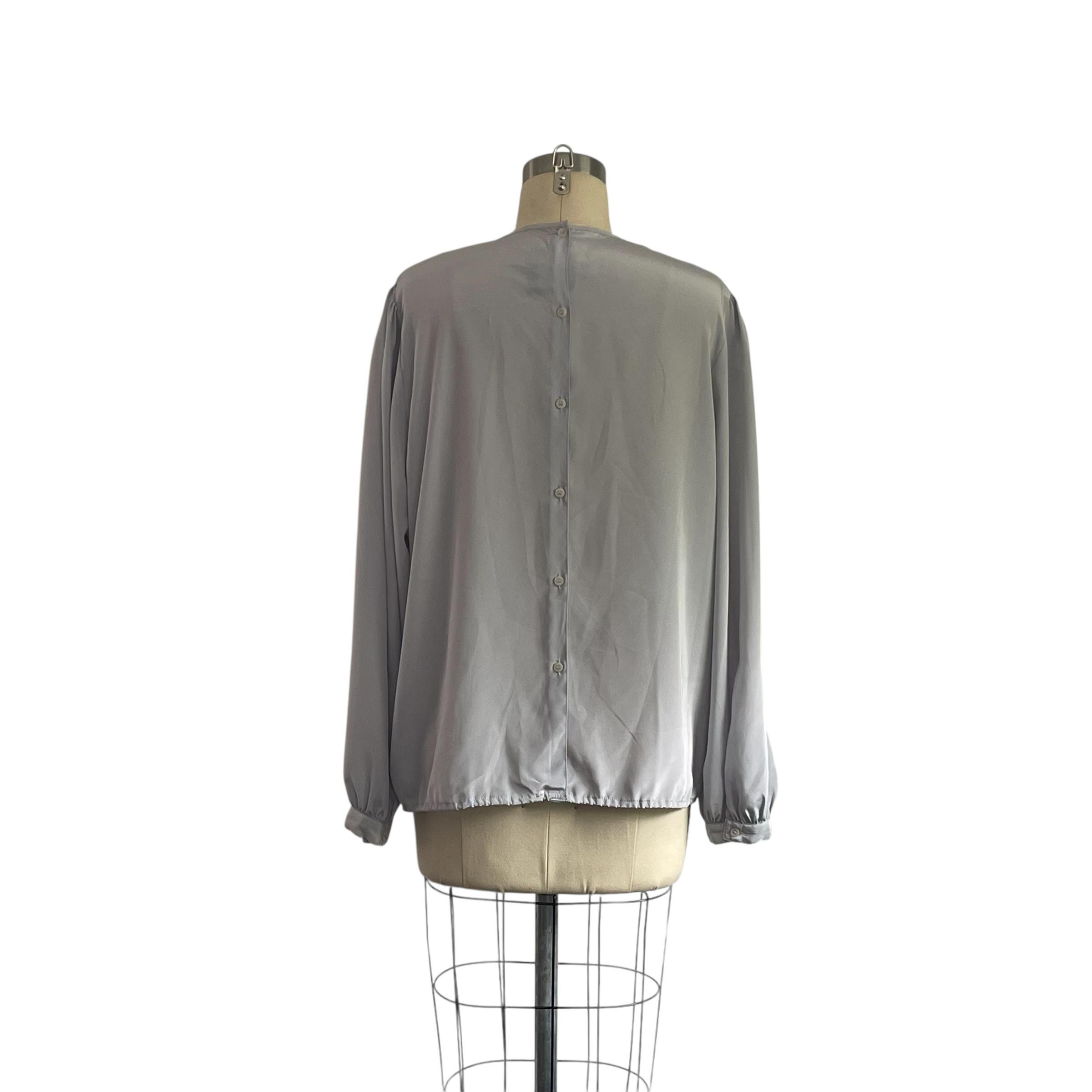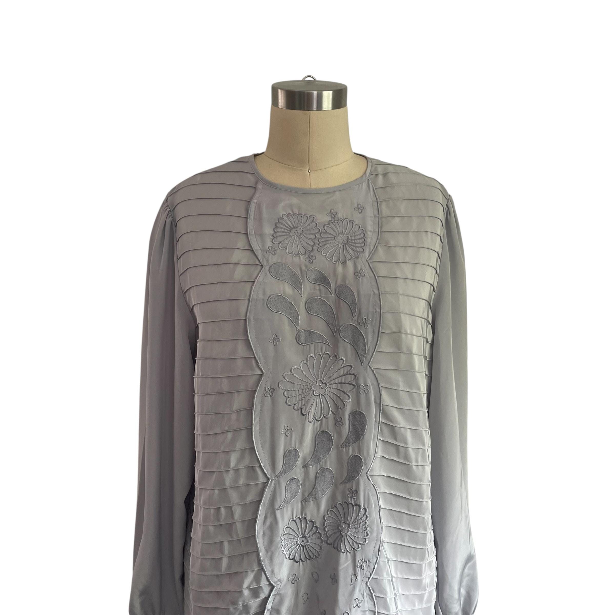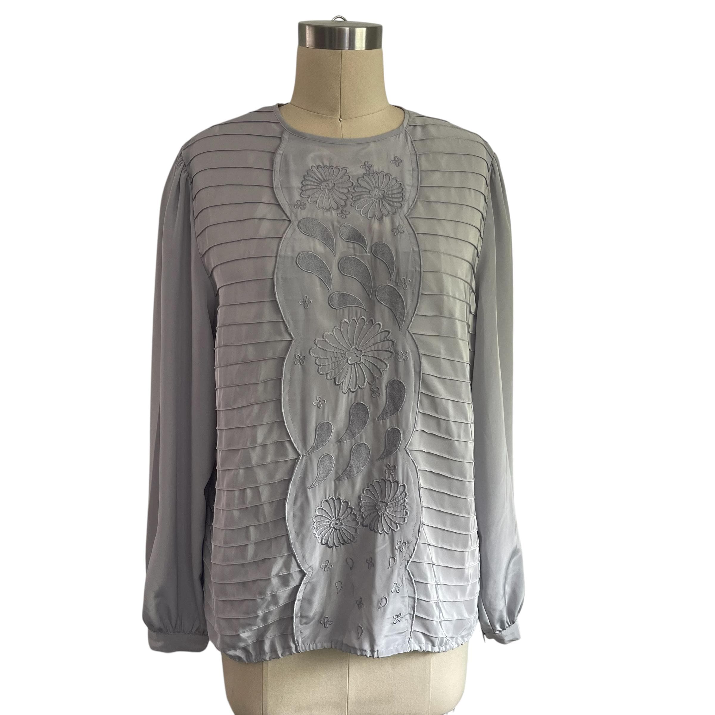 Vintage Suzelle Cool-Gray Boho Top: Bohemian, Hippie, Silky, Floral, Butterflies, Drops, Embroidered, Long Sleeves, Fairycore.