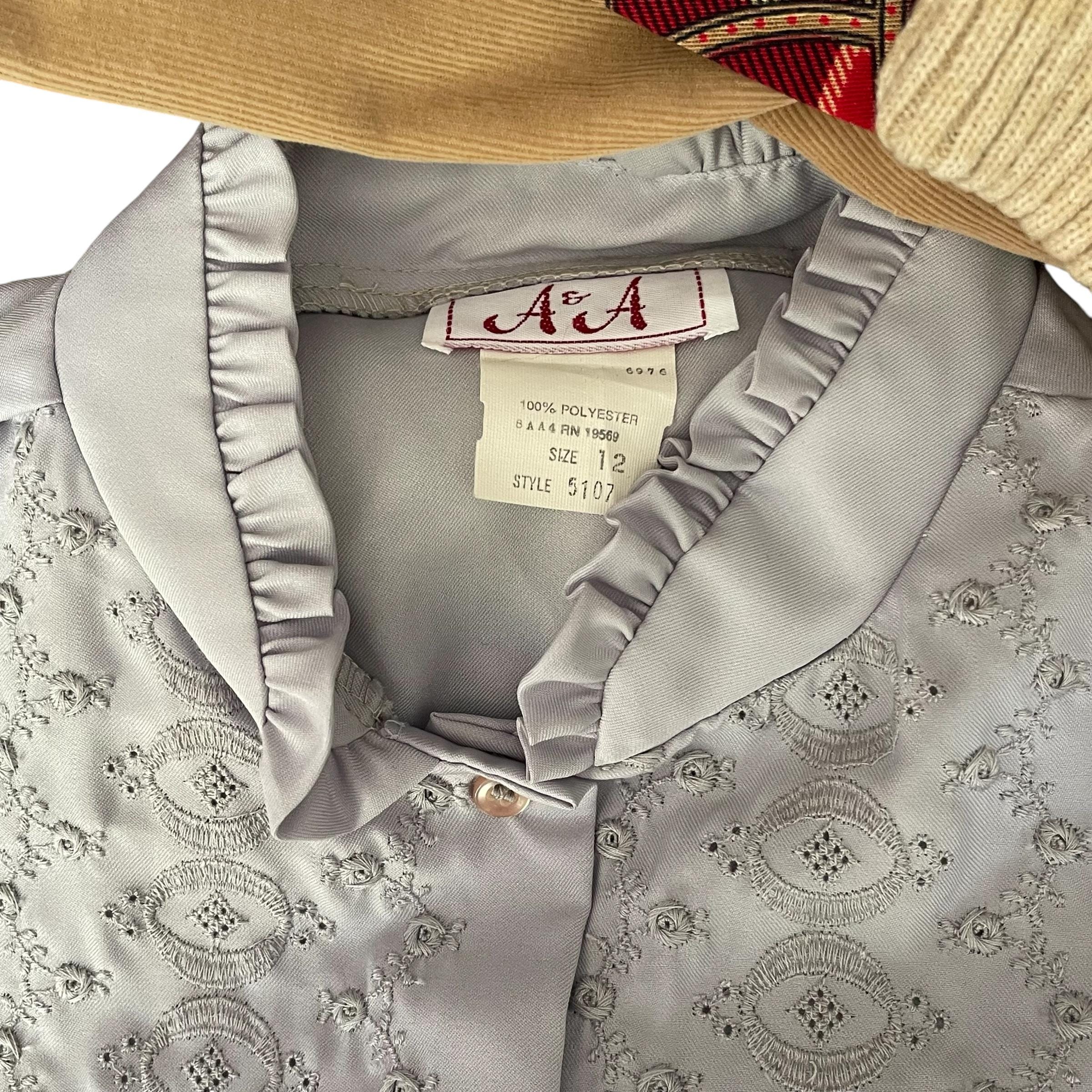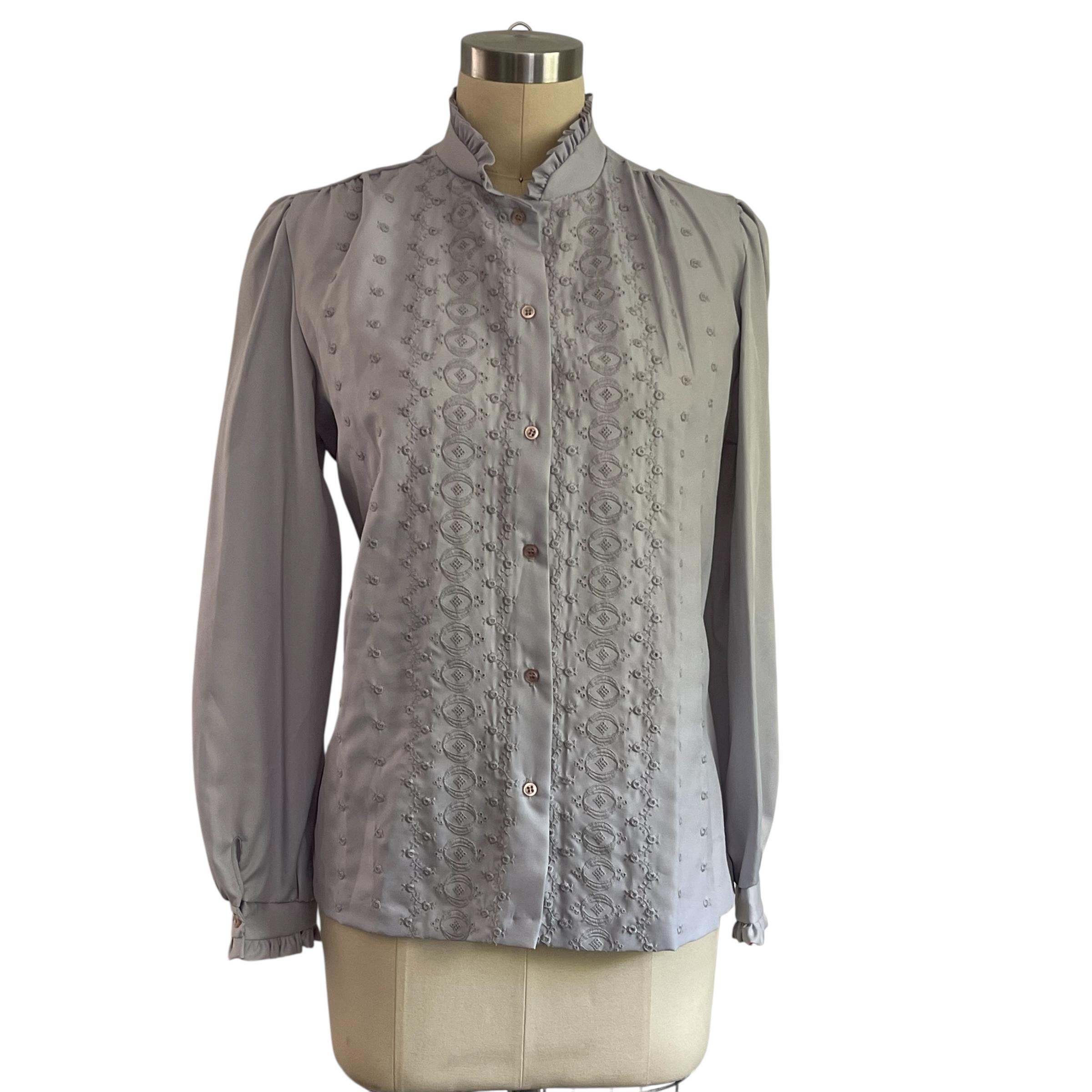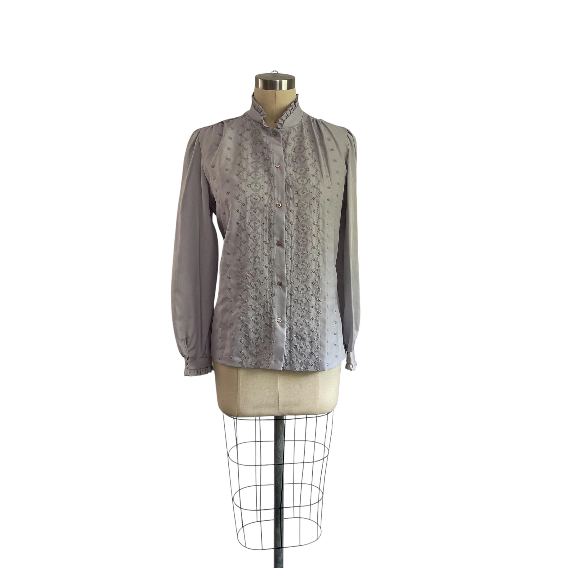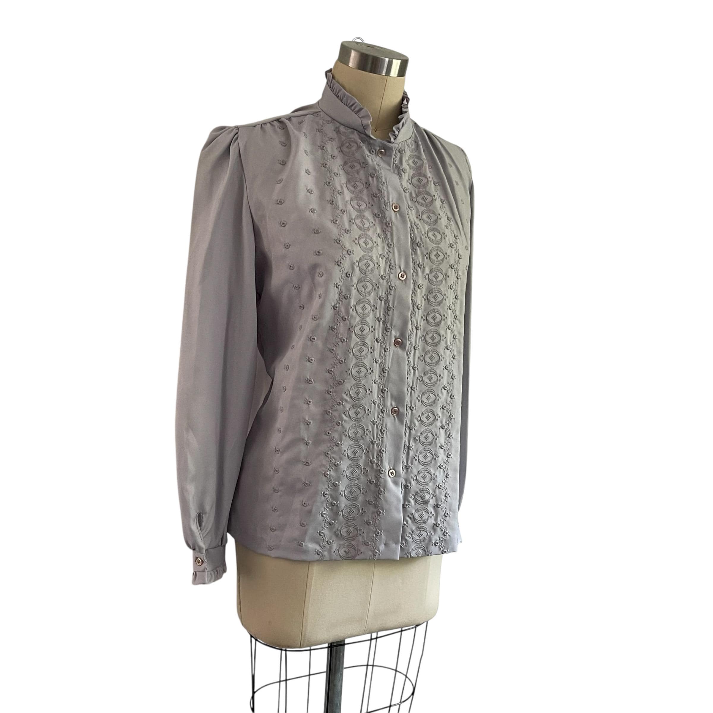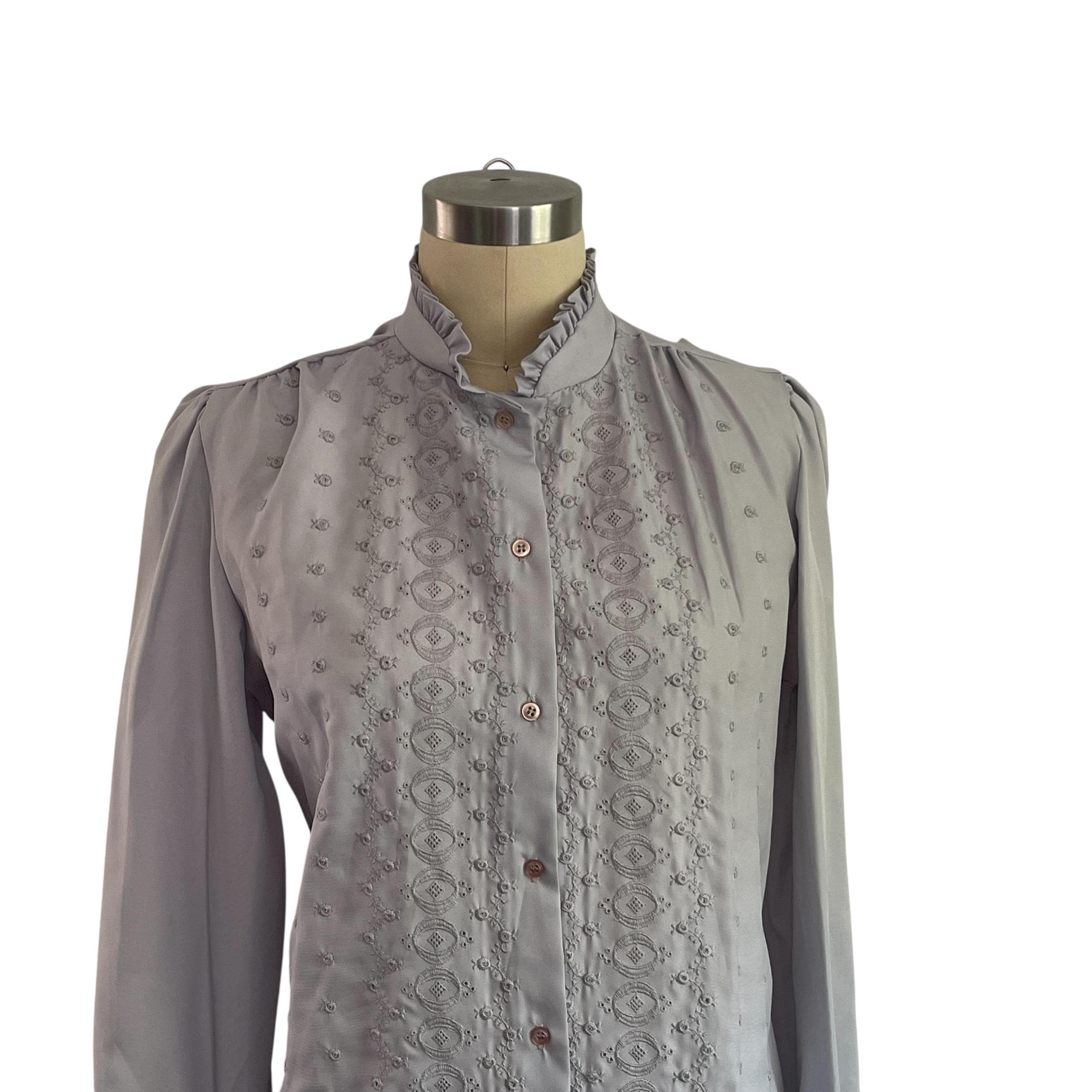 Vintage A&A Gray Boho Prairie Blouse: Embroidered Button-Up Top, Prairiecore, Cottagecore, Bohemian, Hippie, 70s 80s.