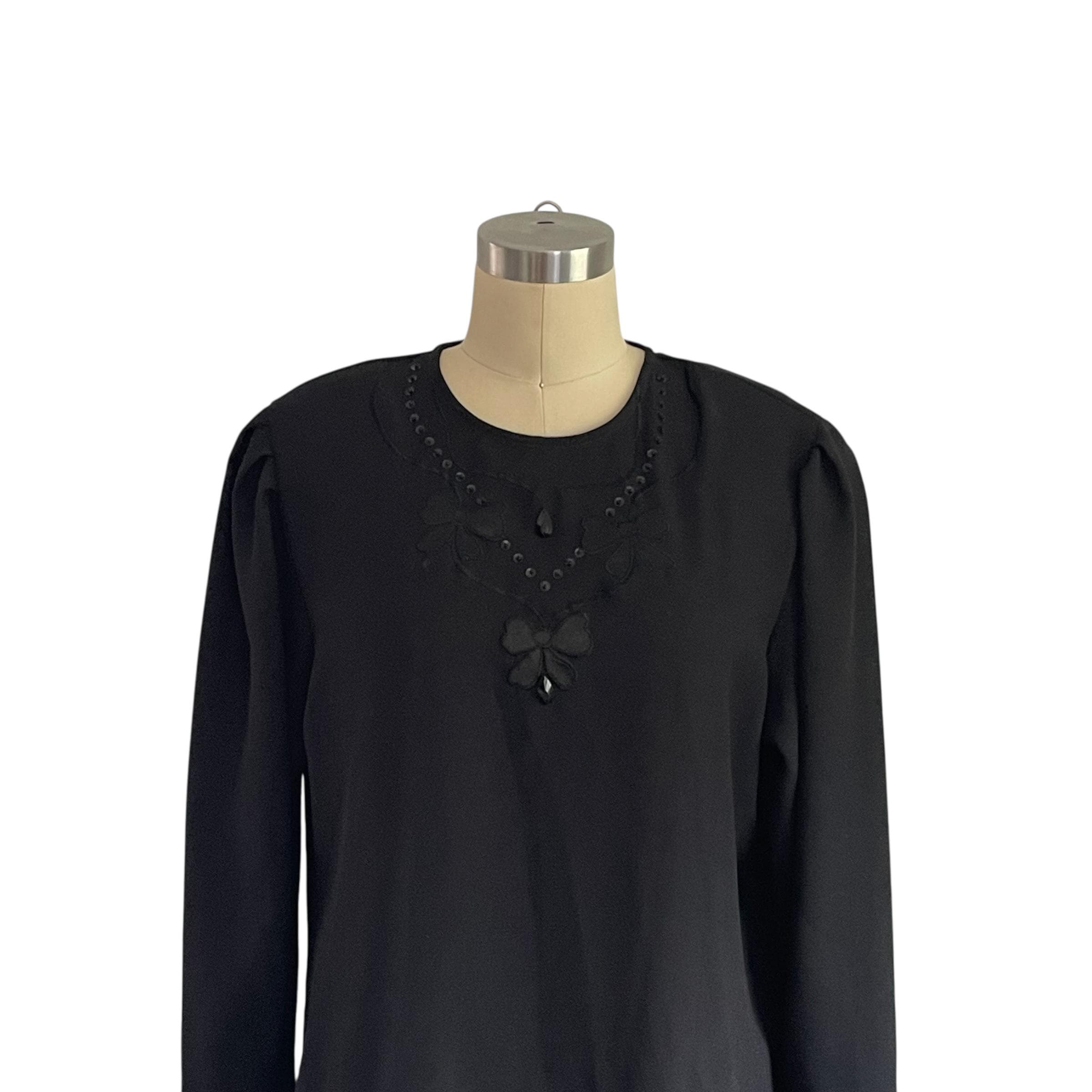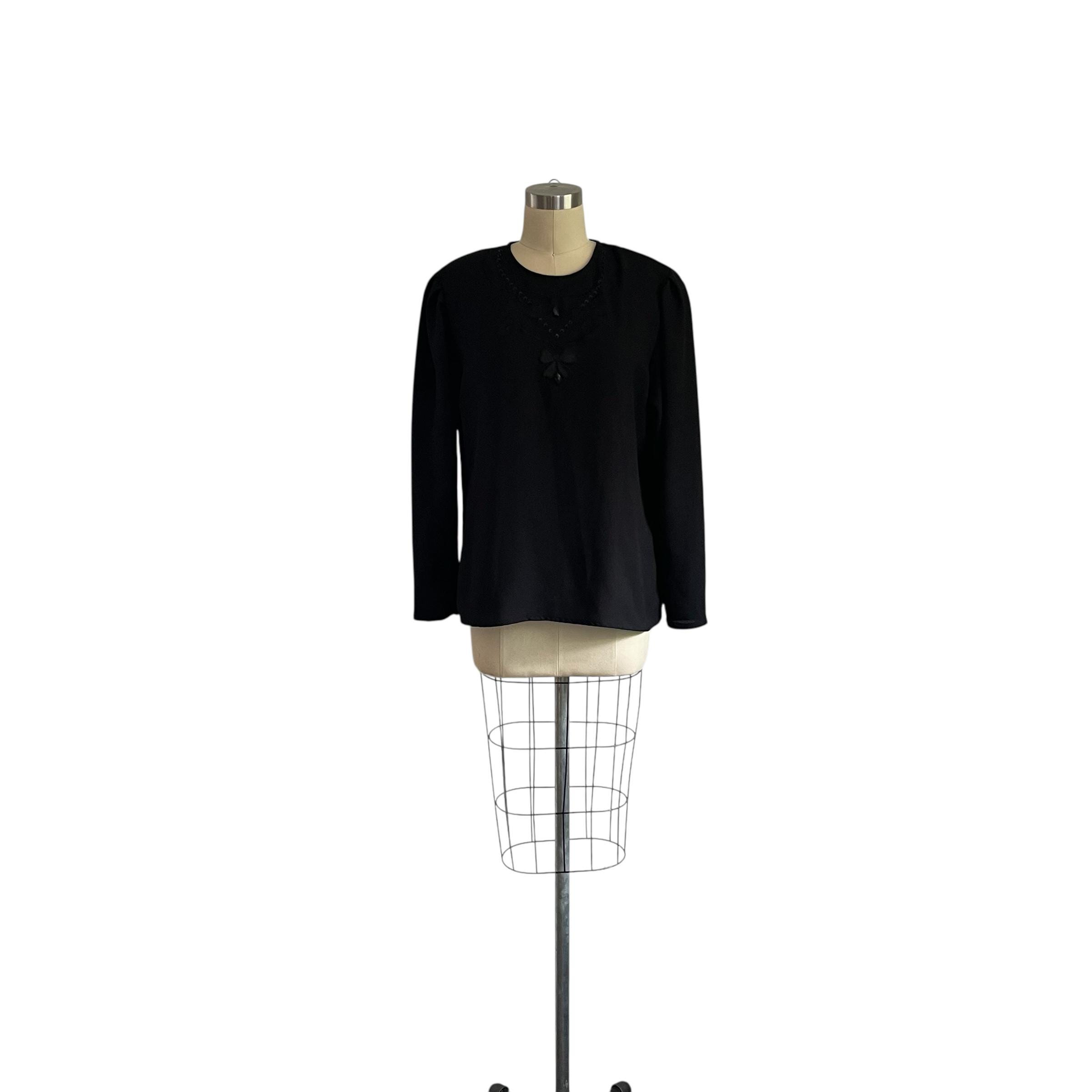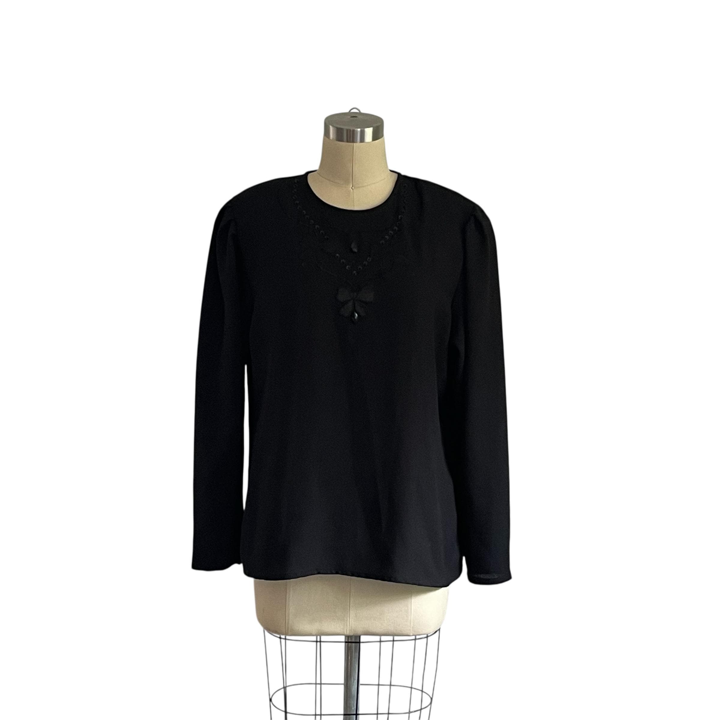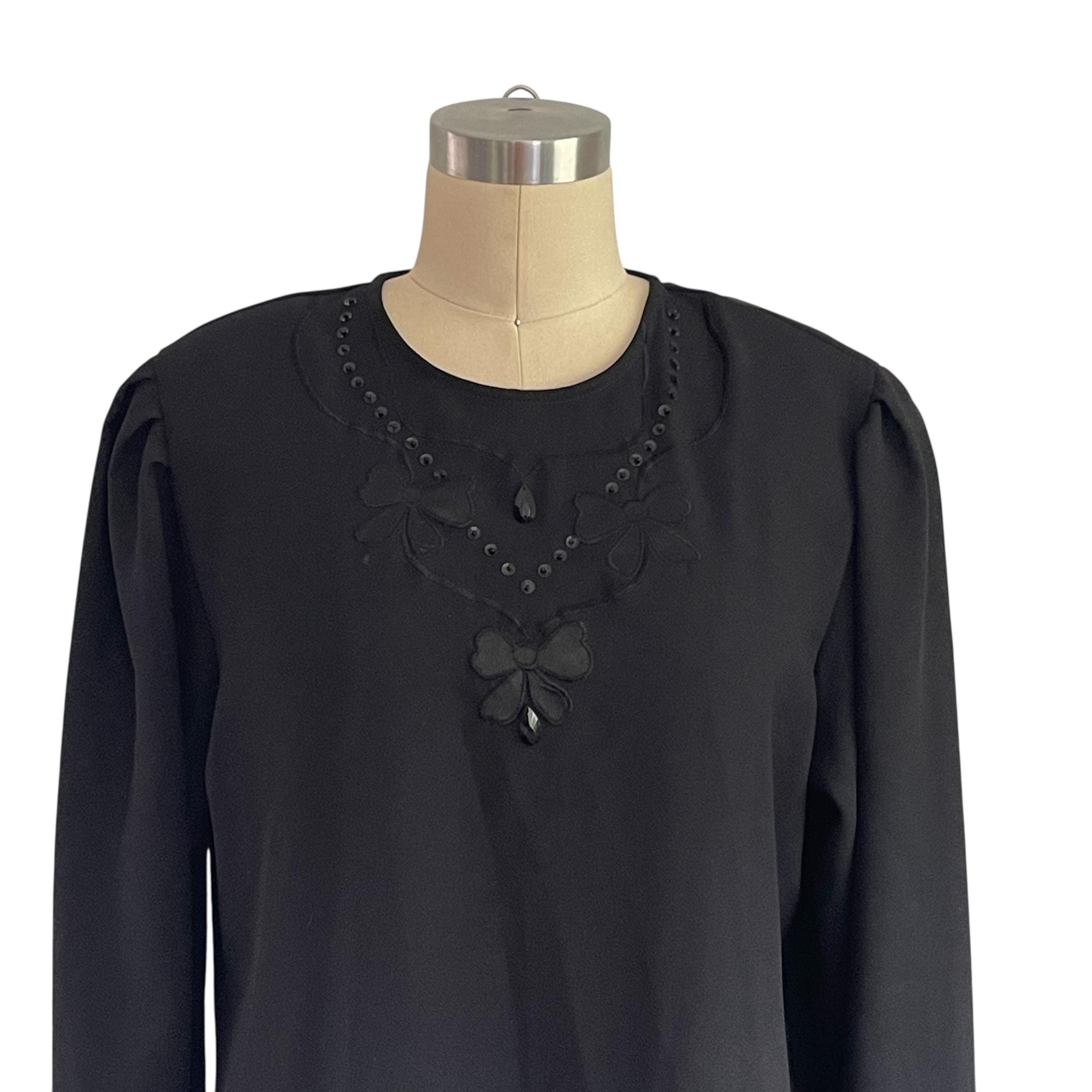 Vintage Peters & Ashley Black Sequin Ribbon Top: Cute Dark Blouse, Sewn Ribbons, Sequins, Black Gems, Dark Coquette, 90s Y2K.