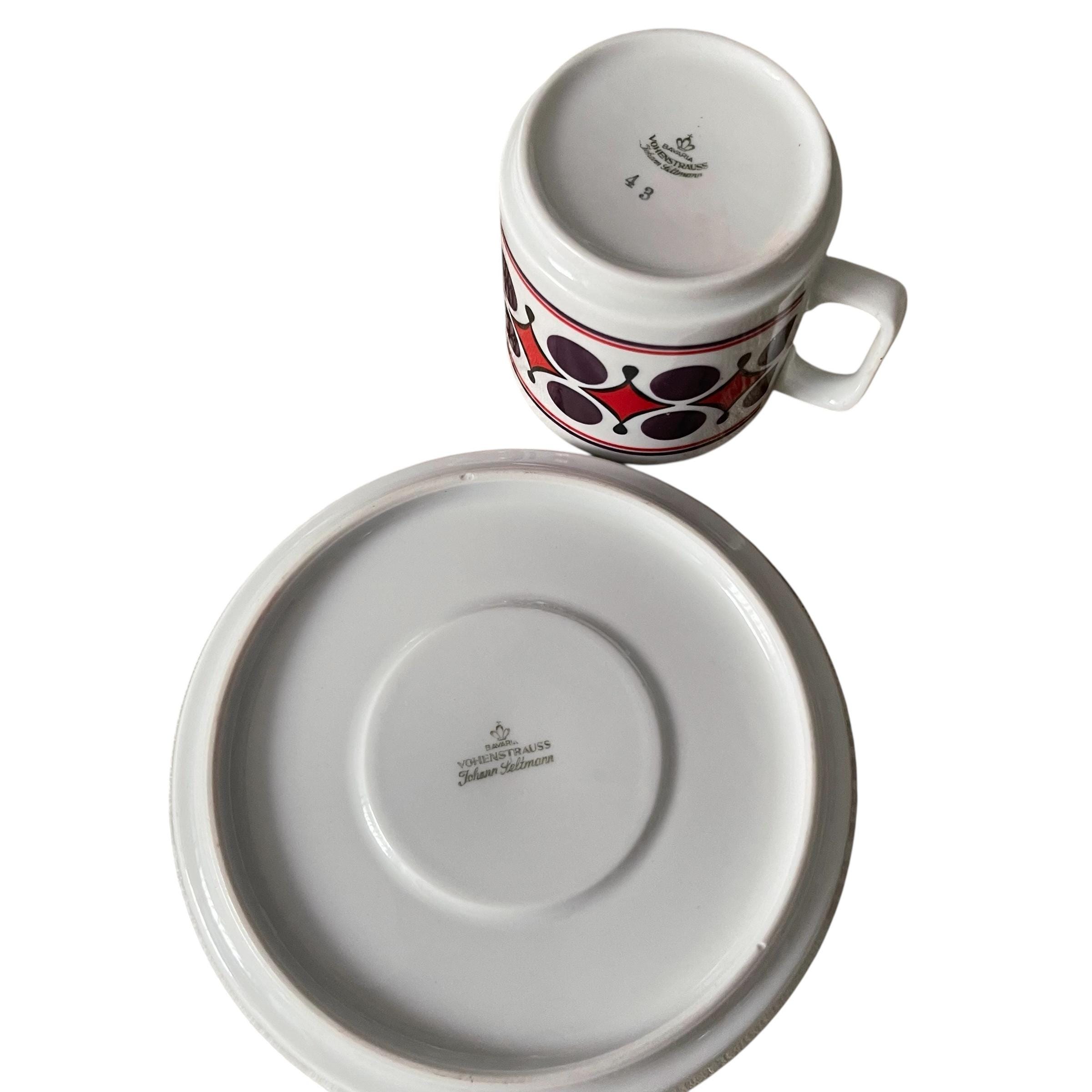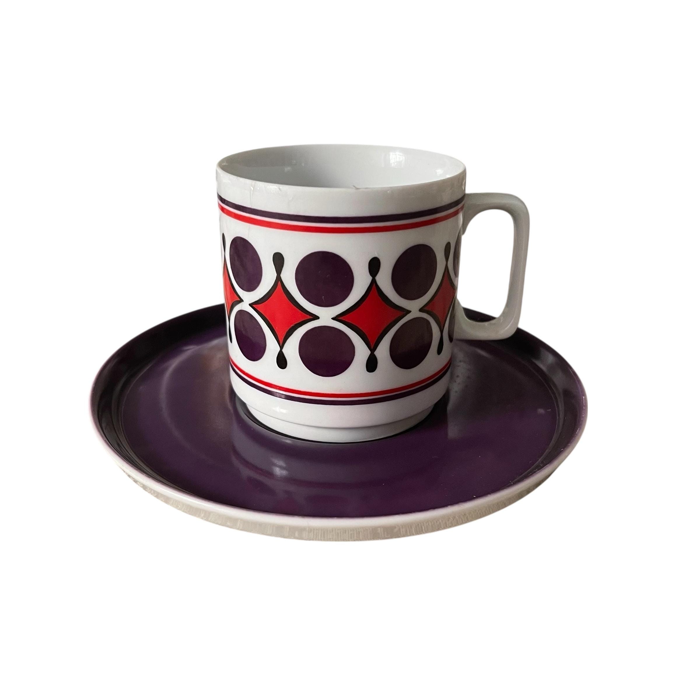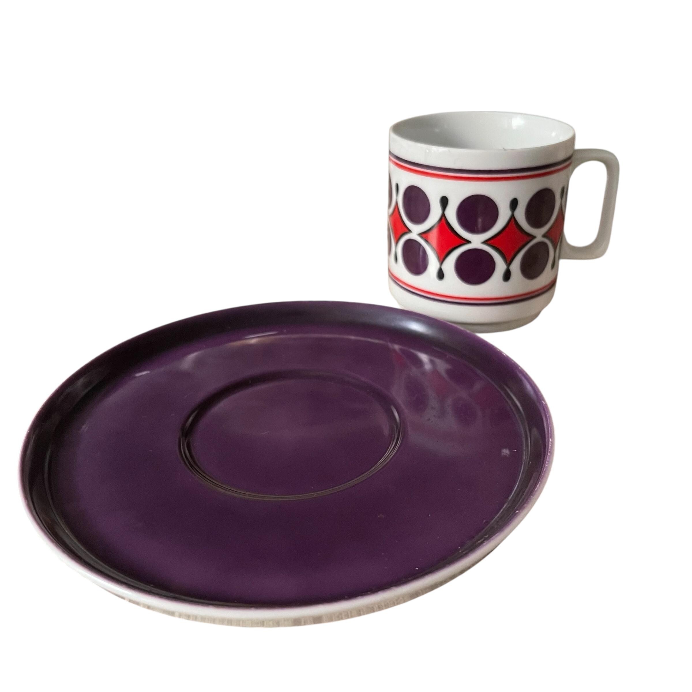 Vintage Purple Multicolor German Bavaria Cup and Plate Set: Vohenstrauss Johann Selmann Cup and Plate Set, Purple Variation, 70s