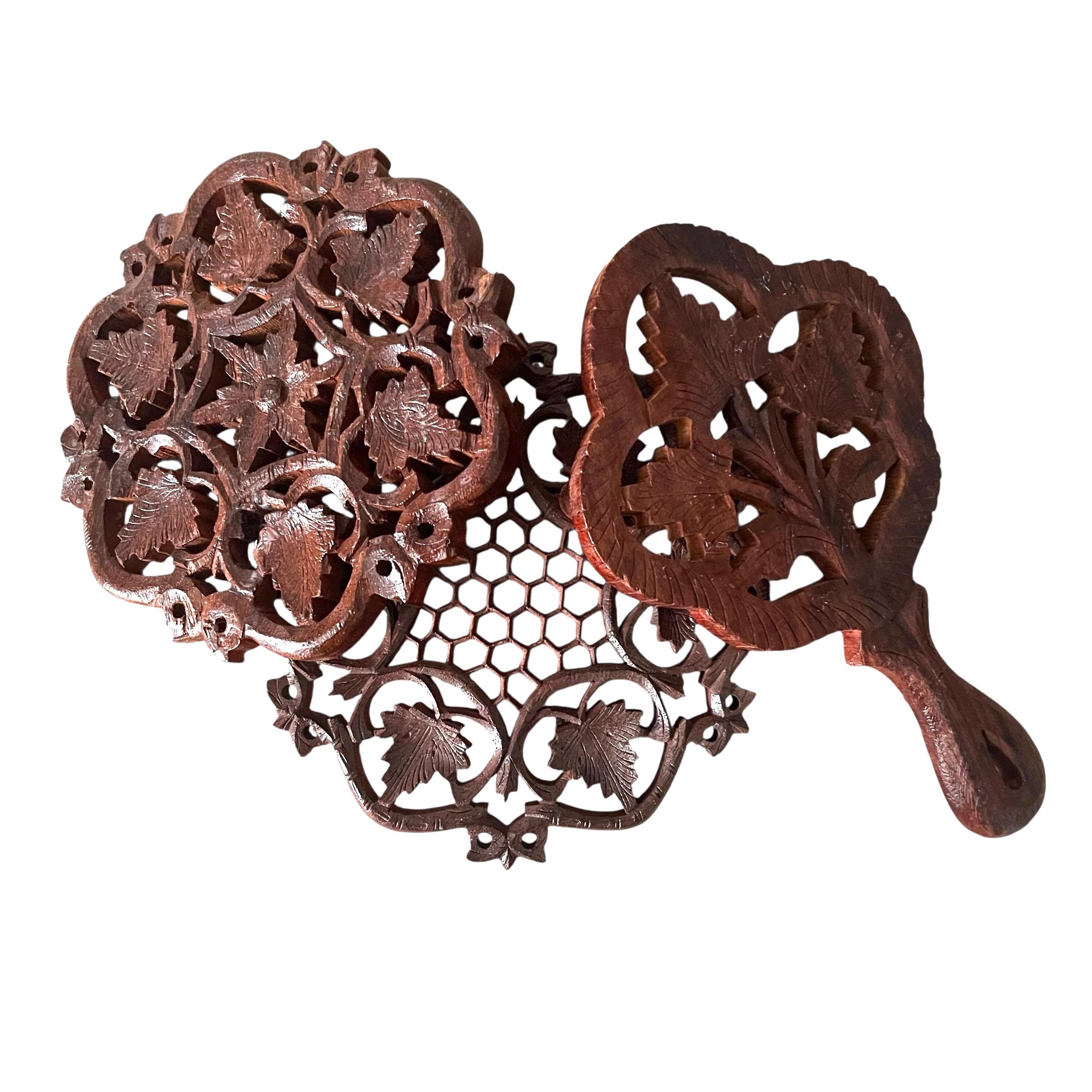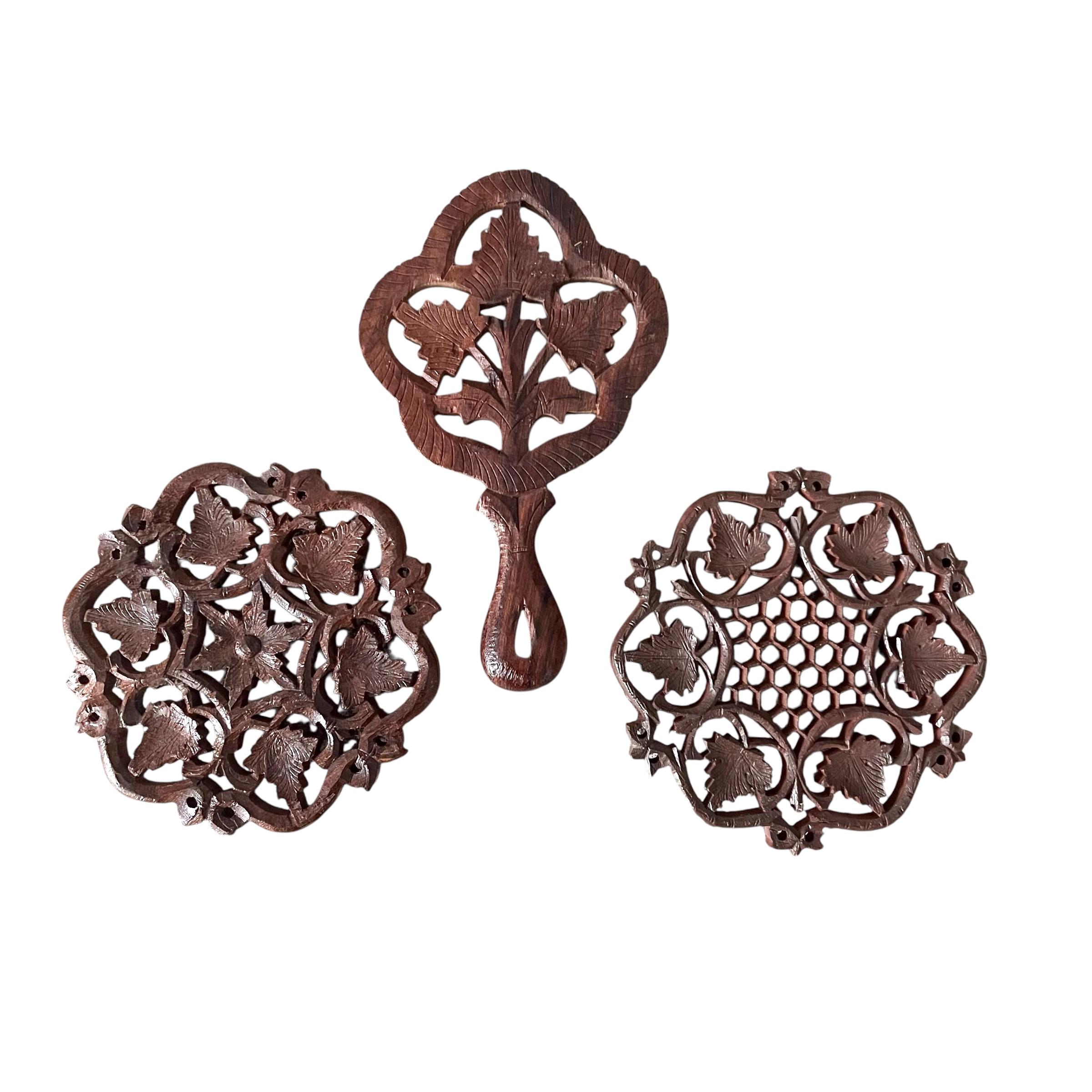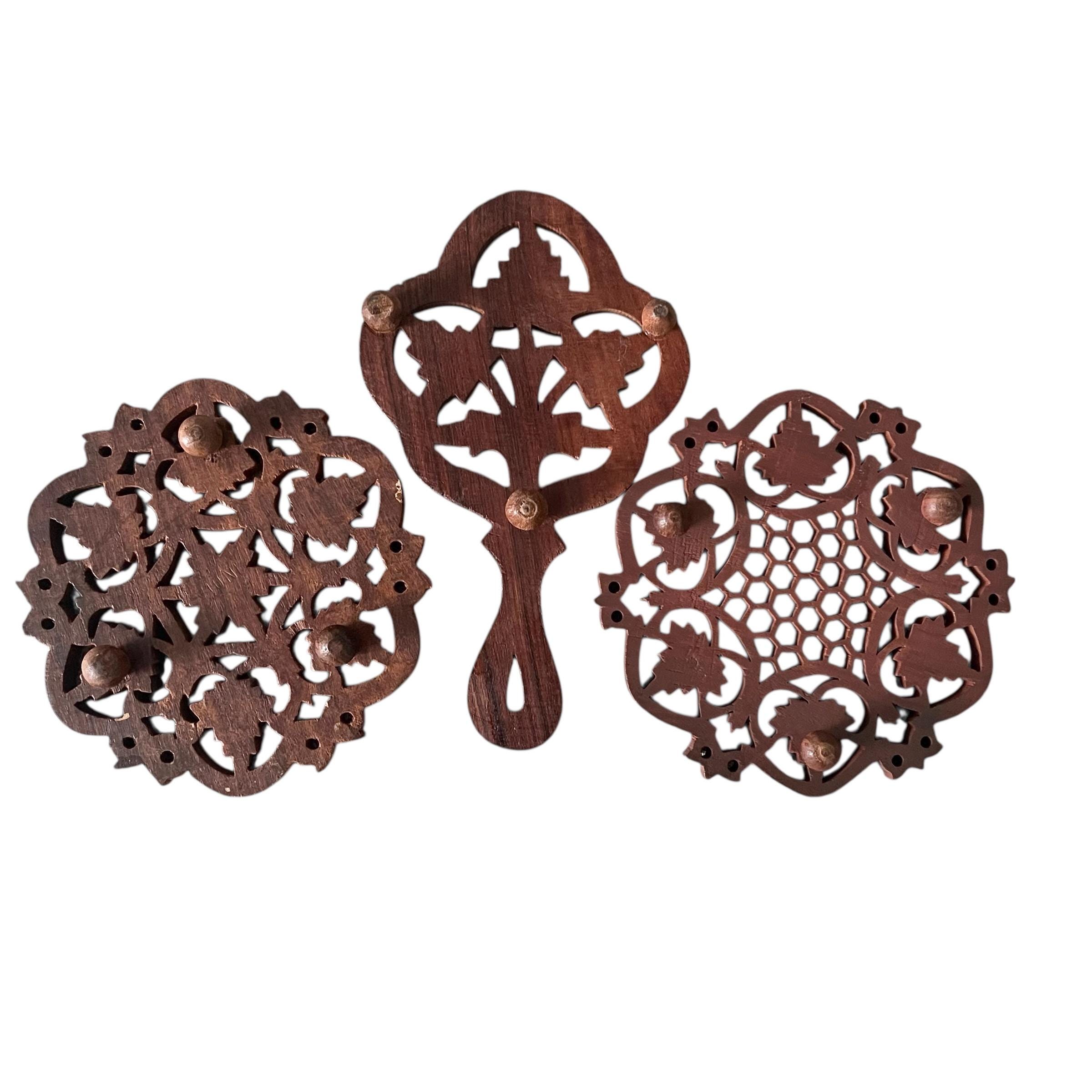 Vintage Hand Carved Wooden Wall Trivet Bundle of 3. Carved Wood Art Decor. Floral Wall Trivet Decor Set. Cottage Kitchen Trivet. 60s. 70s.