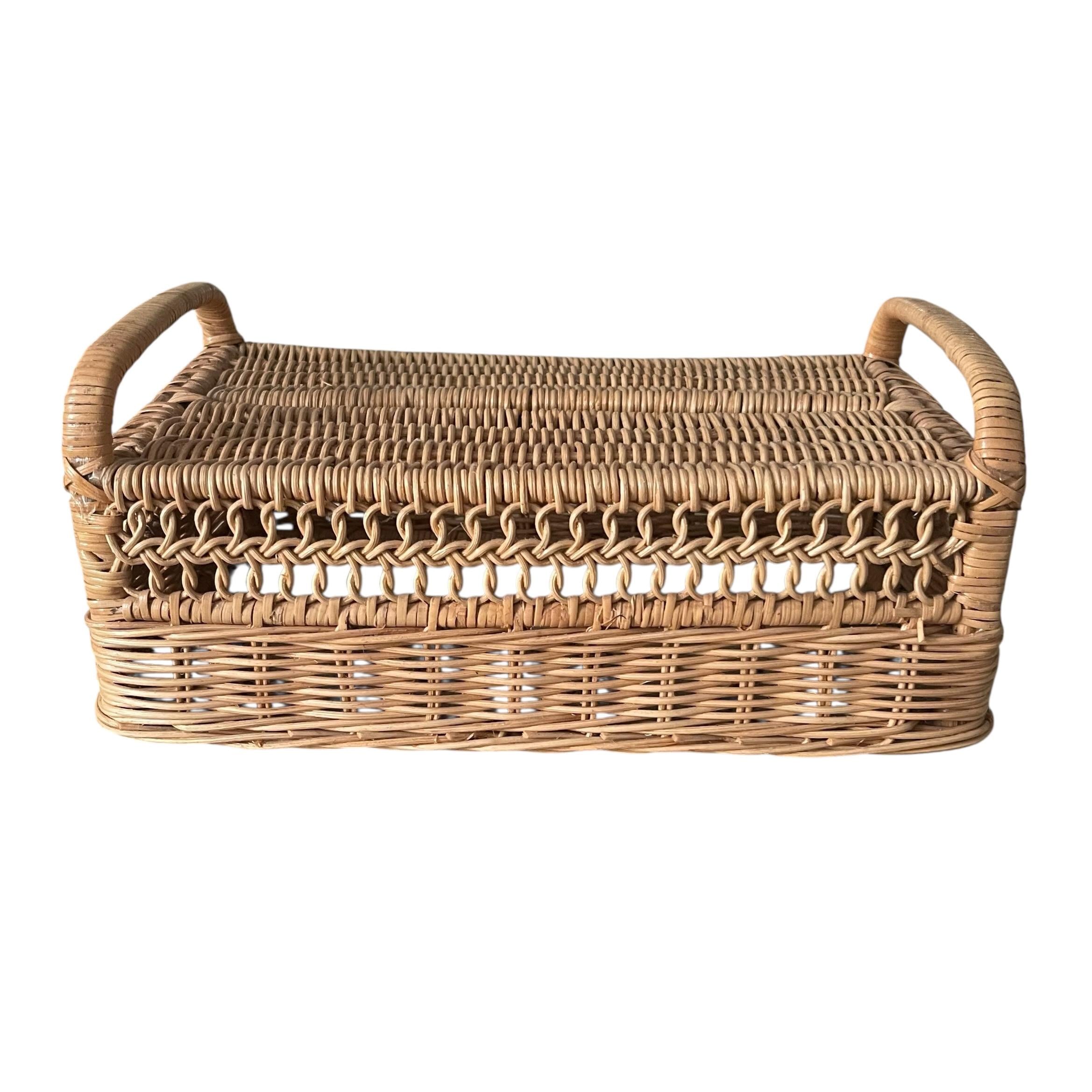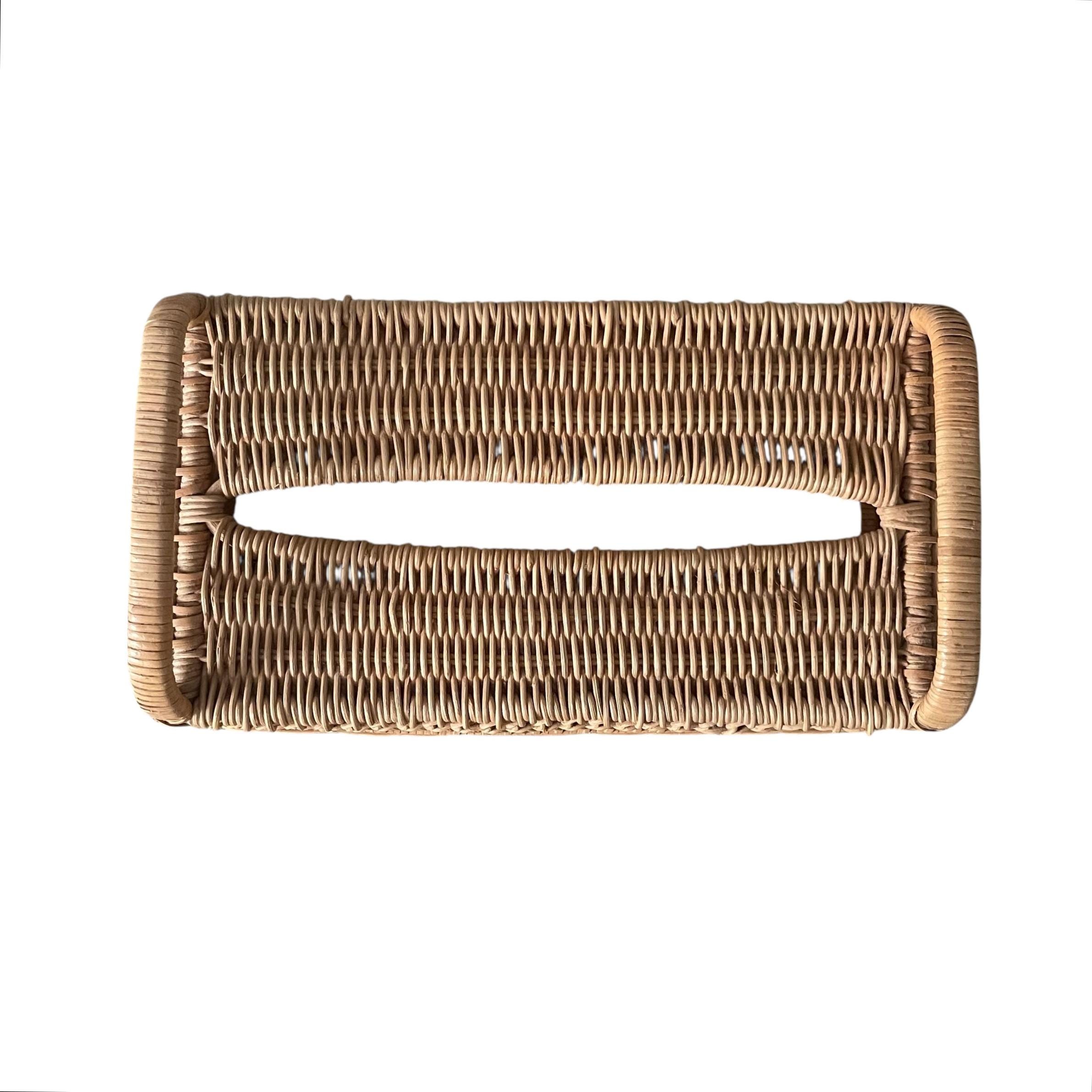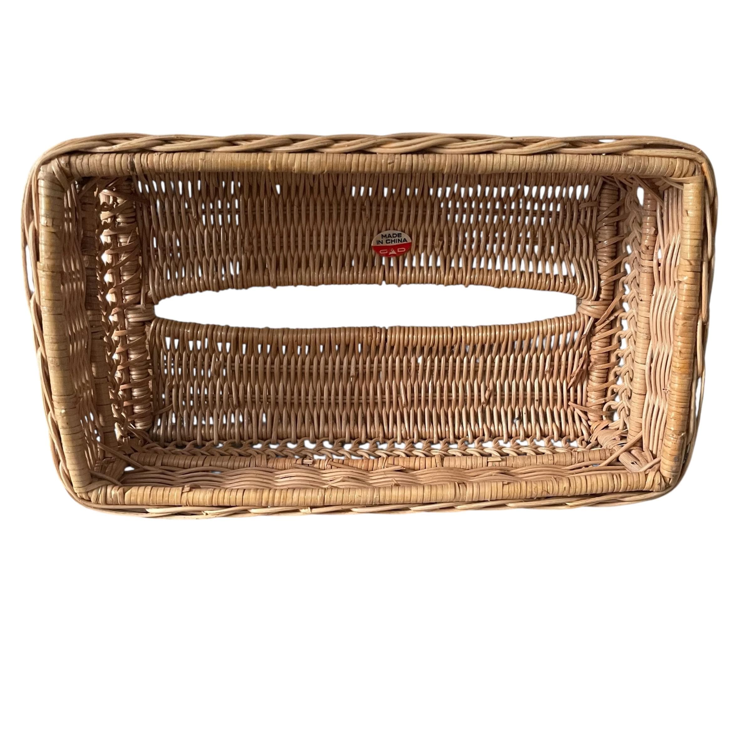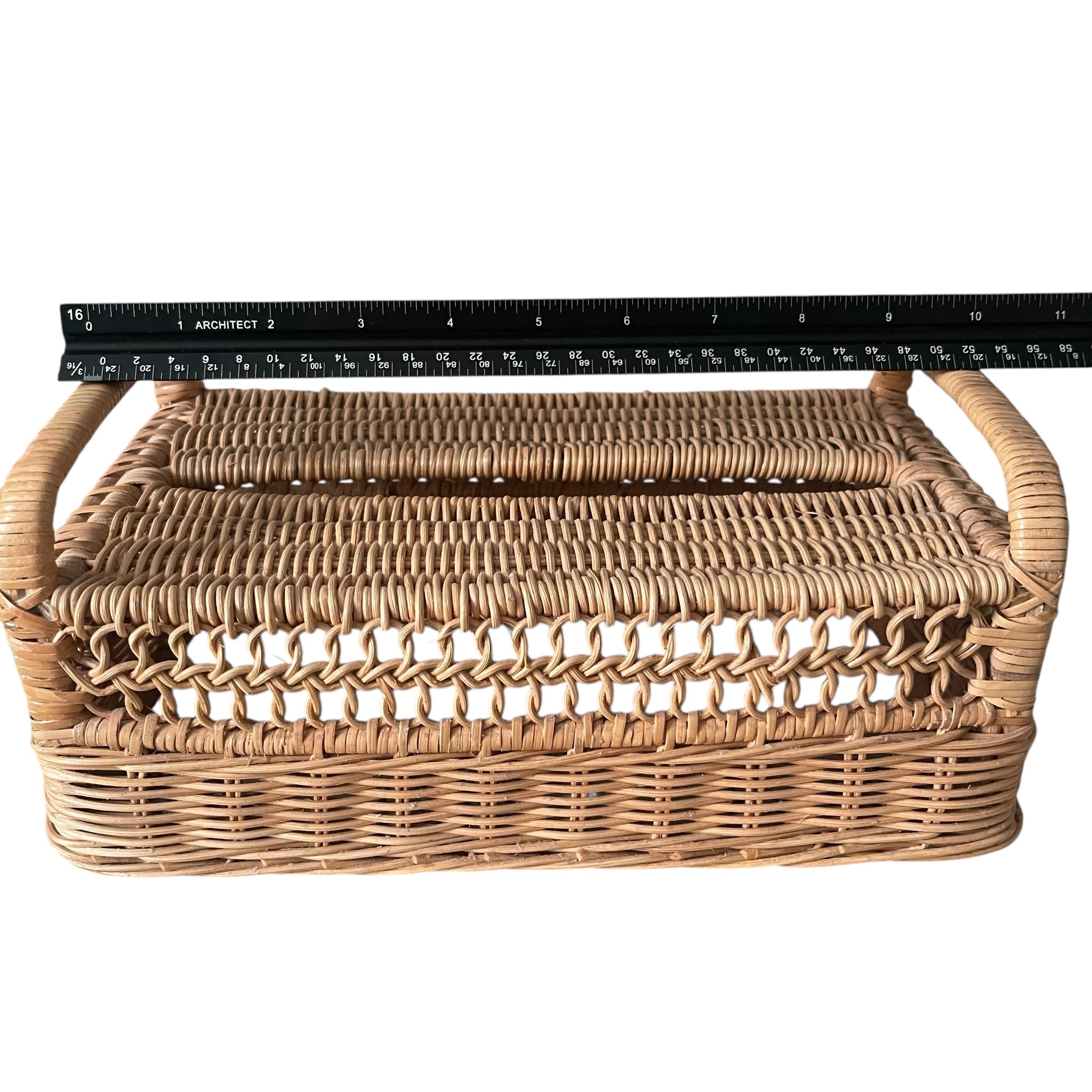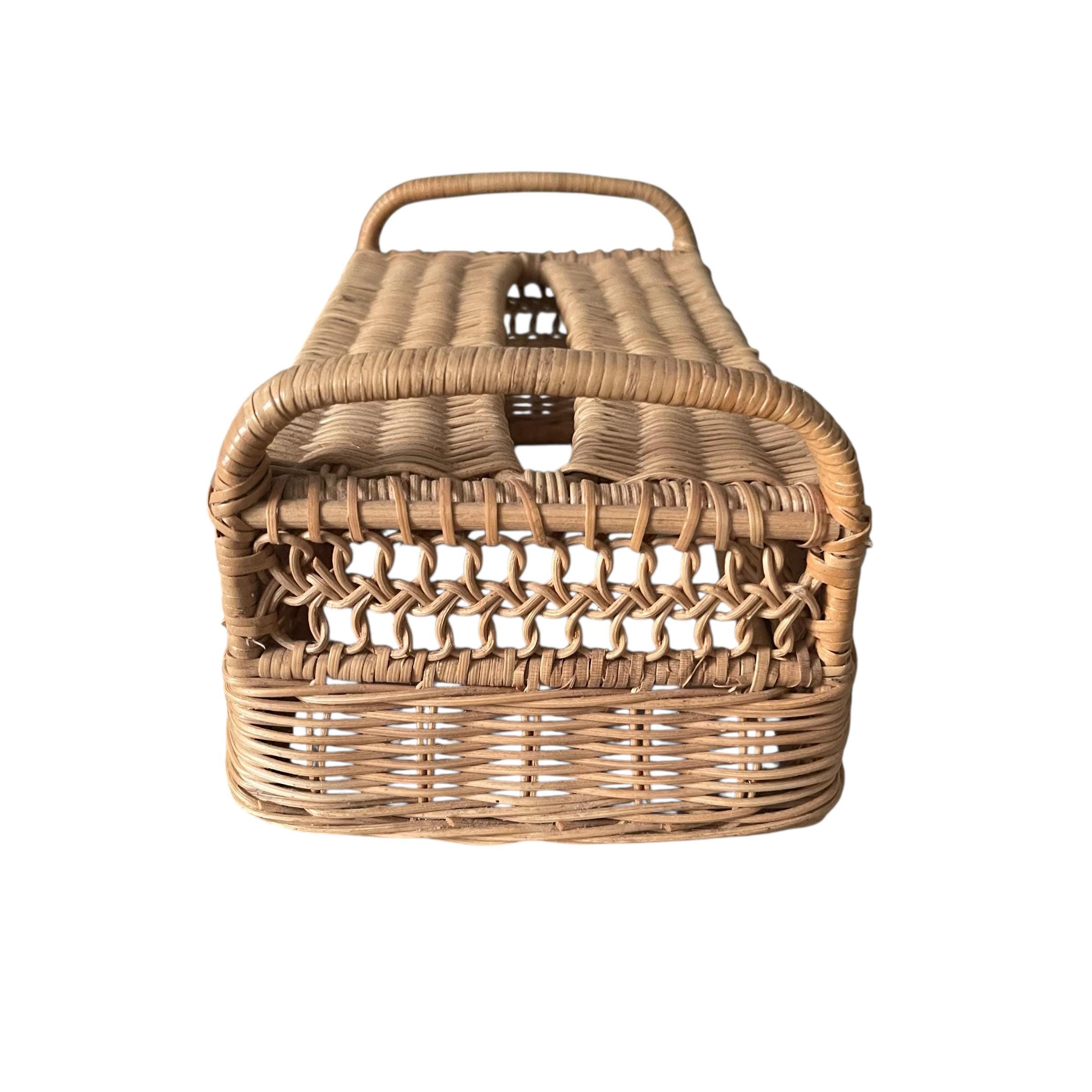 Vintage Wicker Woven Tissue Box: Tissue Box w/Handle, Boho Hippie Tissue Box, Cottage Wicker Tissue Box, Basket Tissue Box.