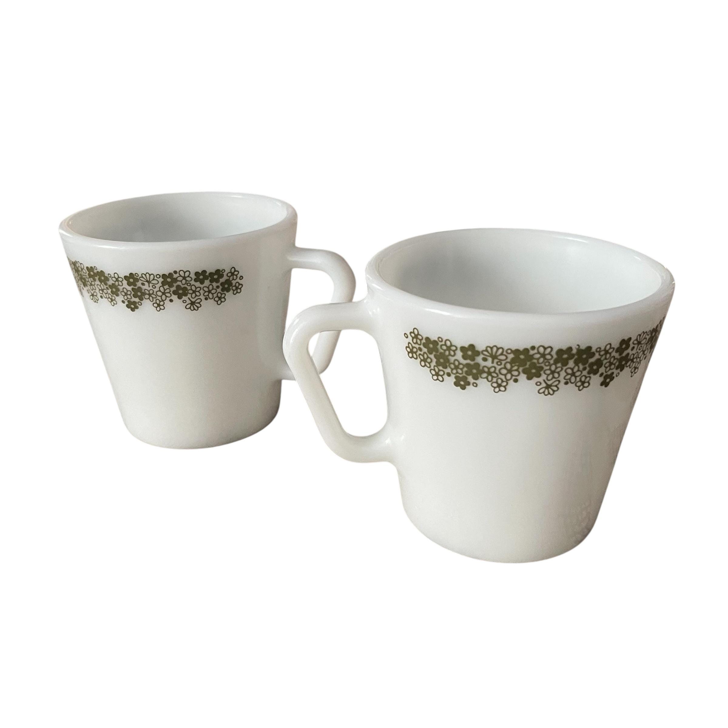 Vintage Pyrex Spring Blossom Crazy Daisy Mug Set: Set of 2, Floral Patterns, Pyrex Glassware, Milk Glass, Coffee Mugs, Tea Mugs, Cottagecore