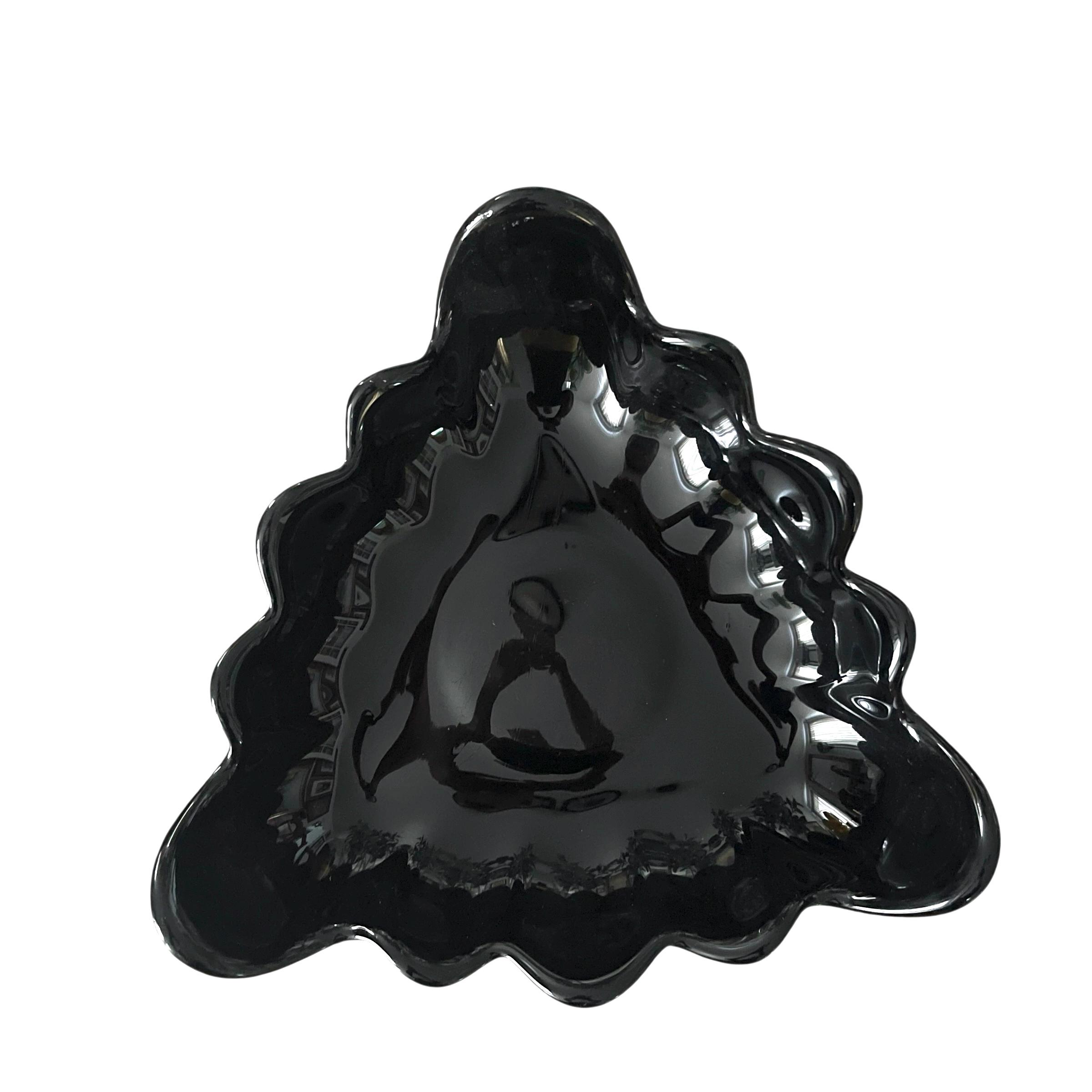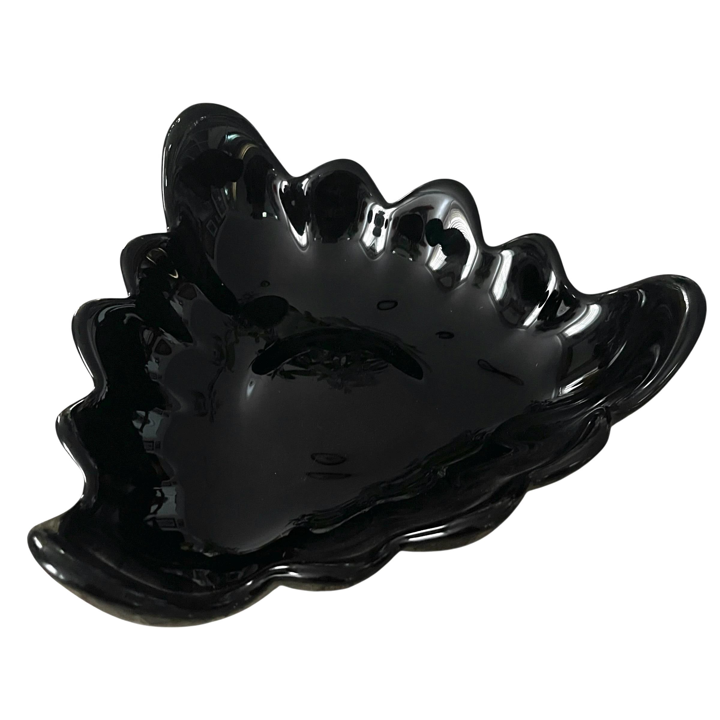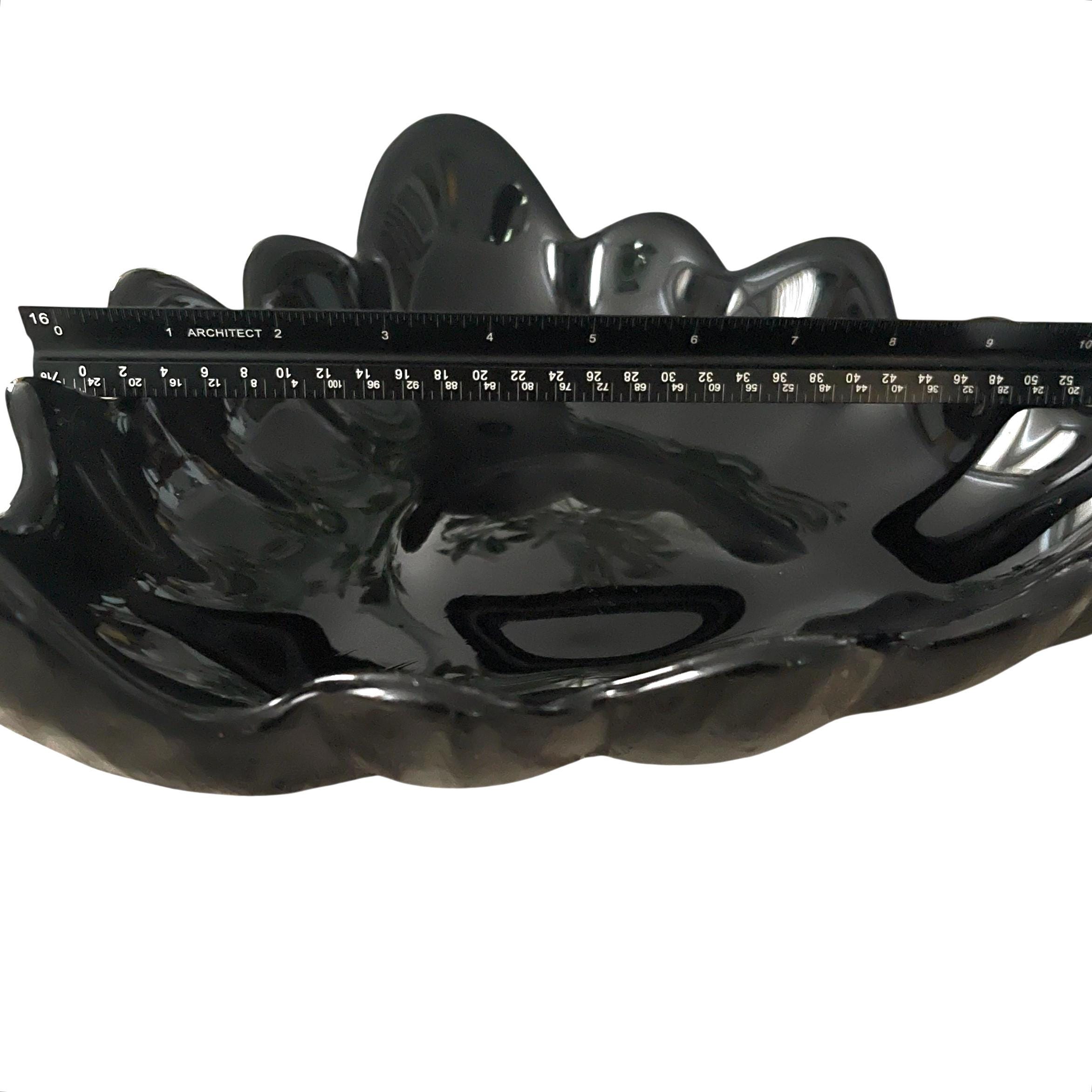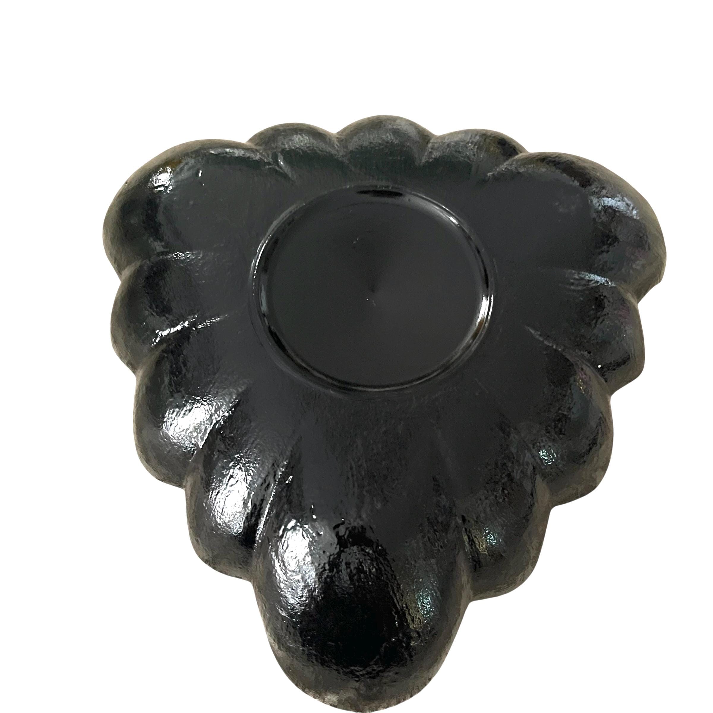 Vintage Black Glass Decor Tray: Scalloped, Heavy Glass, Dark Academia, Black Glass Trinket Dish, Mod Glass Tray Decor.