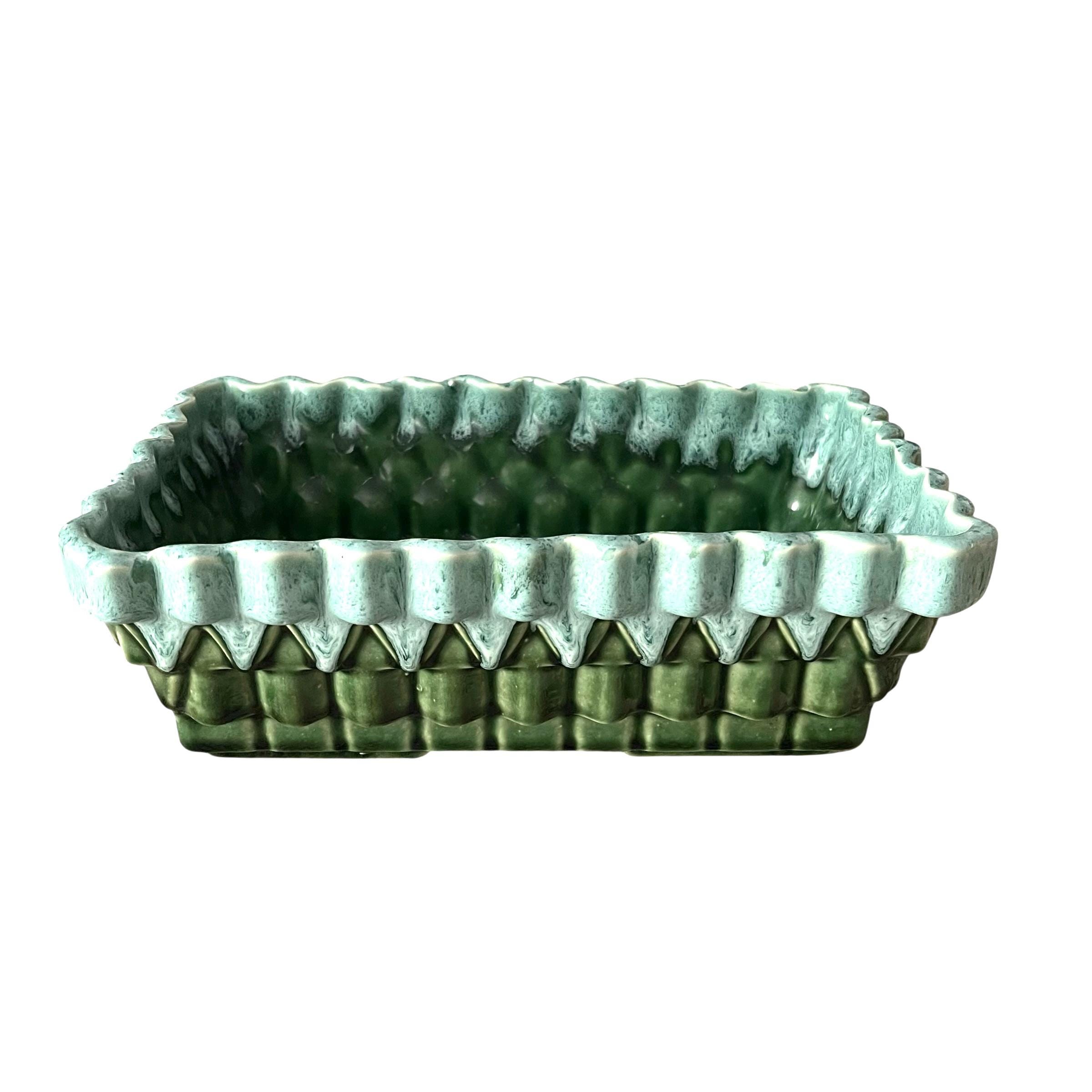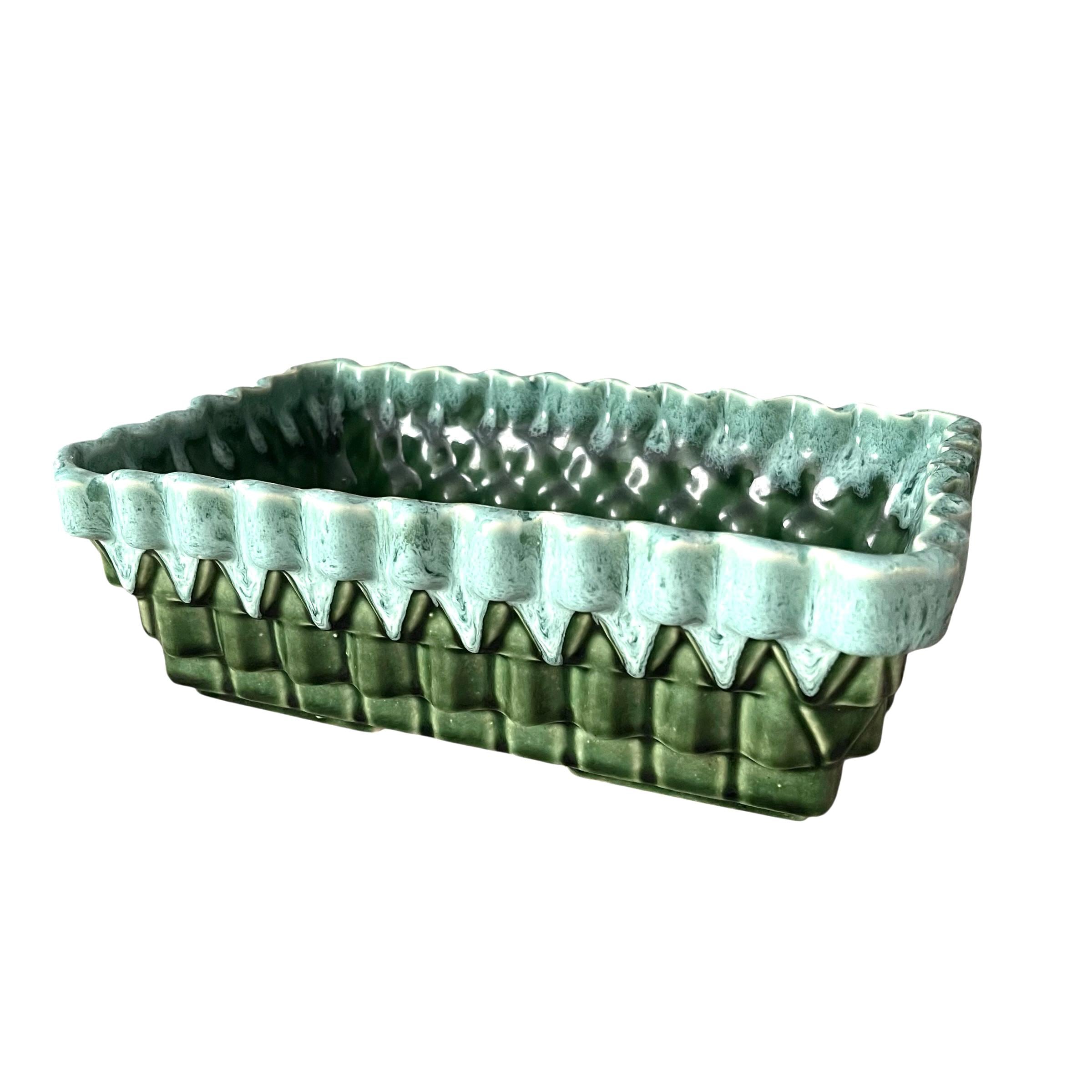 Vintage MCM Drip Glazed Pottery Planter: Green Drip Glaze Pottery, 50s 60s 70s, Mod Garden Decor, Mid Century Pottery.