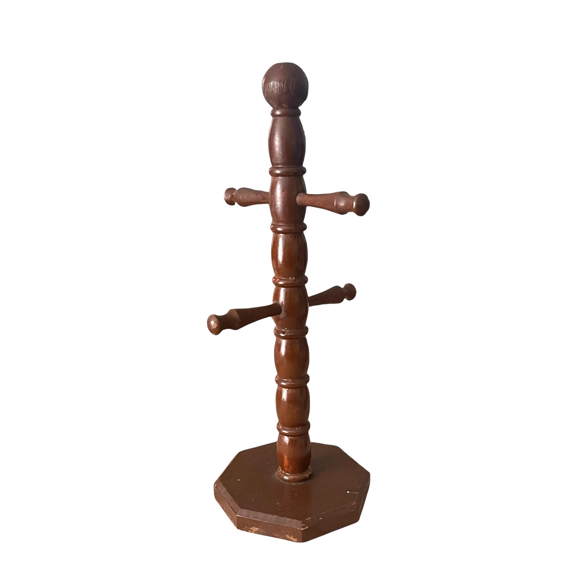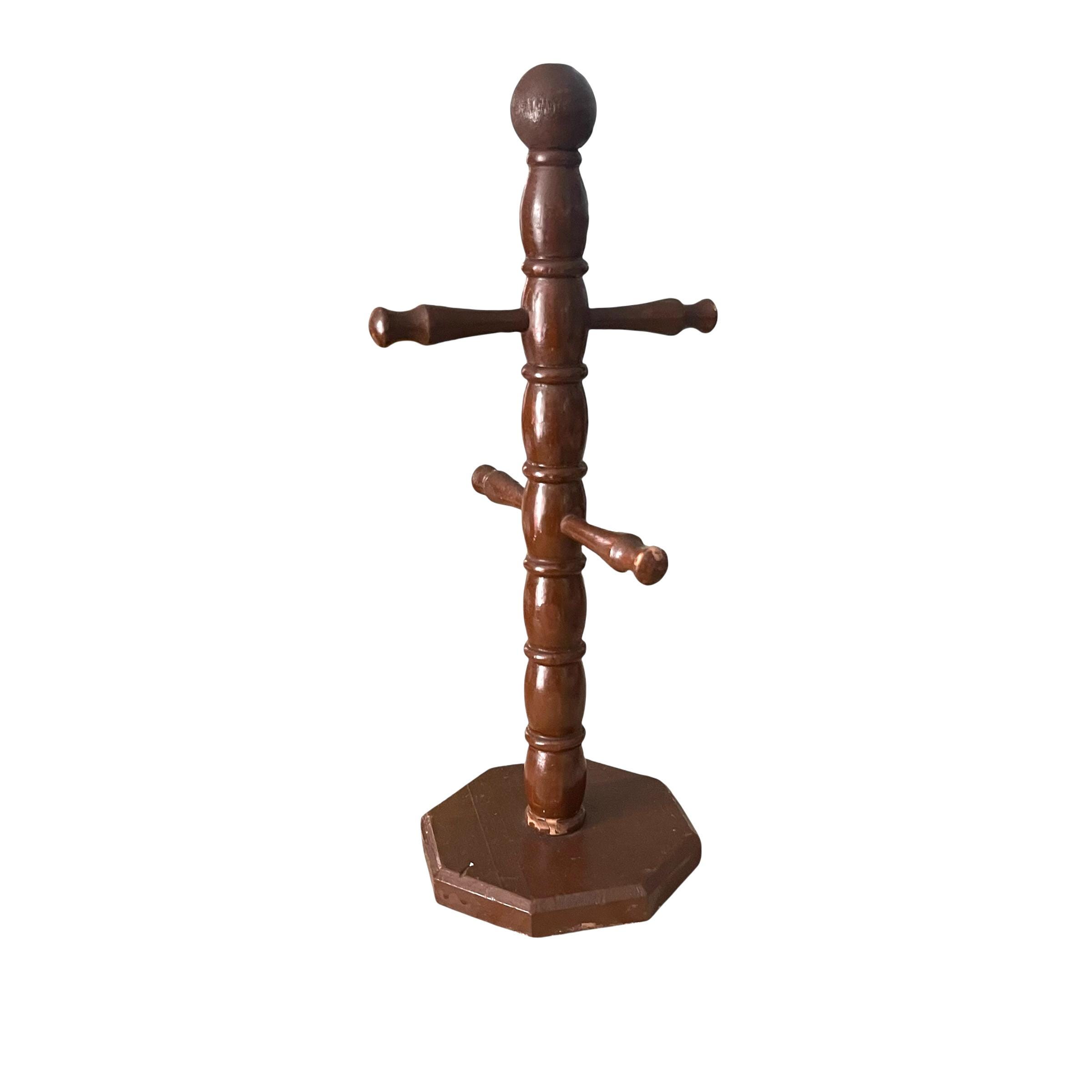 Vintage Wood Mug Tree: 70s Mod Wood Mug Tree, Cottage Mug Tree, Vintage Mug Tree, 4 Mugs Tree, Kitchen Decor.