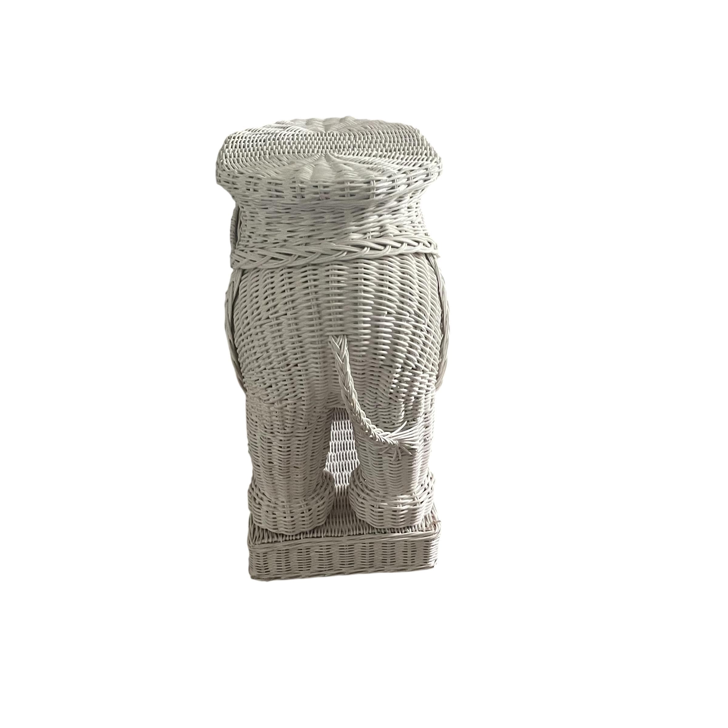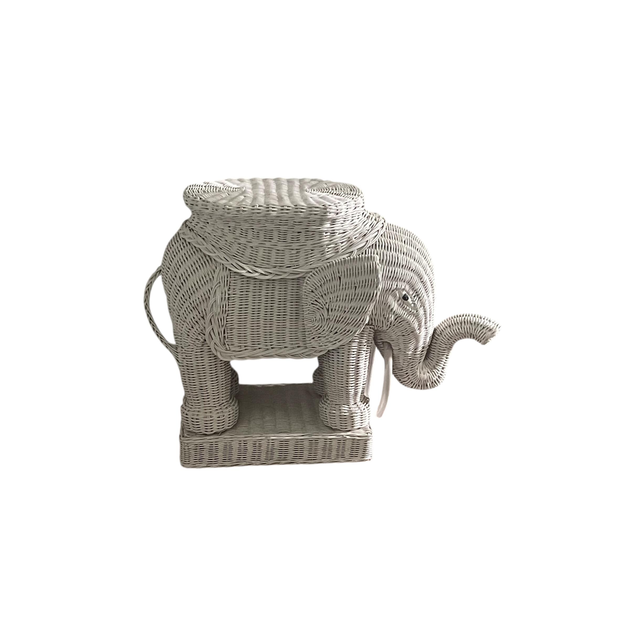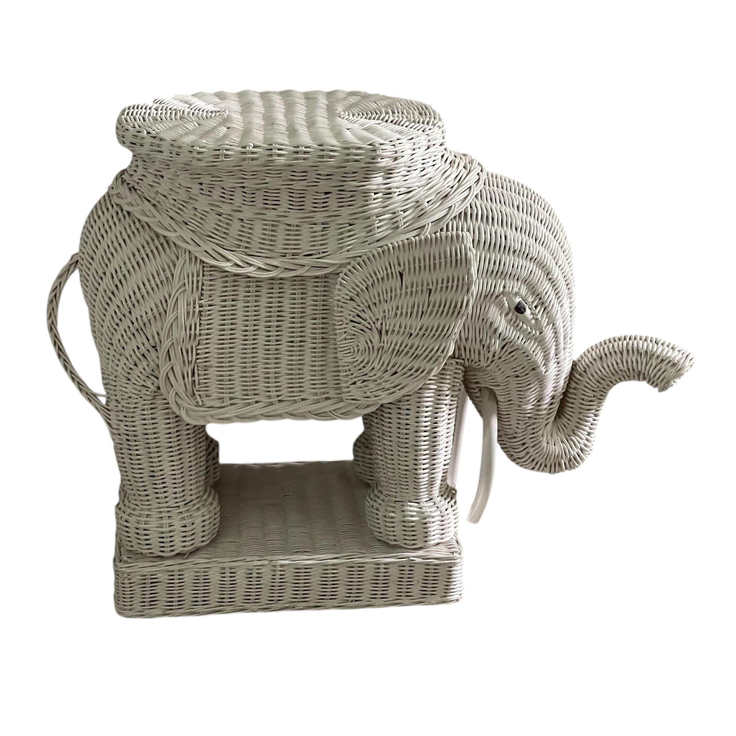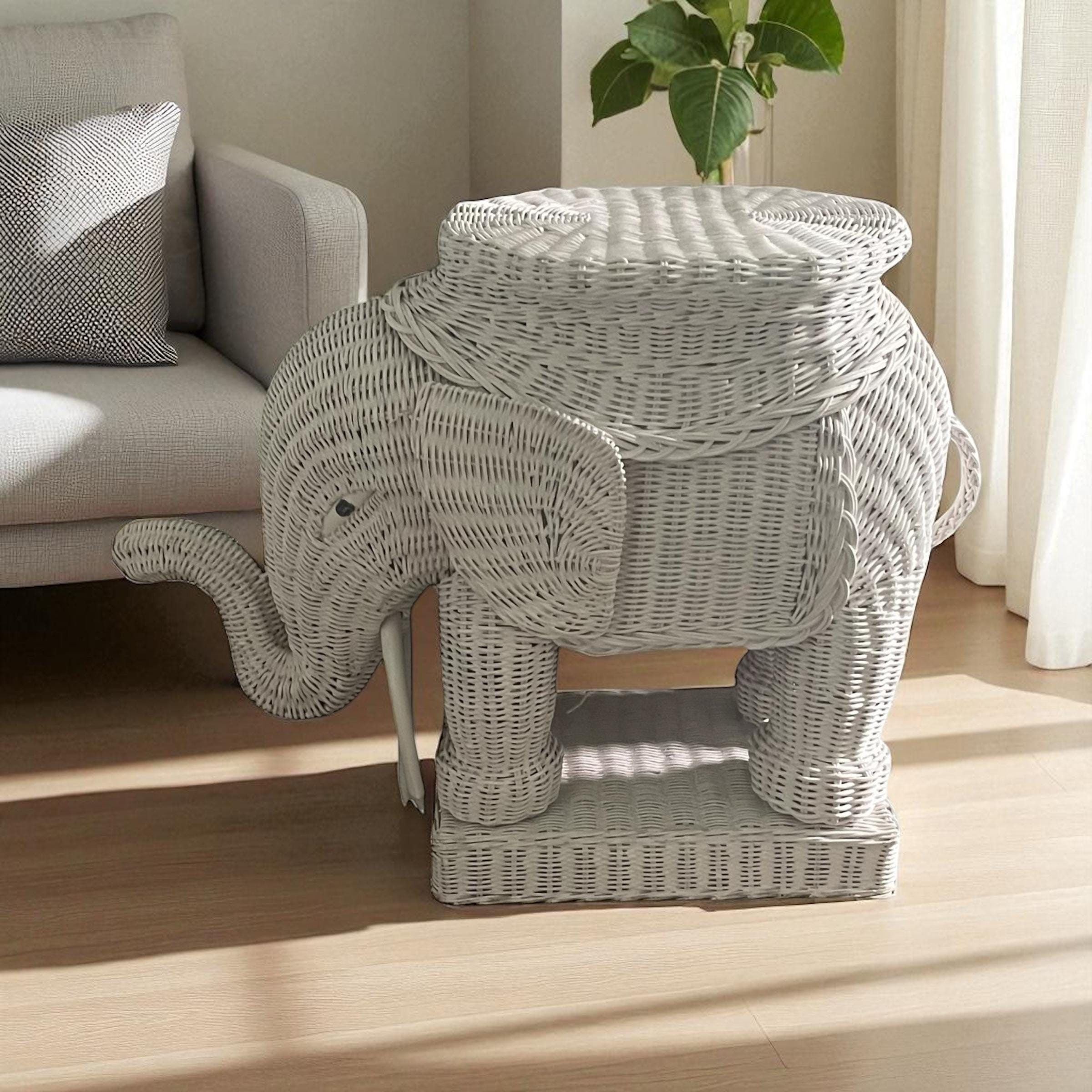 Vintage White Wicker Elephant Side Table: Bohemian Decor, Cottage Garden Decor, White Wicker Table, Hippie Boho Decor.