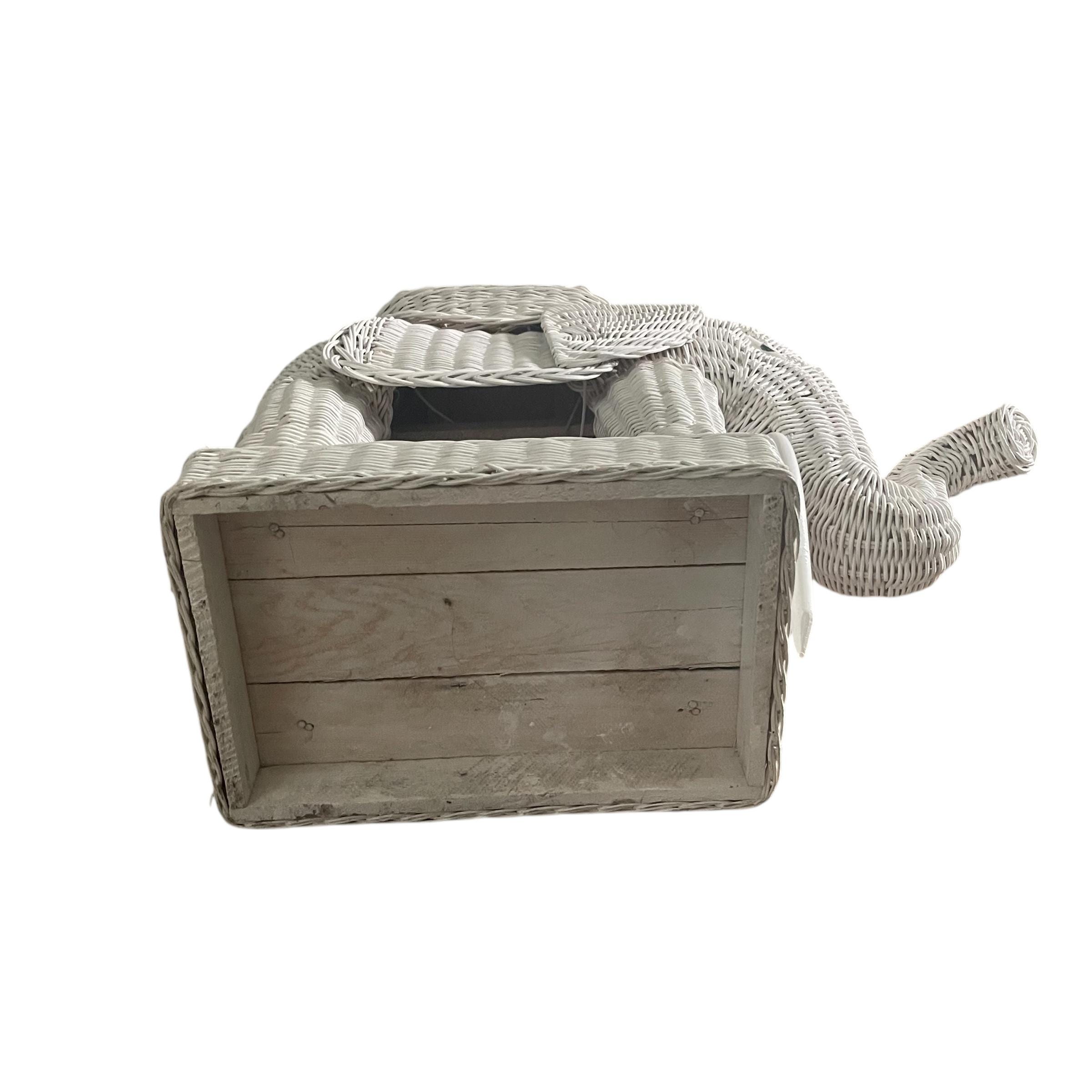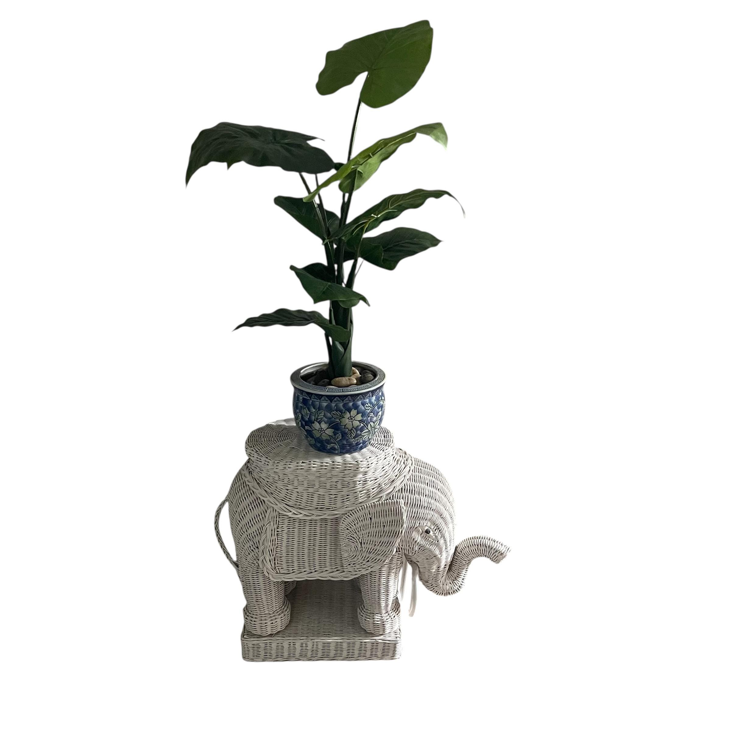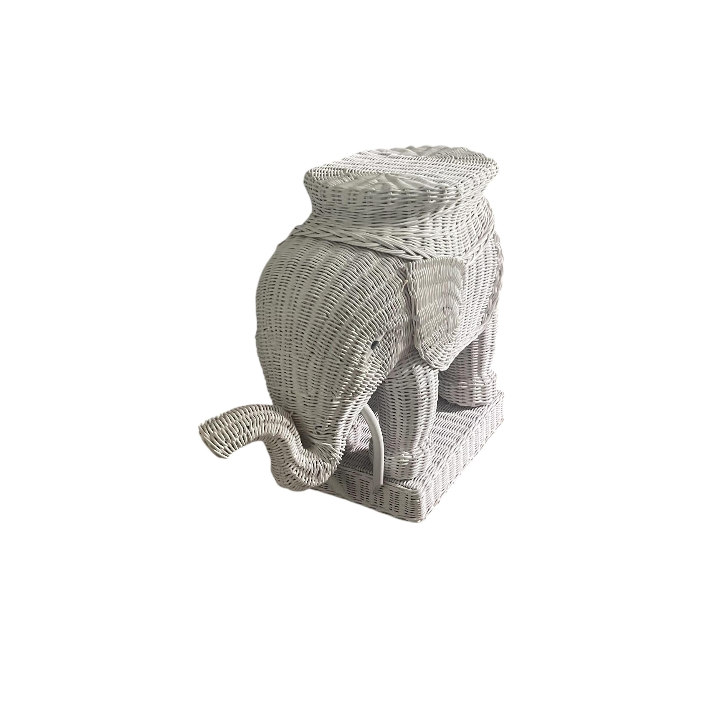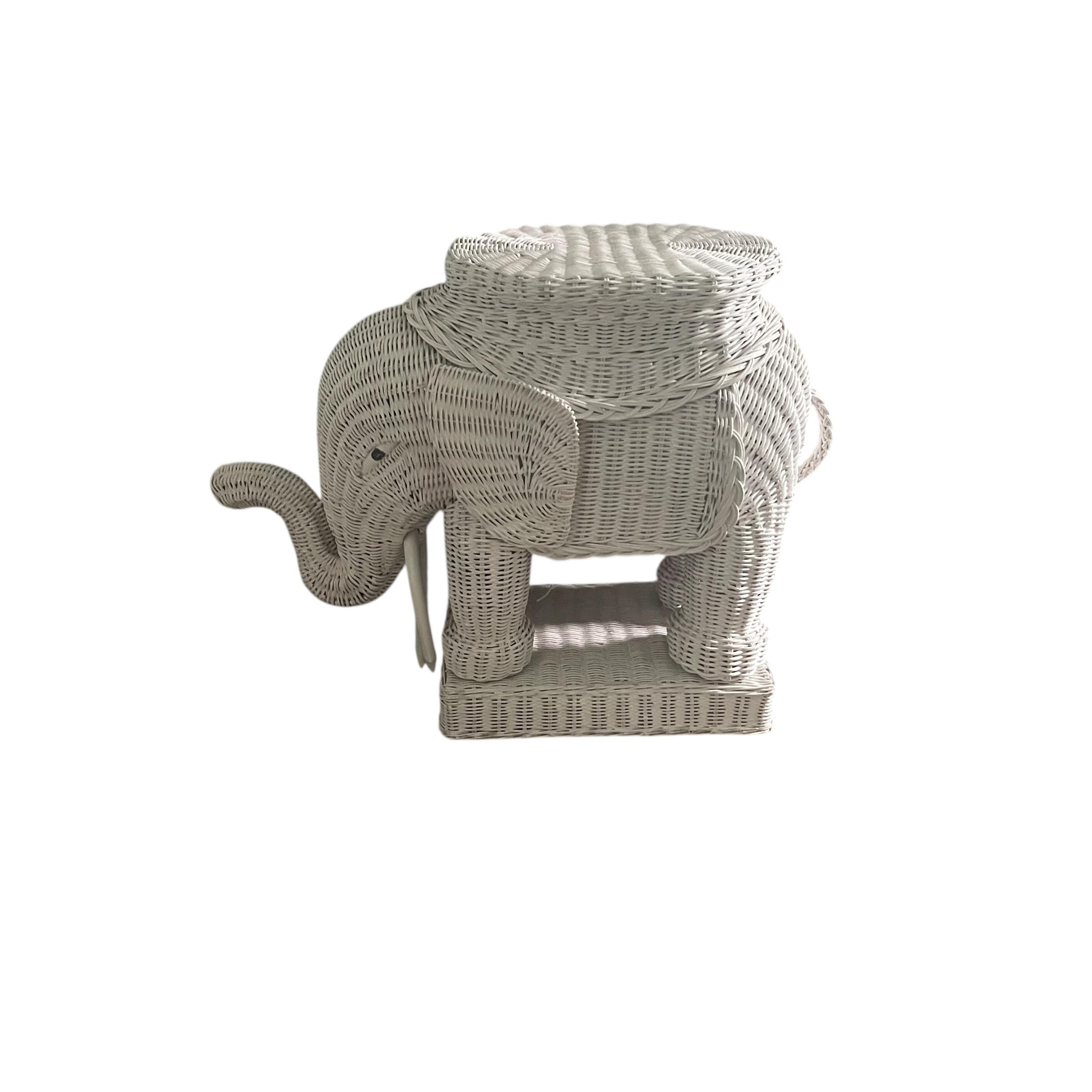 Vintage White Wicker Elephant Side Table: Bohemian Decor, Cottage Garden Decor, White Wicker Table, Hippie Boho Decor.