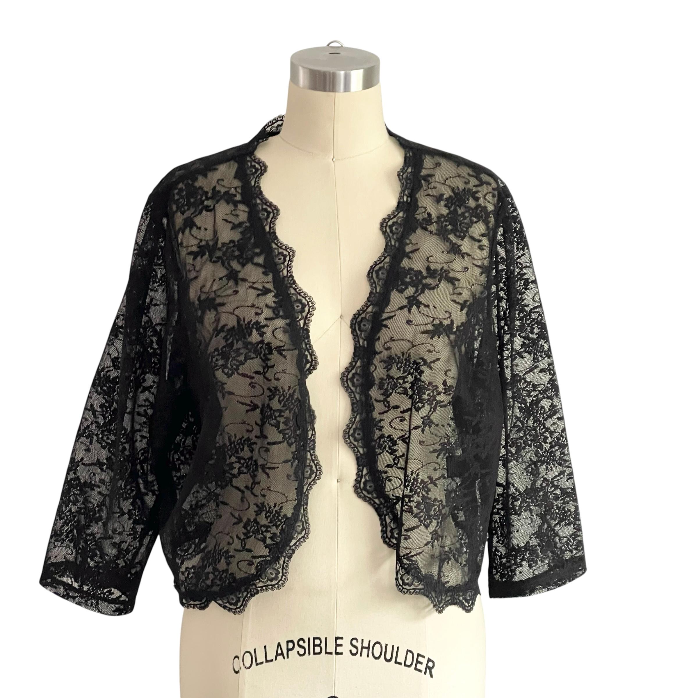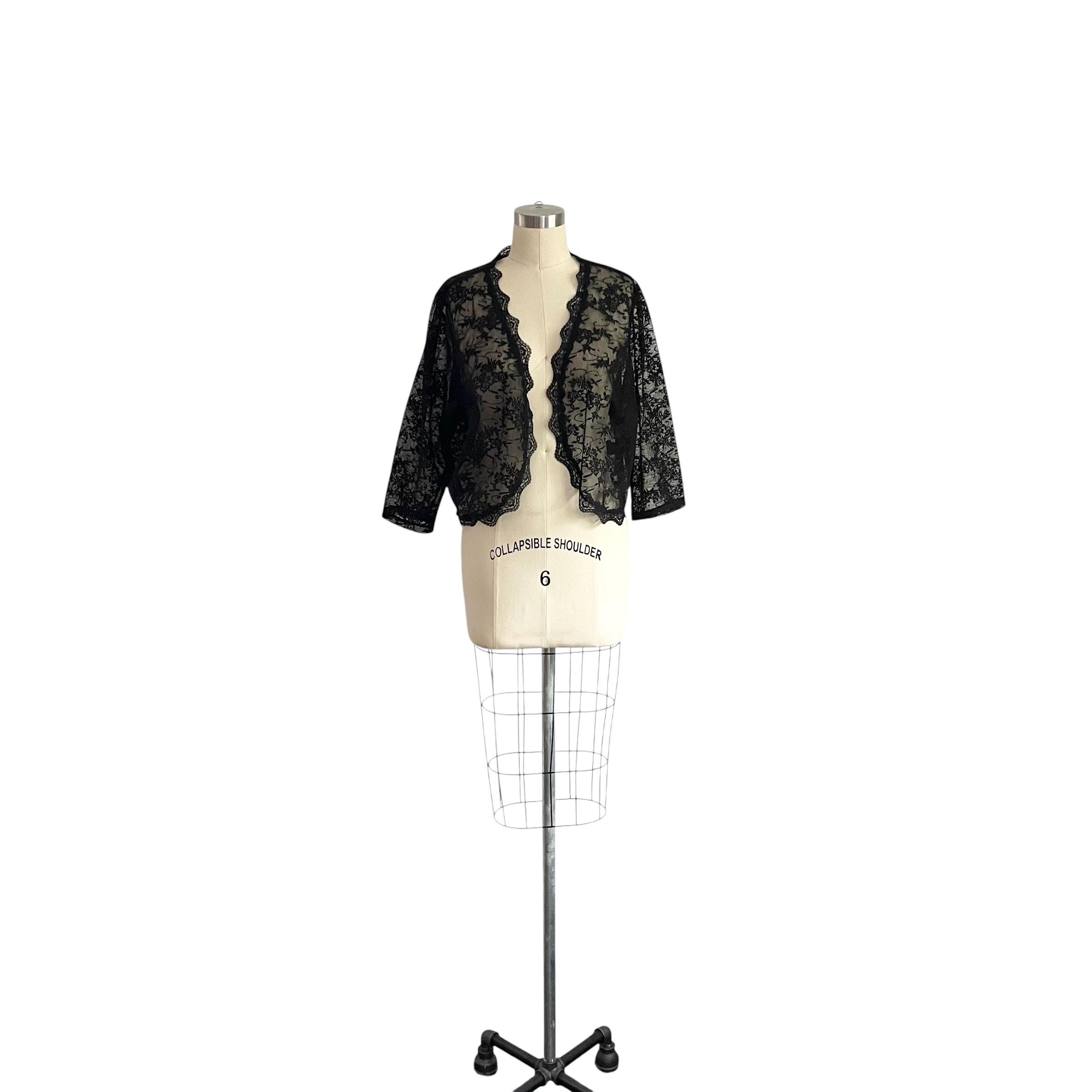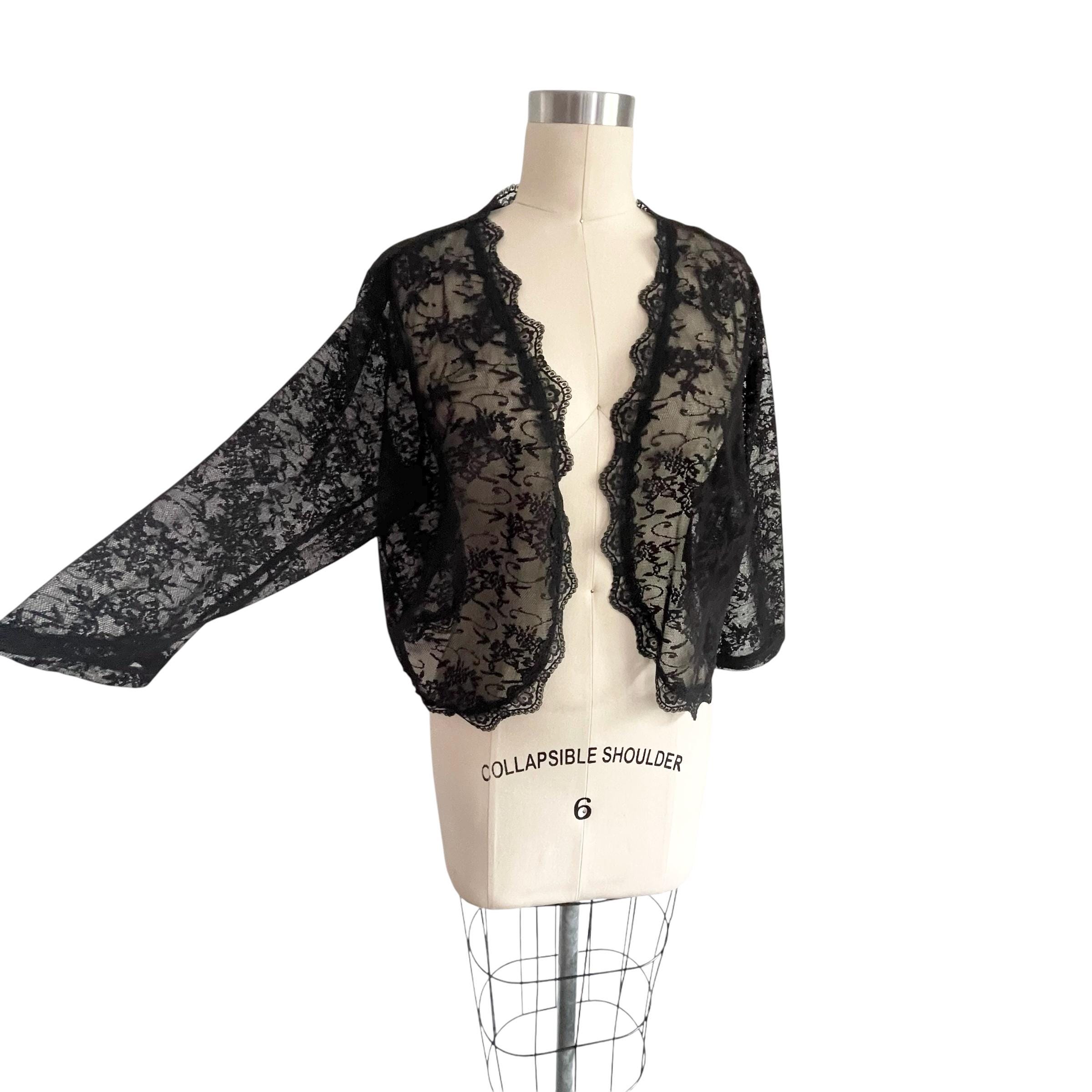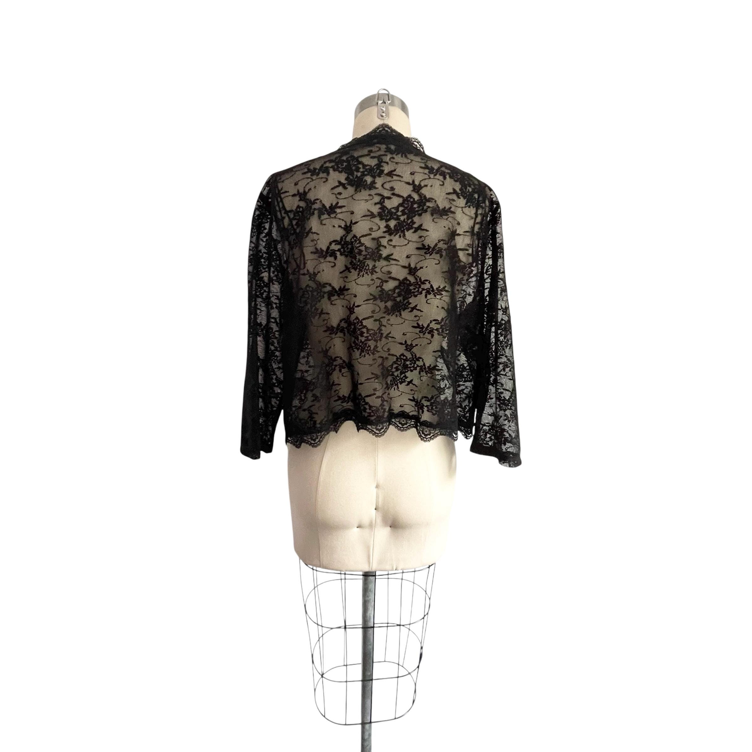 Vintage Dressbarn Collection Black Lace Mesh Jacket: Dark Shrug Jacket, Semi-Sheer, Whimsigoth, Wednesday, Gothic, Witchcore, Y2K 2000s 00s.