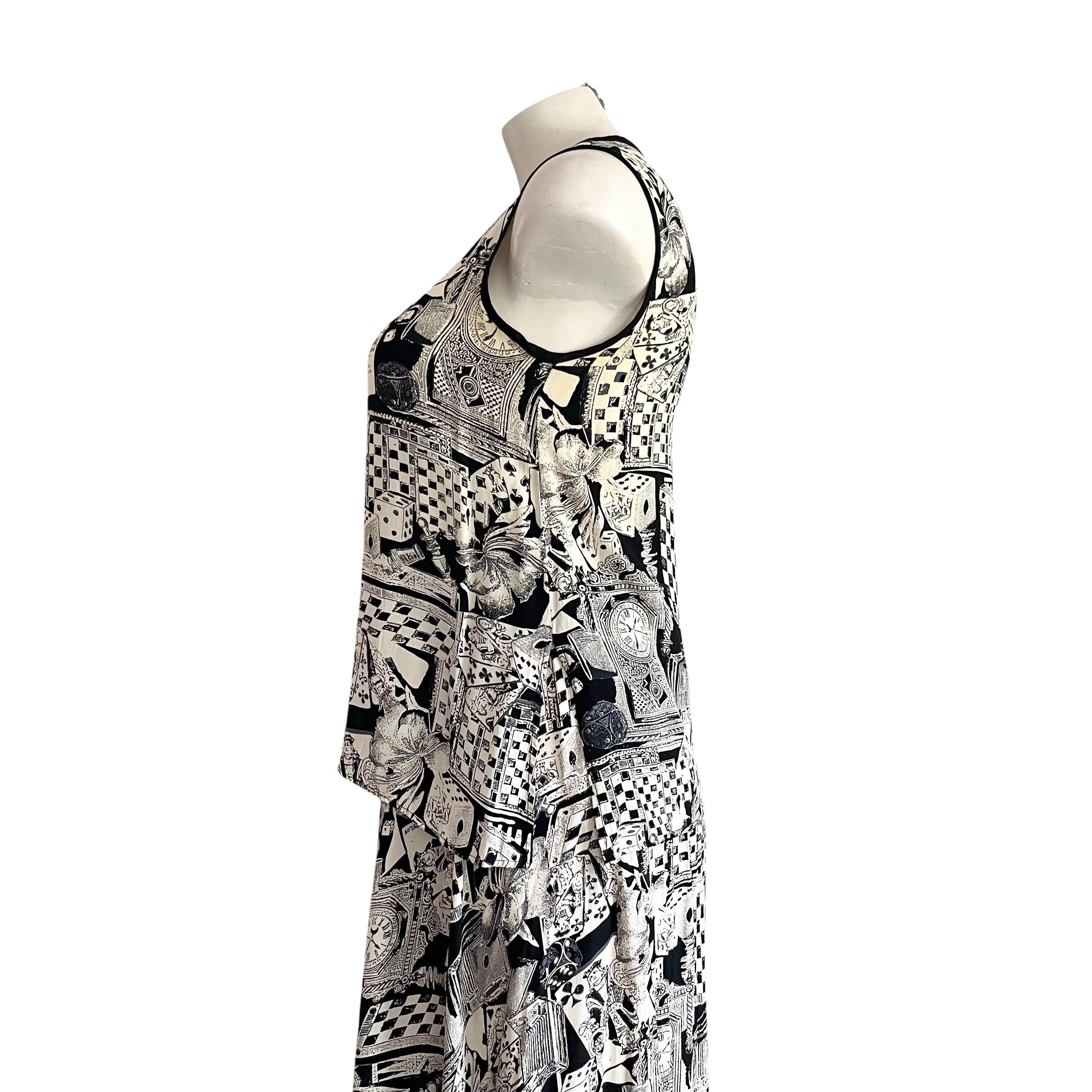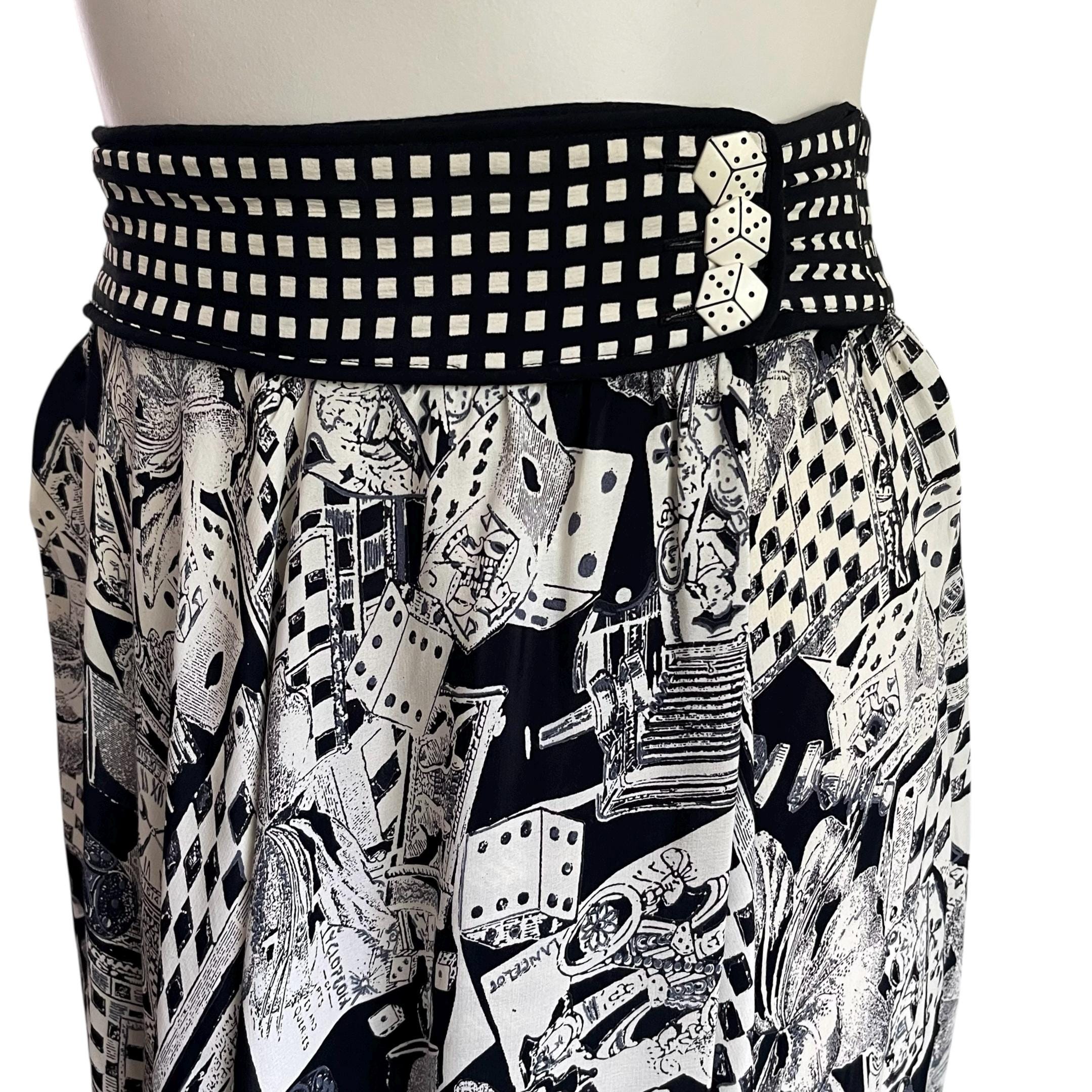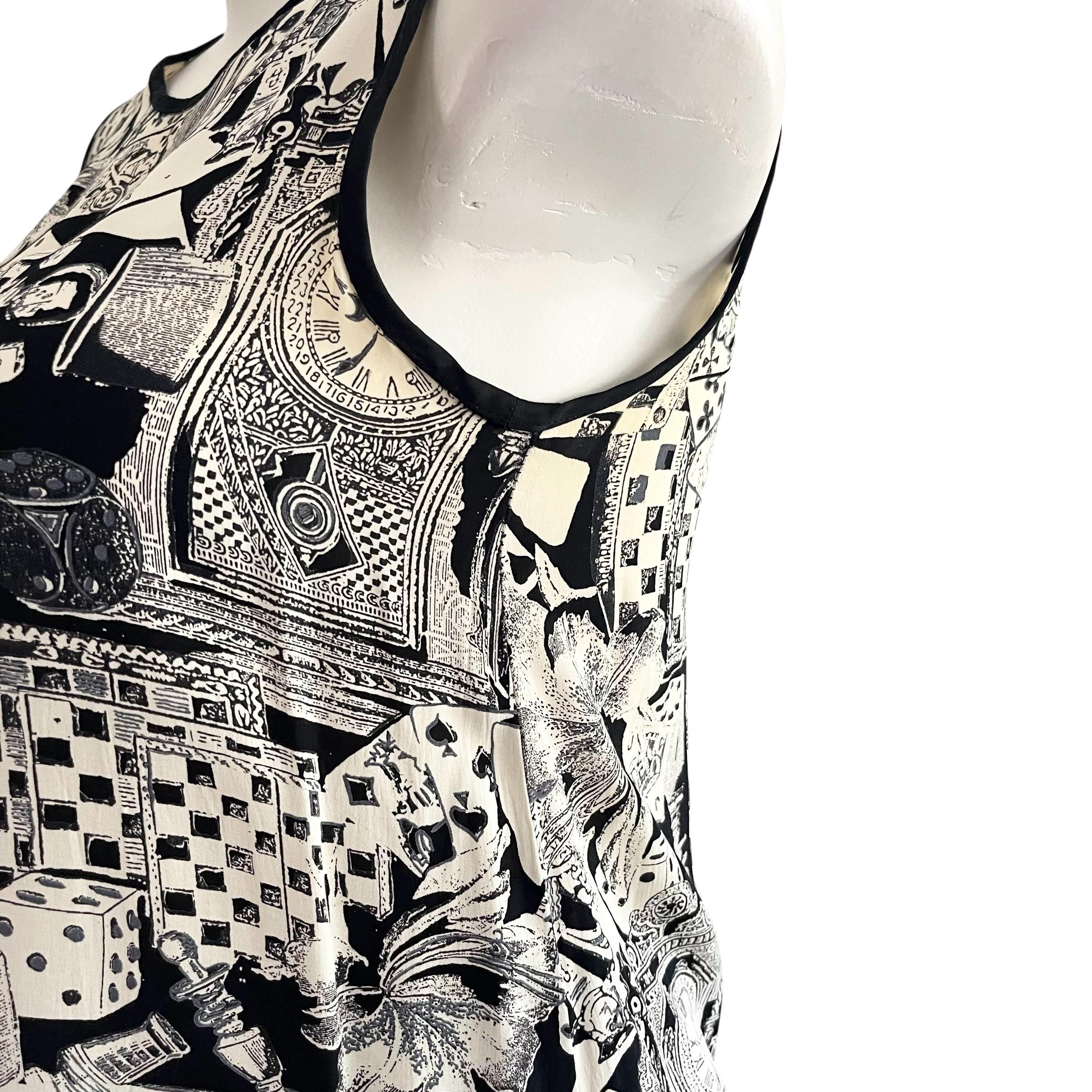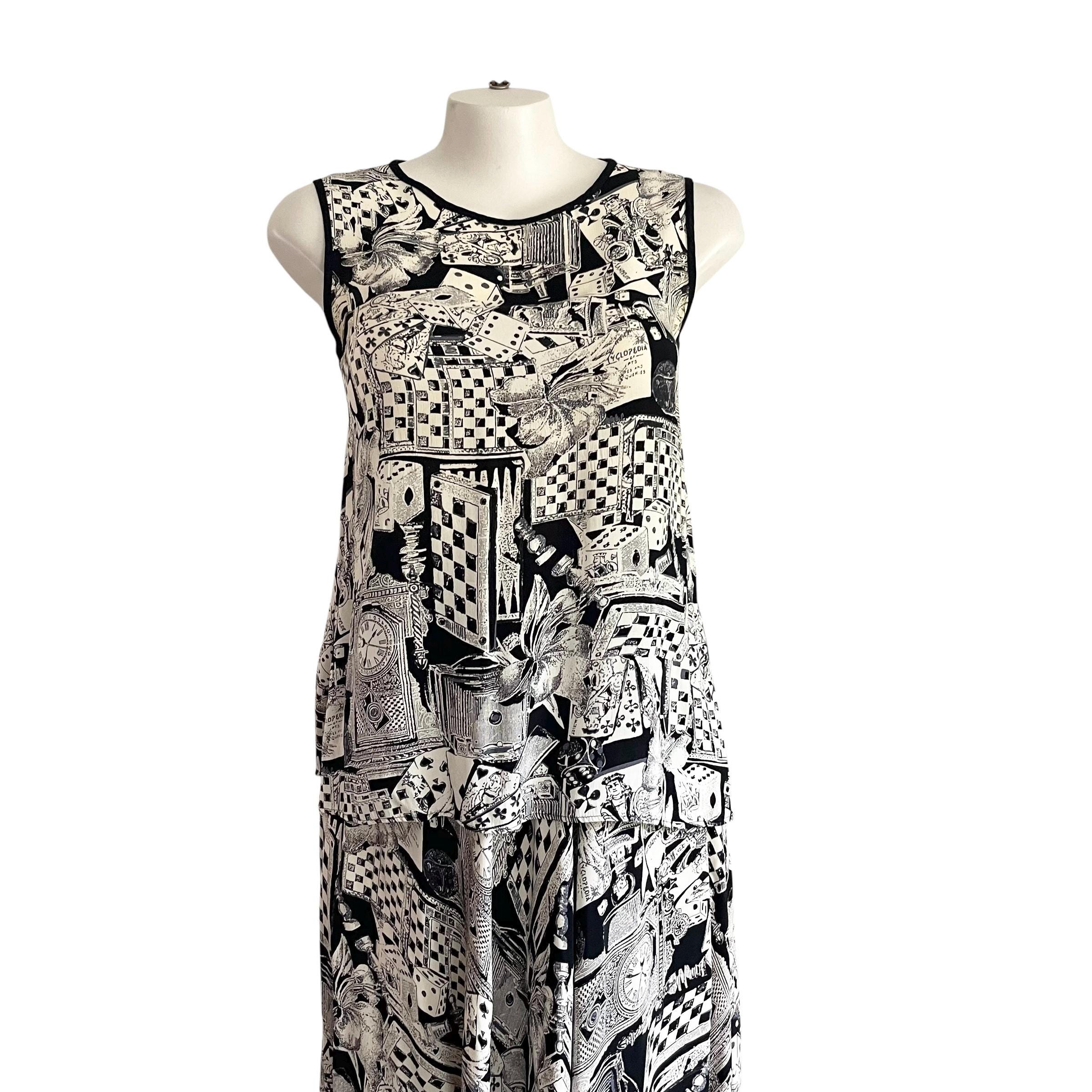 Vintage Platinum Black and White Tank and Skirt Dress Set: Casino Print, Two-Color, Party, Casino, Night Out, Faux Wrap Skirt, Stretch, 90s Y2K.