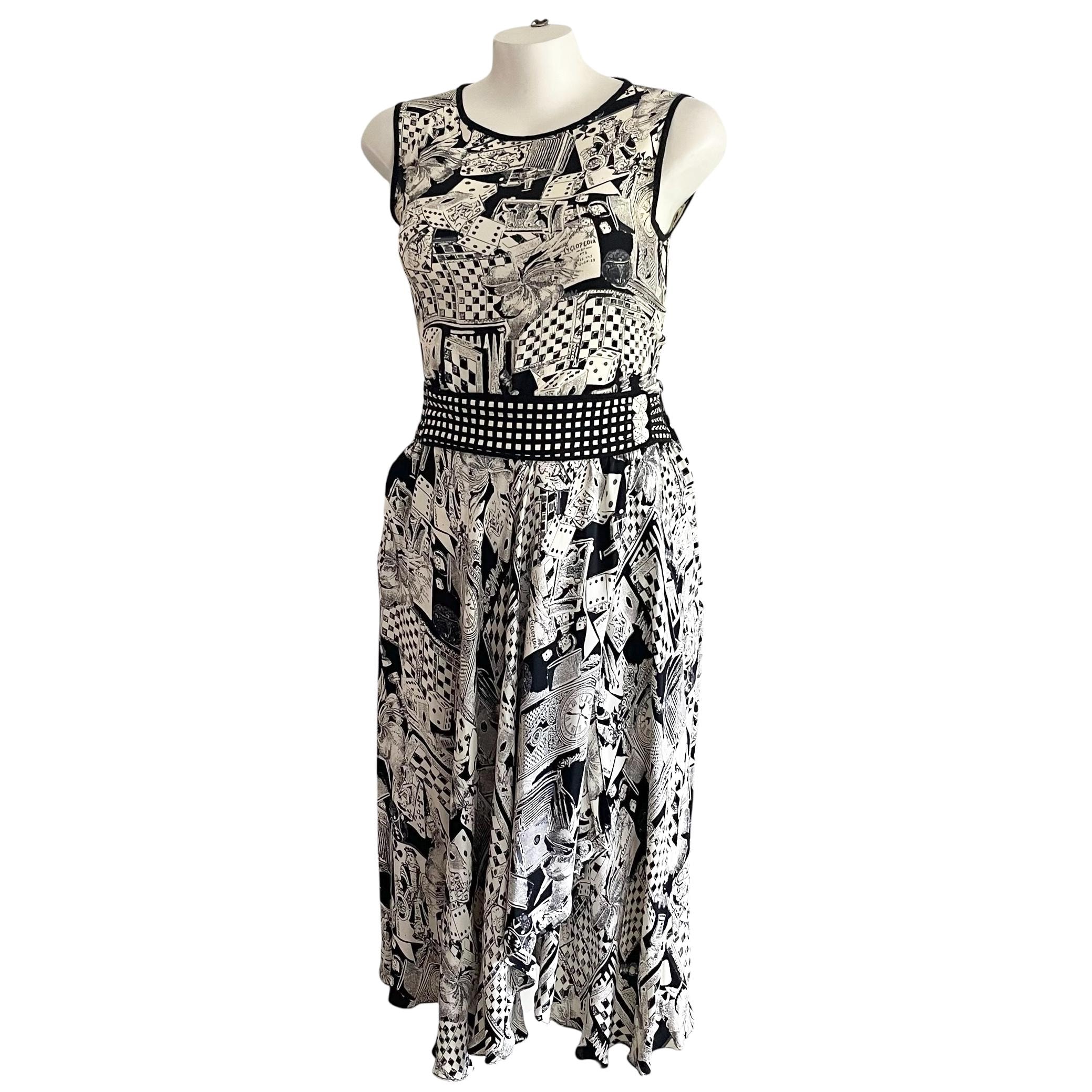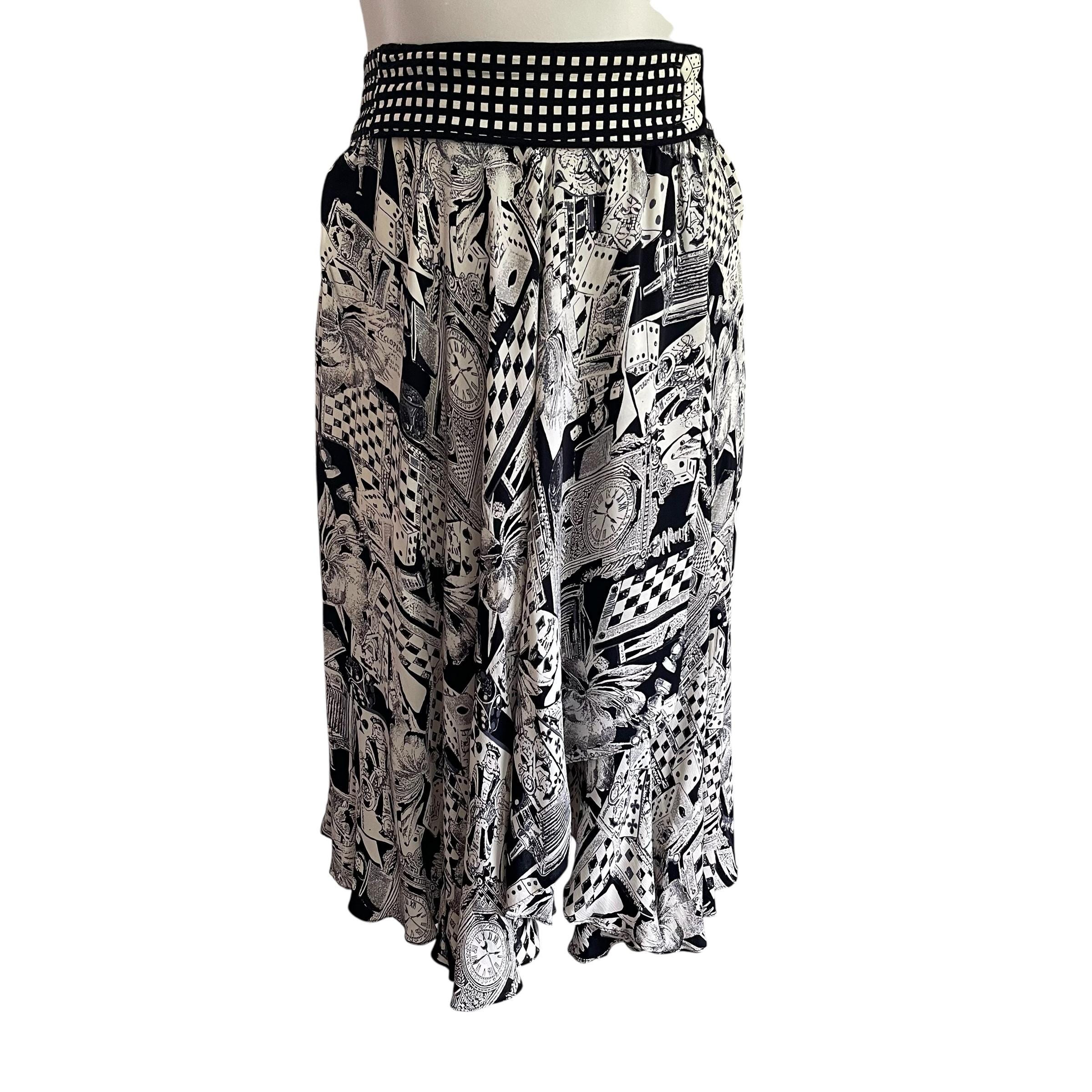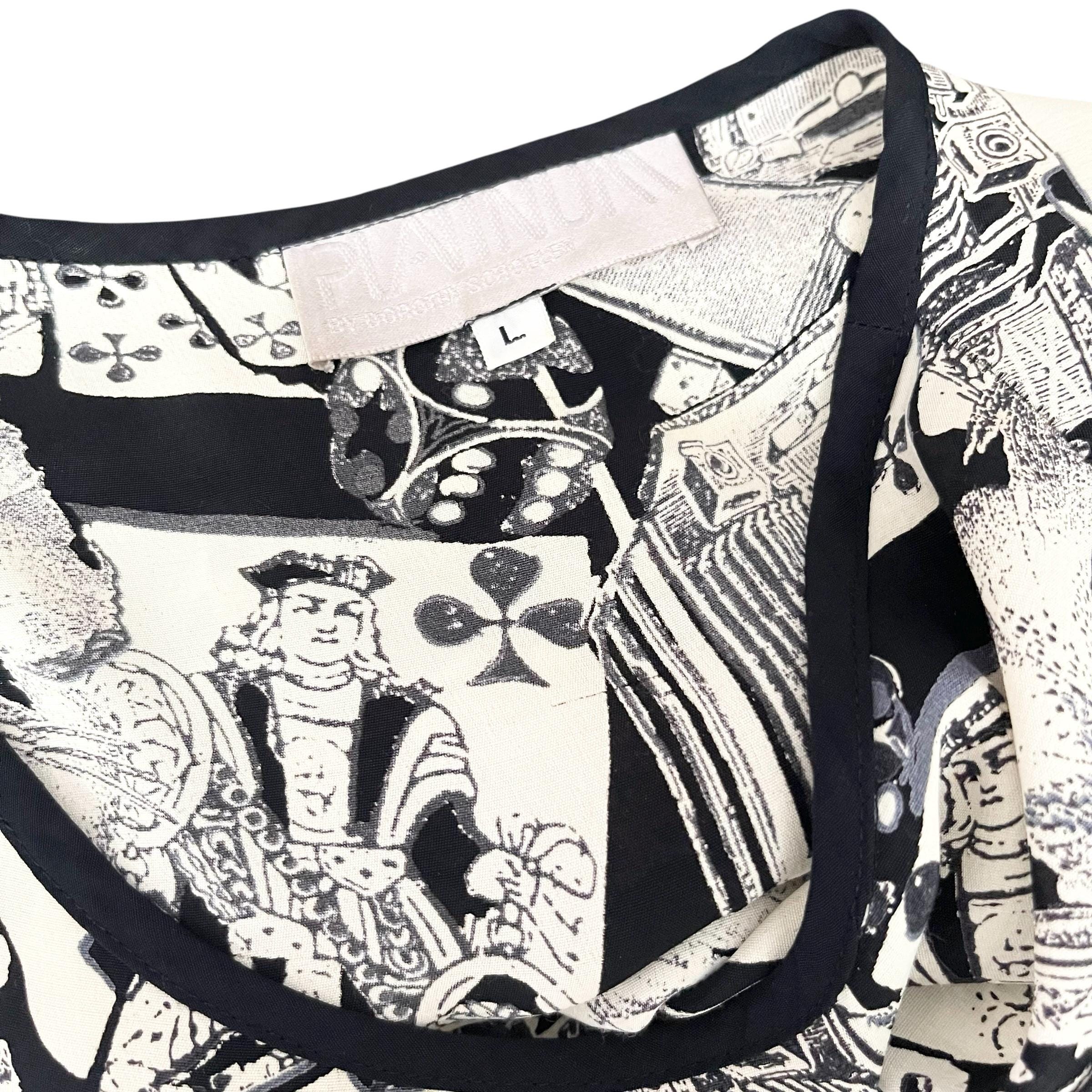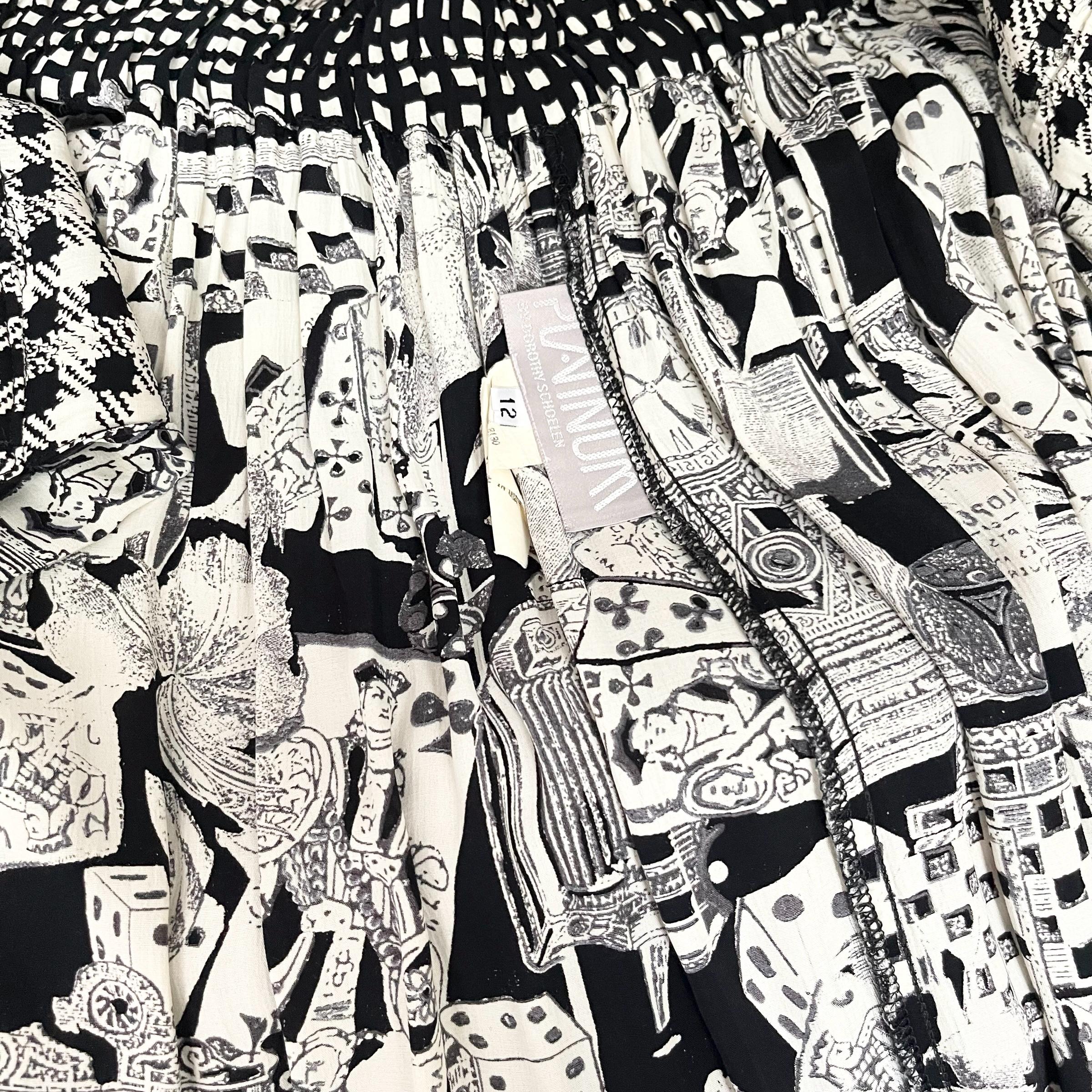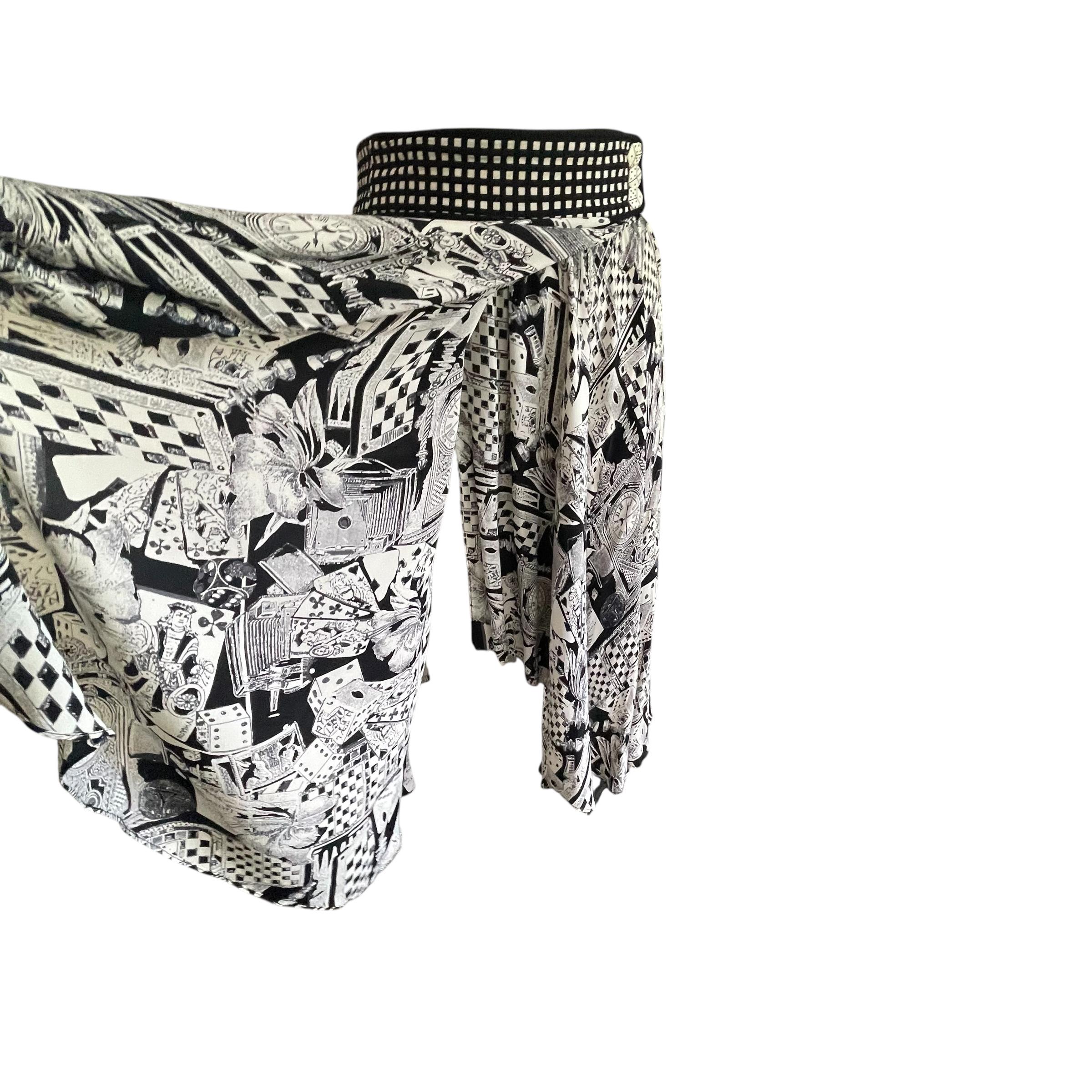 Vintage Platinum Black and White Tank and Skirt Dress Set: Casino Print, Two-Color, Party, Casino, Night Out, Faux Wrap Skirt, Stretch, 90s Y2K.