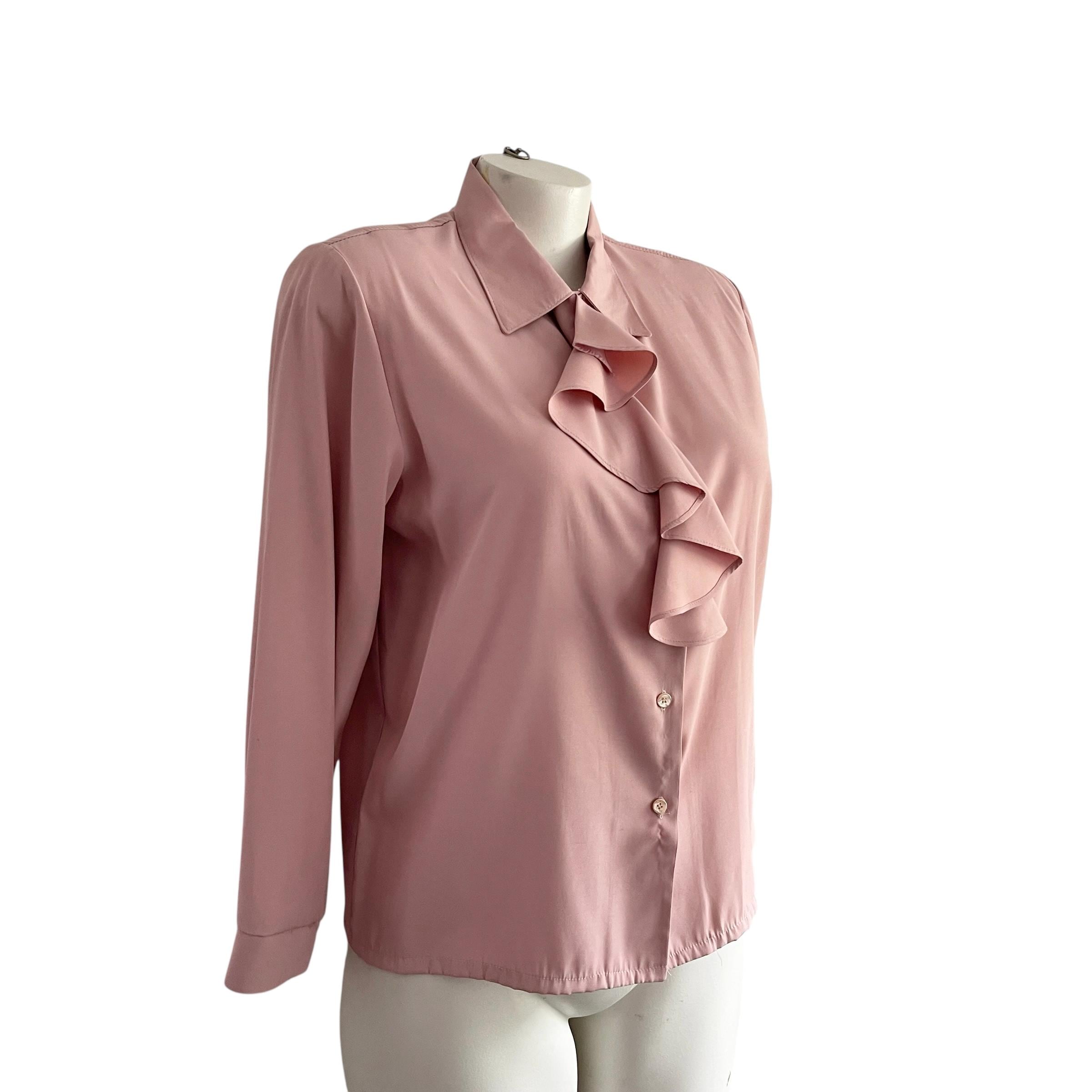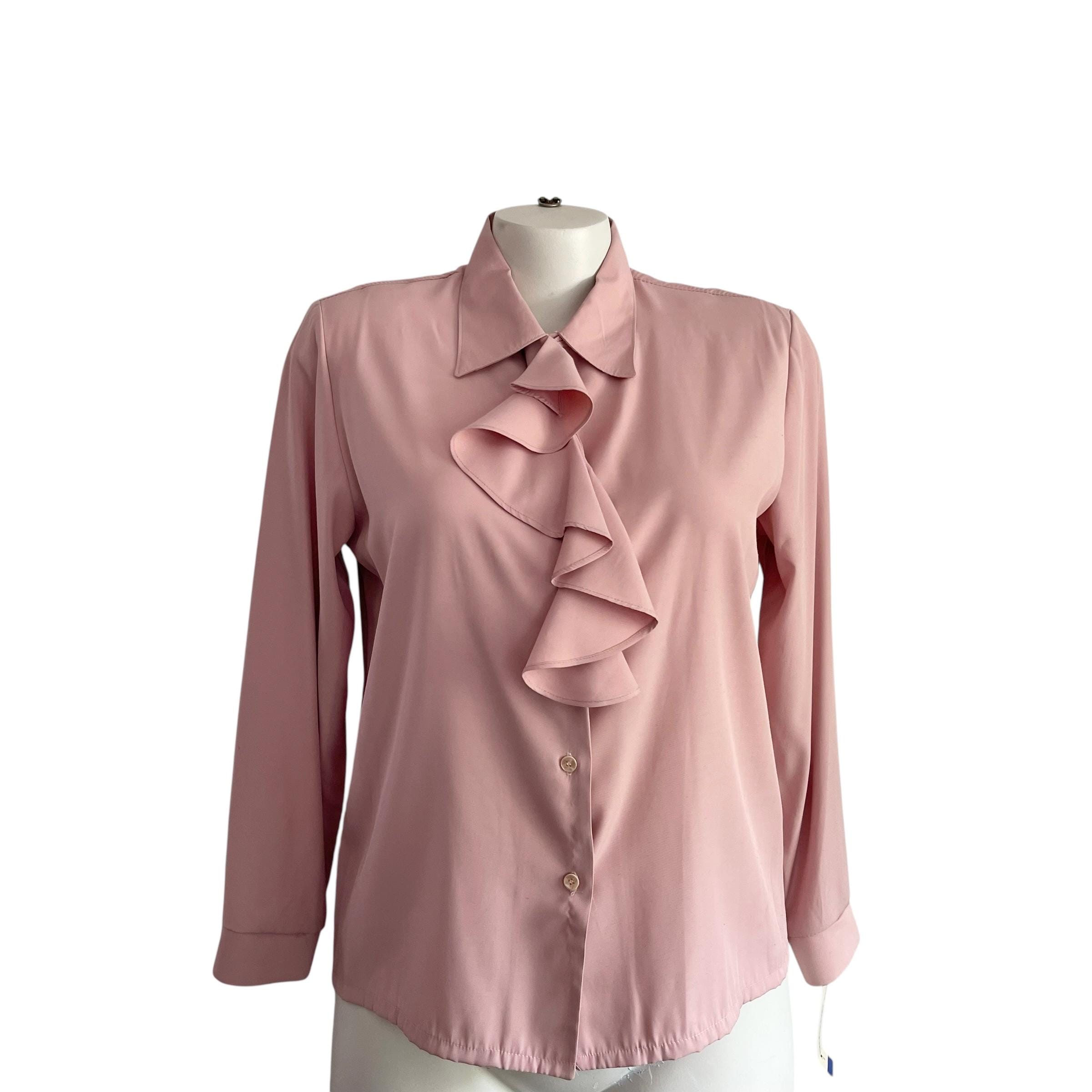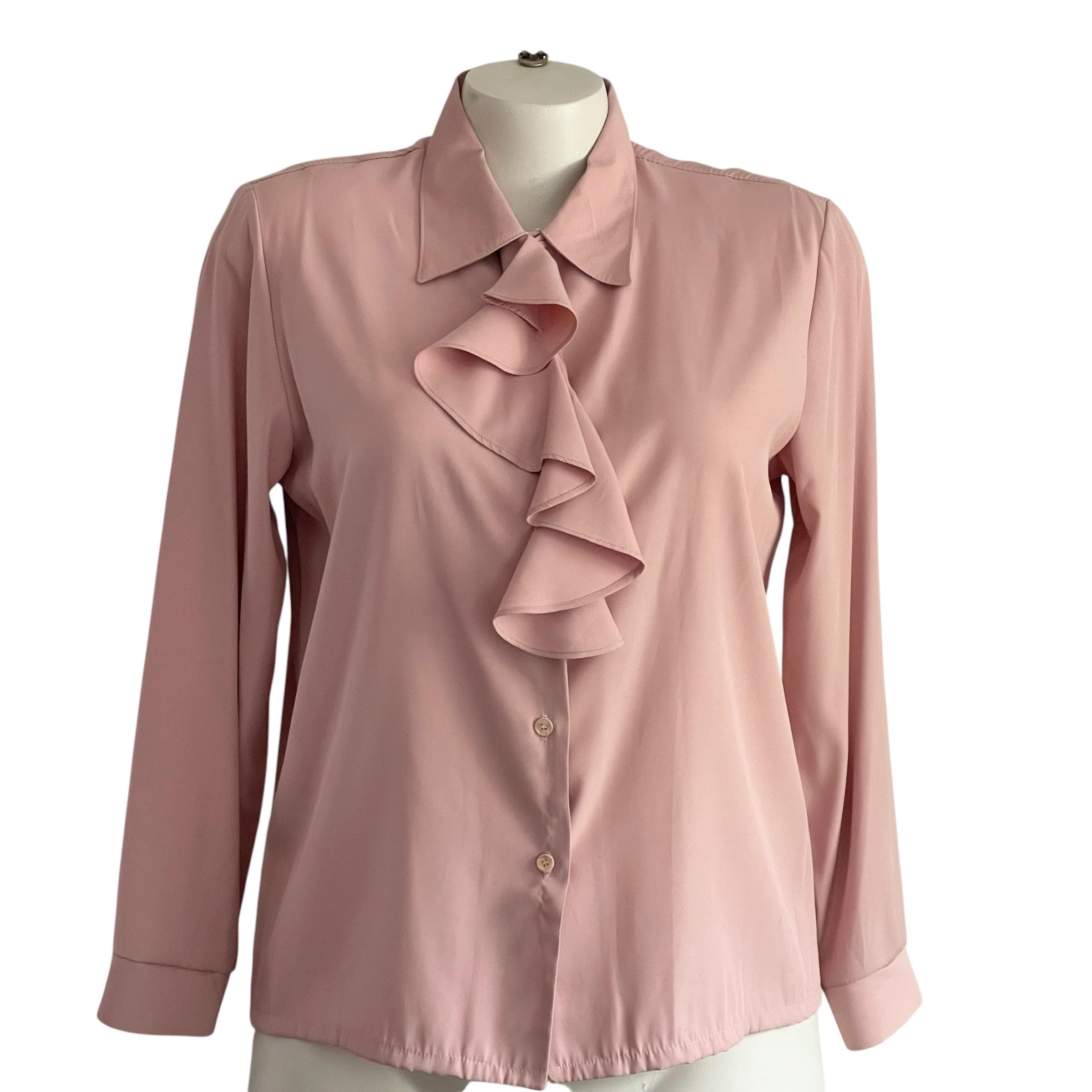 Vintage Pink Victorian Ruffle Blouse: Victorian Top, Soft Salmon Pink, Barbiecore, 60s 70s 80s.