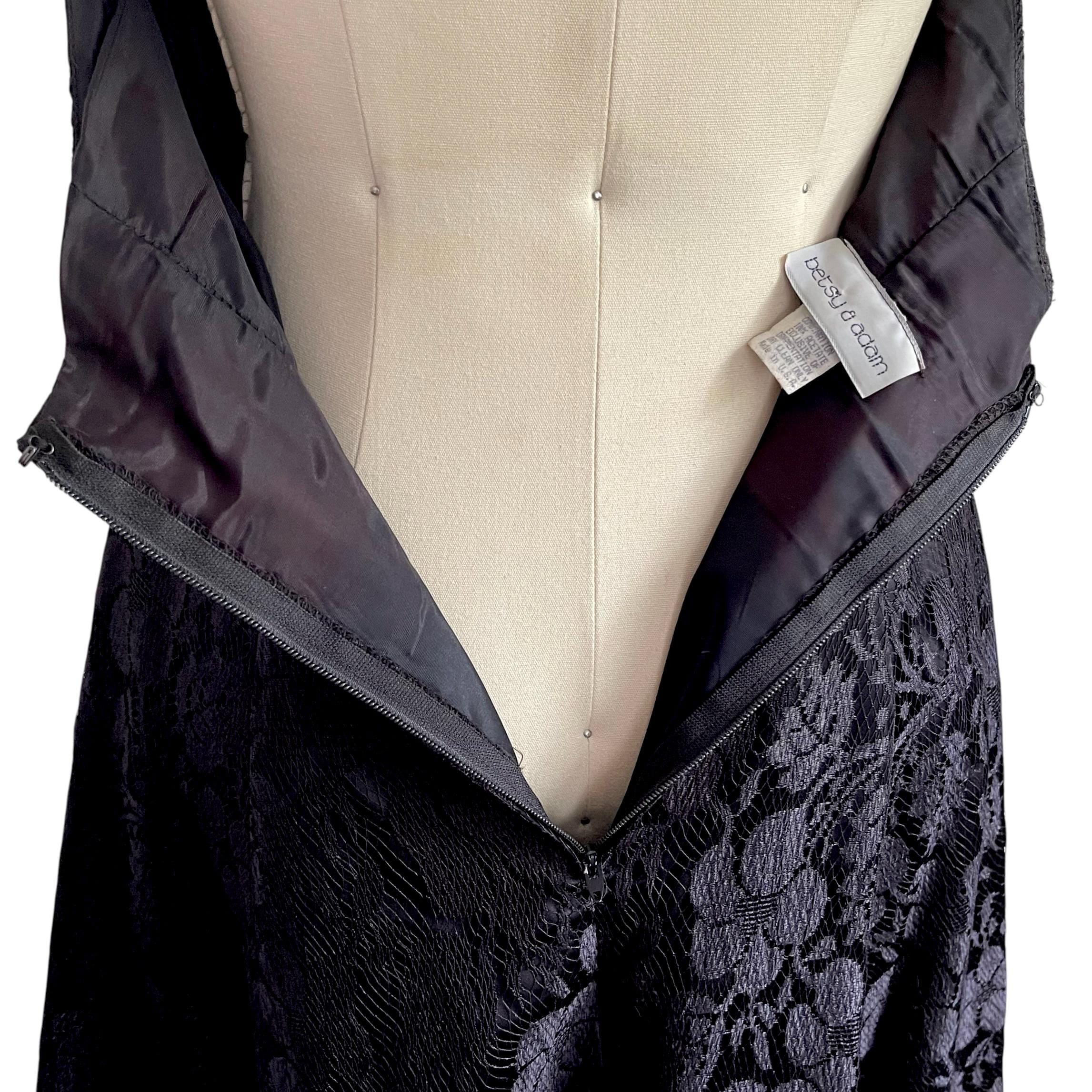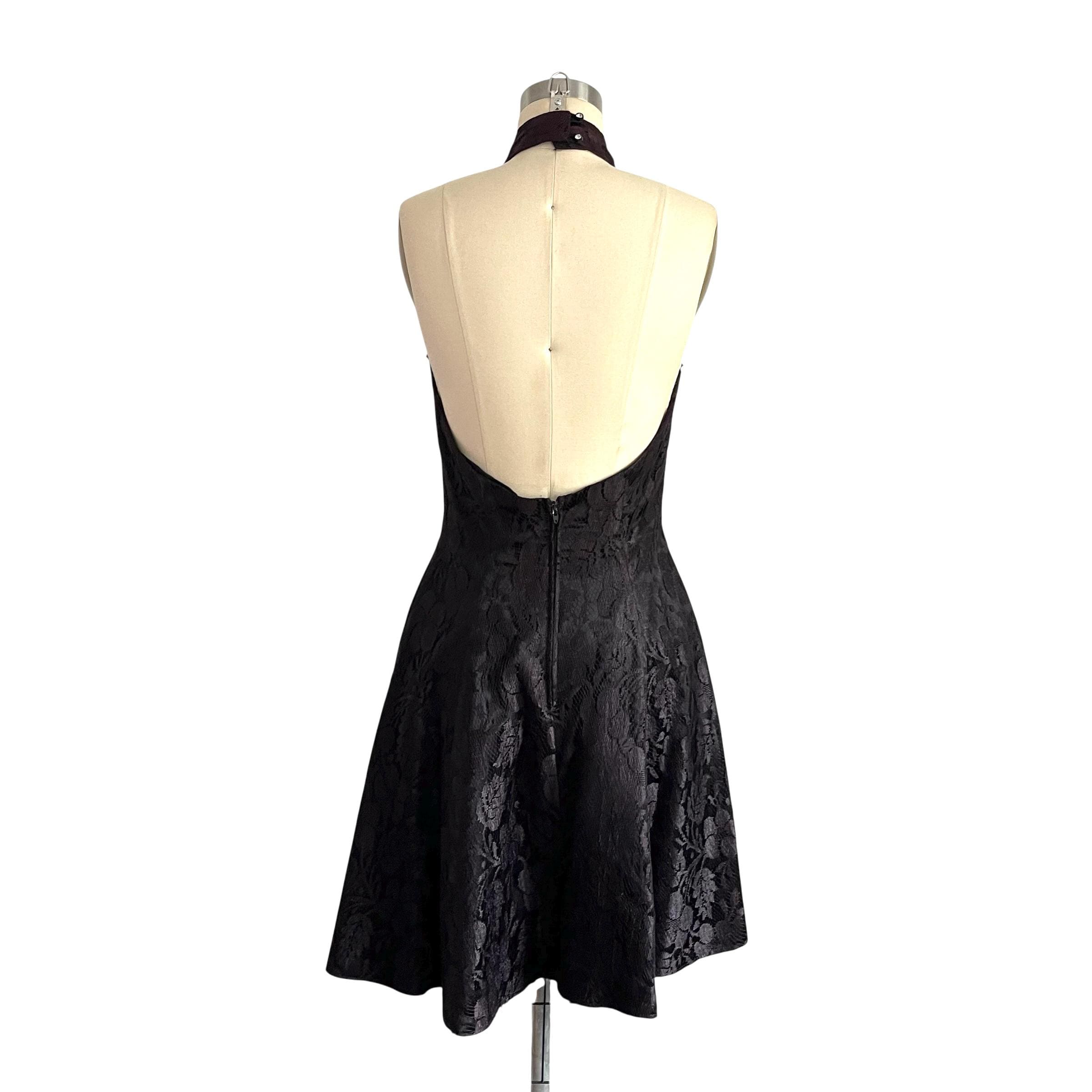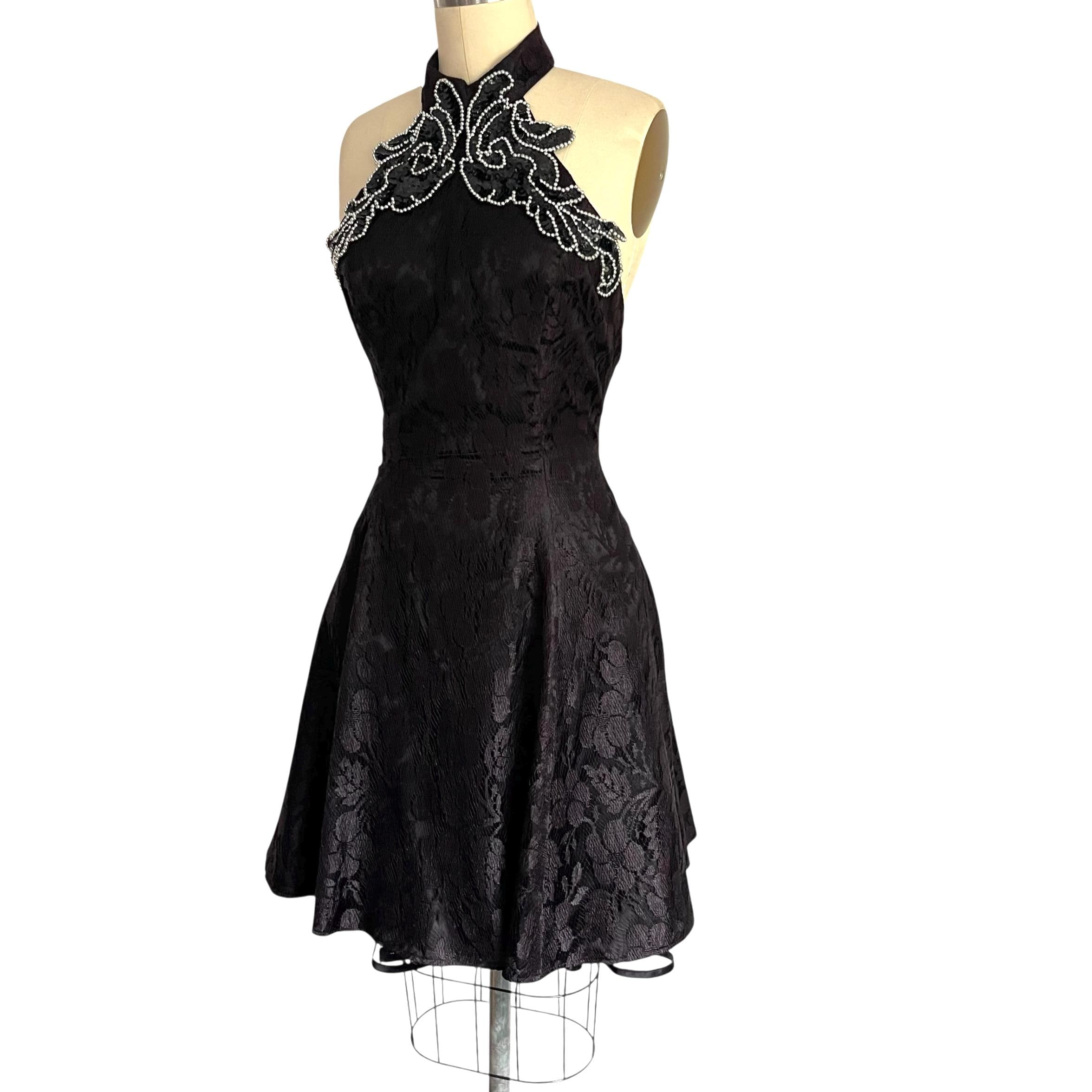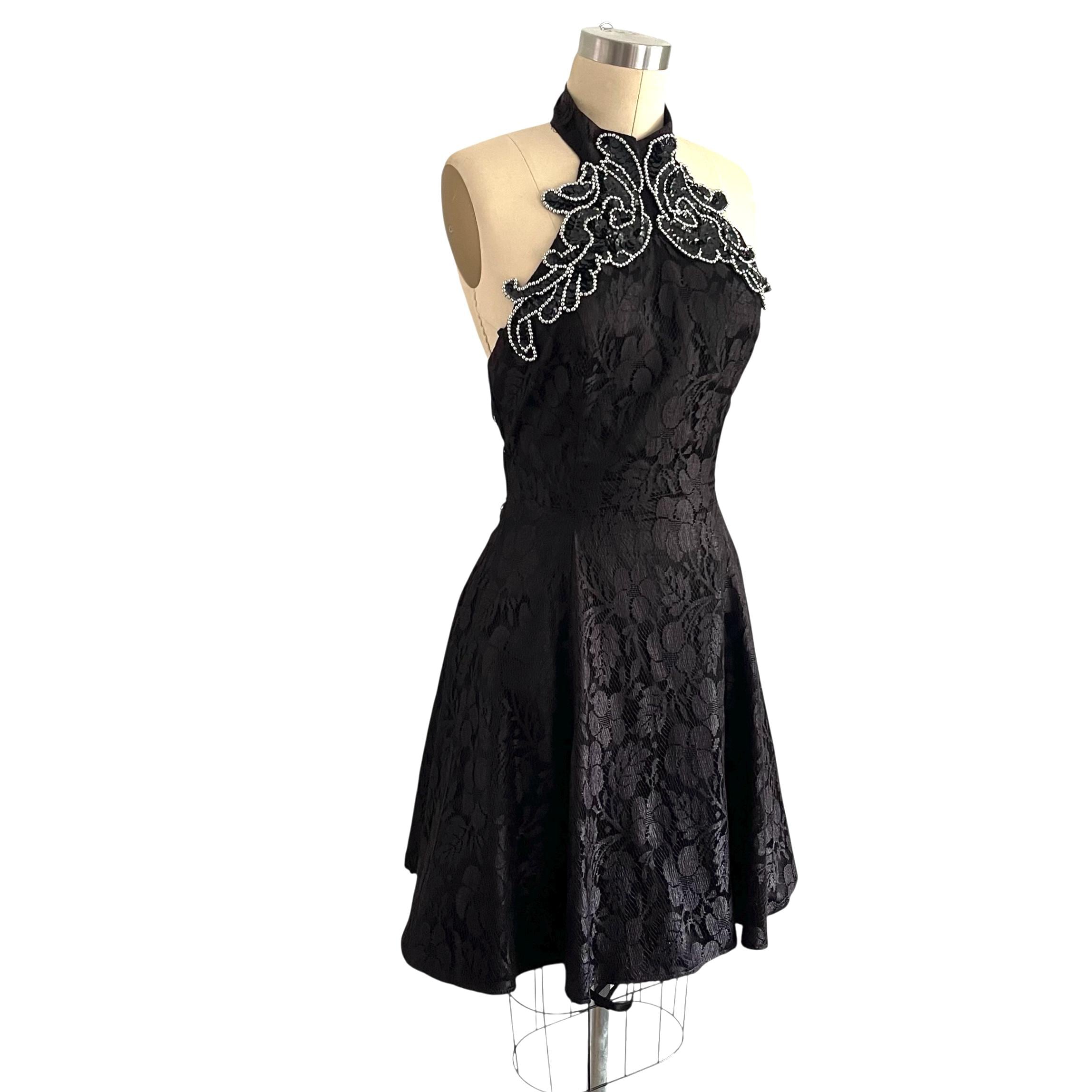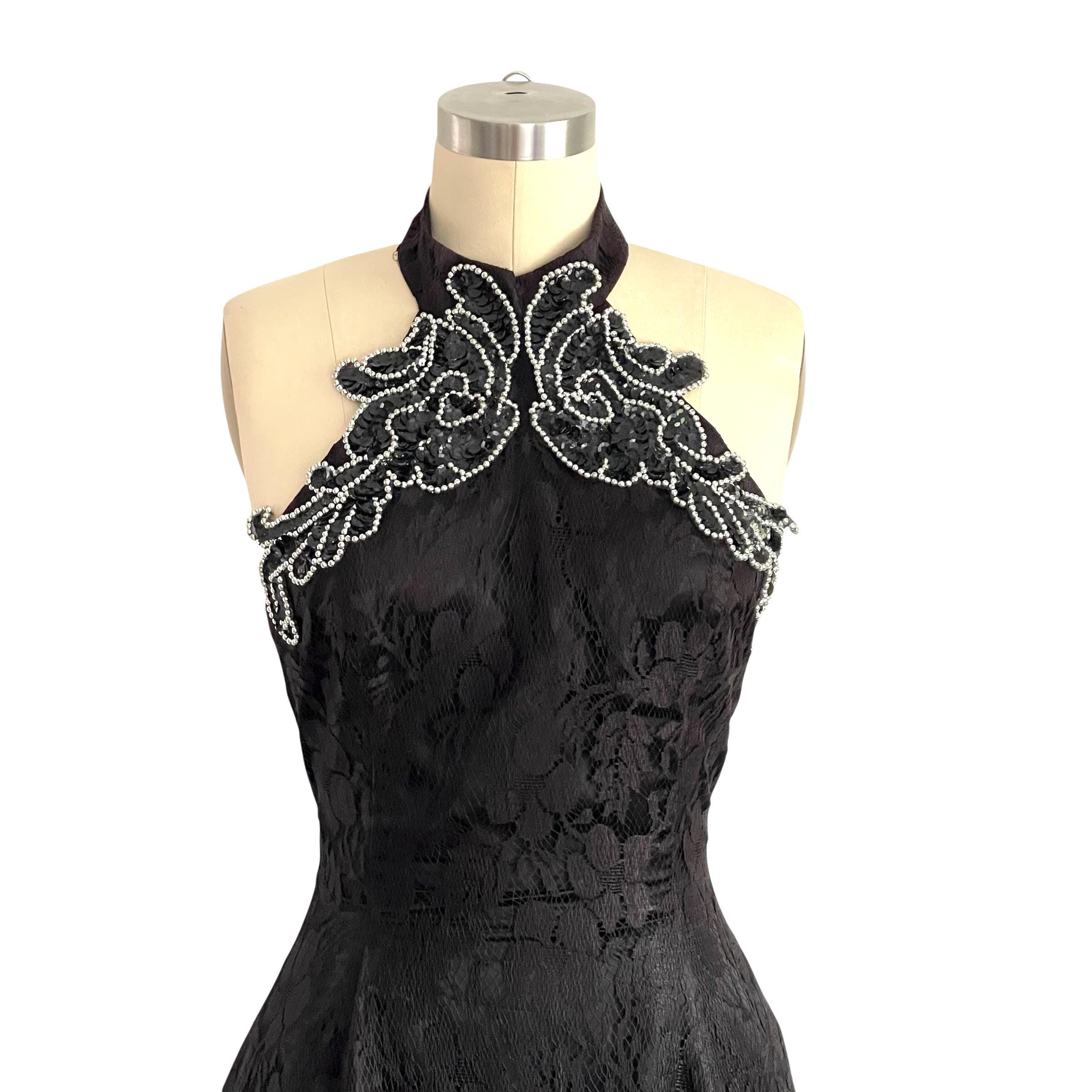 Vintage 90s Black Lace Halter Dress: Beaded, Low Cut Backless, Frilly Skirt, Tulle Slip, Gothcore, Dark Academia, Witchcore, Betsy & Adam.