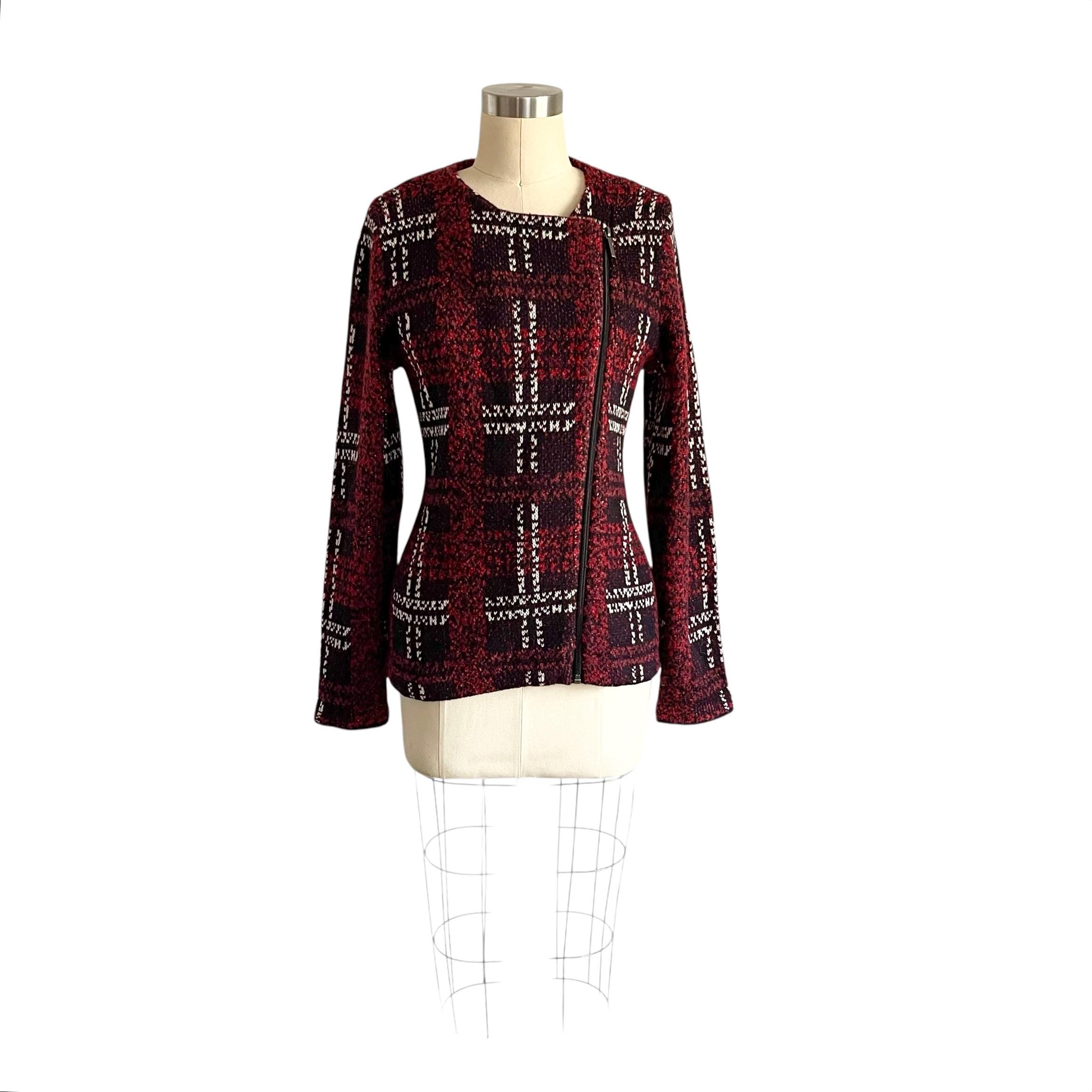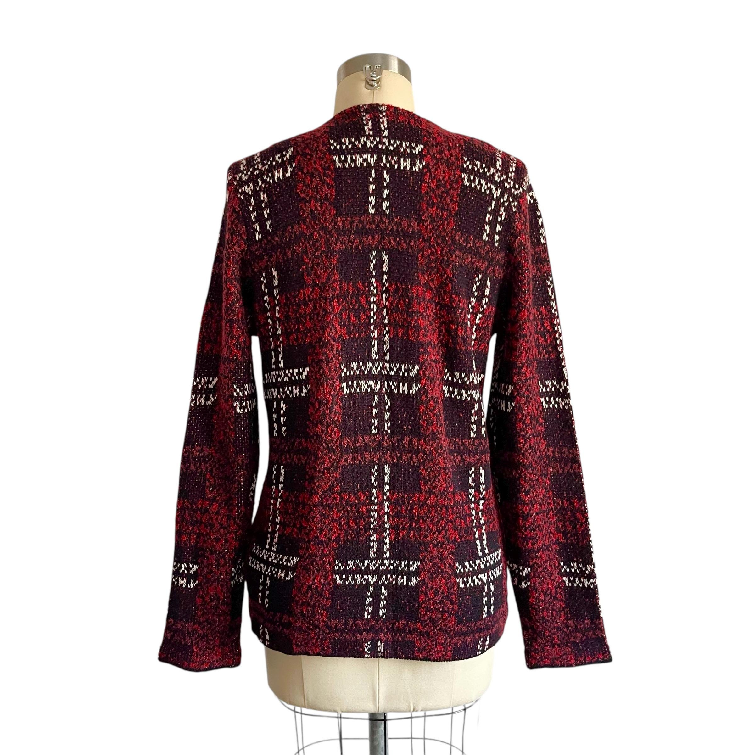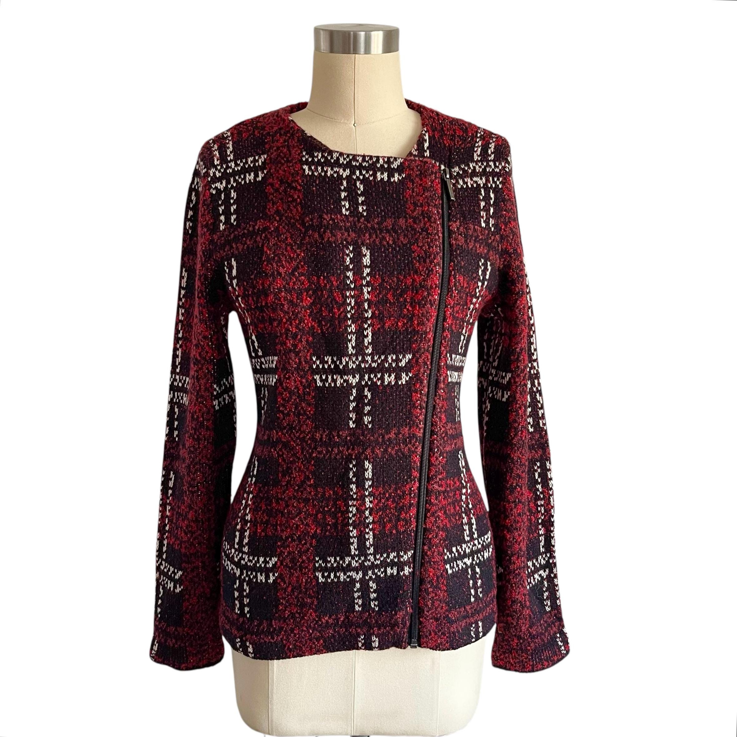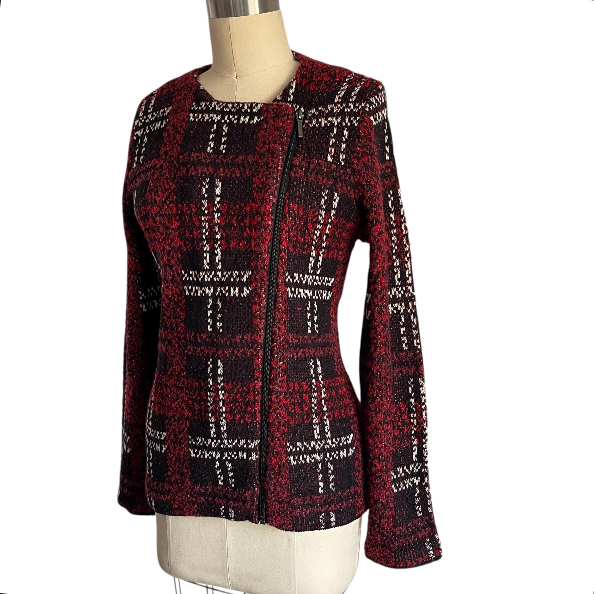 Vintage Chaps Red Black Plaid Zip-Up Jacket: Plaid Sweater Jacket, Burgundy, Merlot, Business Casual, Dark Academia, Grunge, 90s Y2K Jacket