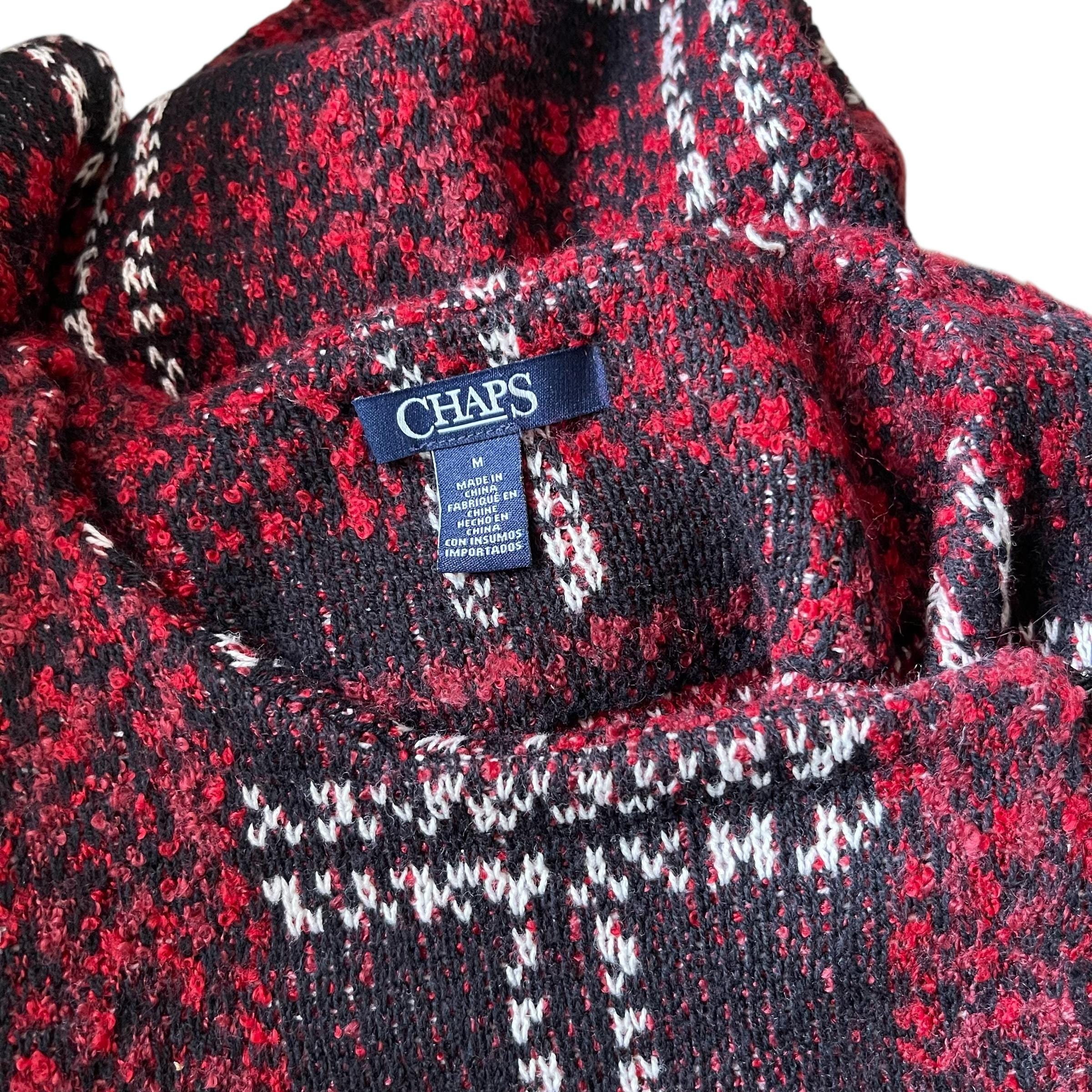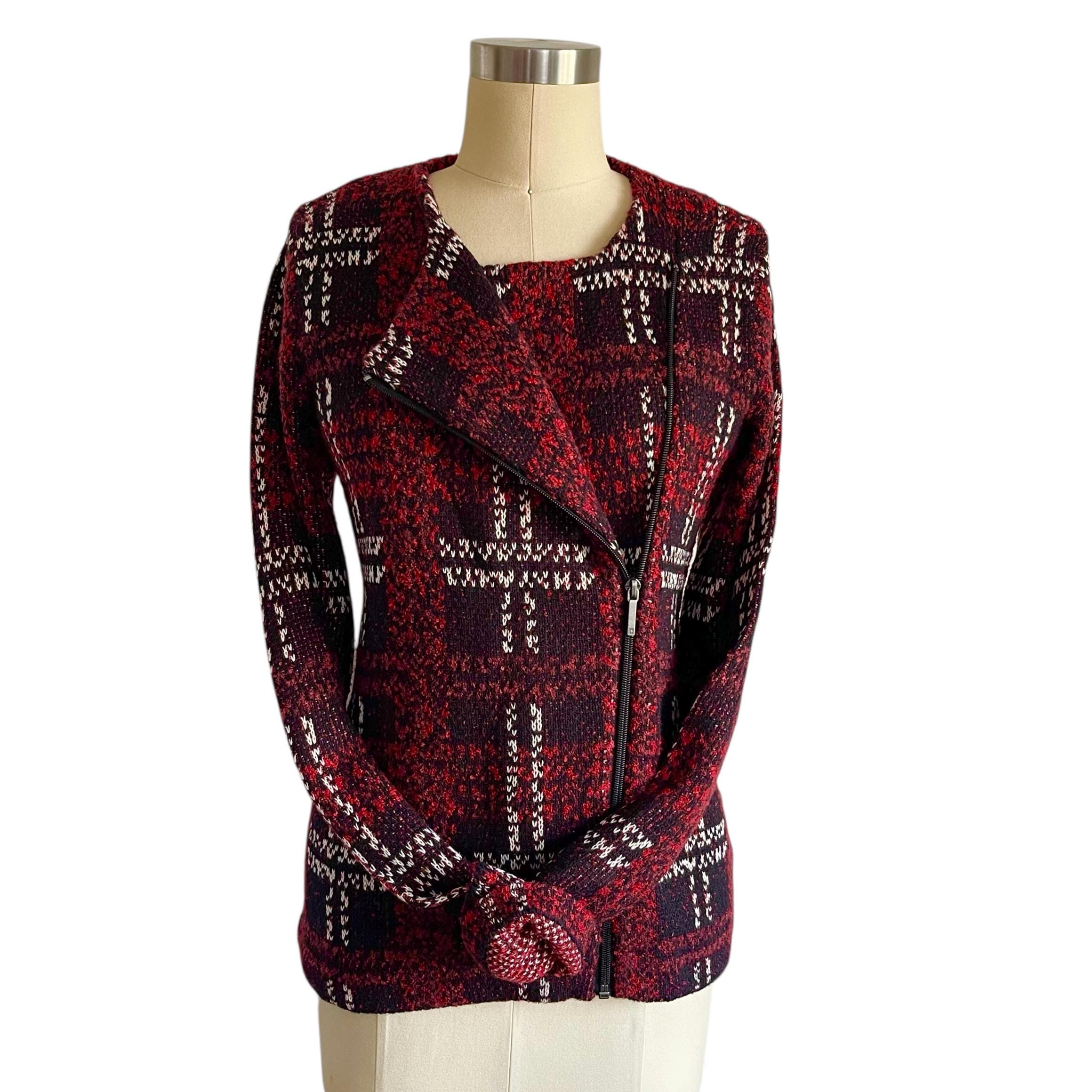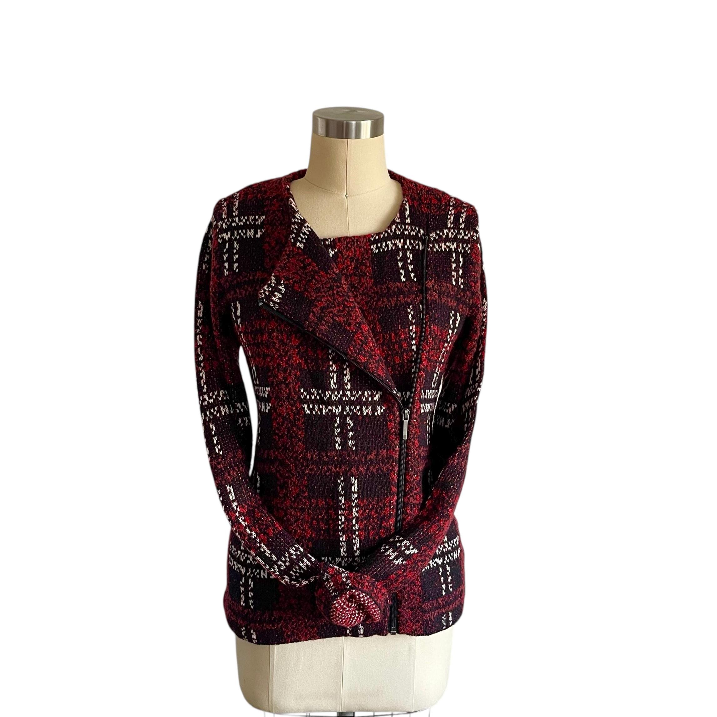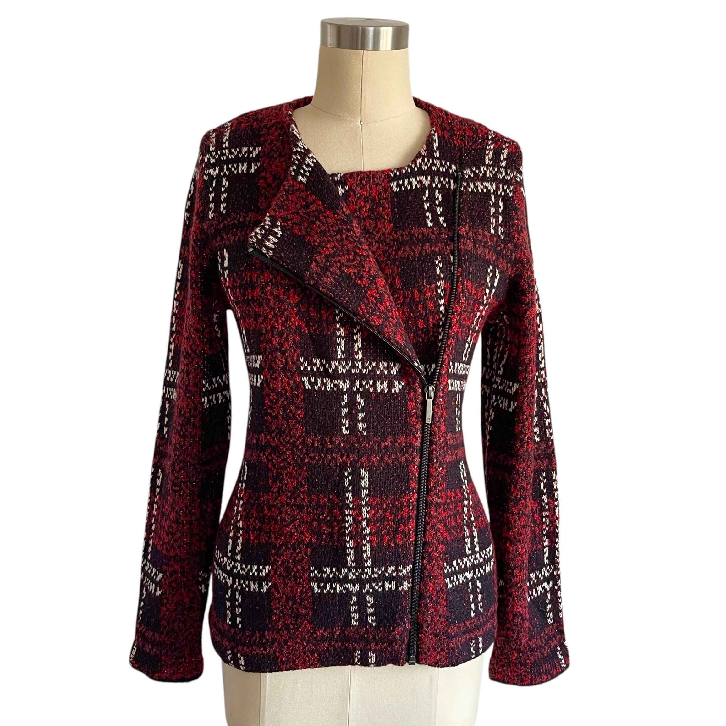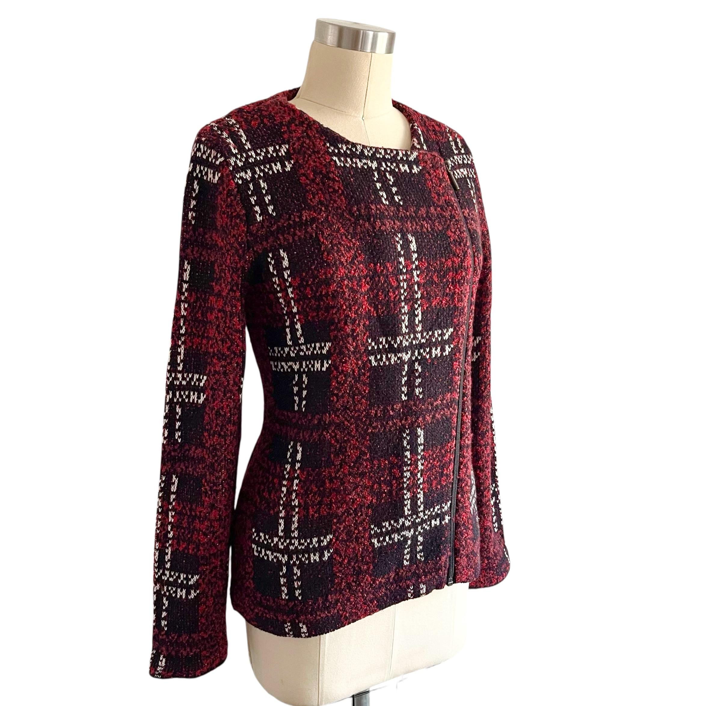 Vintage Chaps Red Black Plaid Zip-Up Jacket: Plaid Sweater Jacket, Burgundy, Merlot, Business Casual, Dark Academia, Grunge, 90s Y2K Jacket