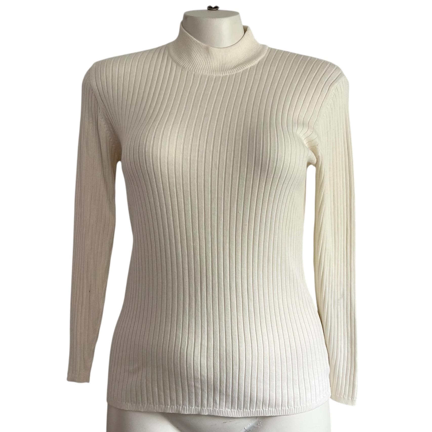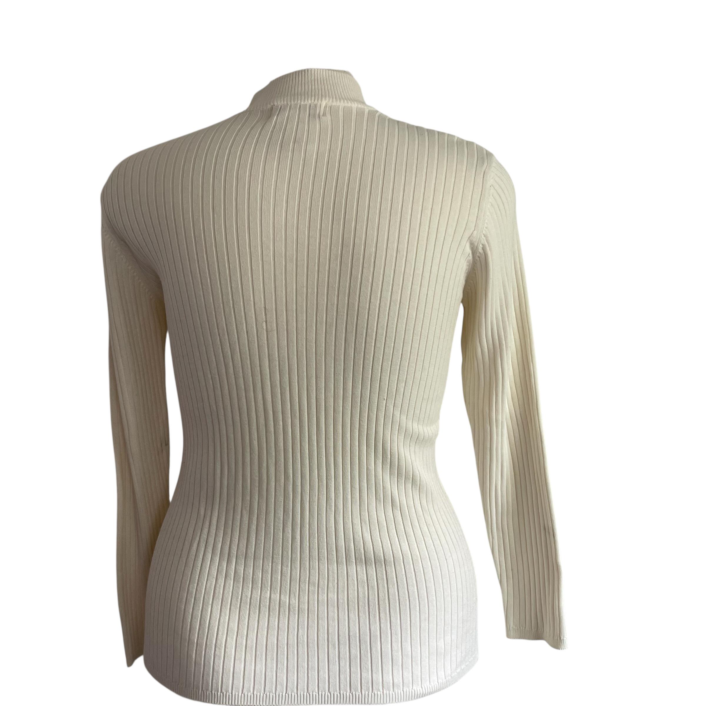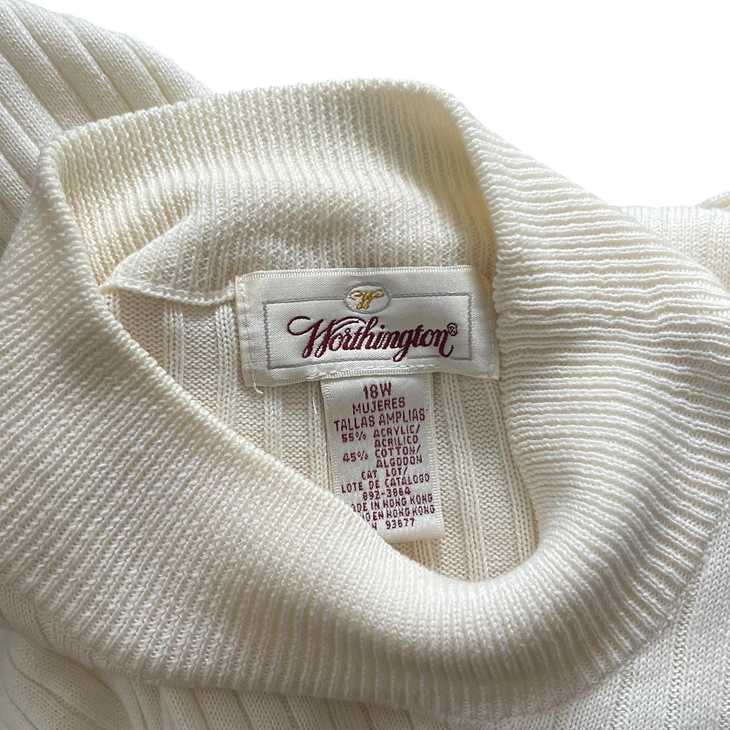 Vintage Worthington Ivory-White Sweater Top: Ribbed Sweater Blouse, Fall, Autumn, Coffee Shop, Mock Neck, Gilmore Girls, 90s Y2K.