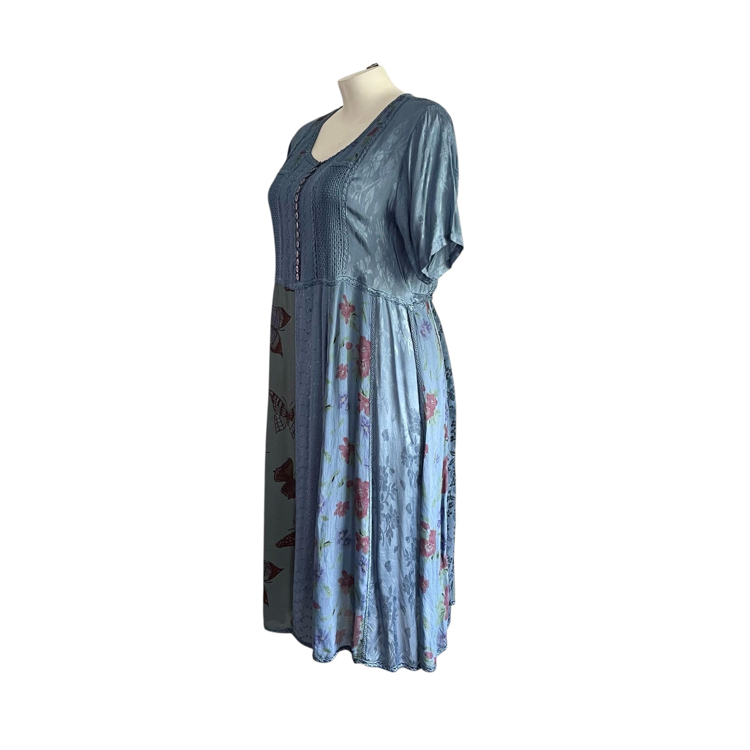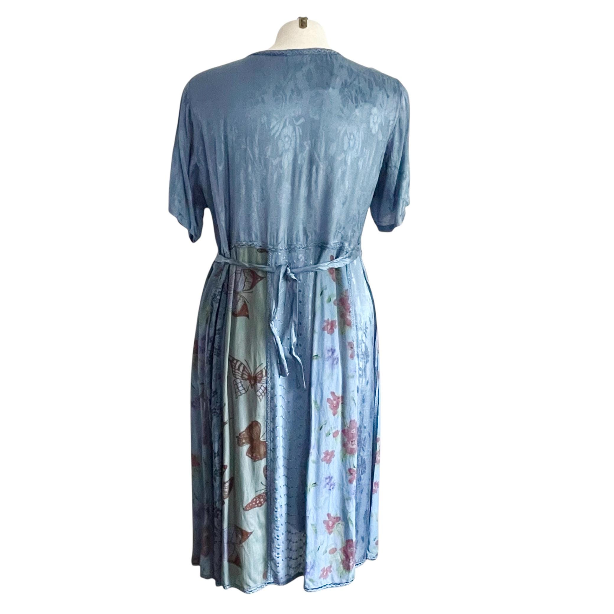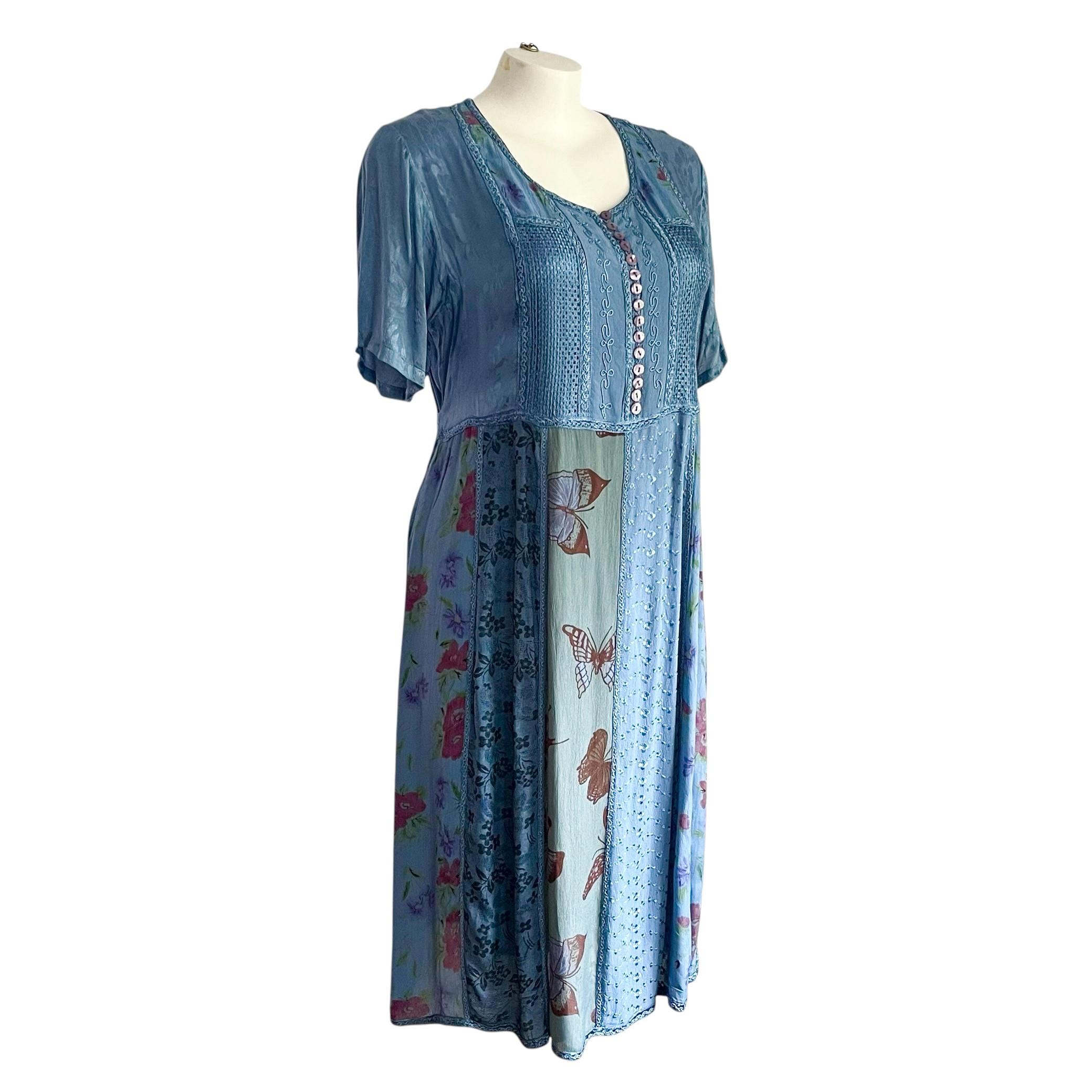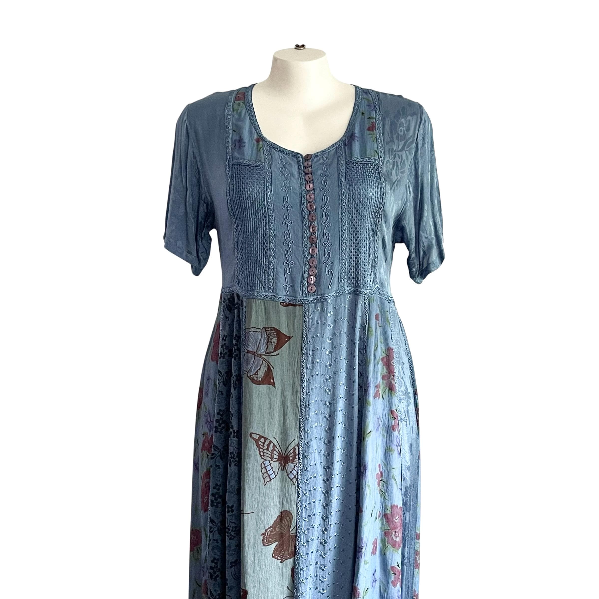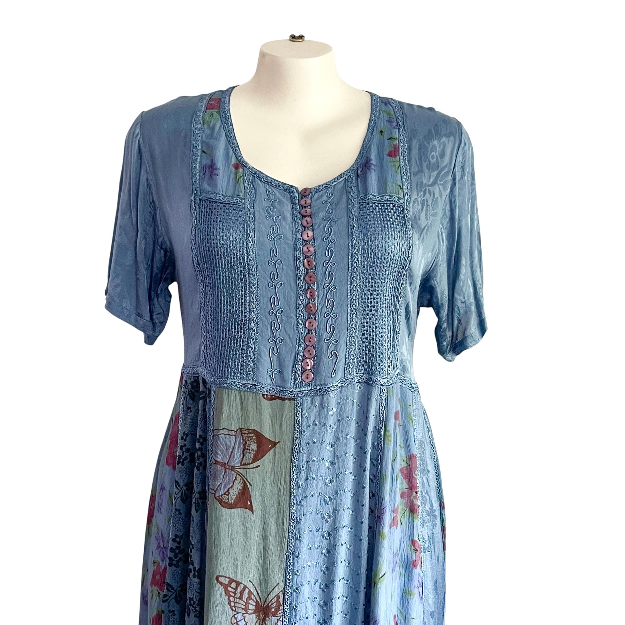 Vintage 90s Ice Blue Midi Dress: Bohemian, Soutache, Womens Casual Midi Dress, Market Casual Dress, Lightweight, Cottagecore, Marisol Dress.