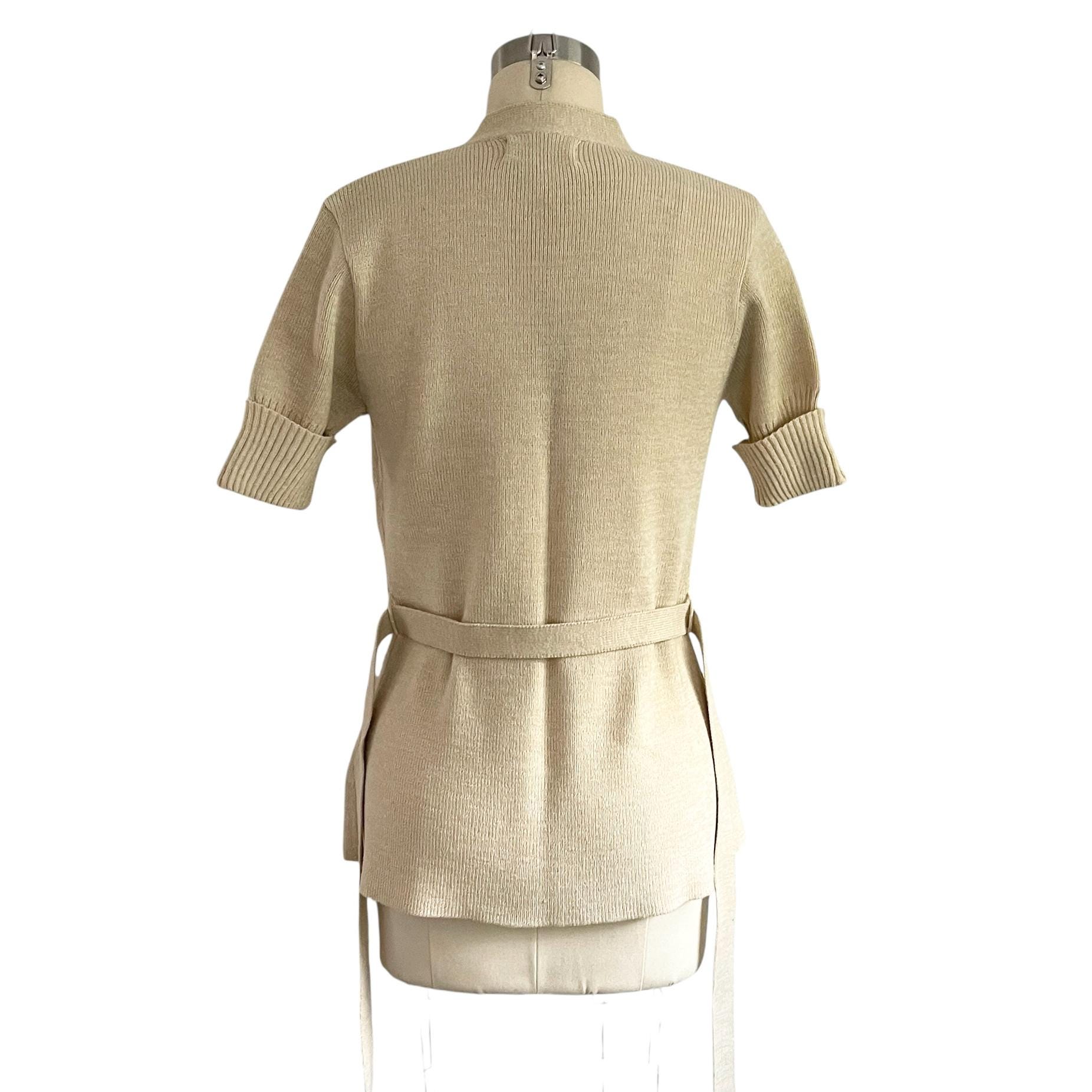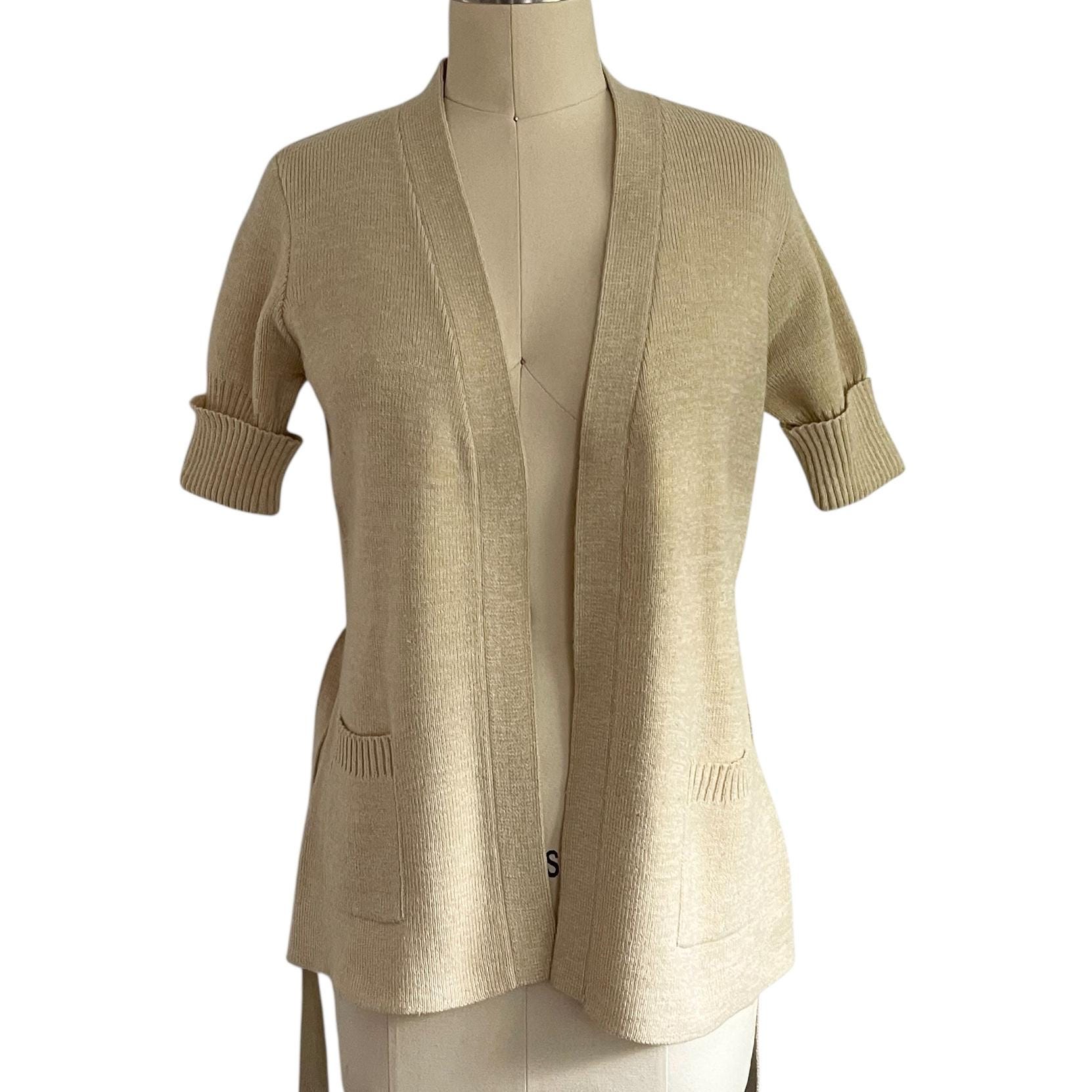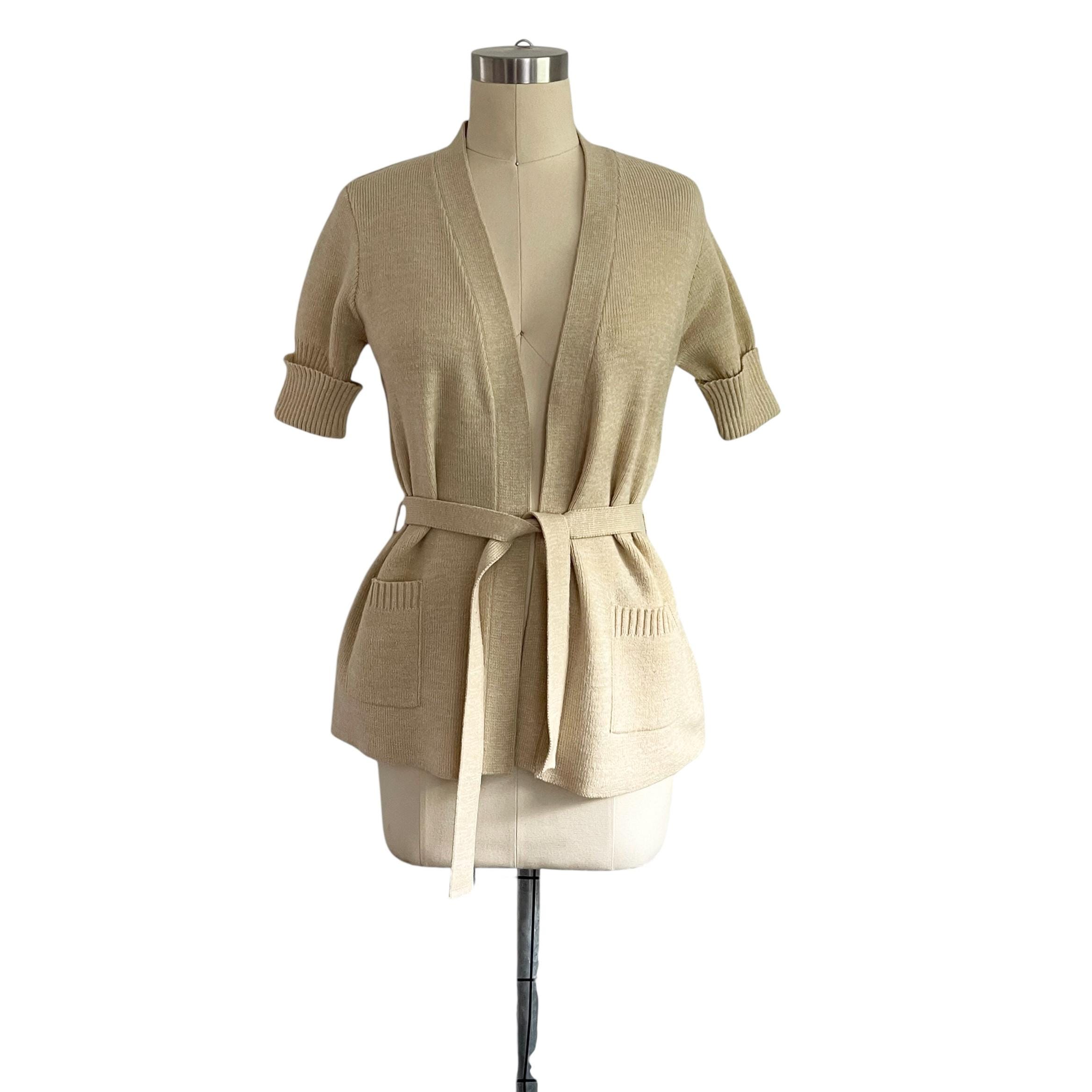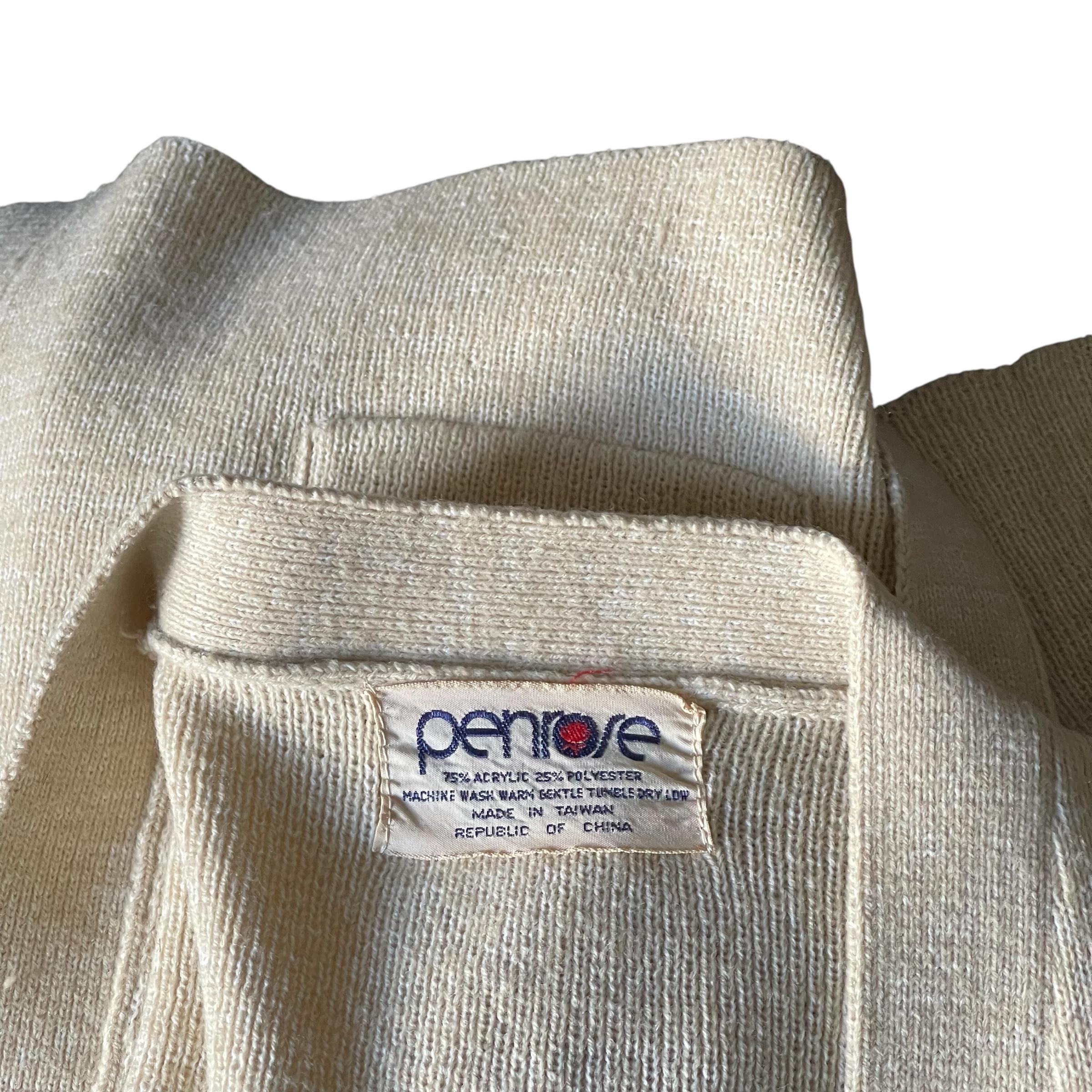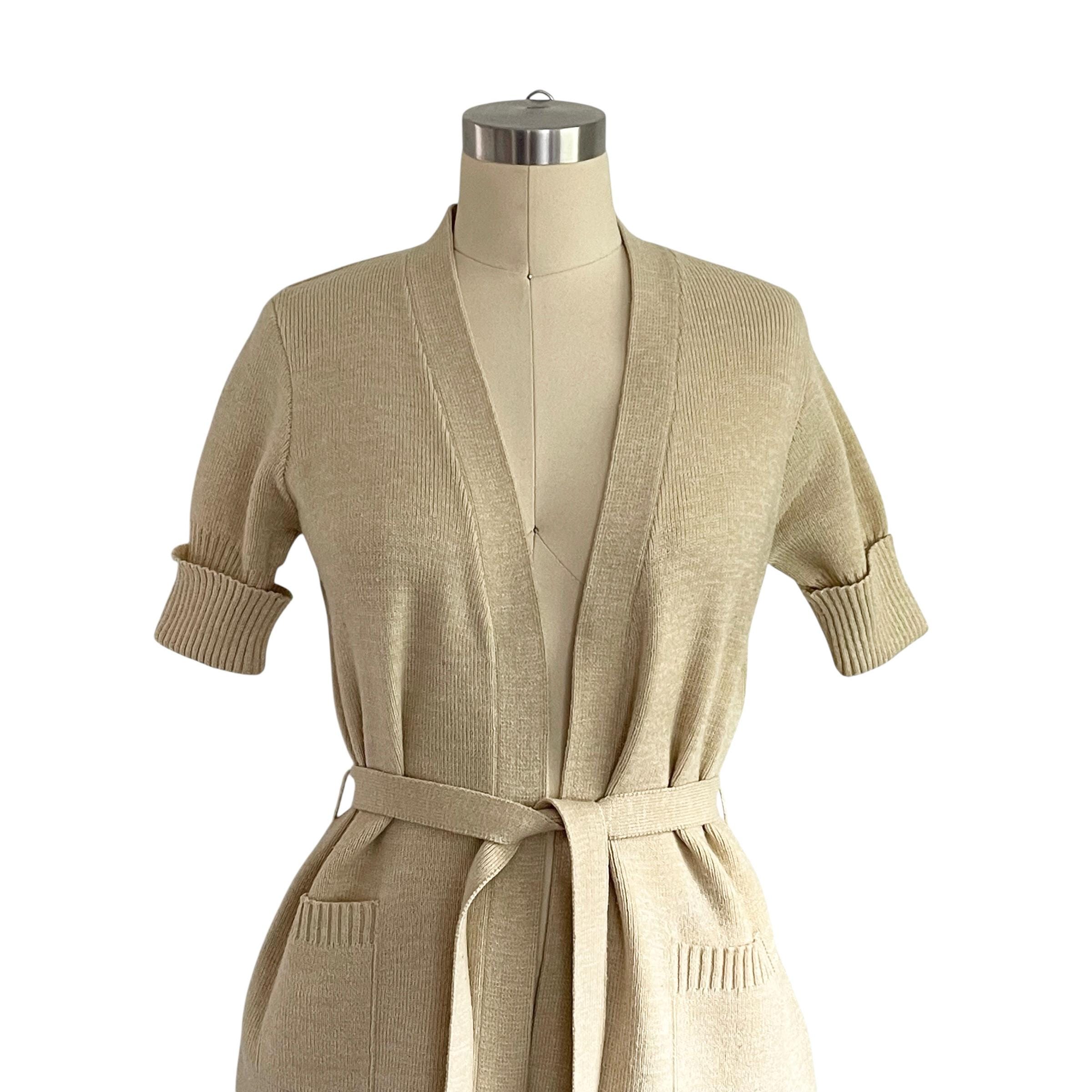 Vintage Penrose Ivory-Beige Cardigan Robe: Short to Mid Sleeves, Waist Belt, Pockets, Loungewear, Sweater Robe, 60s 70s 80s.