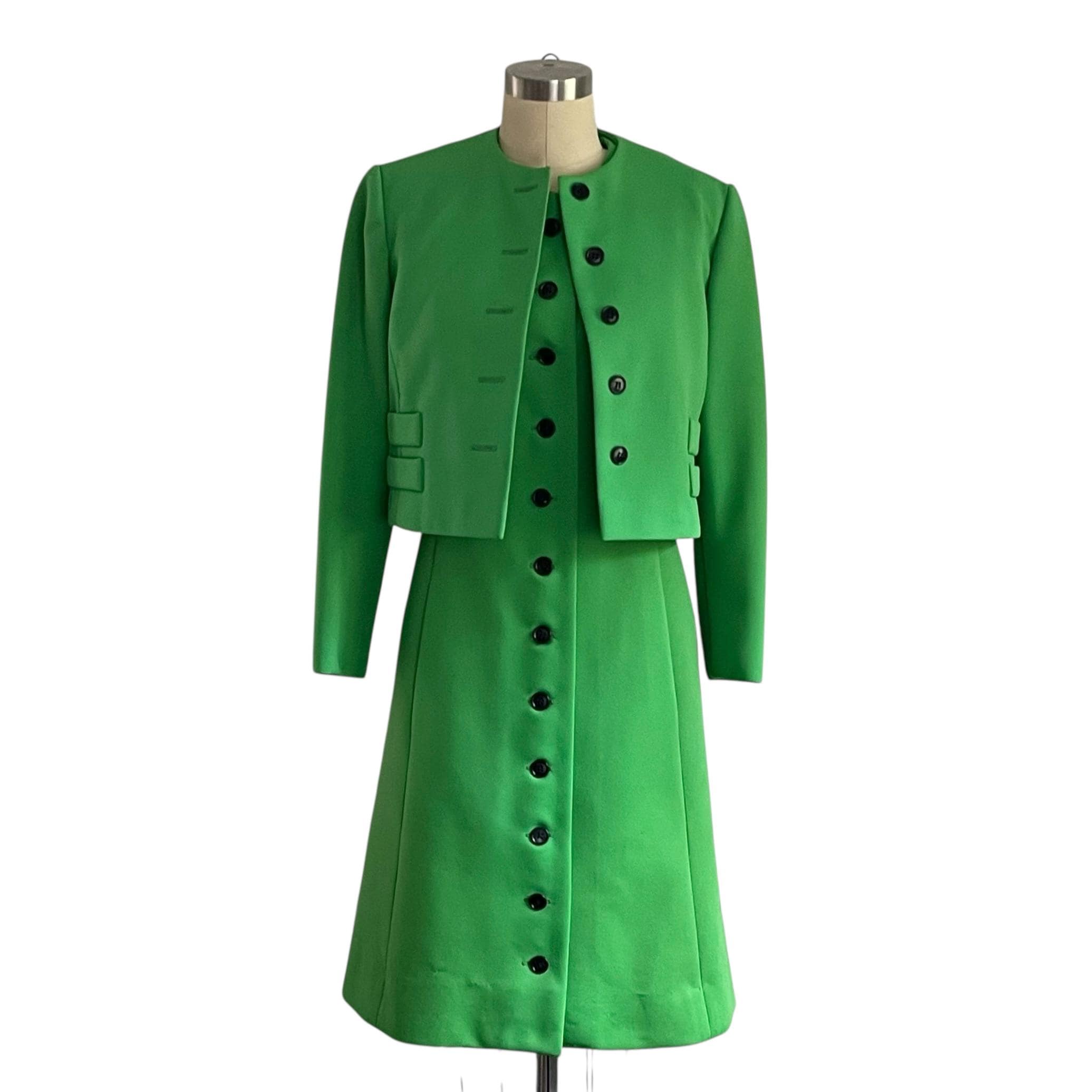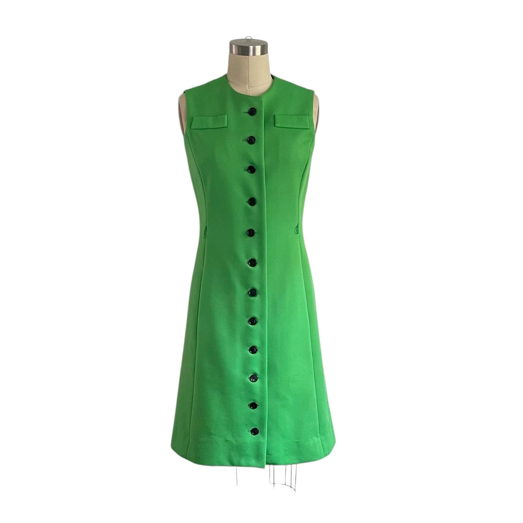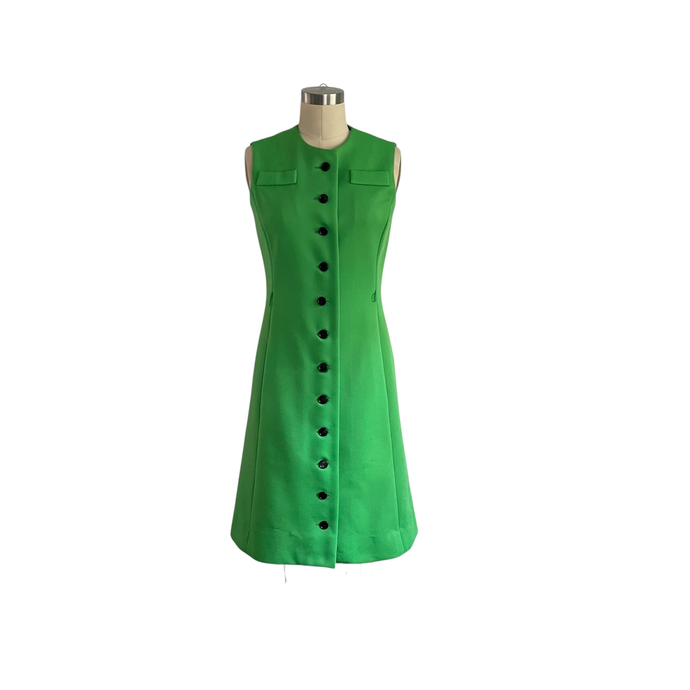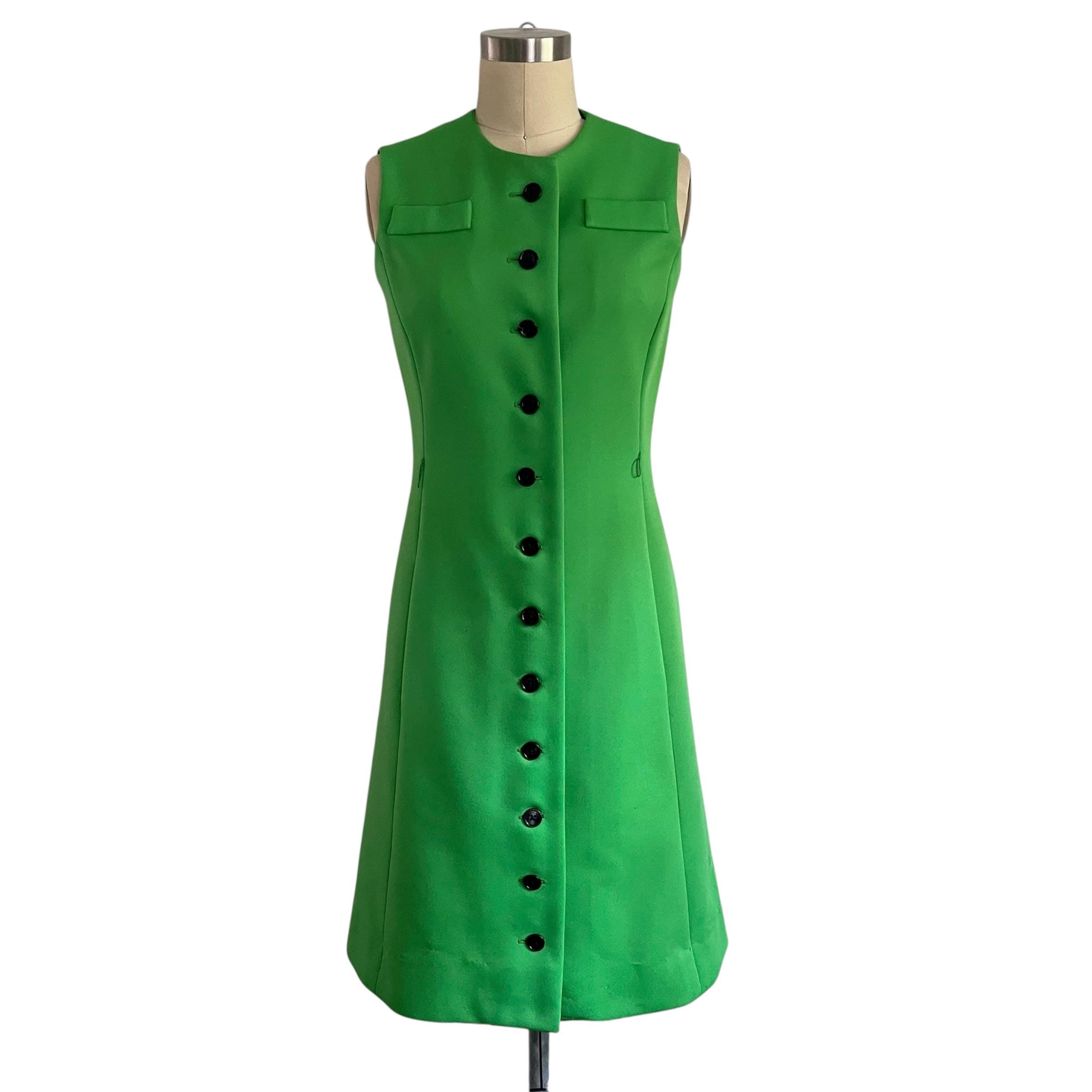 Vintage Green Mod Button-Up Dress & Jacket Set: Dress Set, Casual, Day Out, Mod Style, Sleeveless Dress, 60s 70s 80s