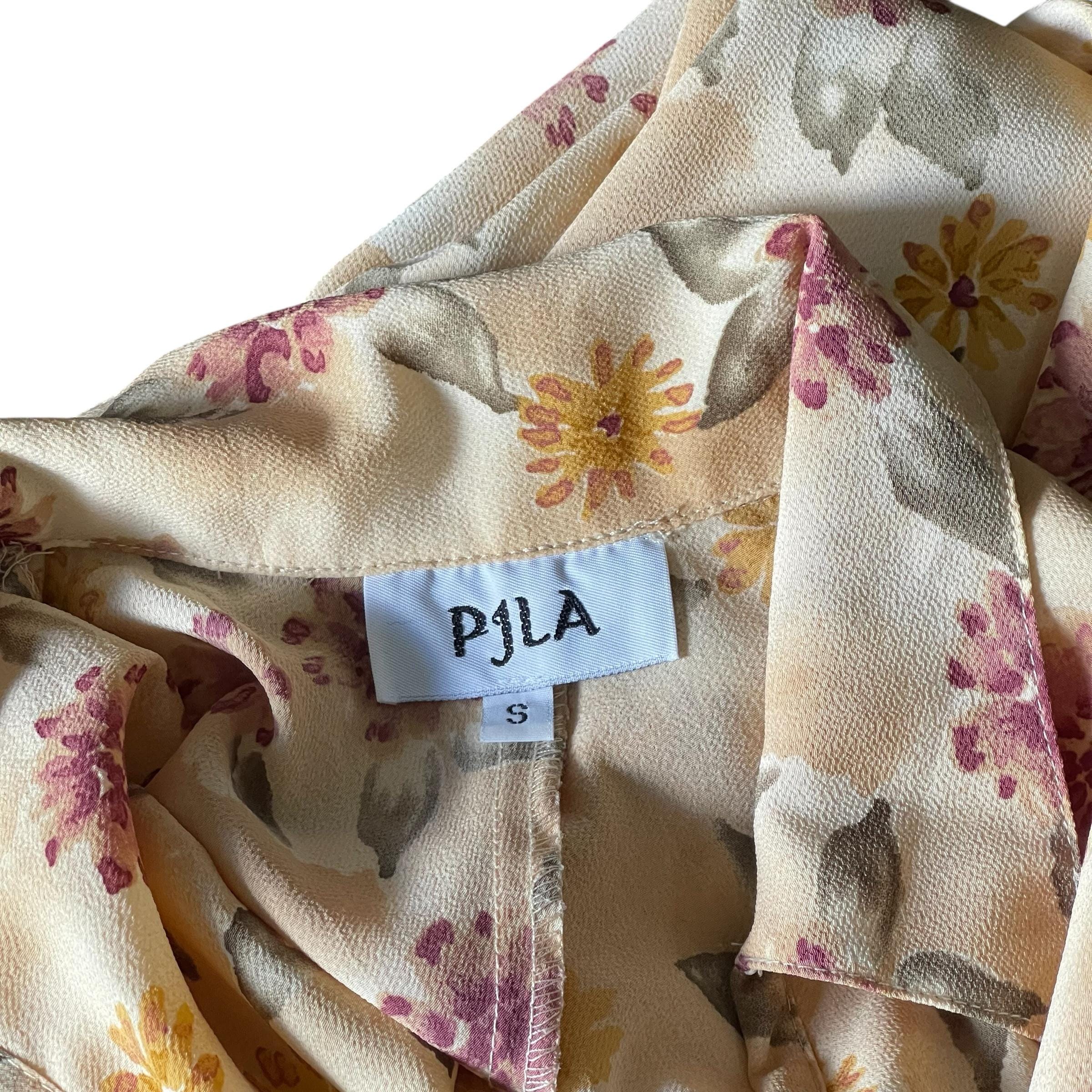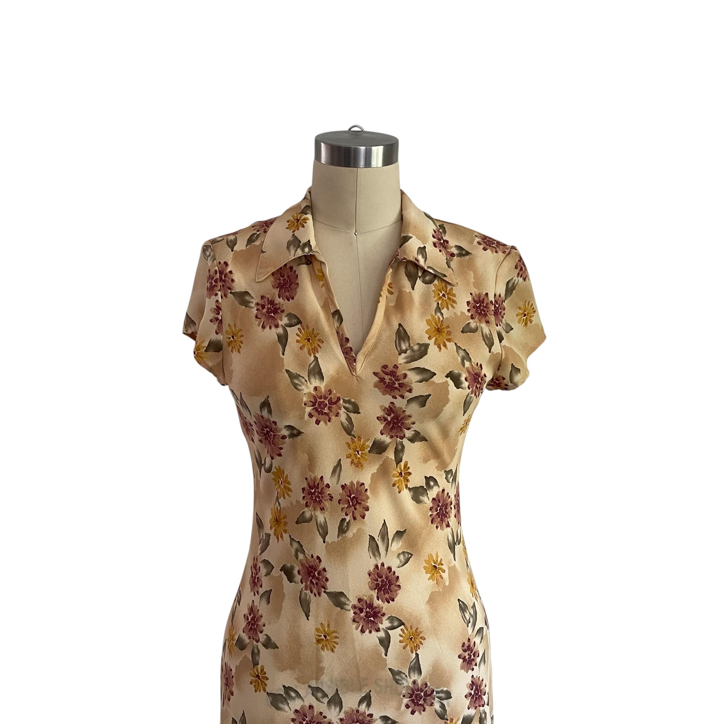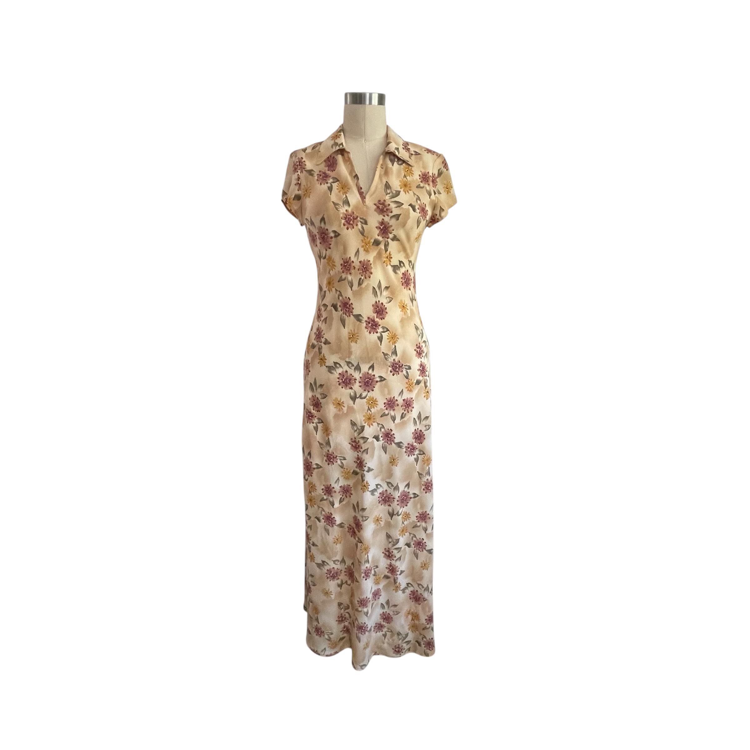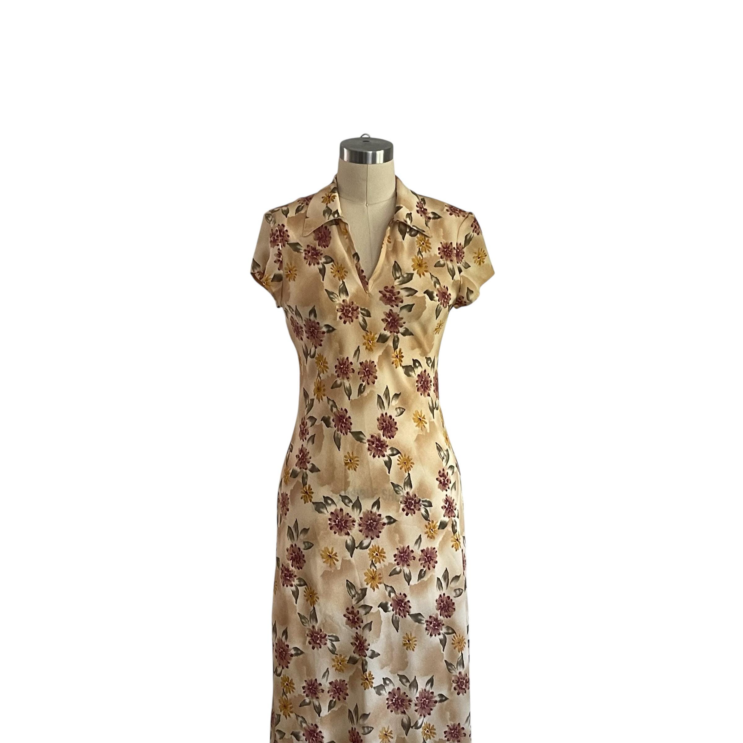 Vintage PJLA Yellow Multicolor Floral Dress: Flower Print, Garden Dress, Short Sleeves, Collared Dress, Mom Dress, Fall, Autumn, 70s 80s.