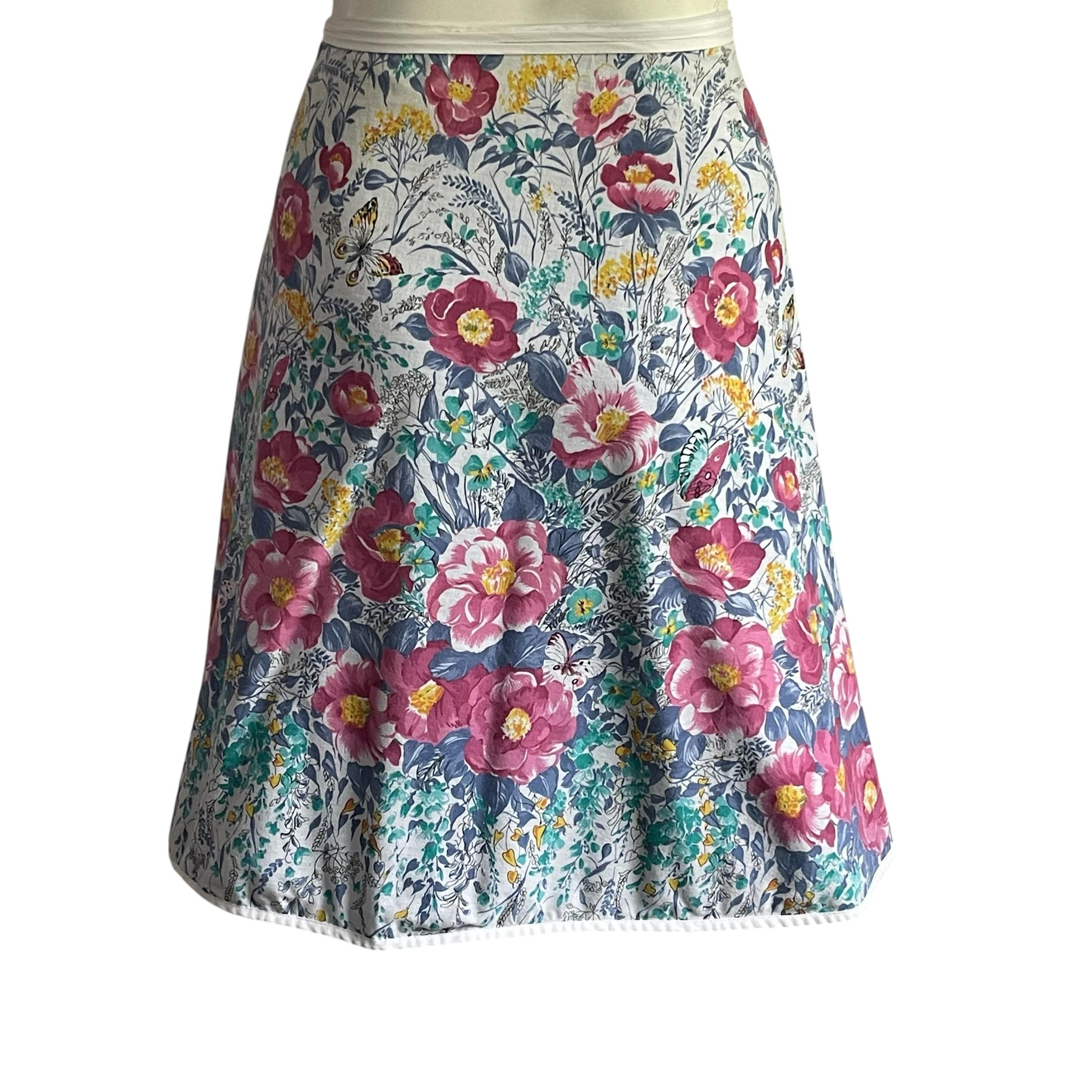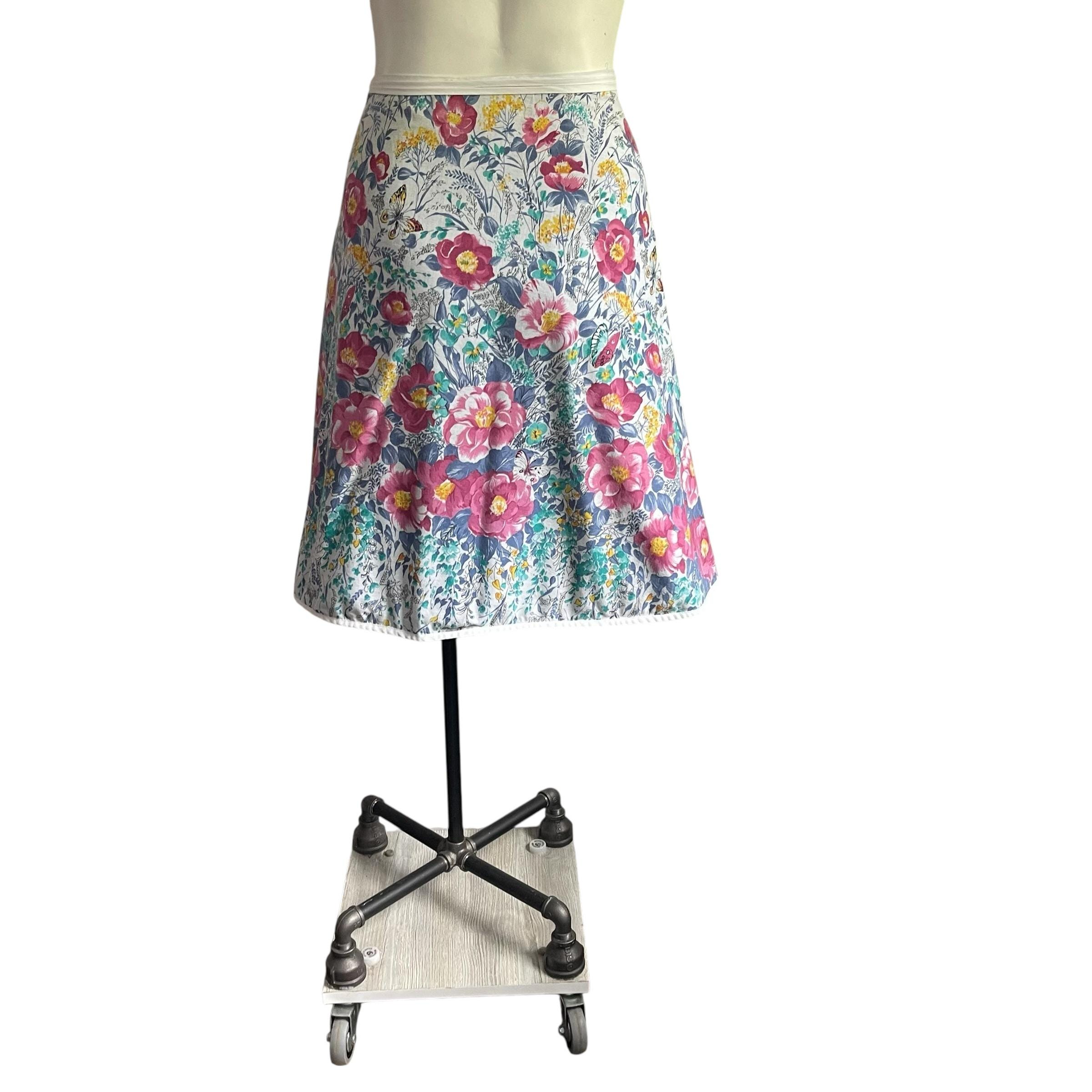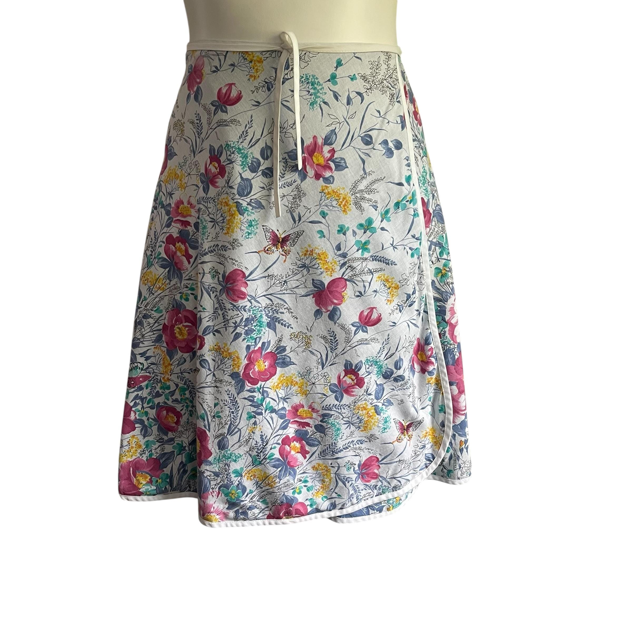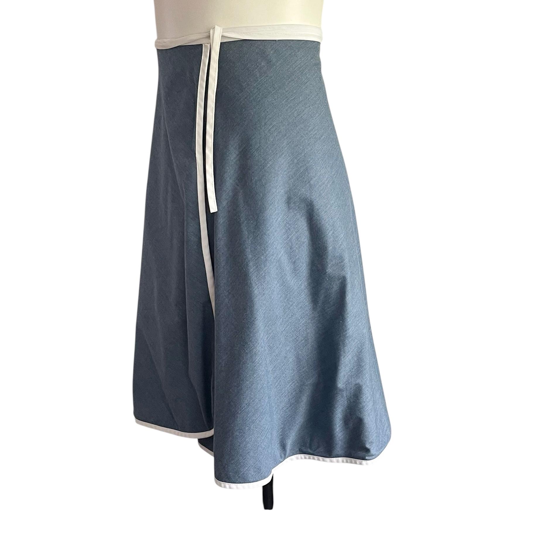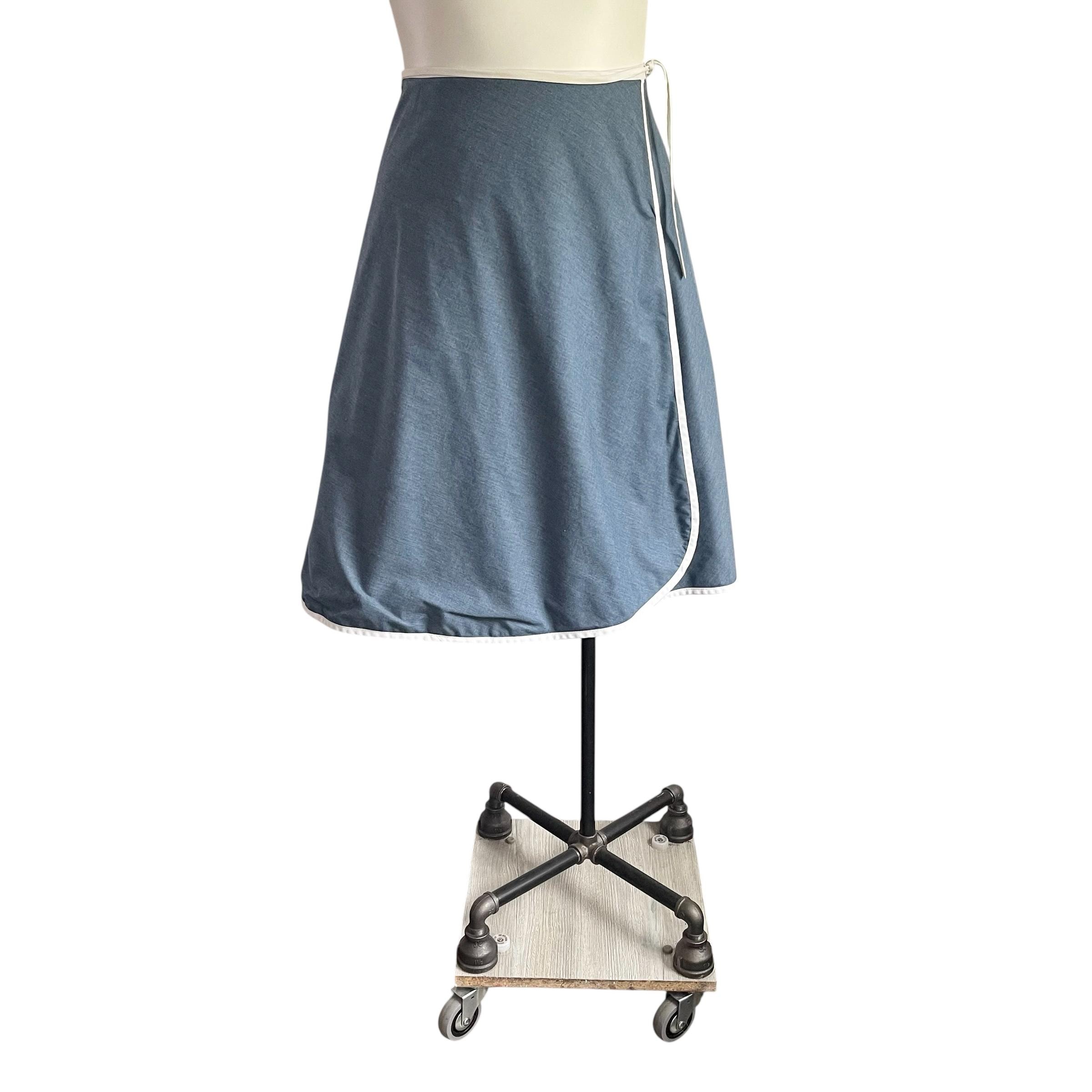 Vintage Floral & Chambray Wrap Skirt: Chambray Blue, Granola Chic, Whimsy, Cottage Garden Floral Skirt, 70s, 80s, Fairycore Dress Skirt.