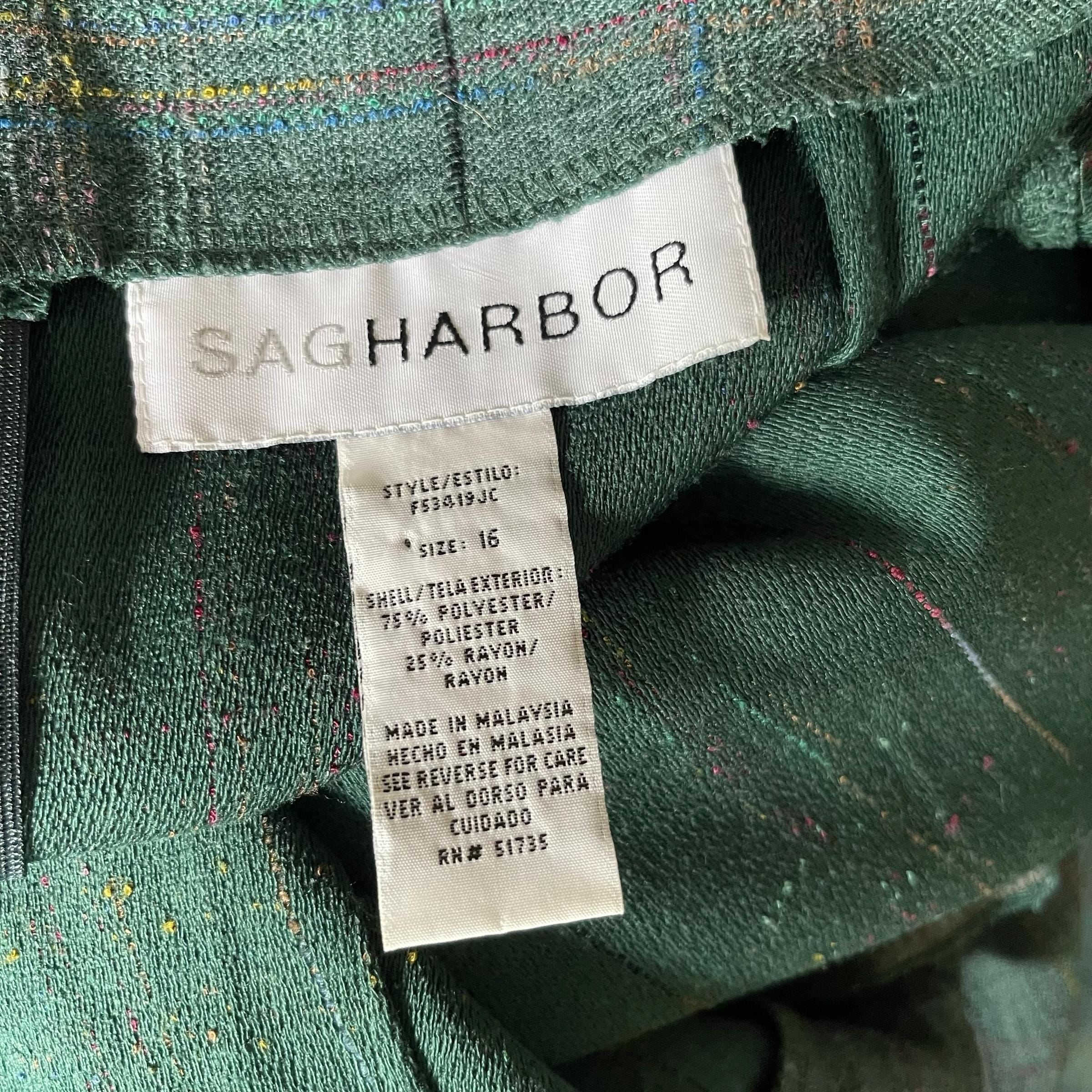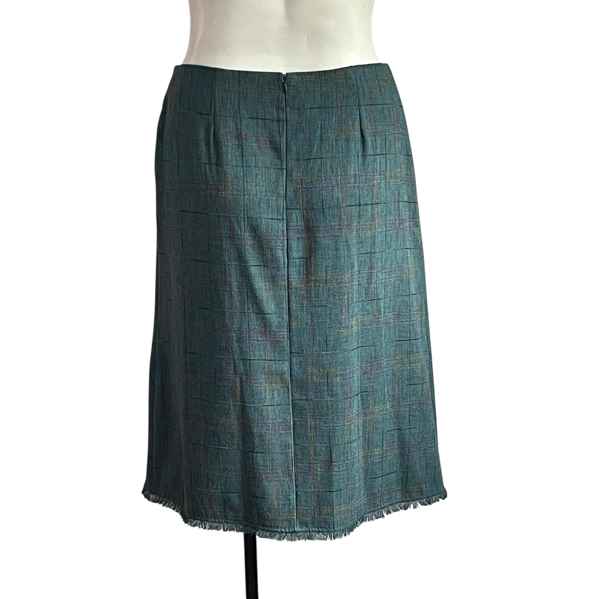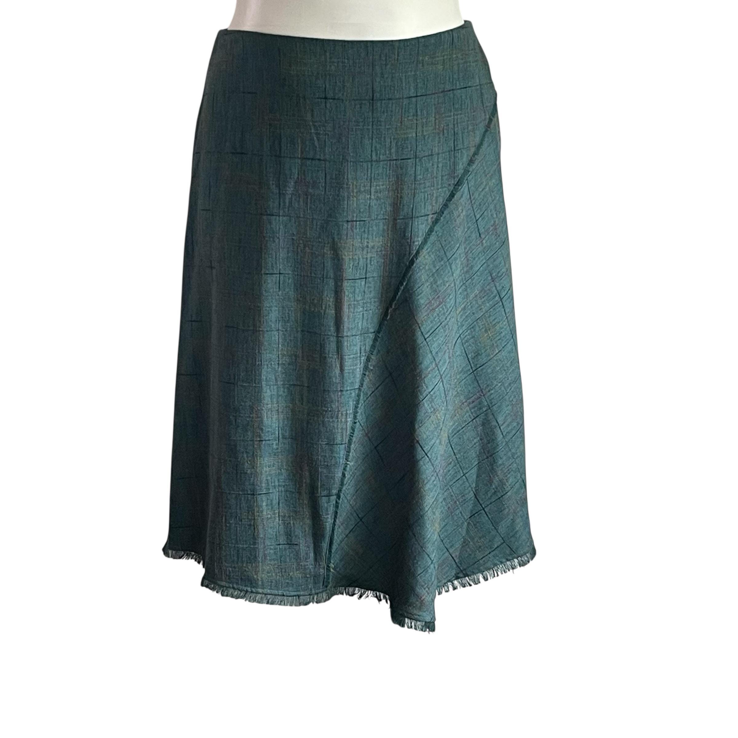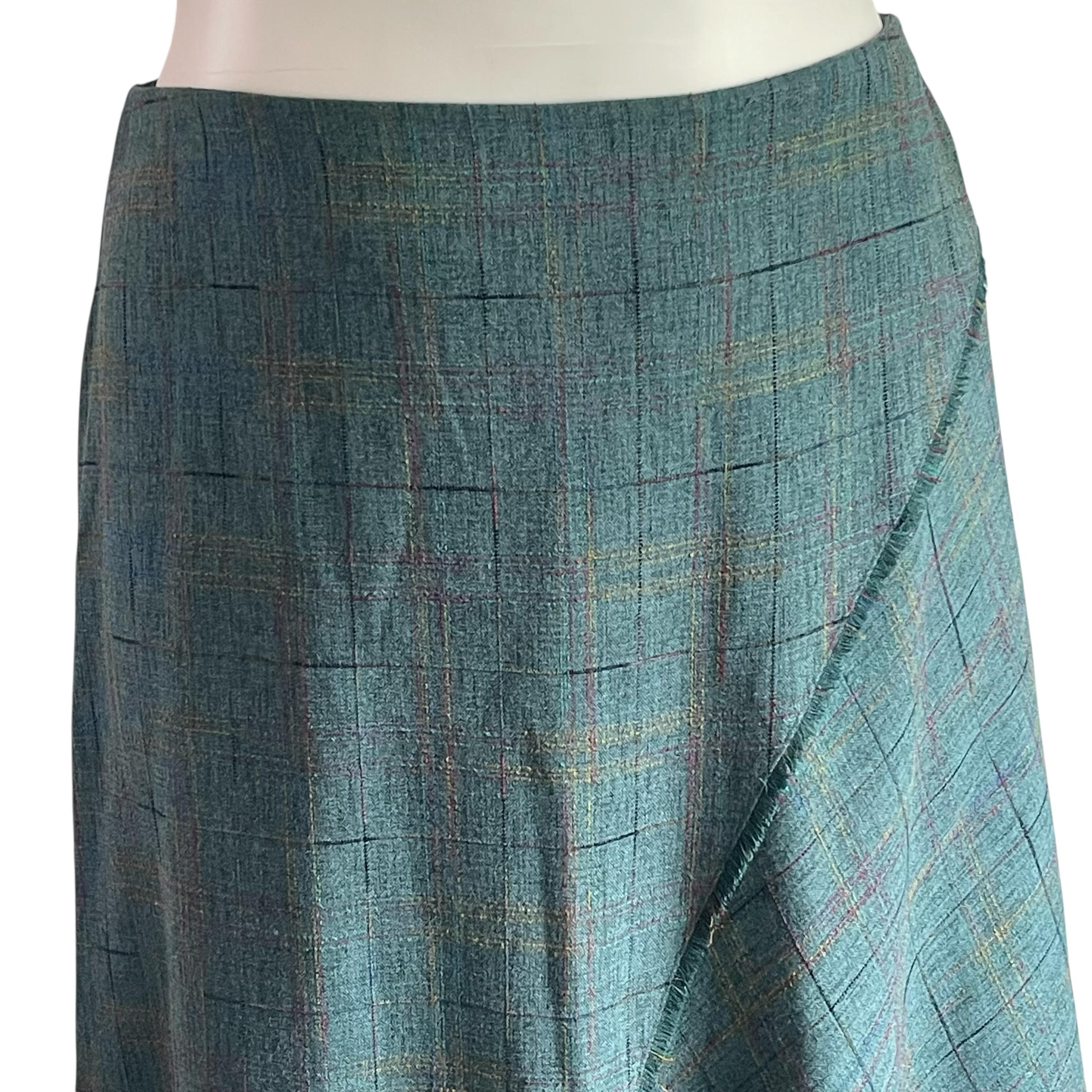 Vintage Sag Harbor Green Multicolor Windowpane Skirt: Wool Bias Cut Skirt, Fringes, Boho, Hippie, Grunge, 90s Y2K.