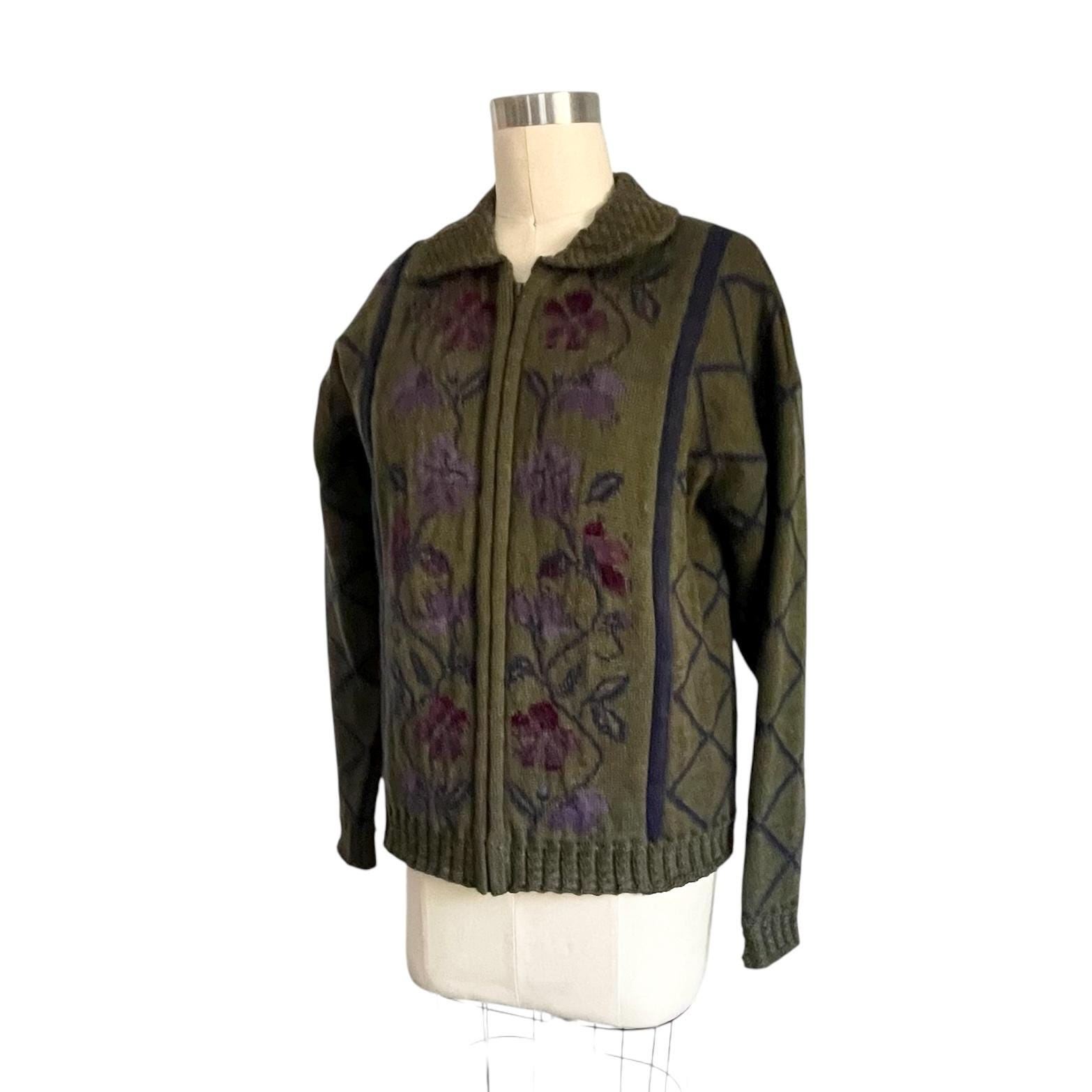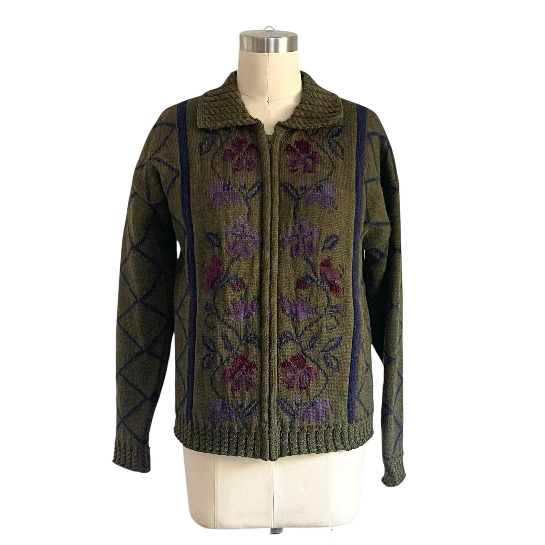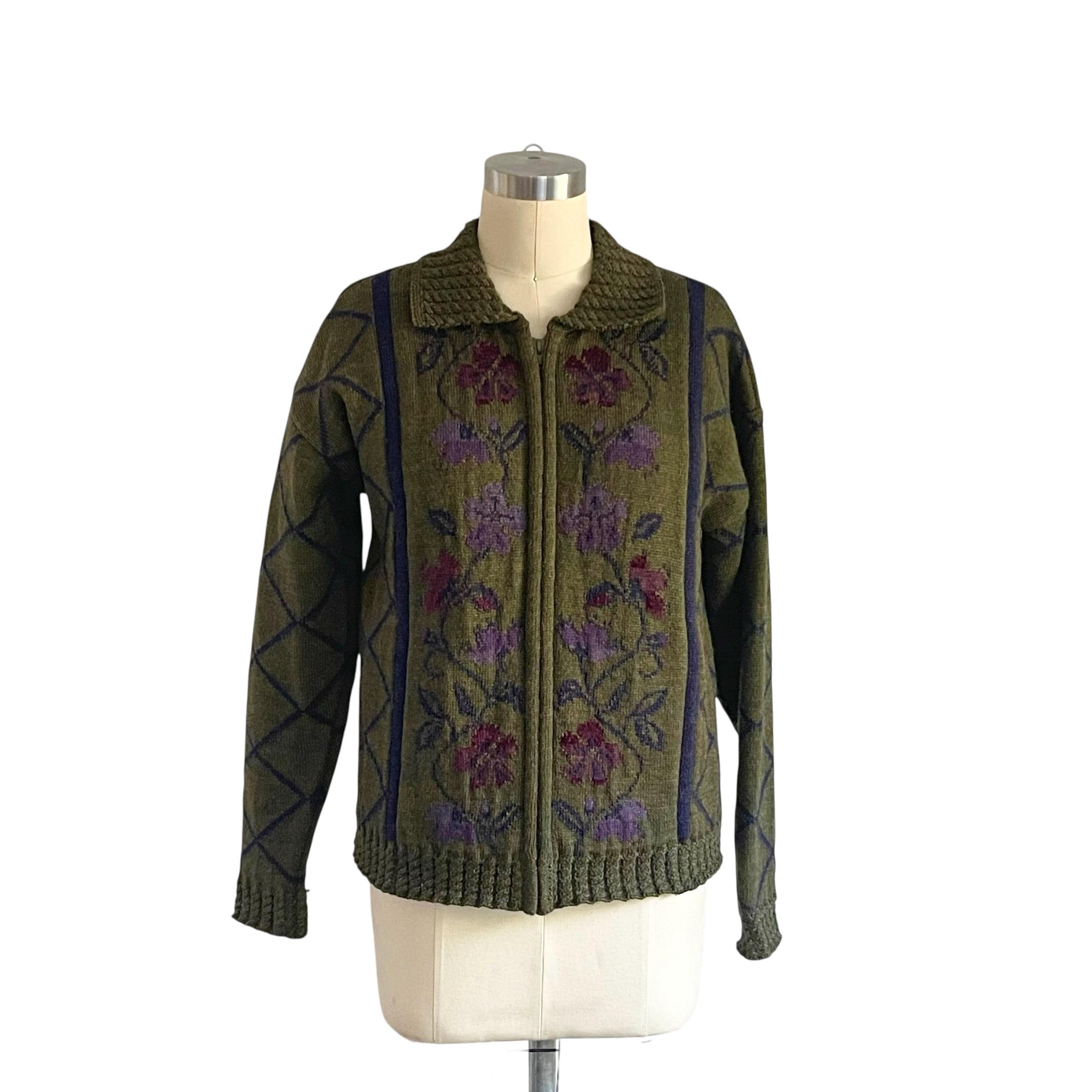 Vintage Chessy Lewis Dark Multicolor Floral Sweater Jacket: Fall, Autumn, Knit, Floral Pattern, Whimsigoth, Boho, Hippie, 90s Y2K.