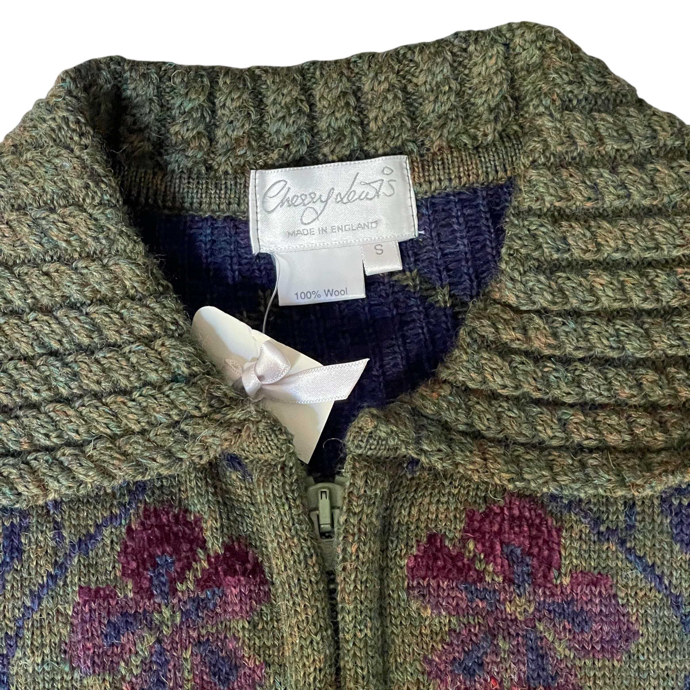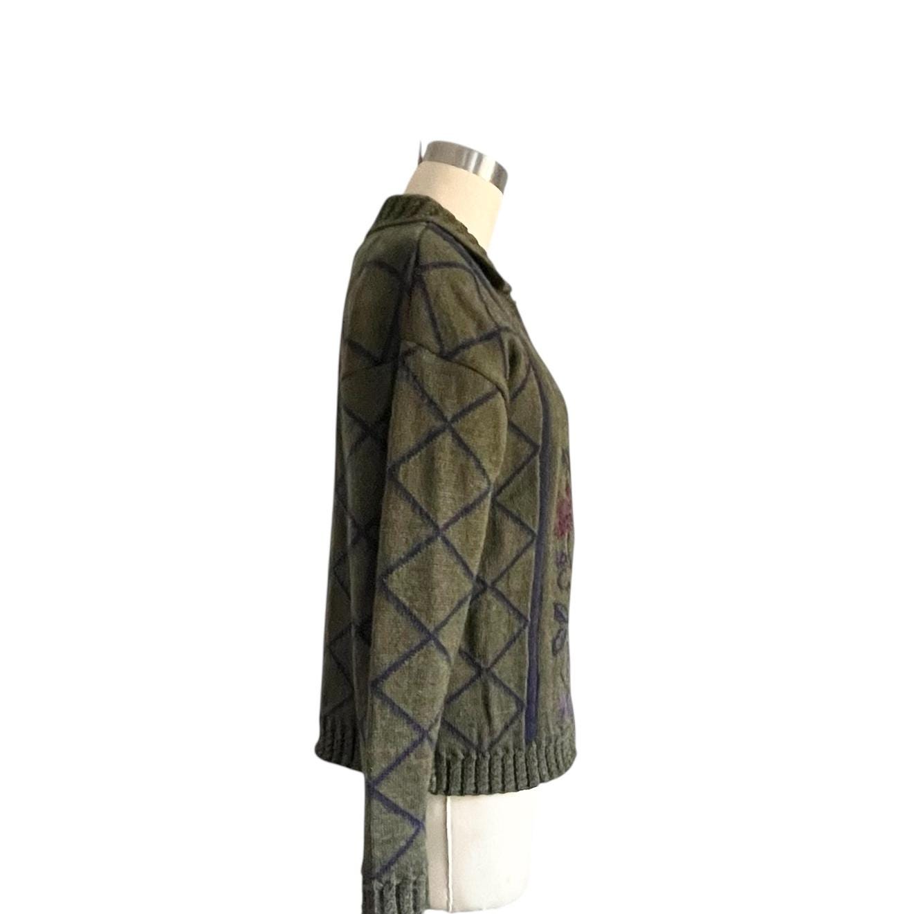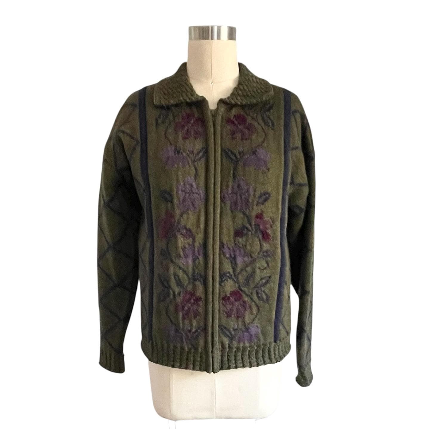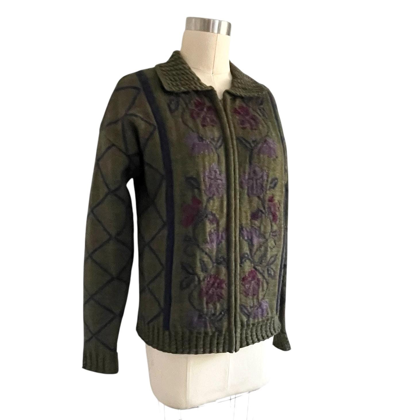 Vintage Chessy Lewis Dark Multicolor Floral Sweater Jacket: Fall, Autumn, Knit, Floral Pattern, Whimsigoth, Boho, Hippie, 90s Y2K.
