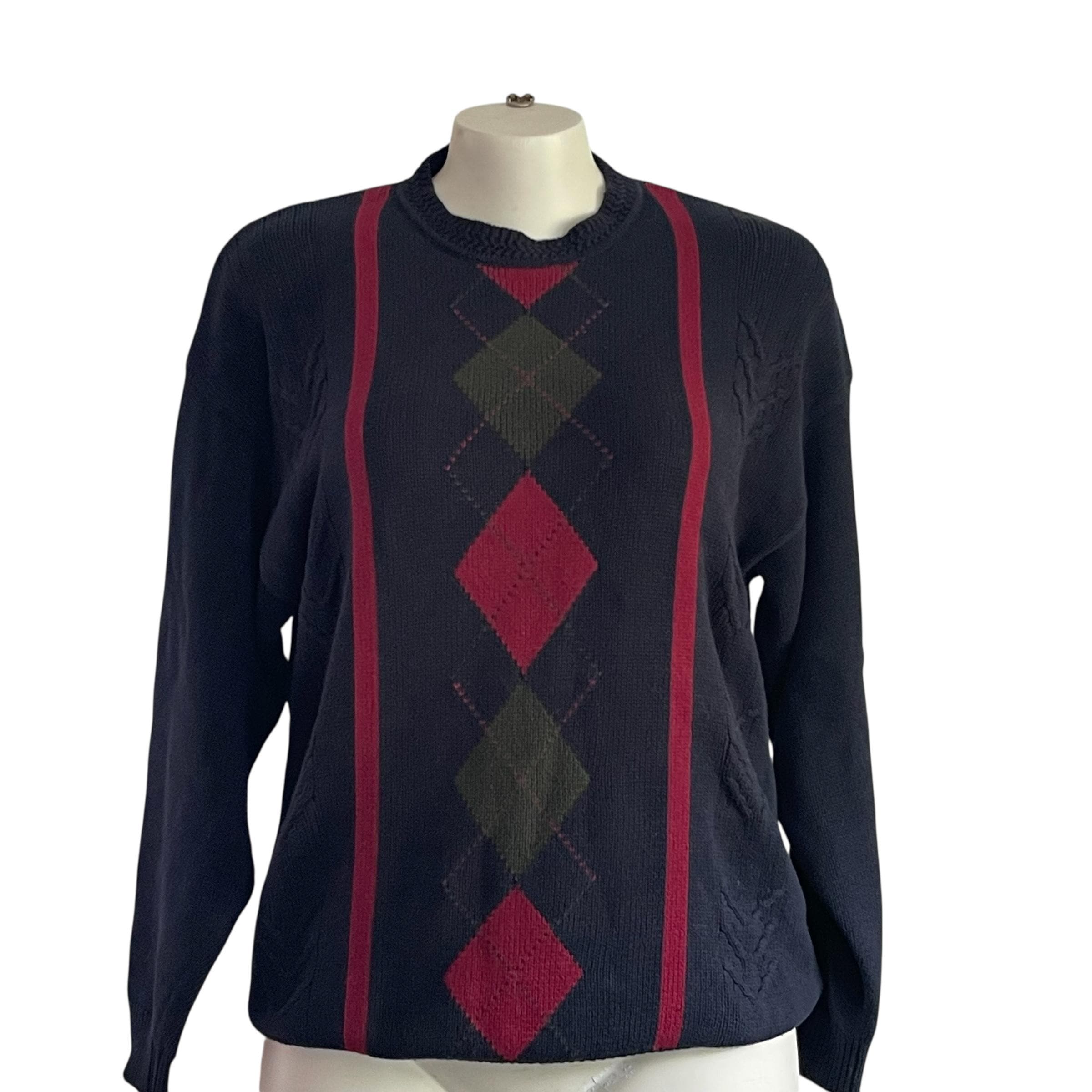 Vintage Multicolor Harlequin Pullover Sweater: Harlequin Pattern, Knit Sweater, Student, Dark Academia, Nerdy, 60s 70s 80s.