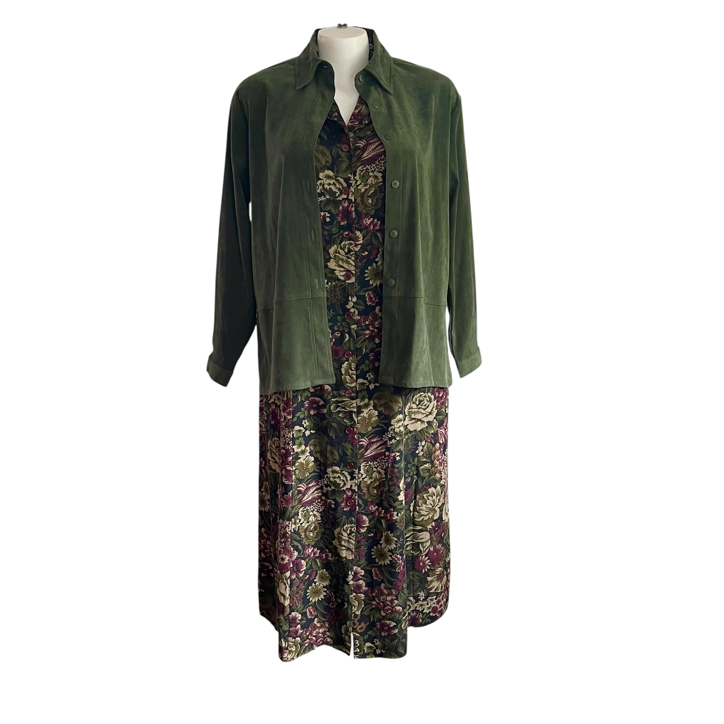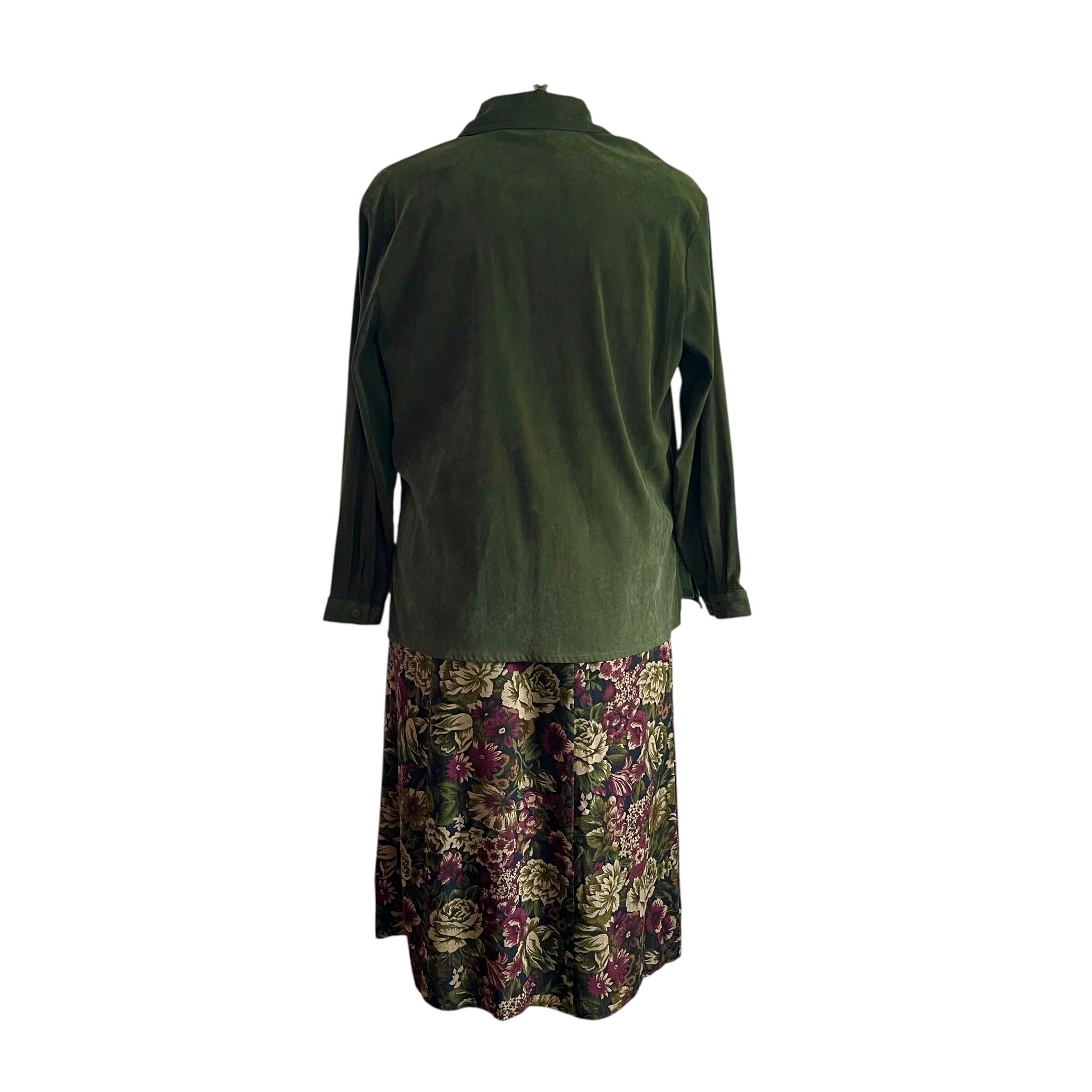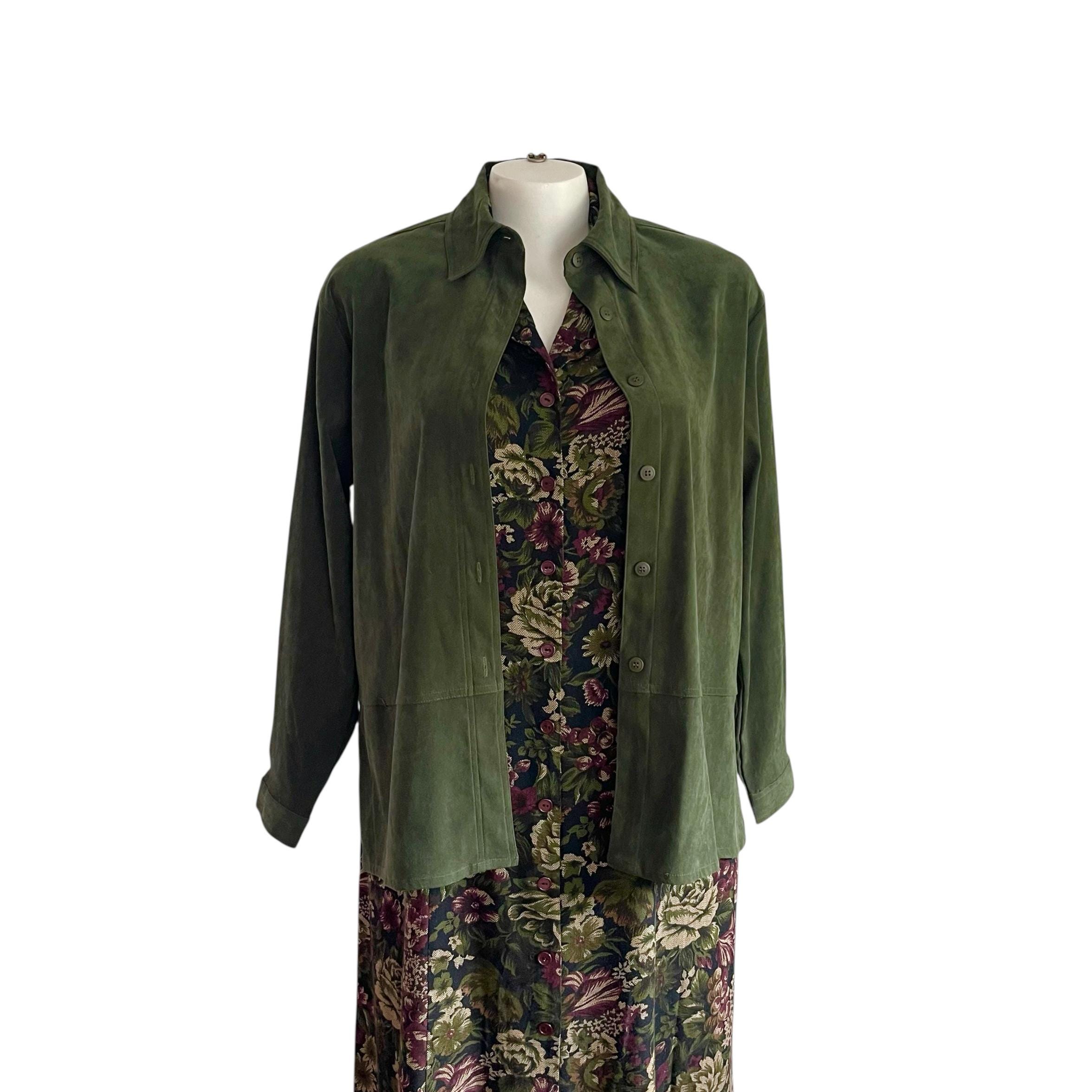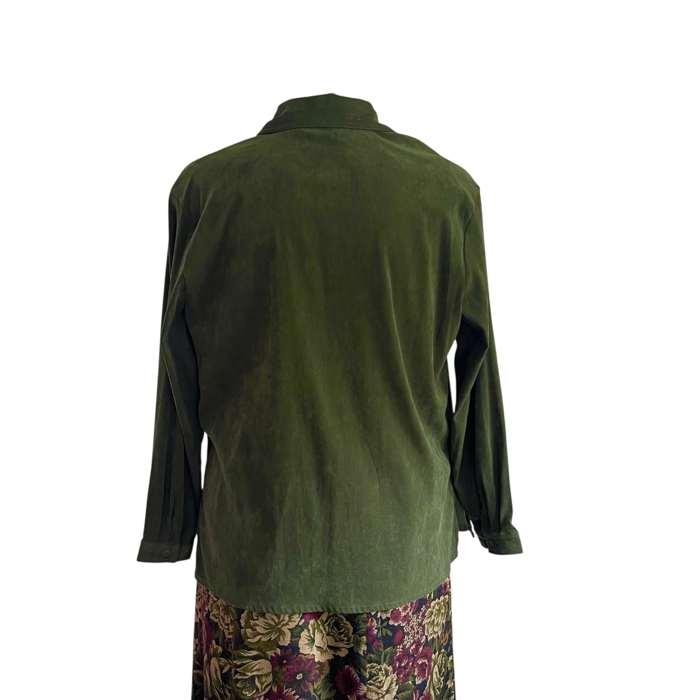 Vintage Croft & Barrow Green Button-Up Shirt: Stretch, Green, Fall, Autumn, Casual Stretch Button-Up Top.