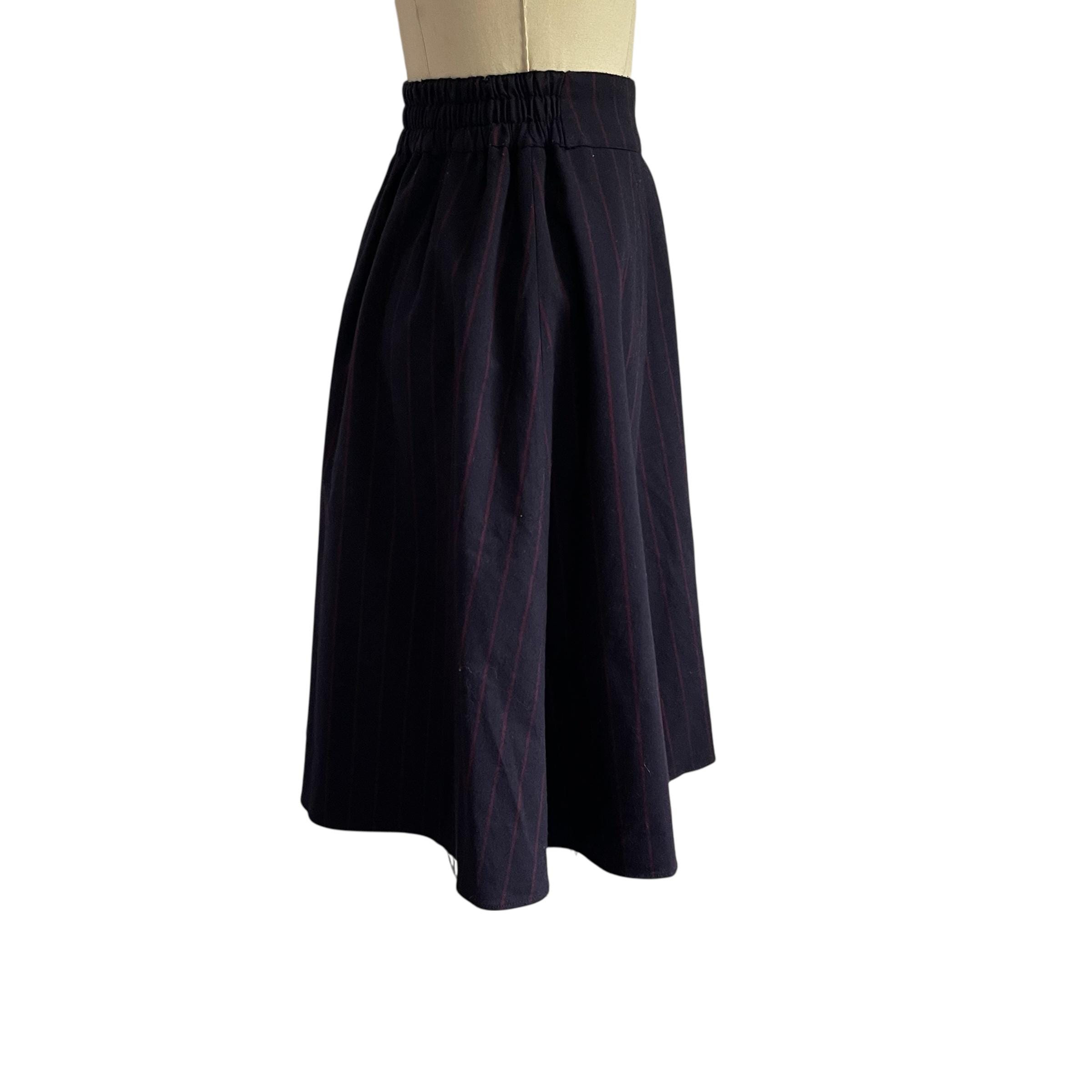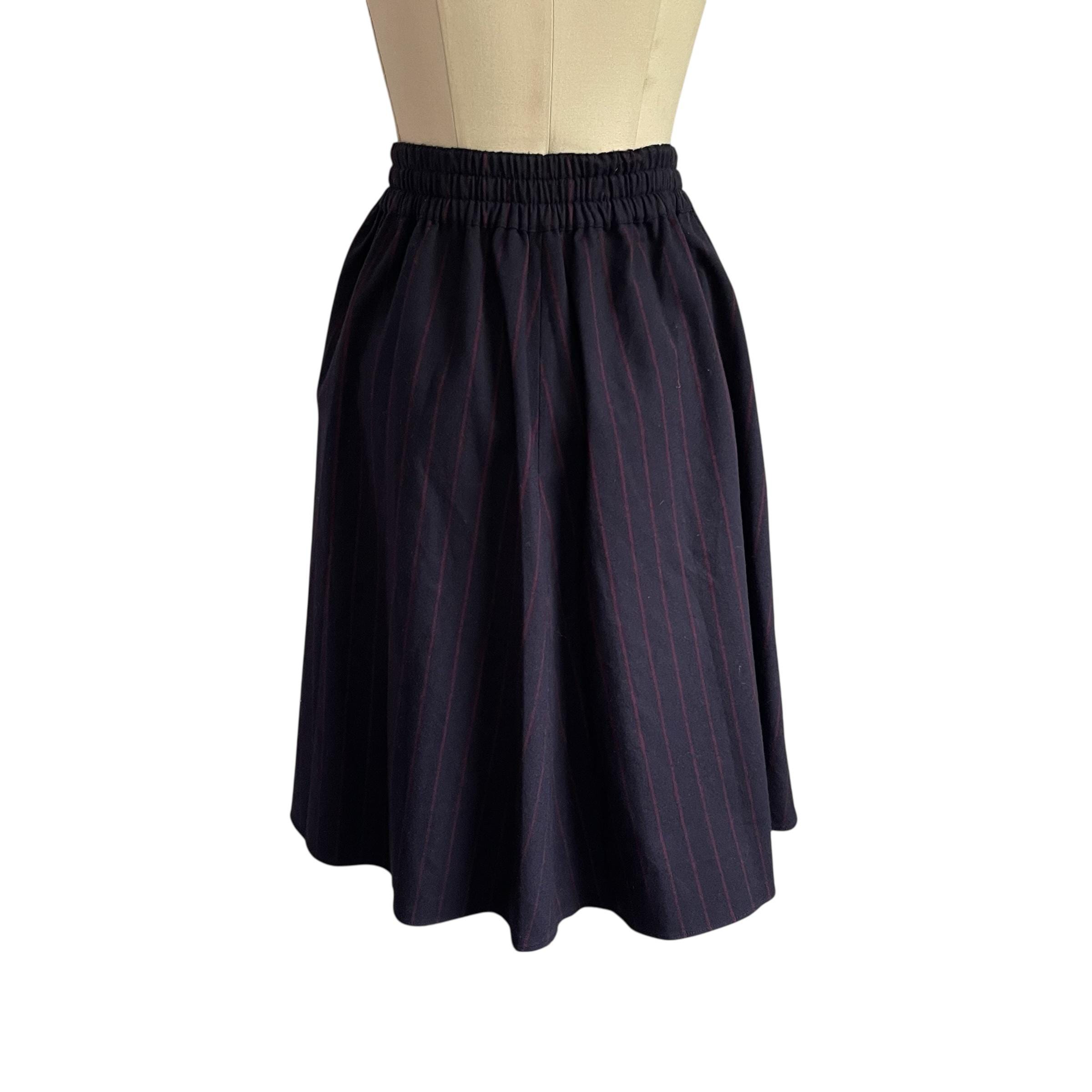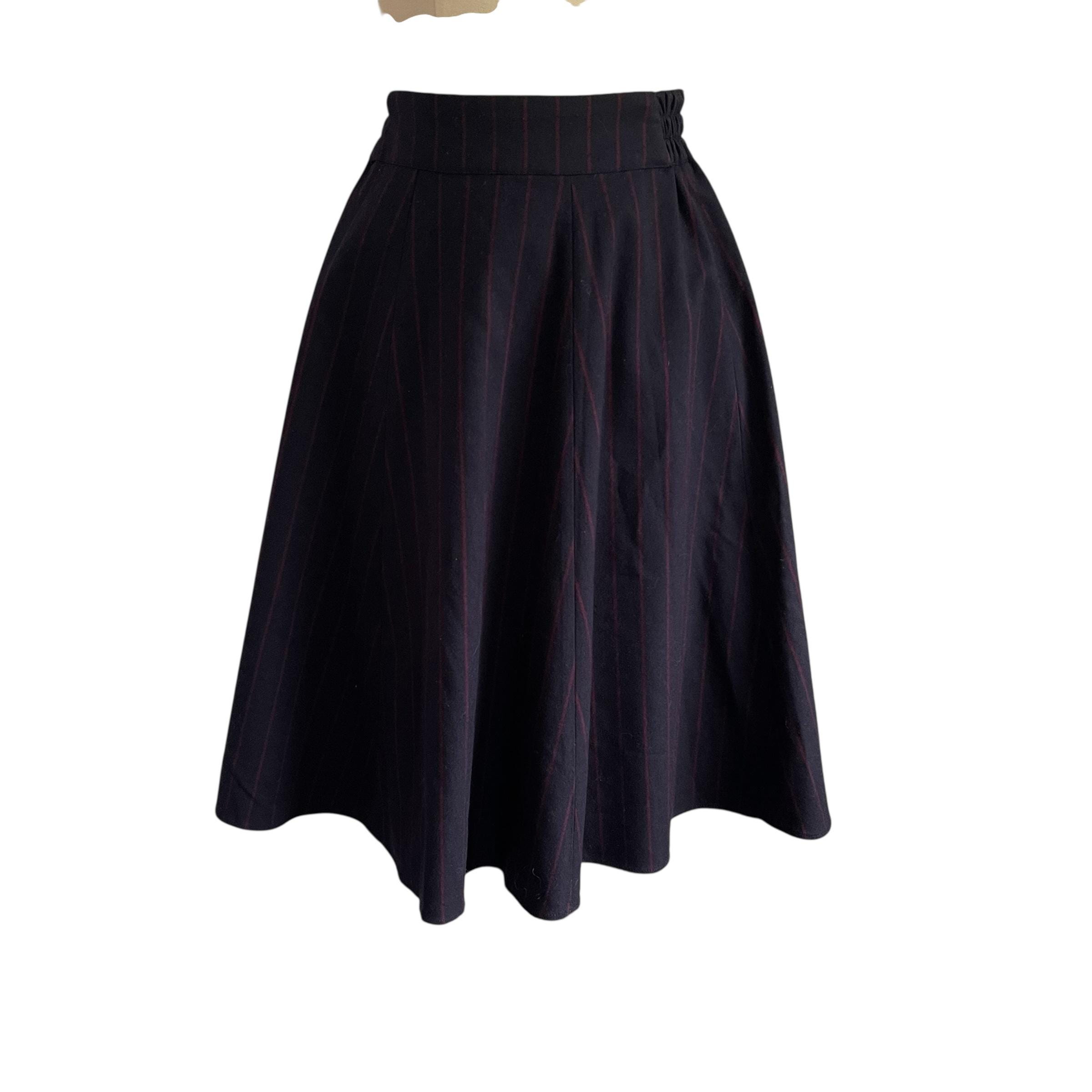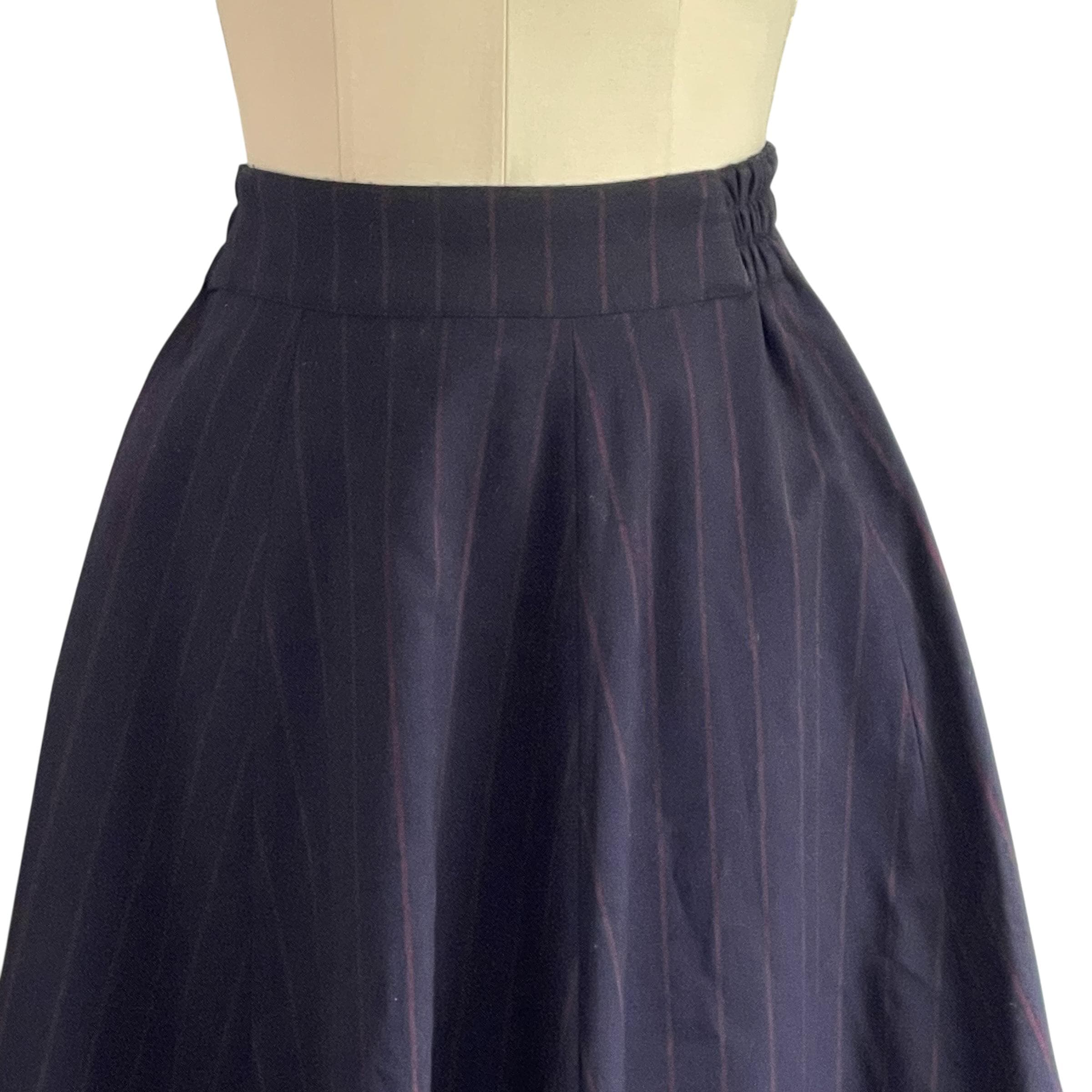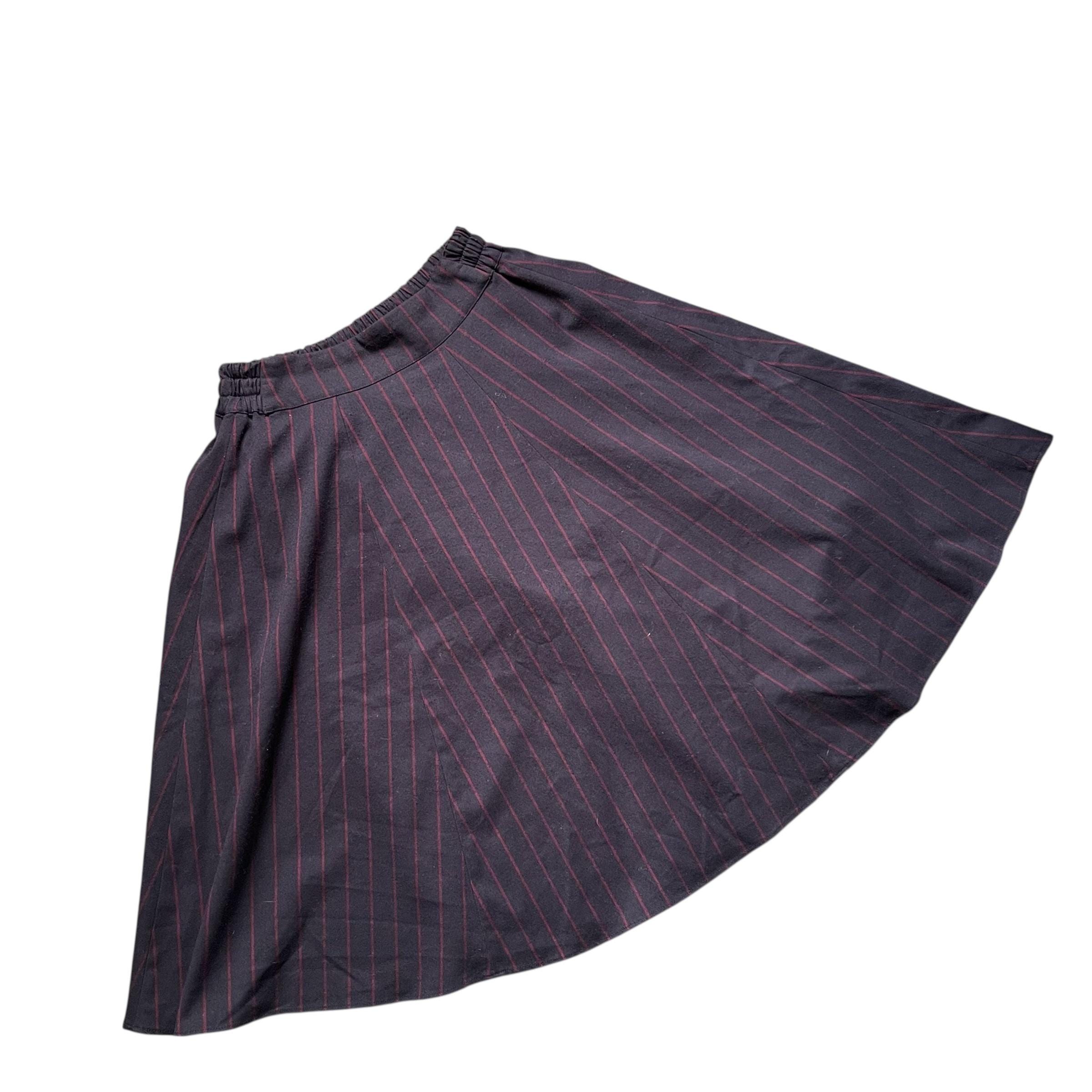 Vintage Earth, Music, & Ecology Dark Striped Skirt: Red Label, A-Line, Elastic Back, Mahogany Red Stripes, Grunge, Witchcore, Dark Academia.