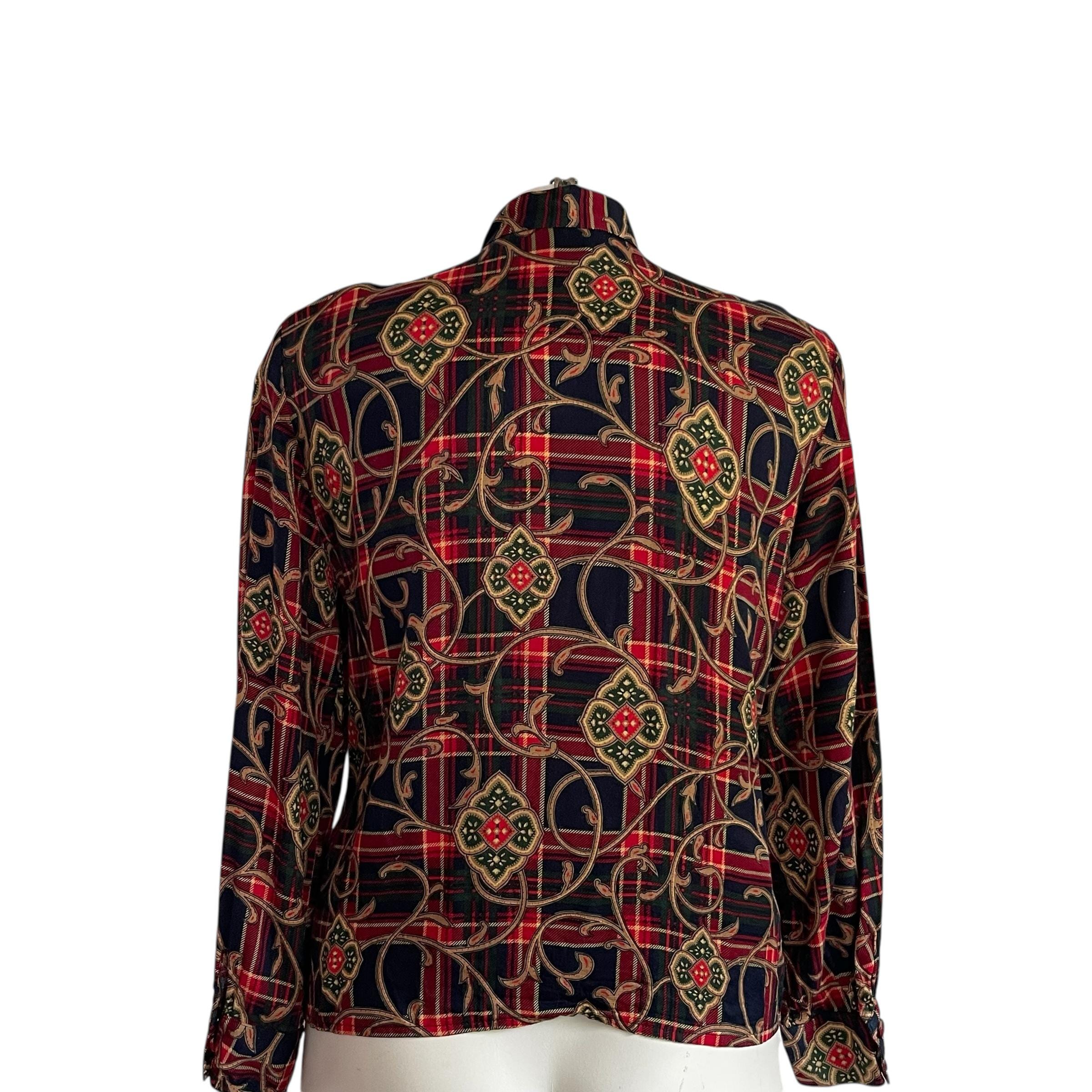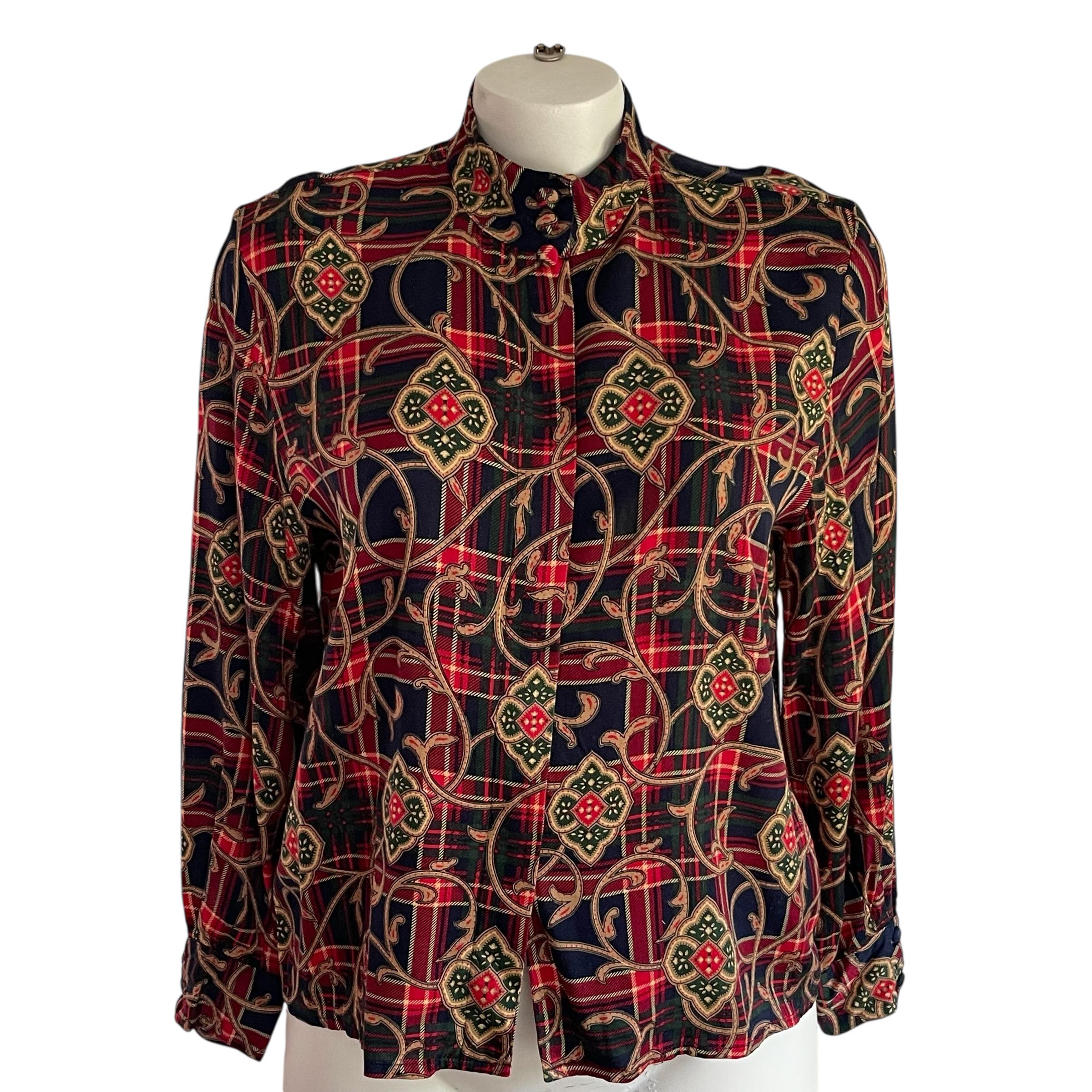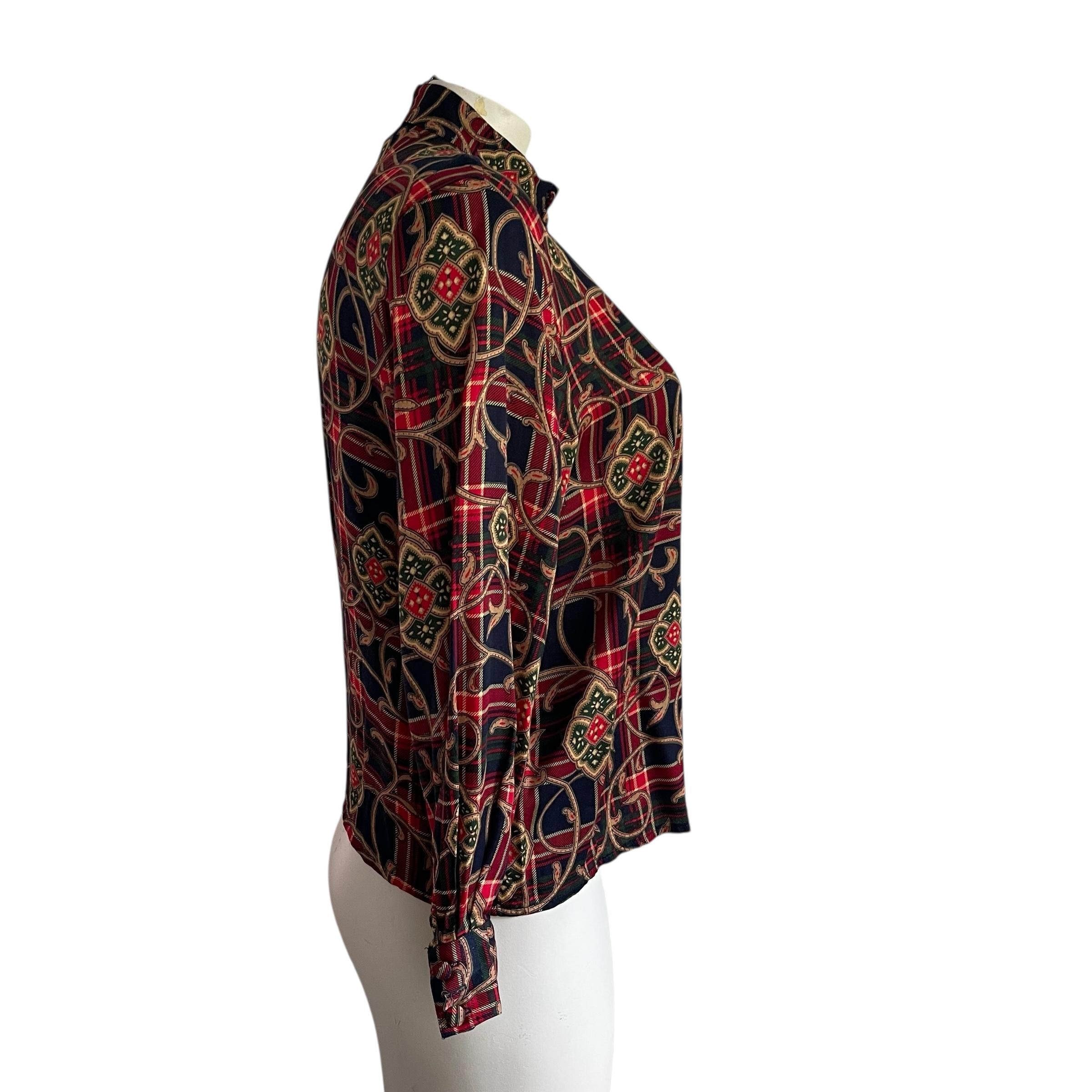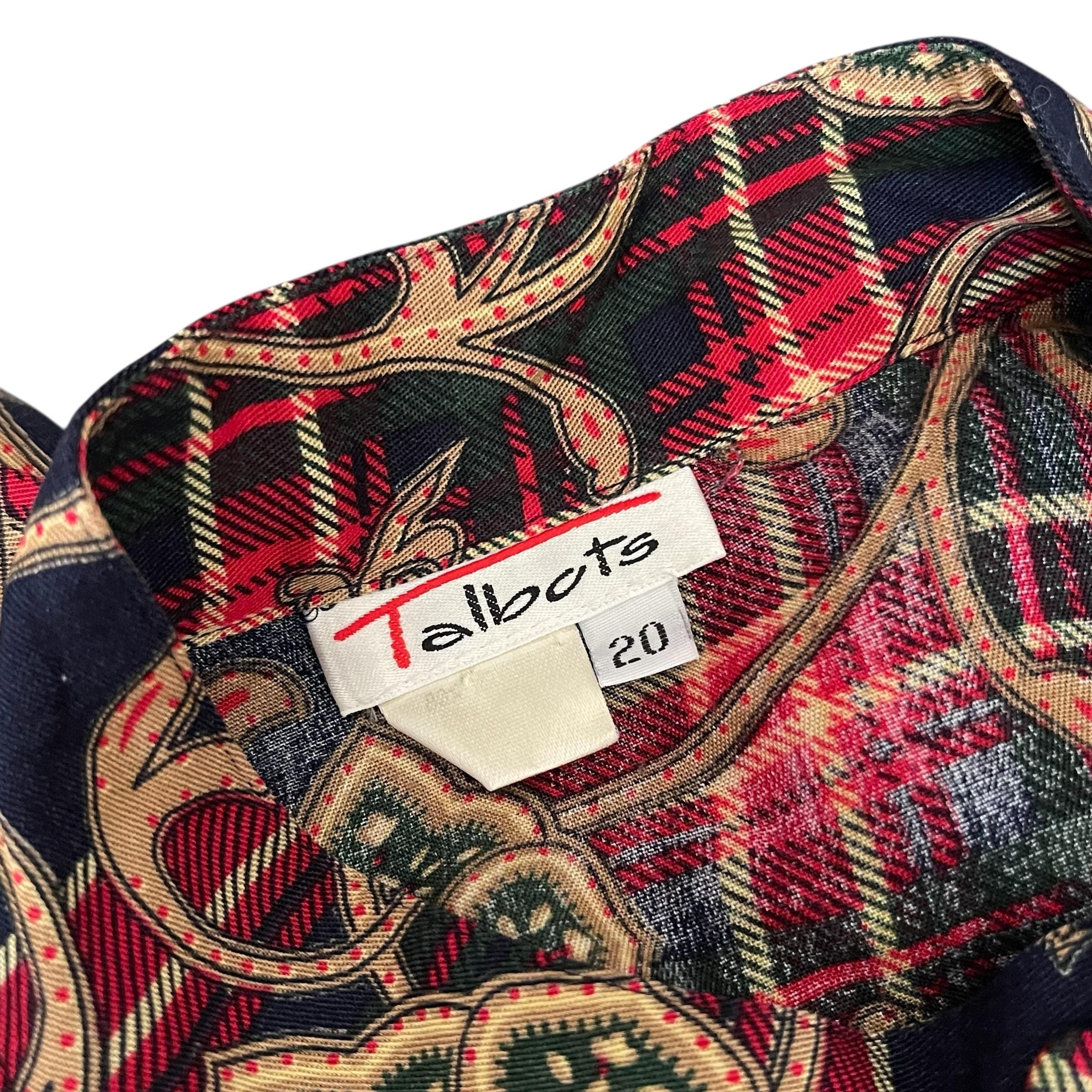 Vintage Talbots Baroque Plaid Button-Up Blouse Shirt Top: Plus Size, Womens Casual, Business Casual, Size 20, 70s 80s 90s