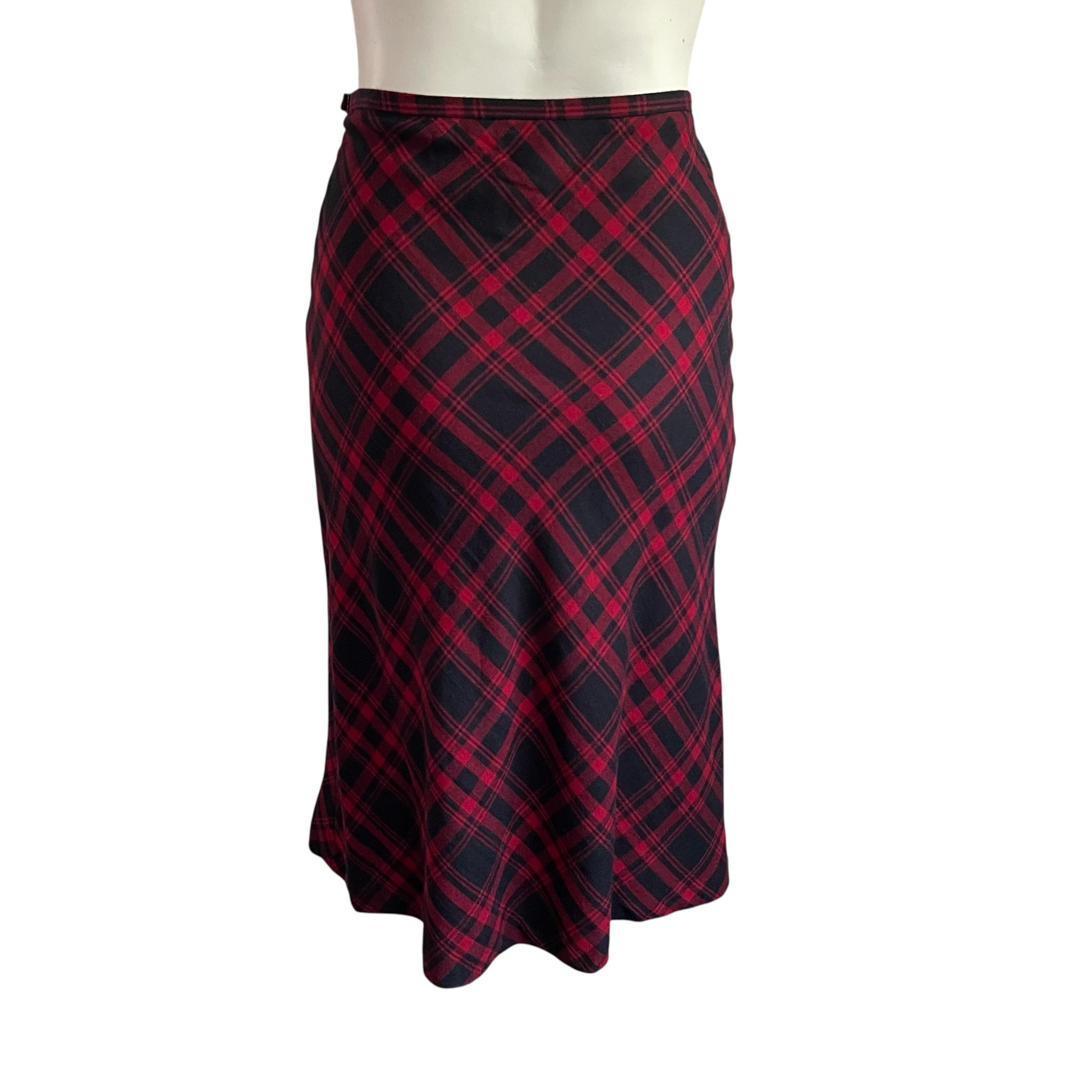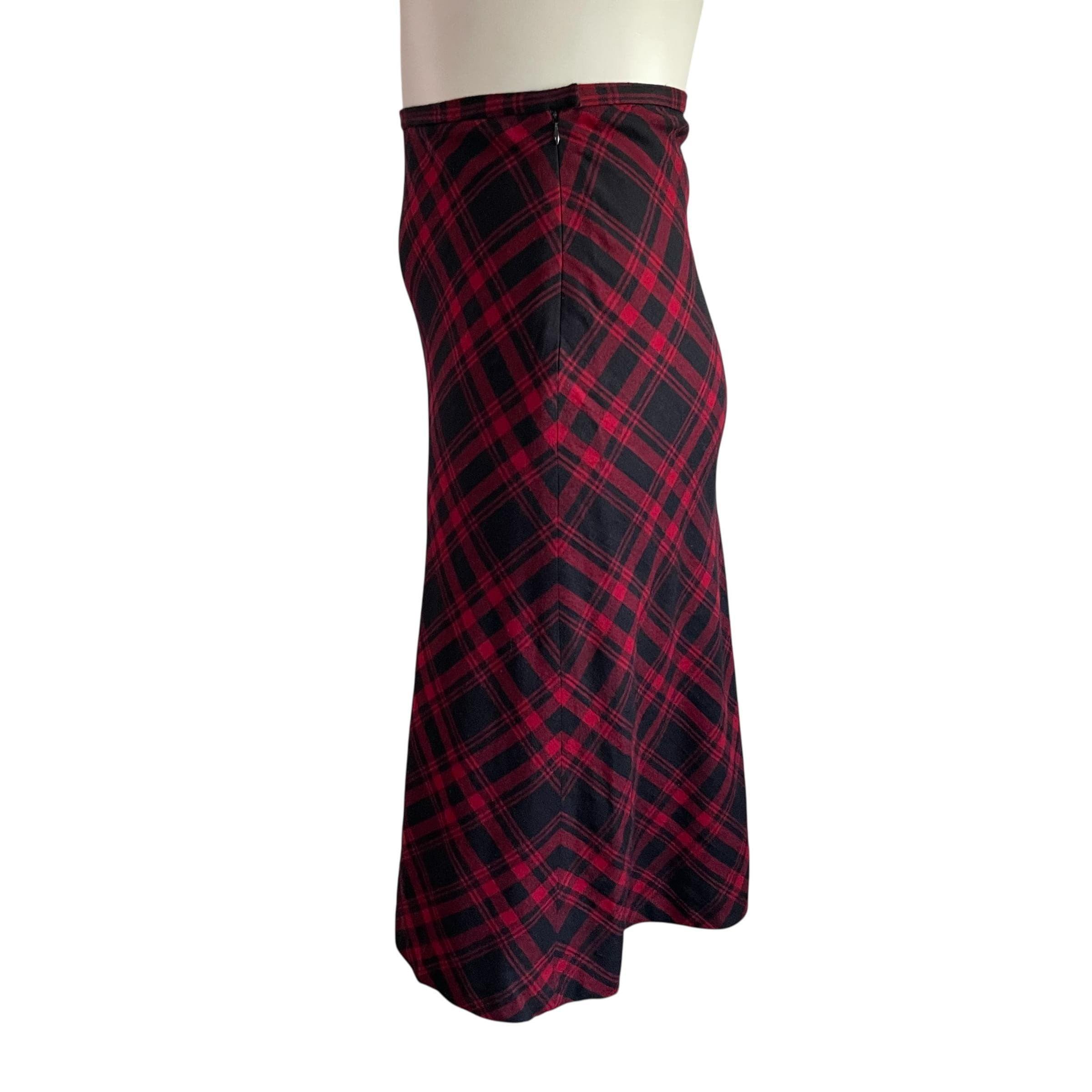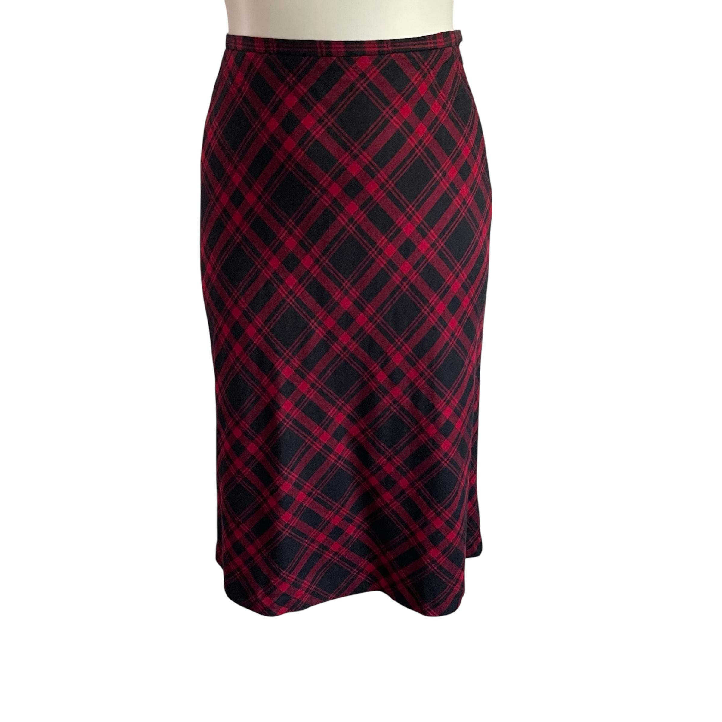 Vintage Charter Club Red and Black Plaid Bias Skirt: Petite Bias Skirt, Bias Cut, Grunge, No Stretch, Academia, 90s Y2K.