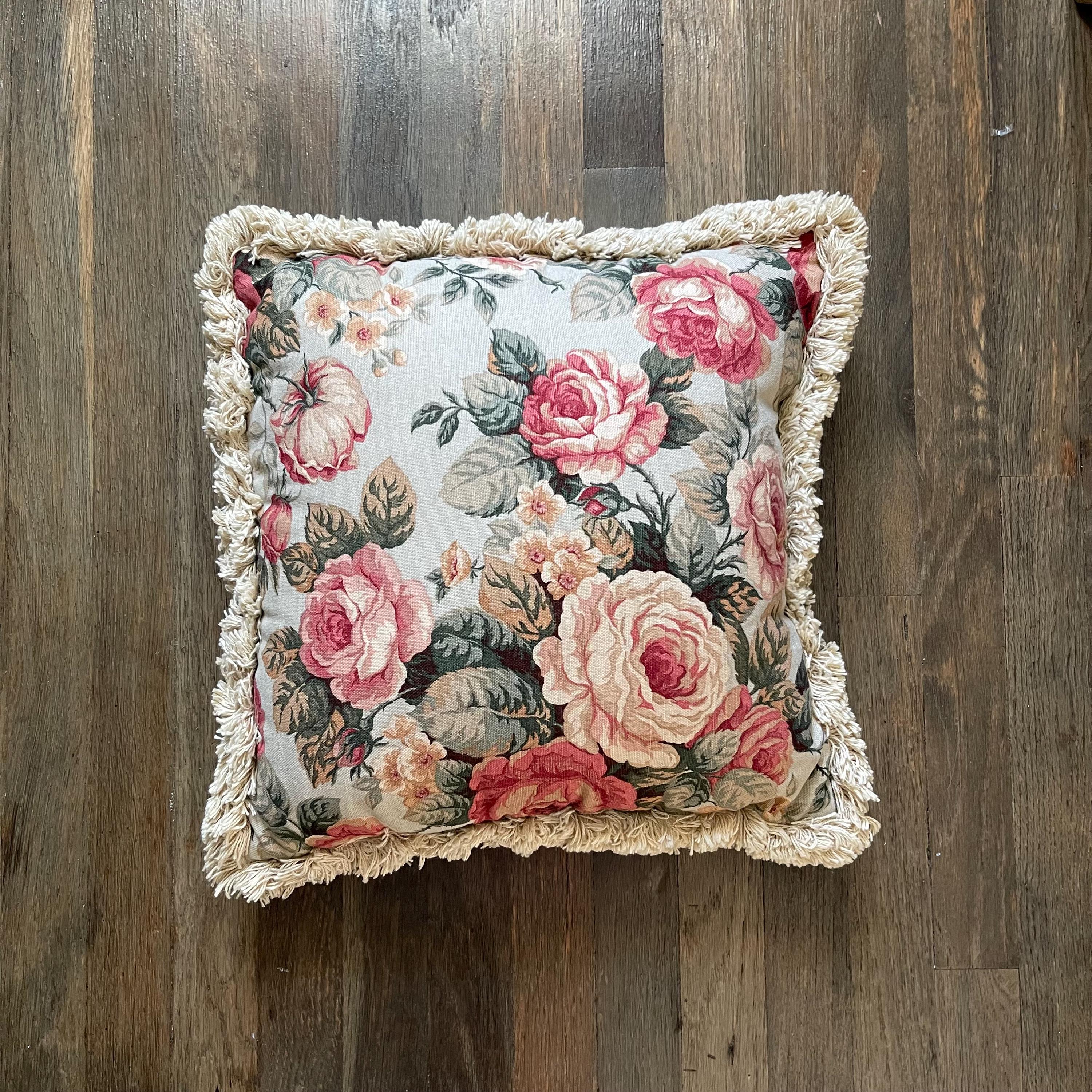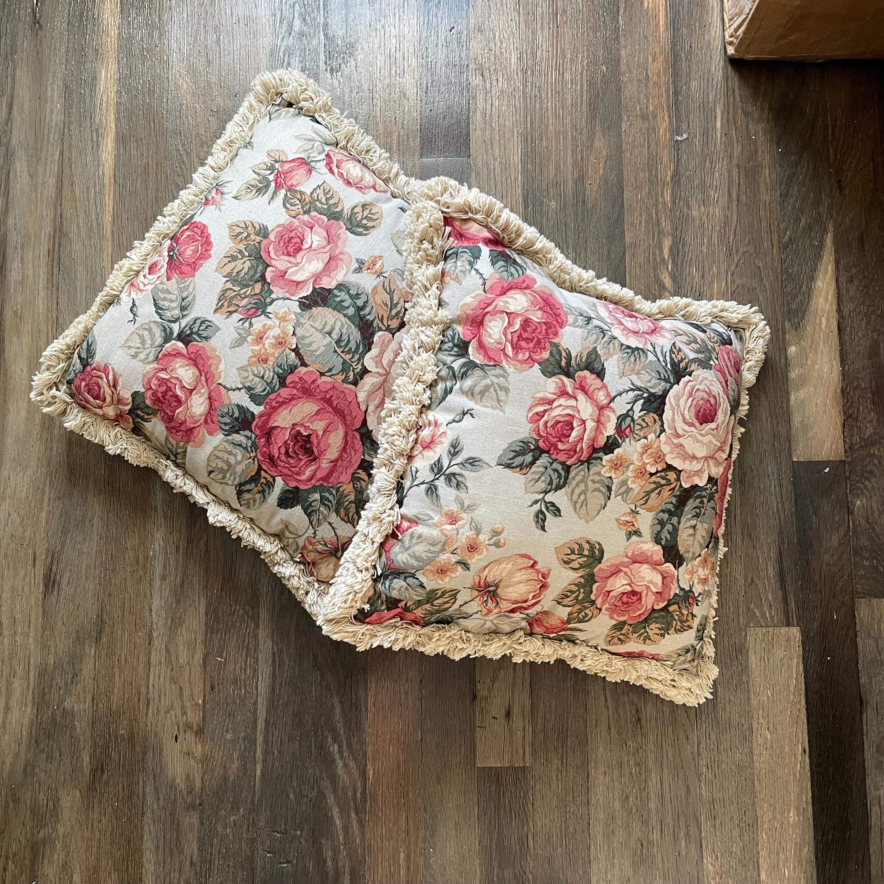 Vintage Floral Fringed Couch Pillows: Multicolor, Flowers, Fringes, Home Decor, Decorative Pillows, Cottagecore, Fairycore, MCM, 40s 50s 60s