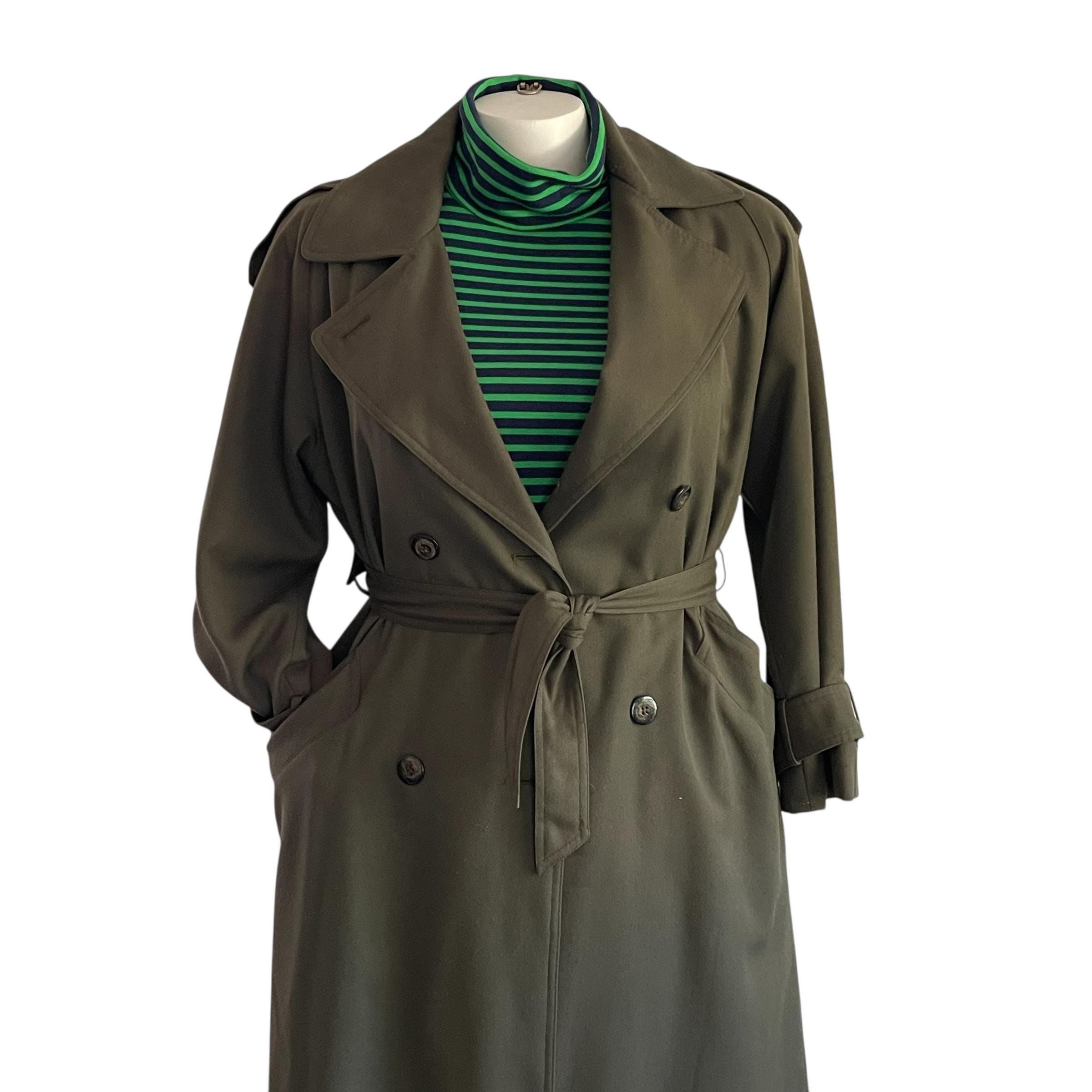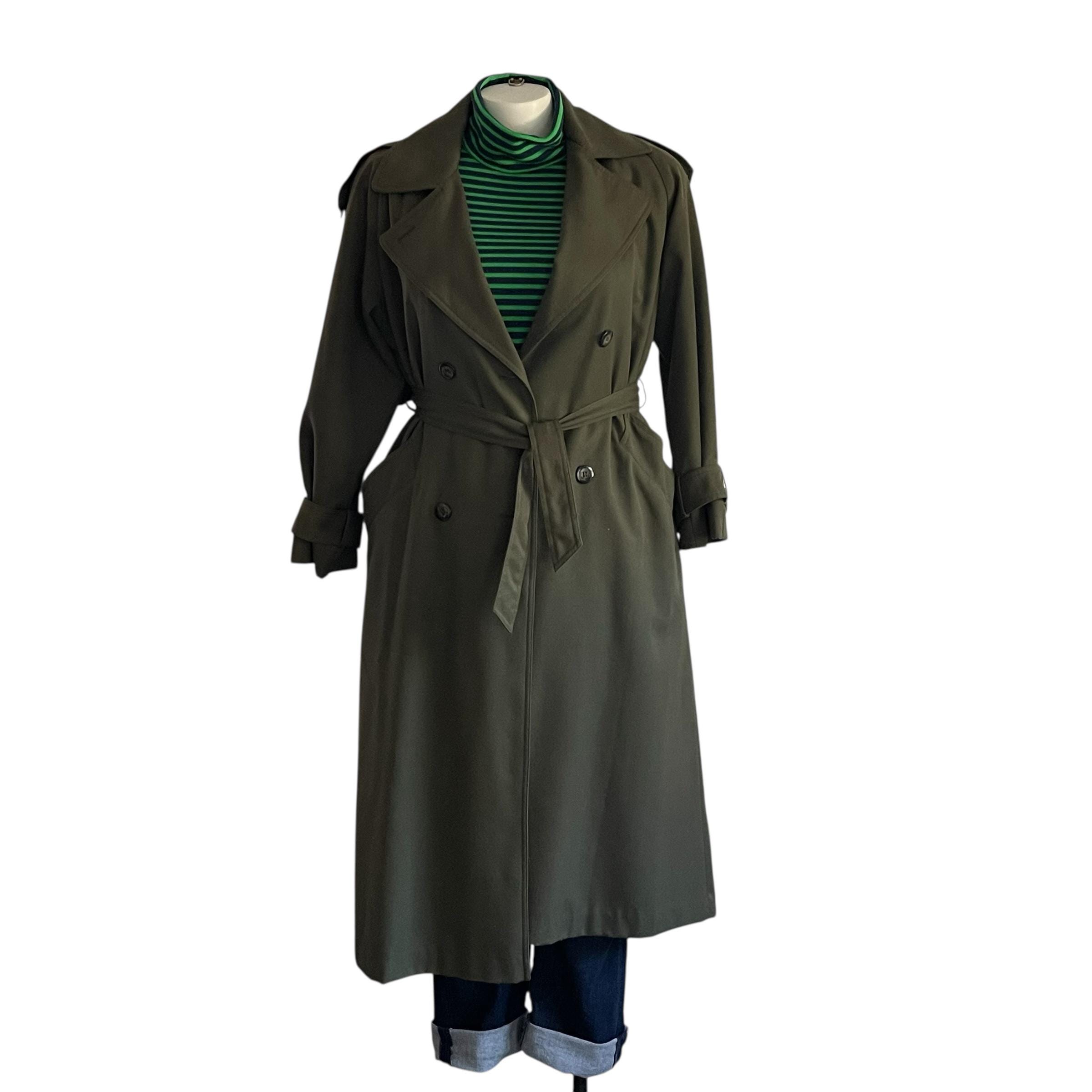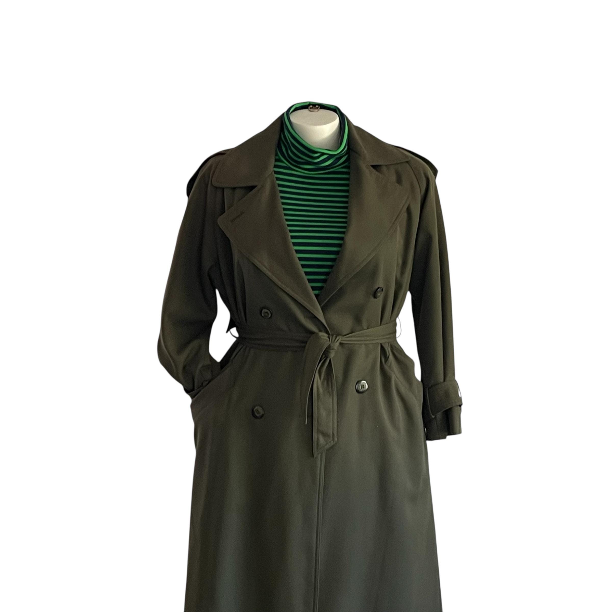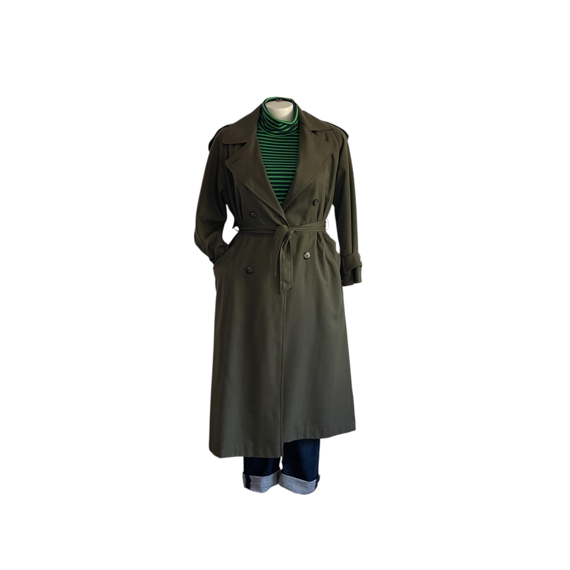 Vintage Gallery Dark Khaki Trench Coat w/Waist Tie: Detective, Investigator, Noir, Dark Academia, 80s 90s
