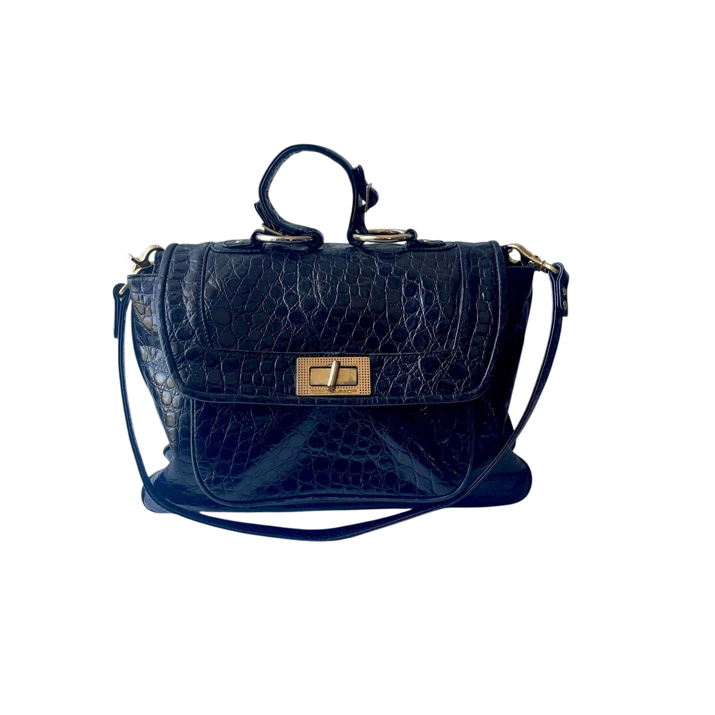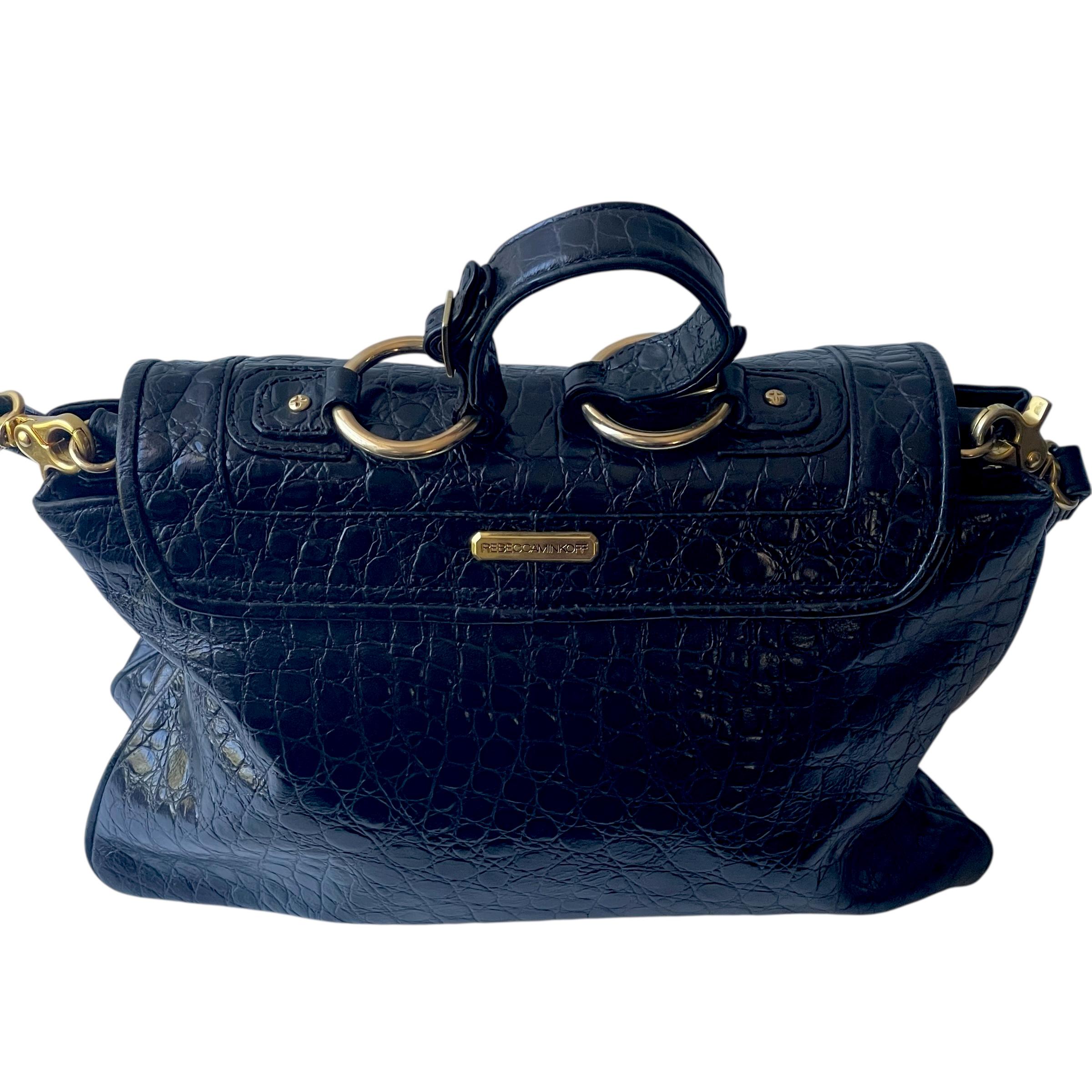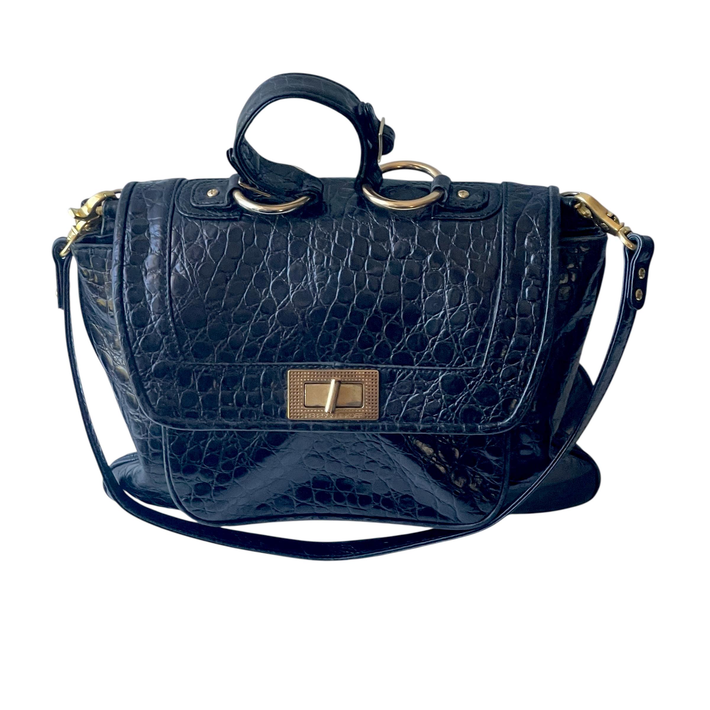 Vintage Rebecca Minkoff Black Croc Gator Purse: Leather Satchel, Purse Bag.