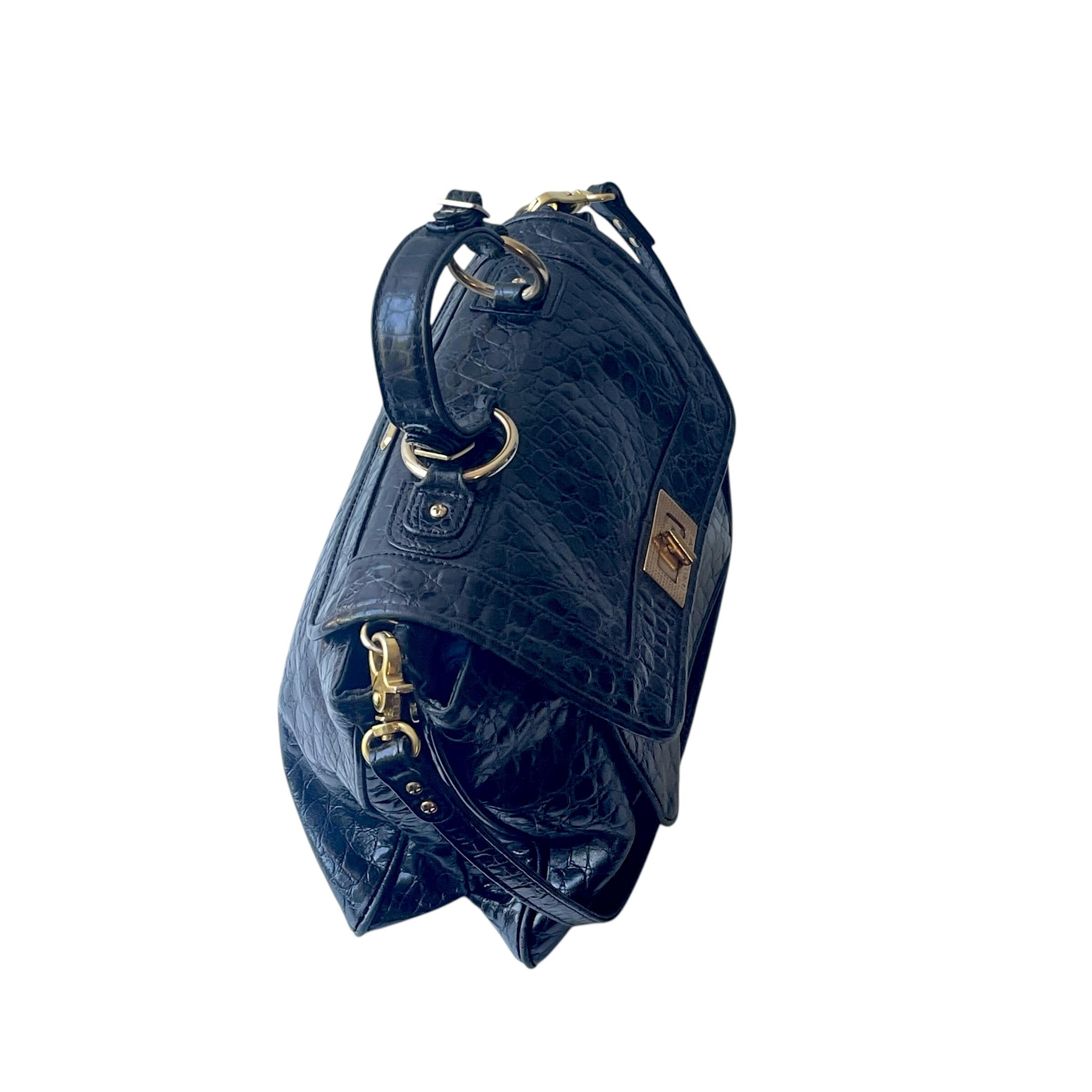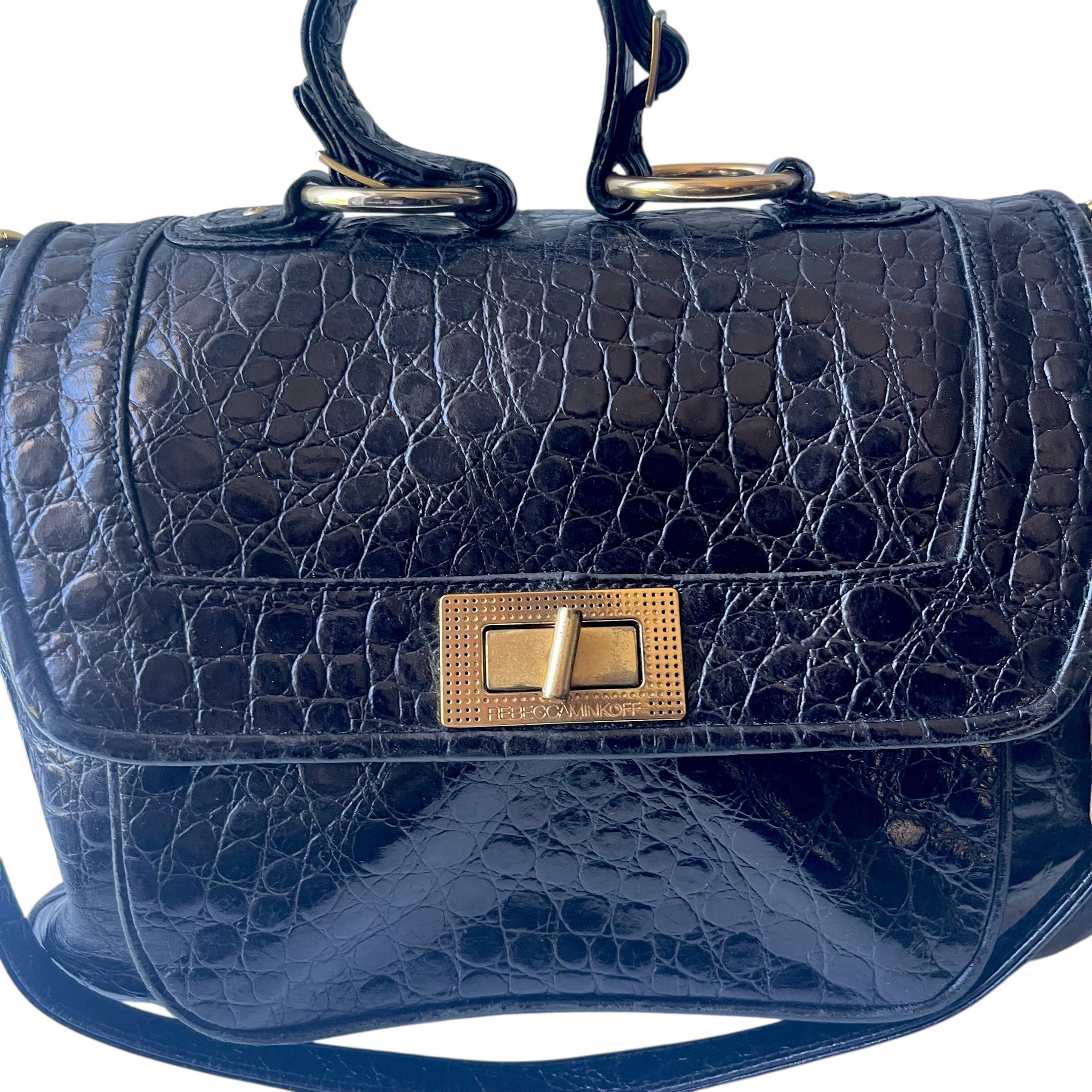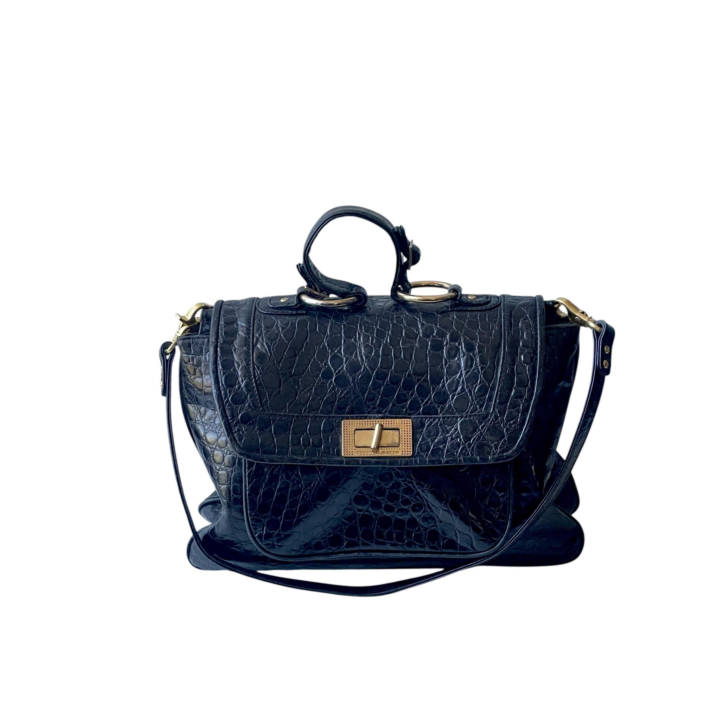 Vintage Rebecca Minkoff Black Croc Gator Purse: Leather Satchel, Purse Bag.