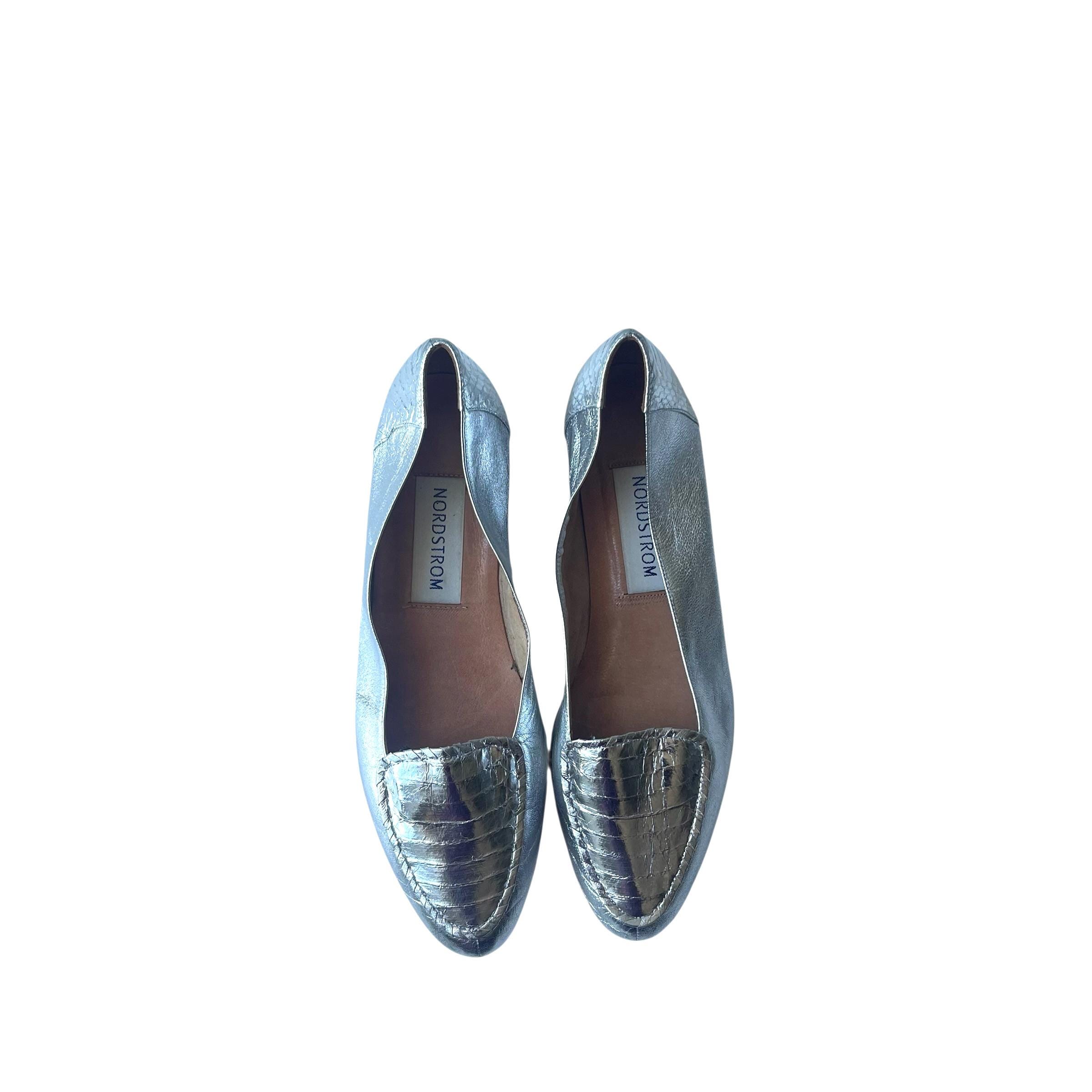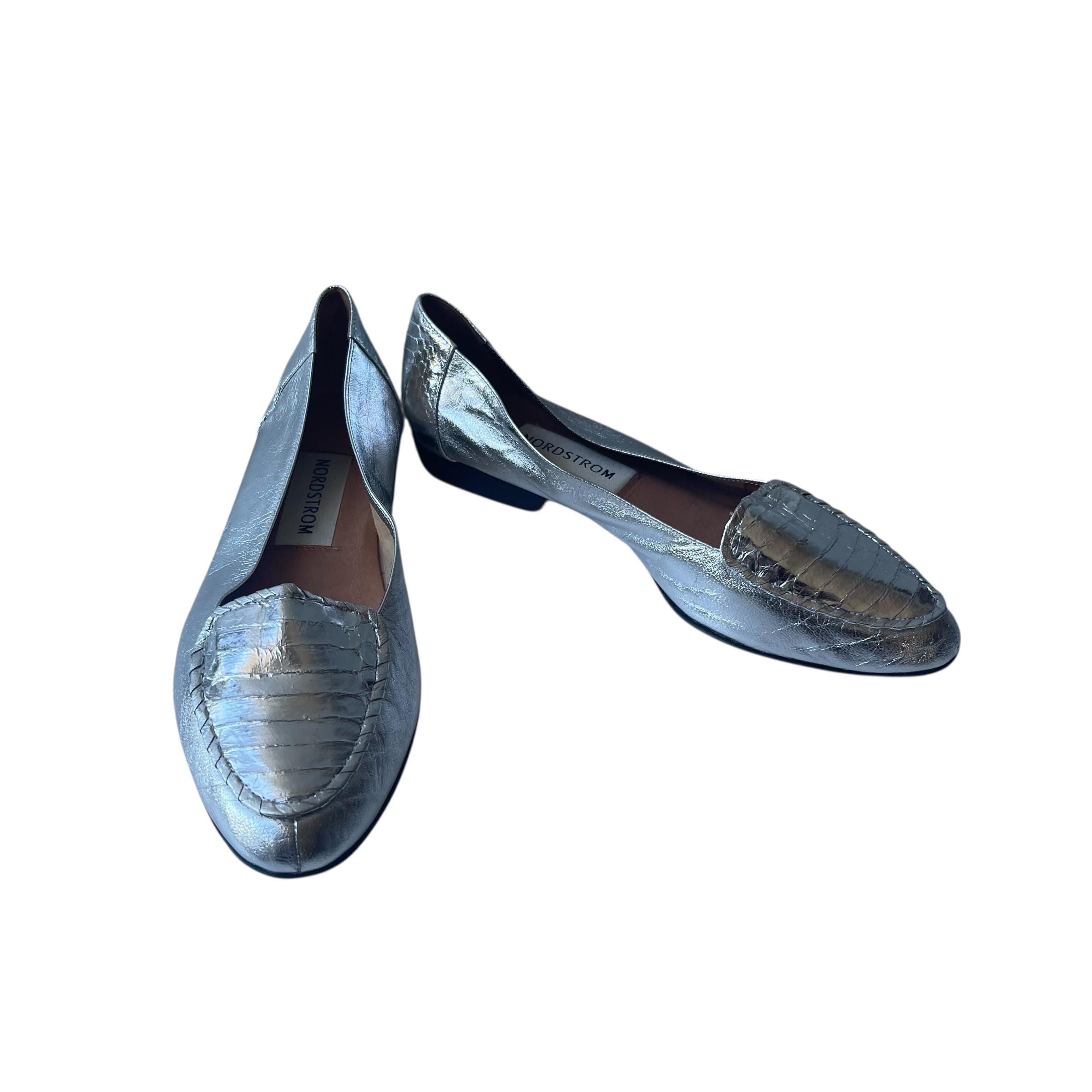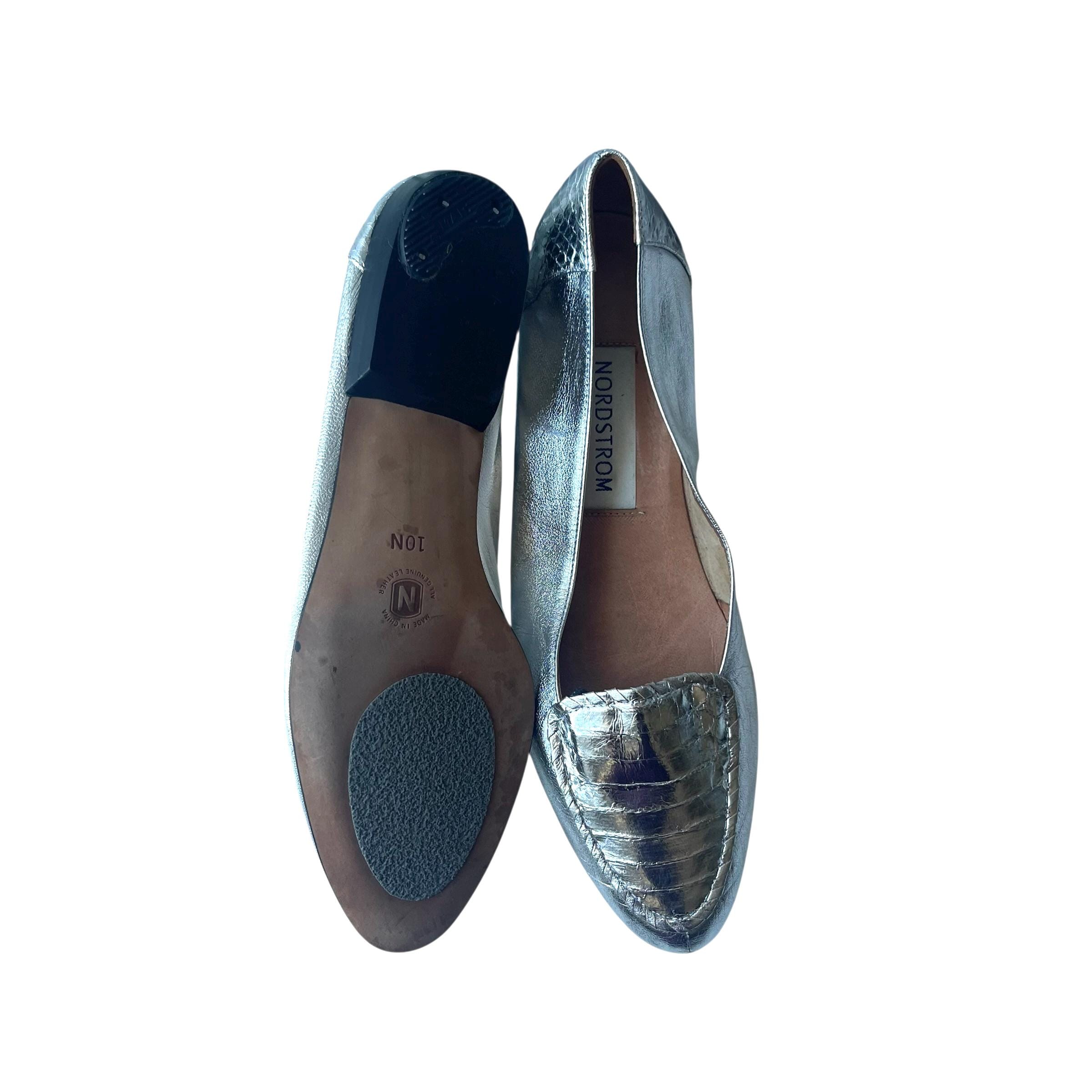 Vintage Metallic Silver Leather Flats: Mod Silver Shoes, Nordstroms Leather Shoes 10N